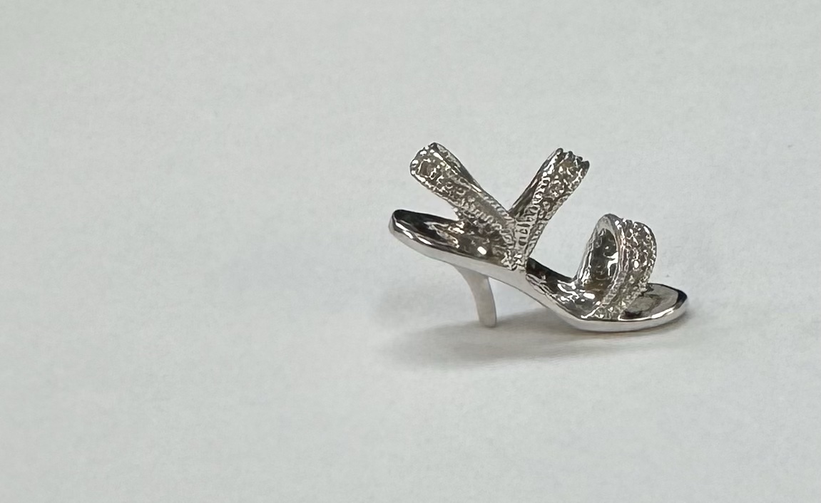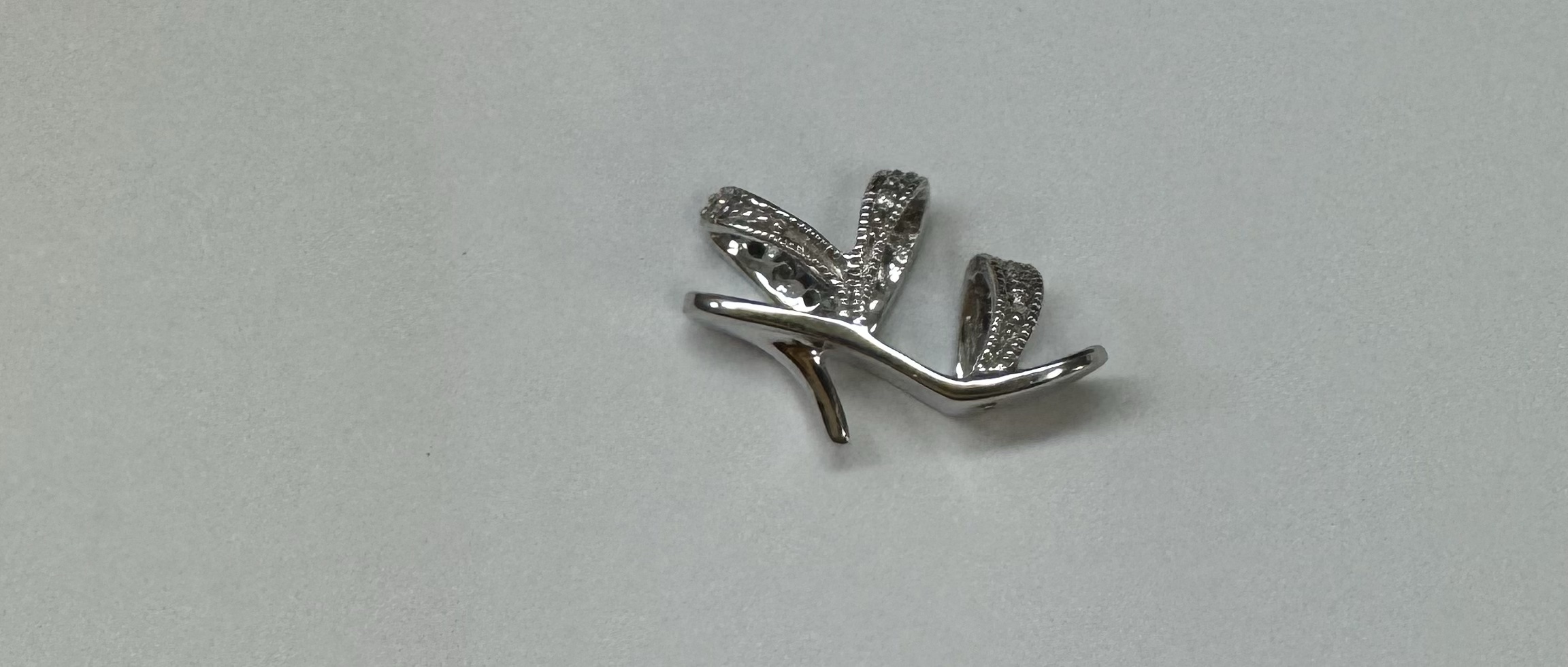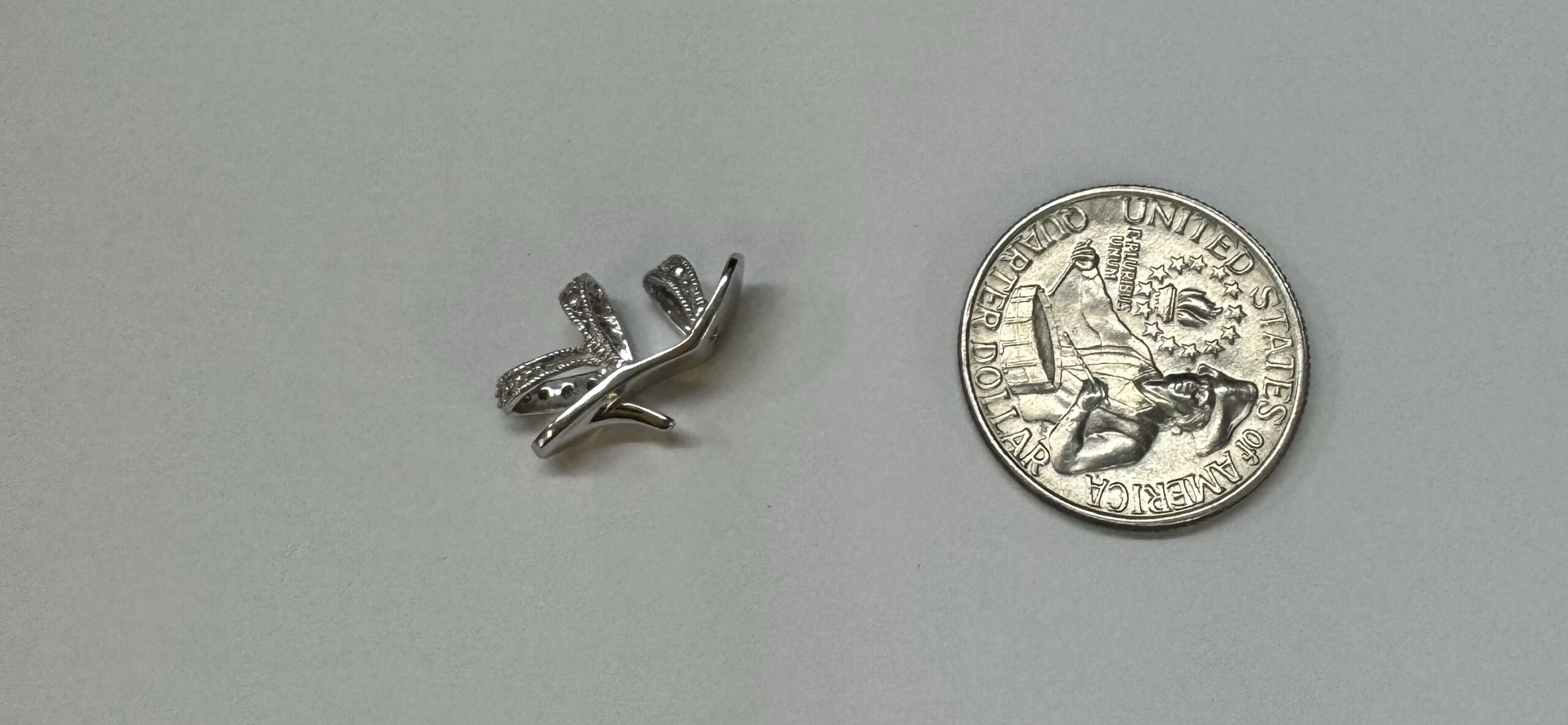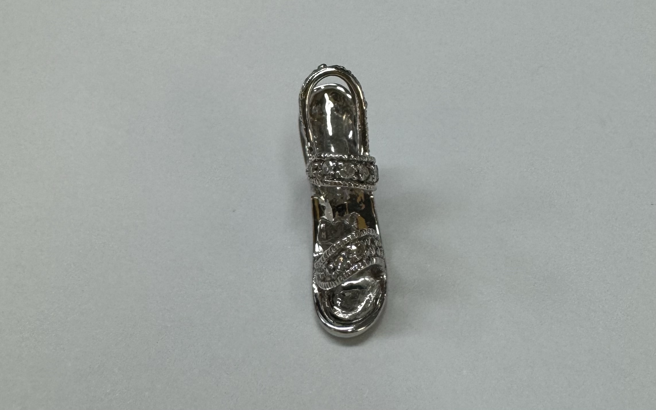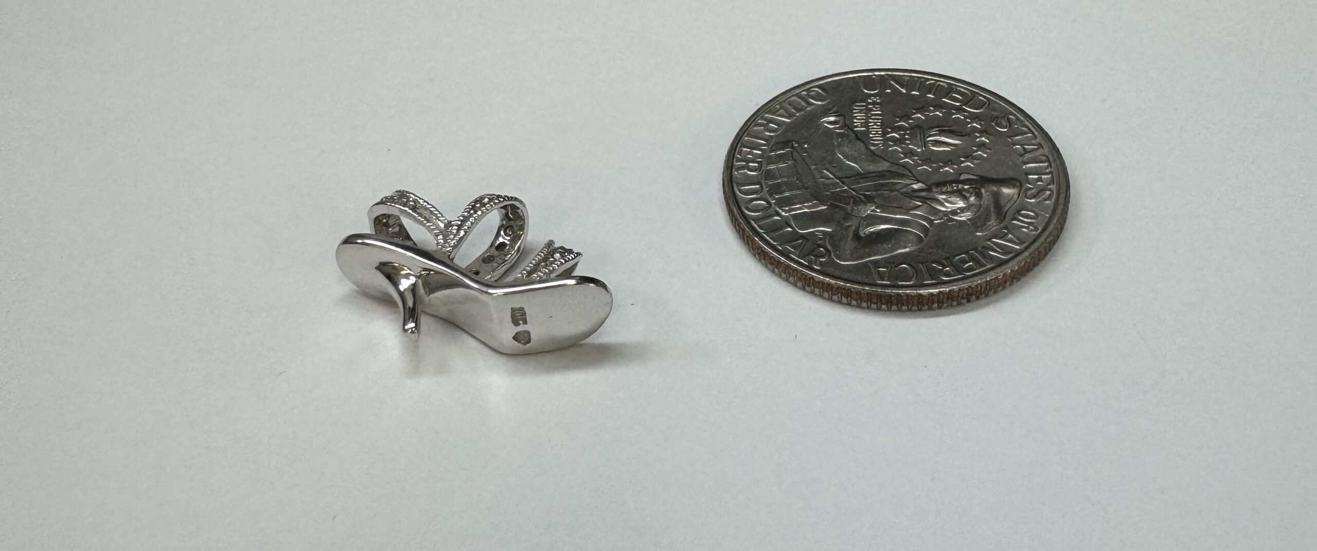 10k white gold genuine diamond accented Stilleto charm/pendant. We will add a loop to this if needed. This piece has an entire weight of 1.8 grams.