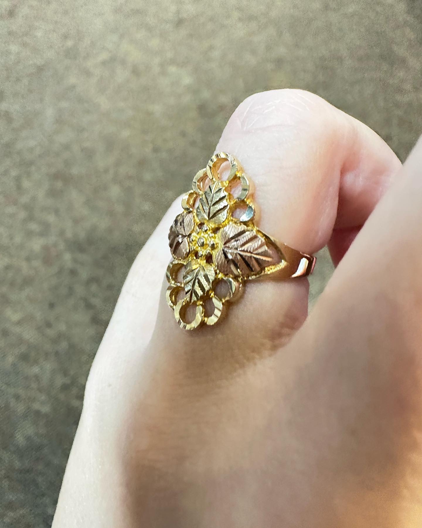 14k Black Hills Gold filigree ring, size 6, 2.8 grams. If you require a different finger size please make note in the comments section at checkout.