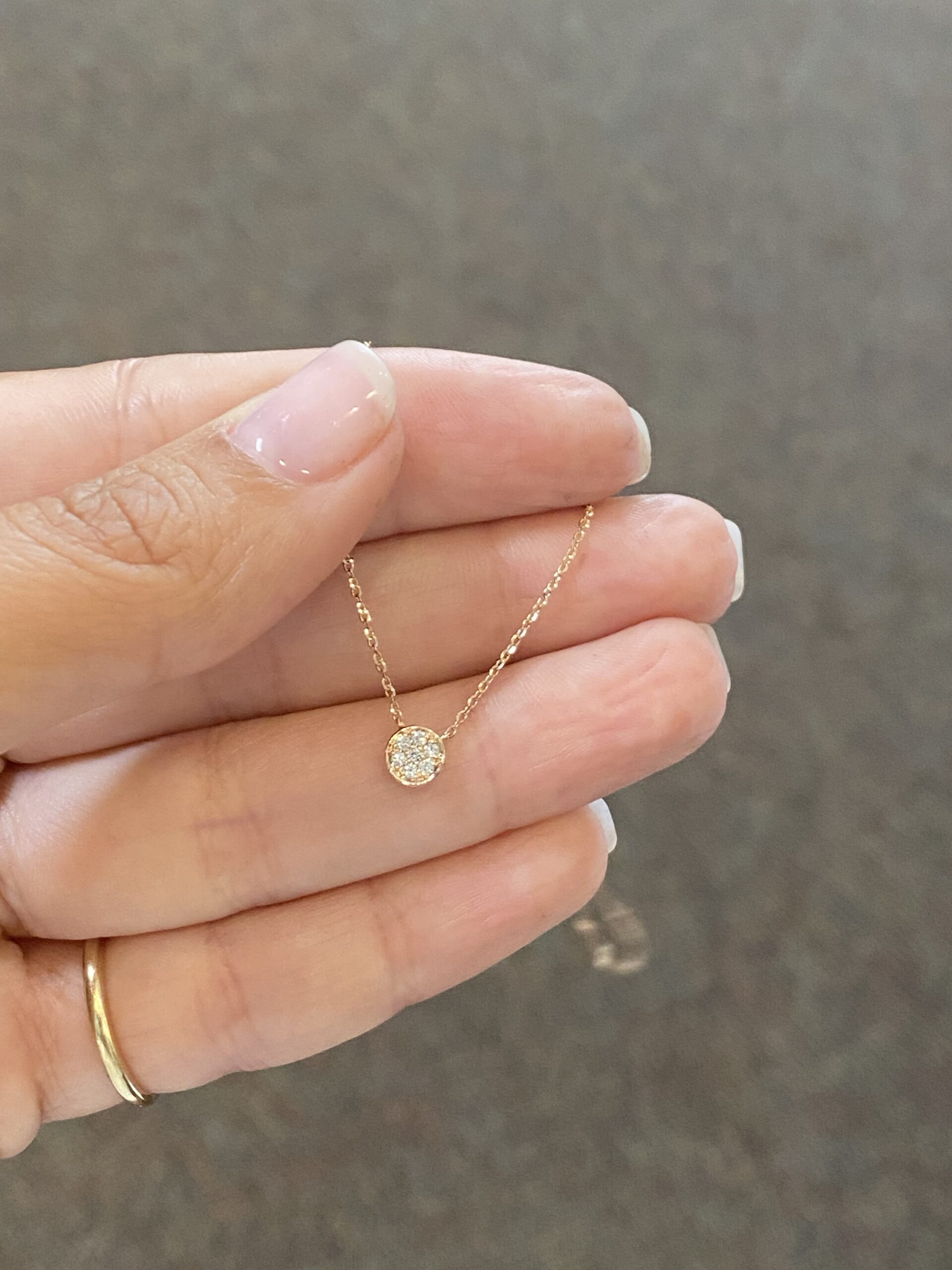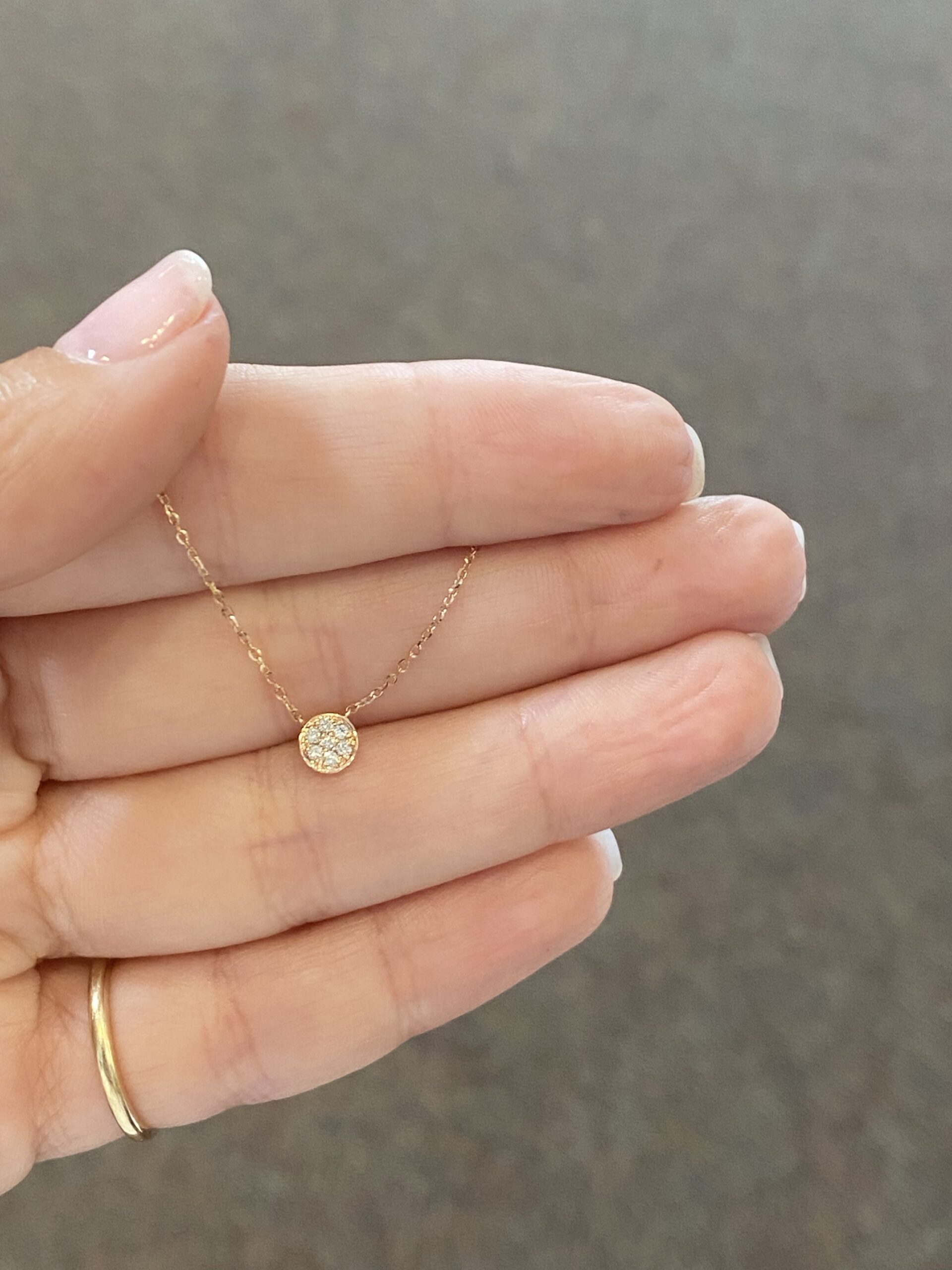 14k rose gold genuine Round Brilliant Cut diamond cluster pendant, adjustable 15.5-17.5” @$295