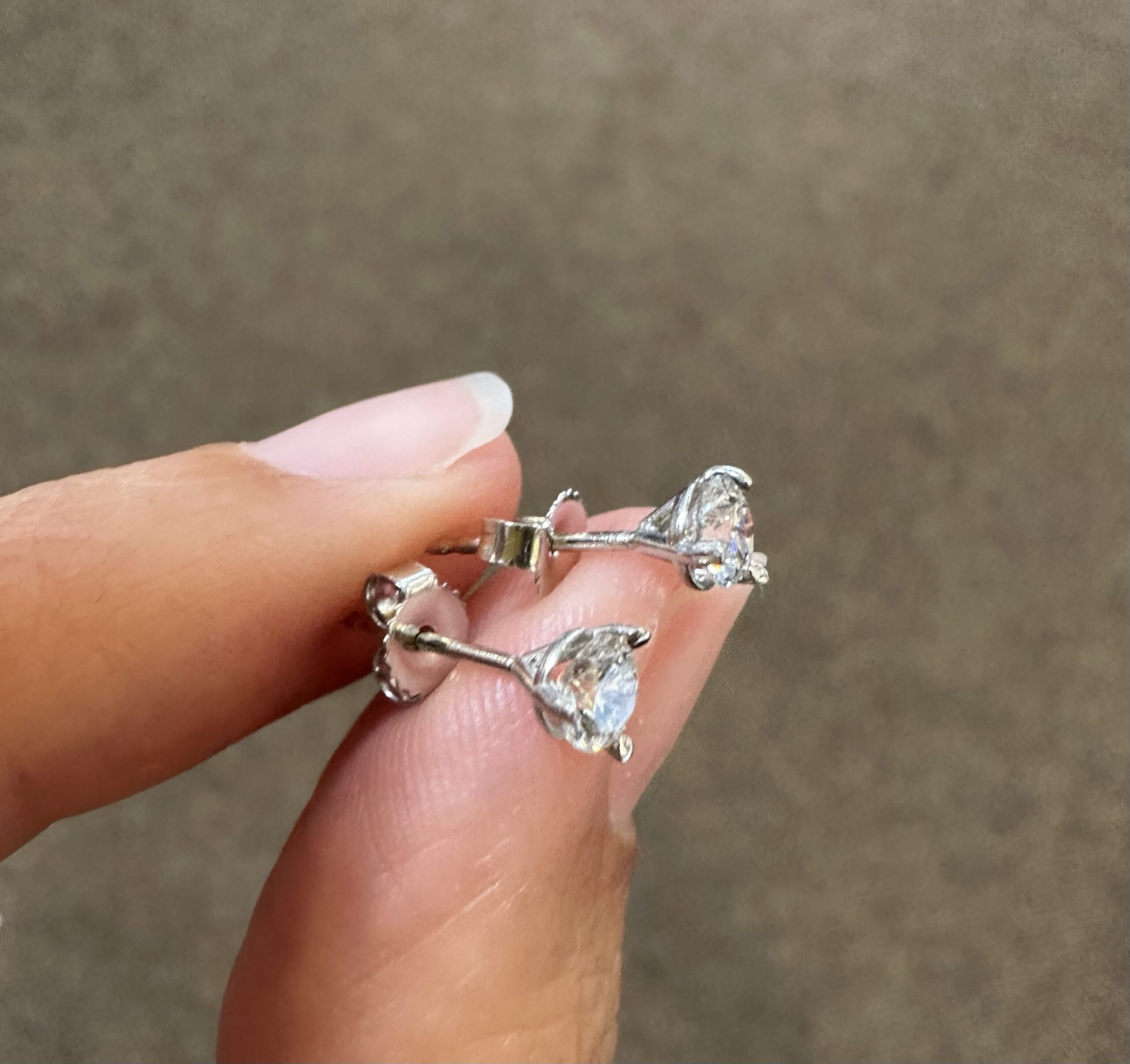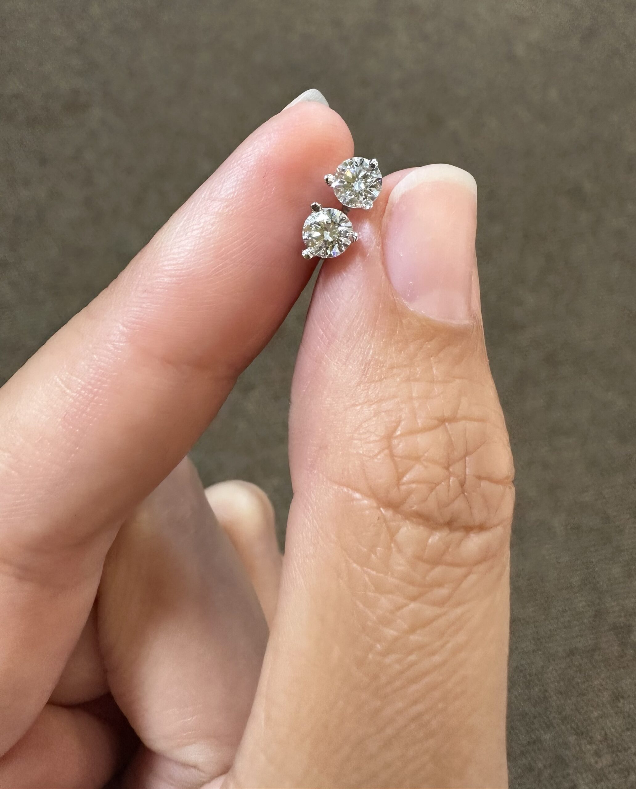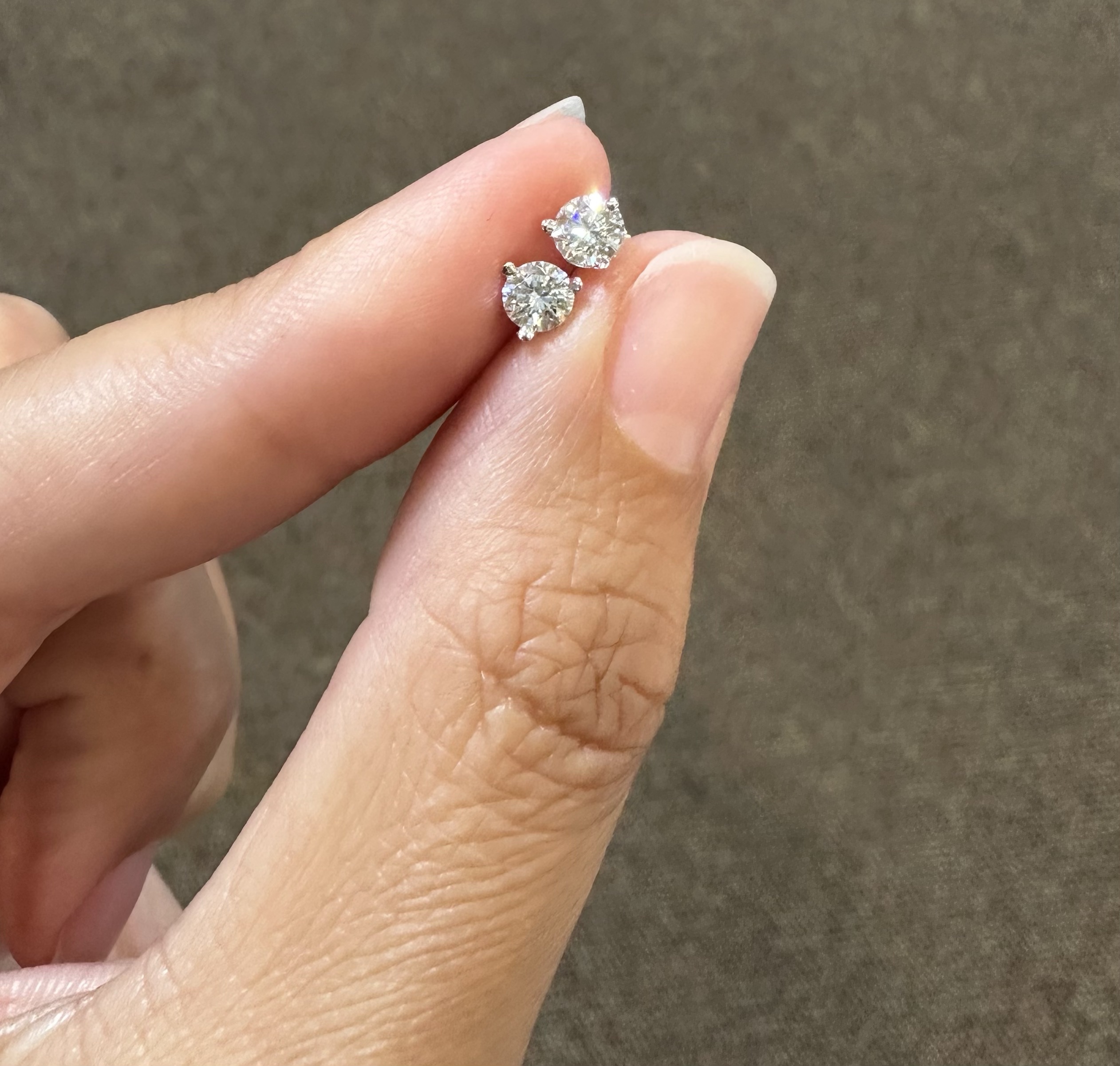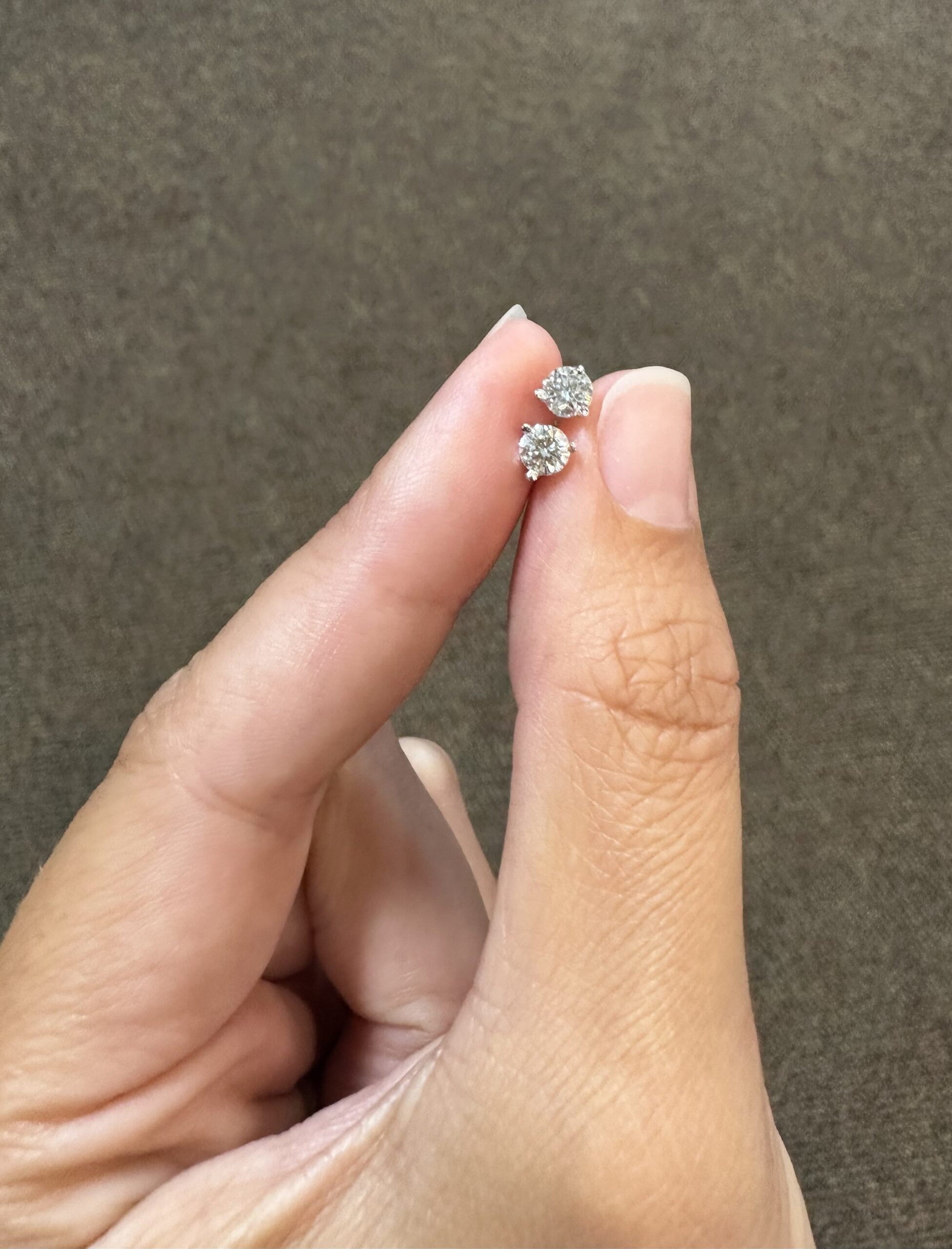 14k white gold genuine 1/2 cttw Lab Grown around Brilliant Cut diamond 3 prong martini style stud earrings with F color, VS2 clarity. These earrings have an entire weight of 0.6 grams.