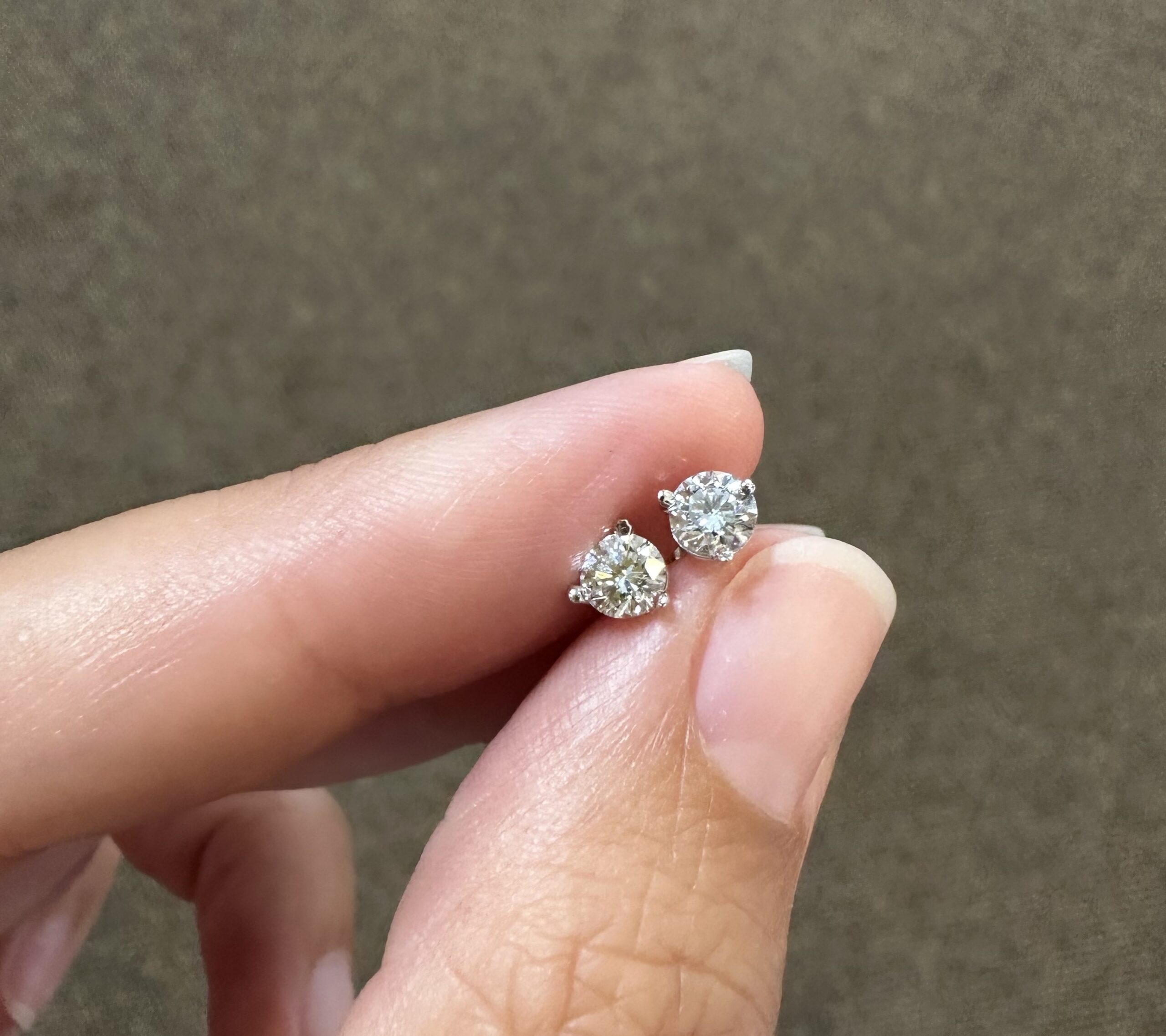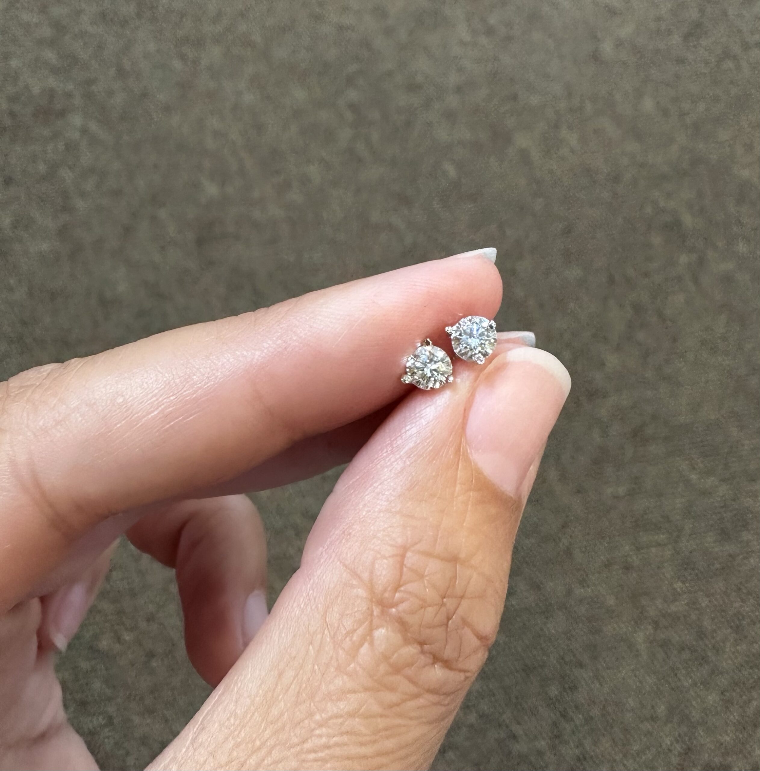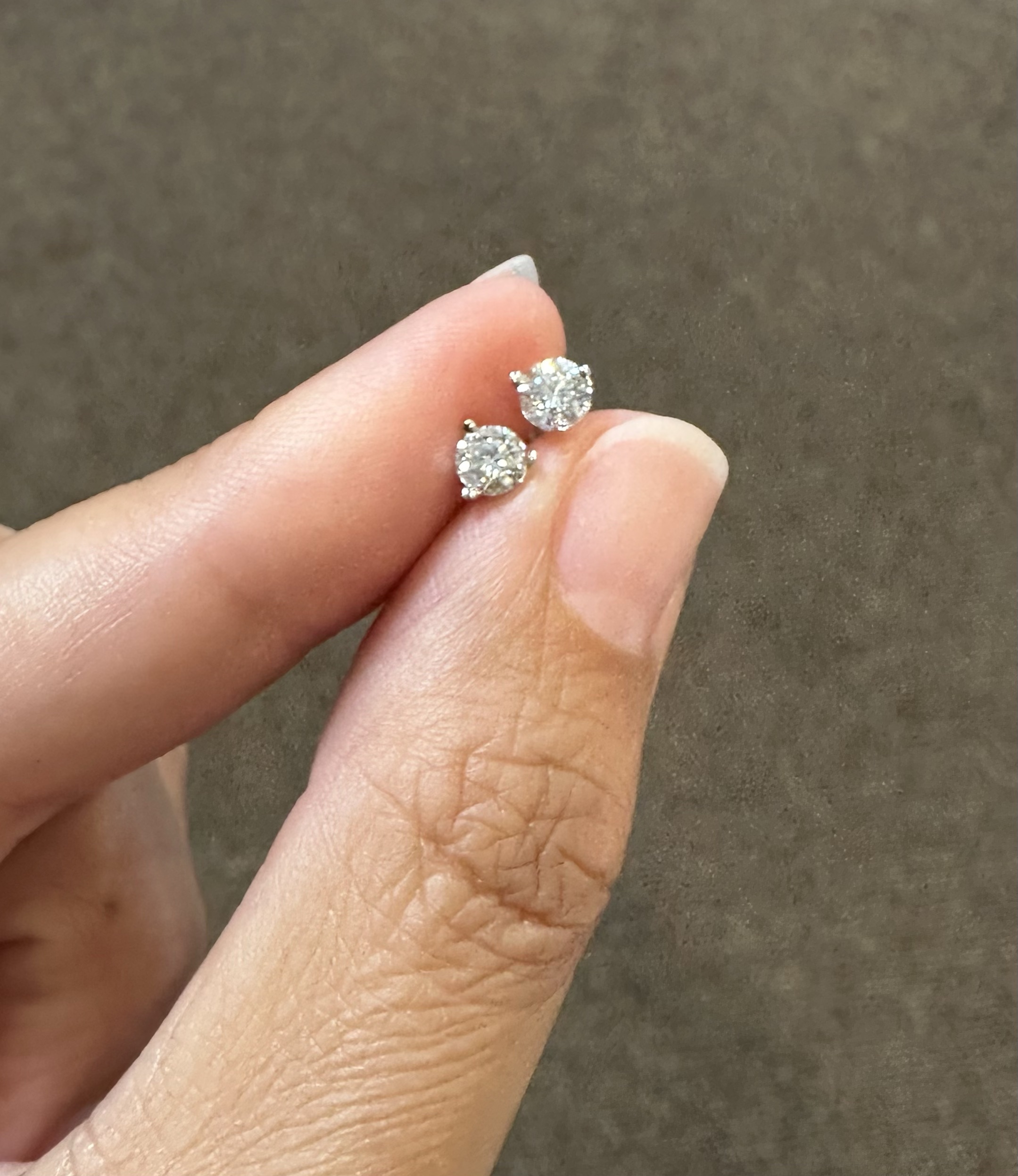 14k white gold genuine 1/2 cttw Lab Grown around Brilliant Cut diamond 3 prong martini style stud earrings with F color, VS2 clarity. These earrings have an entire weight of 0.6 grams.