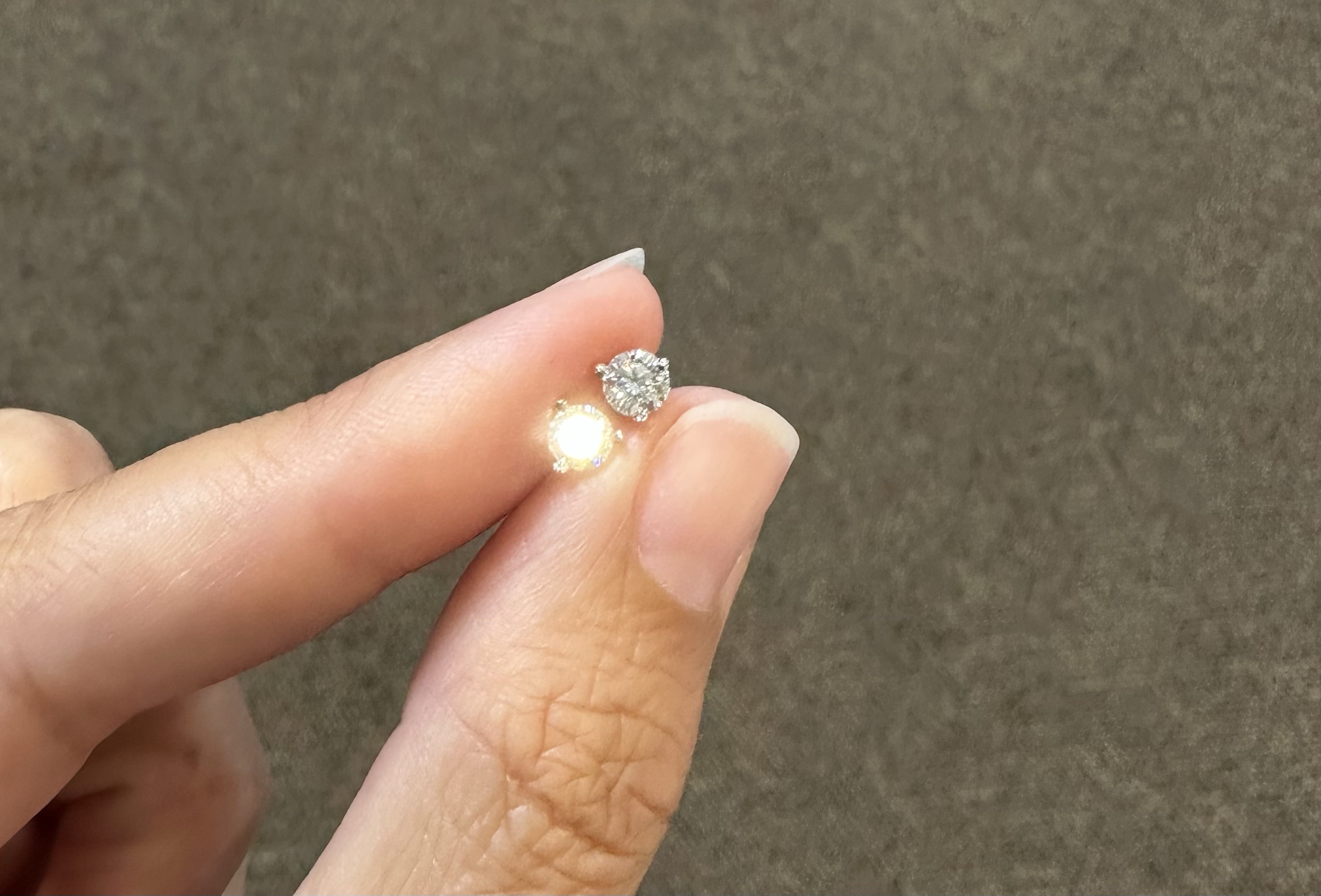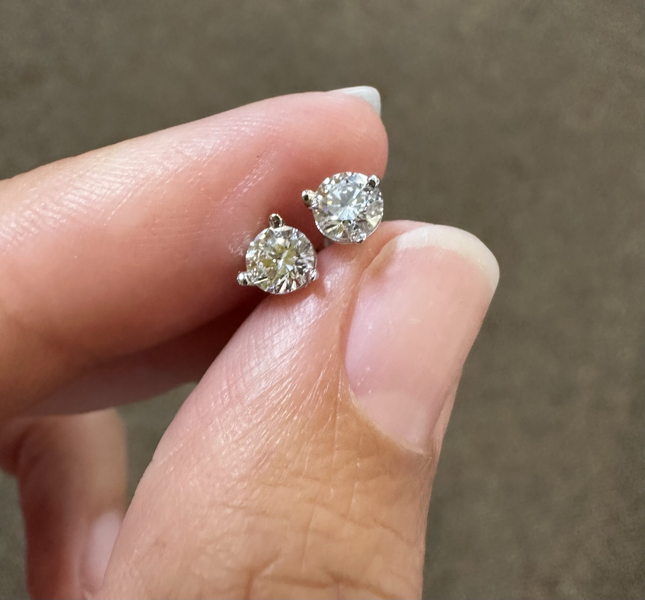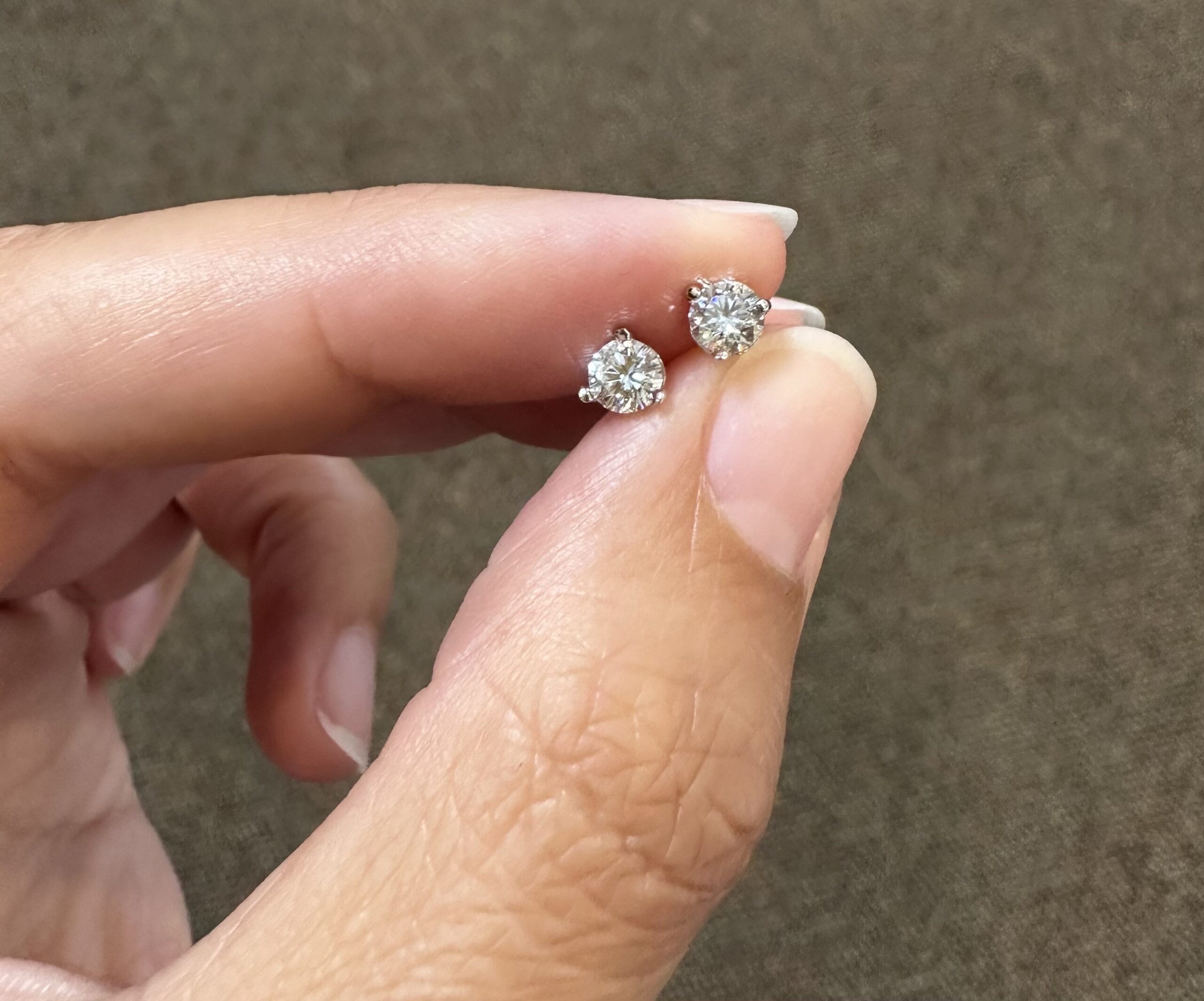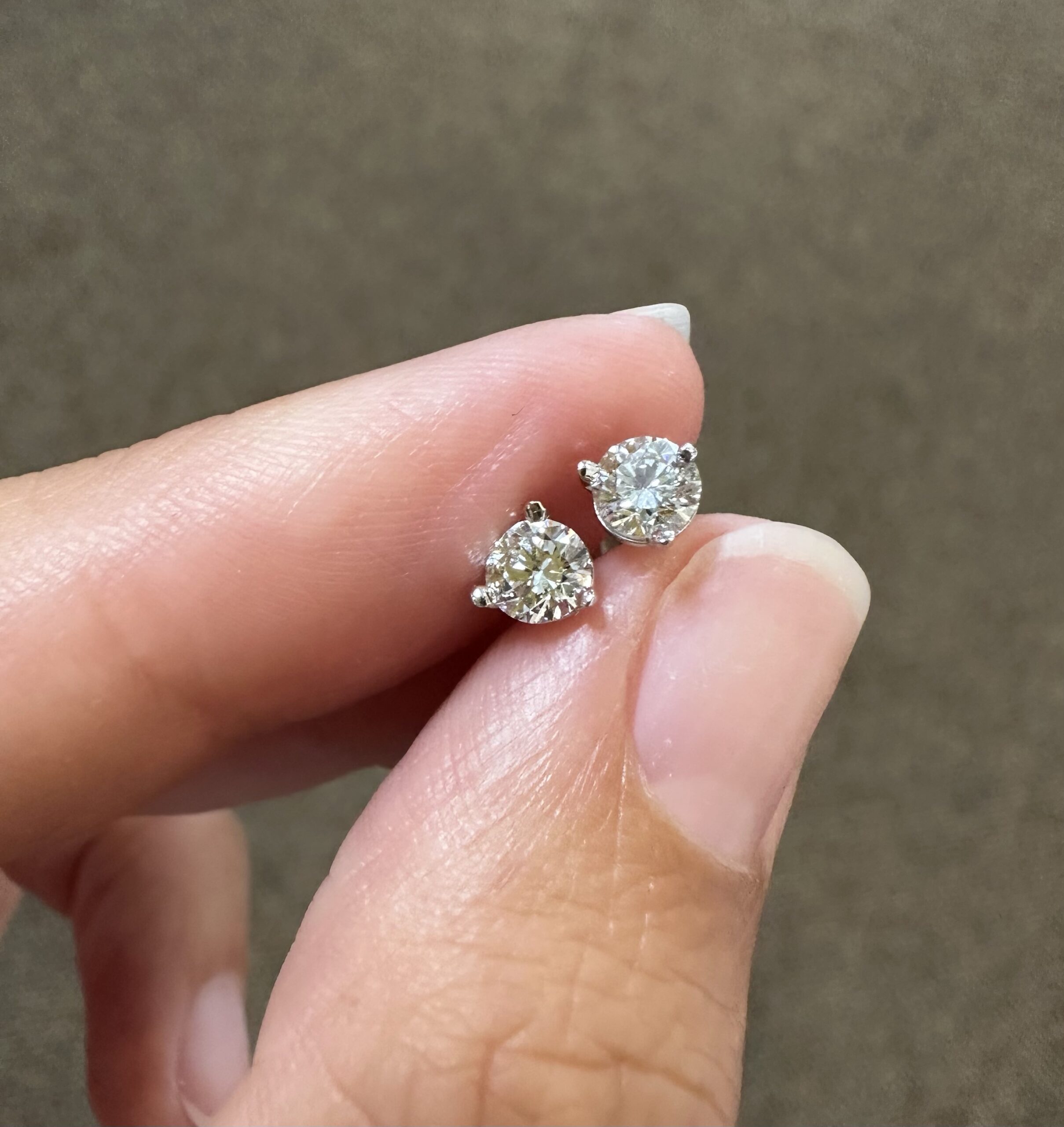 14k white gold genuine 1/2 cttw Lab Grown around Brilliant Cut diamond 3 prong martini style stud earrings with F color, VS2 clarity. These earrings have an entire weight of 0.6 grams.