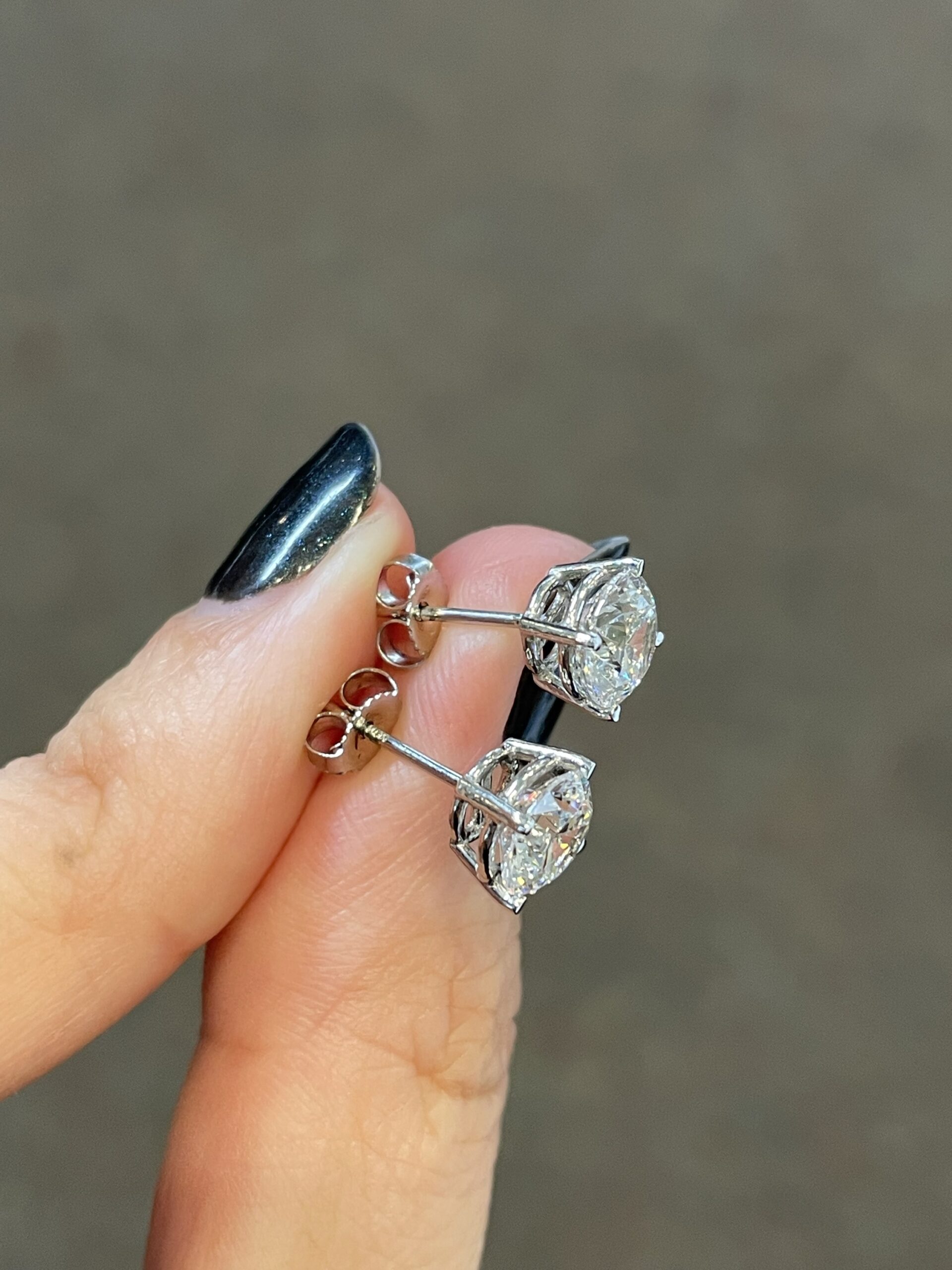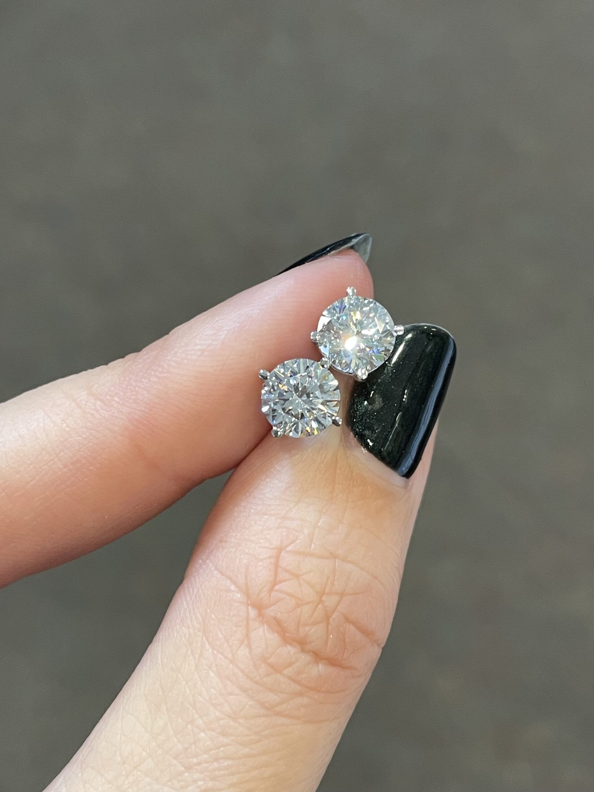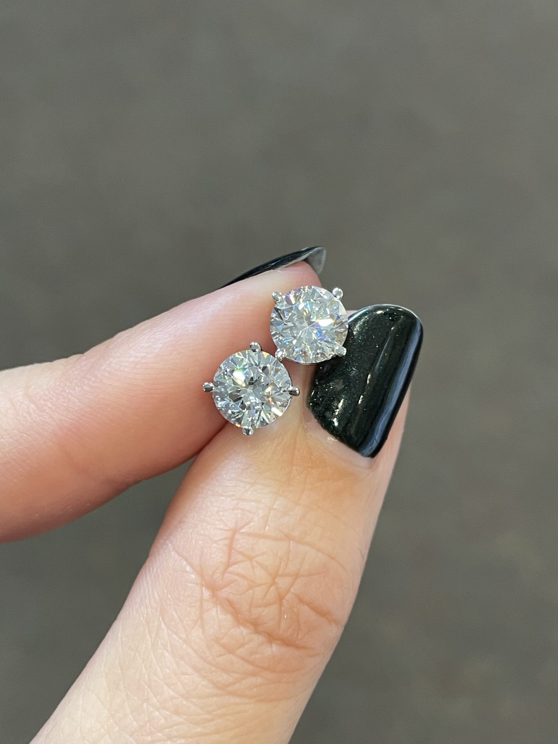 14k white (or 14k yellow gold) 2.00 carat CZ (Cubic Zirconia) four prong basket set stud earrings.
