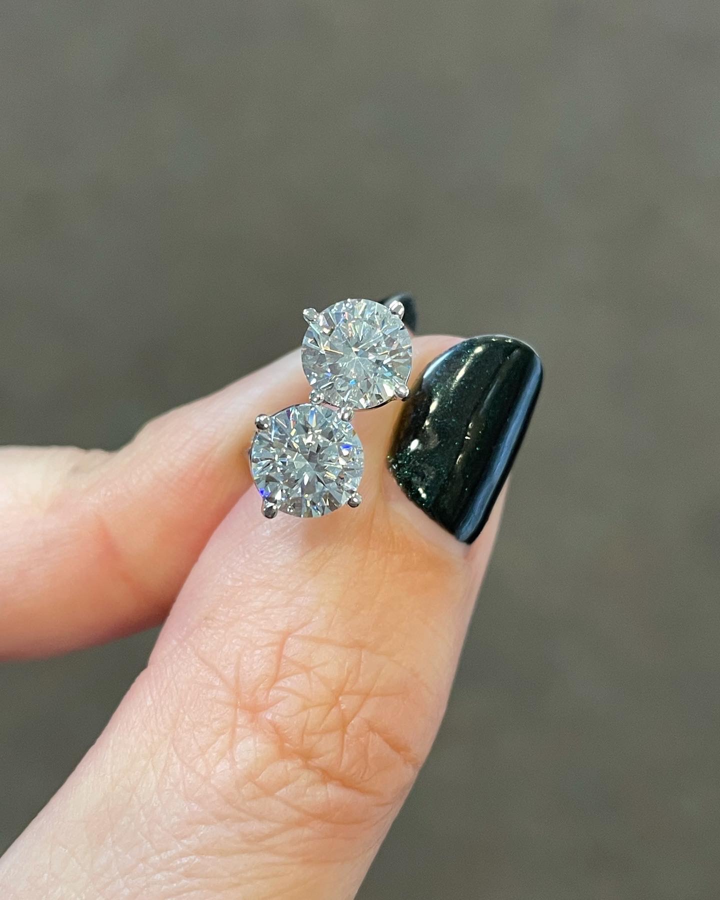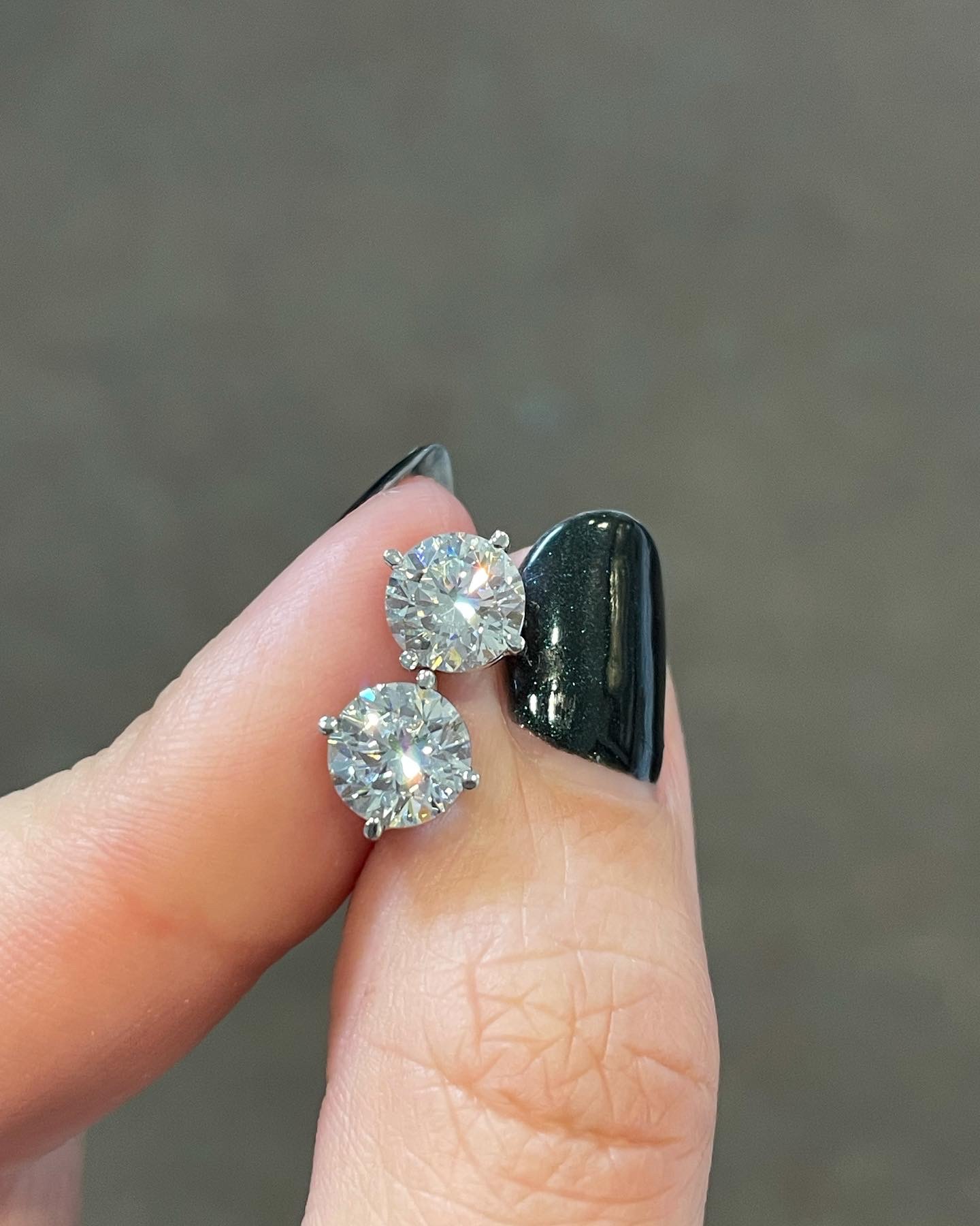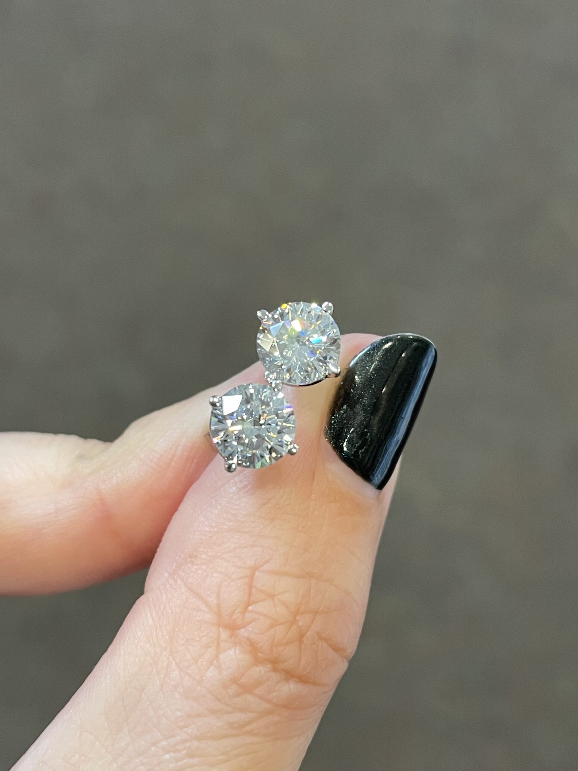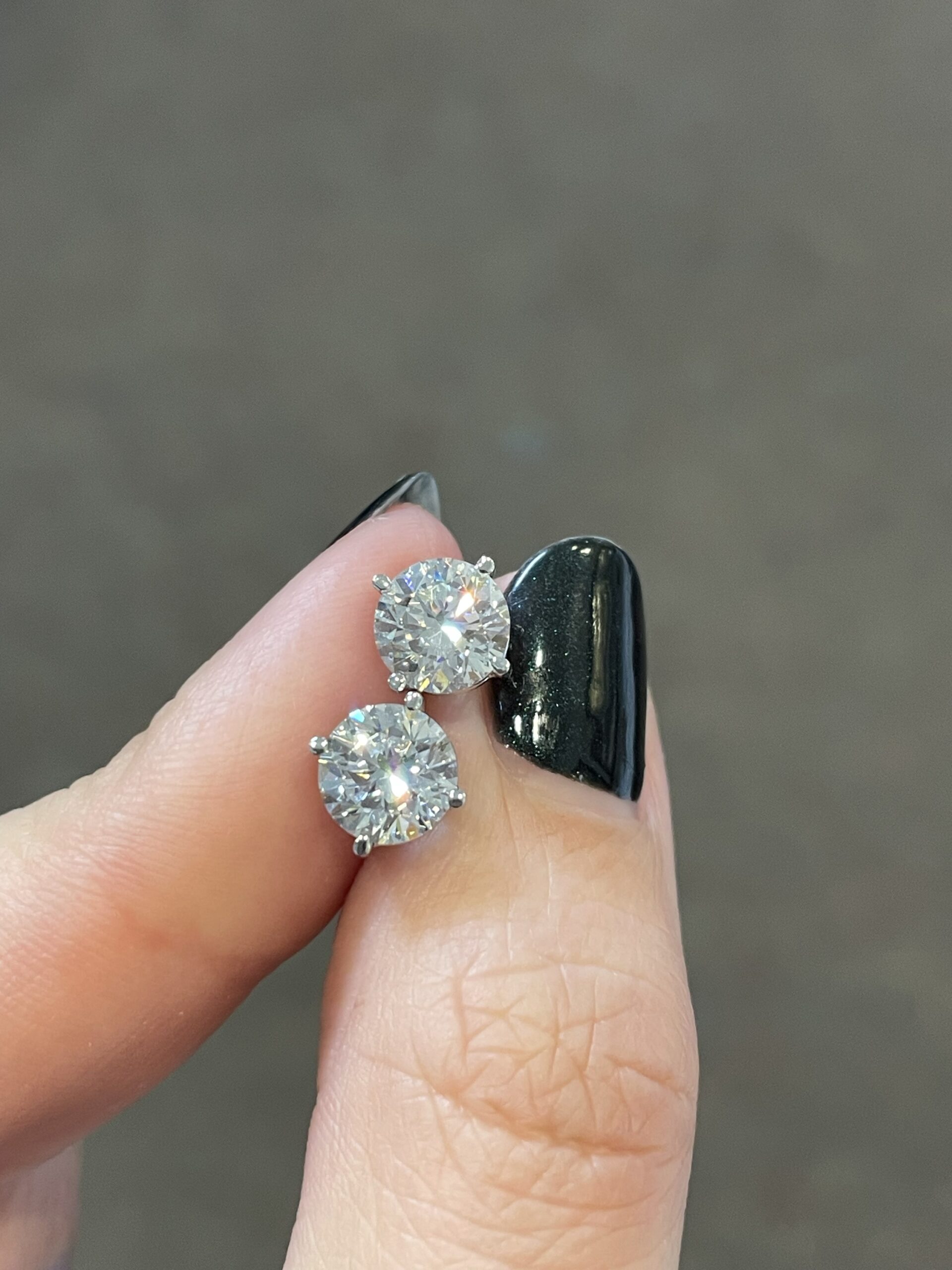 14k white (or 14k yellow gold) 2.00 carat CZ (Cubic Zirconia) four prong basket set stud earrings.