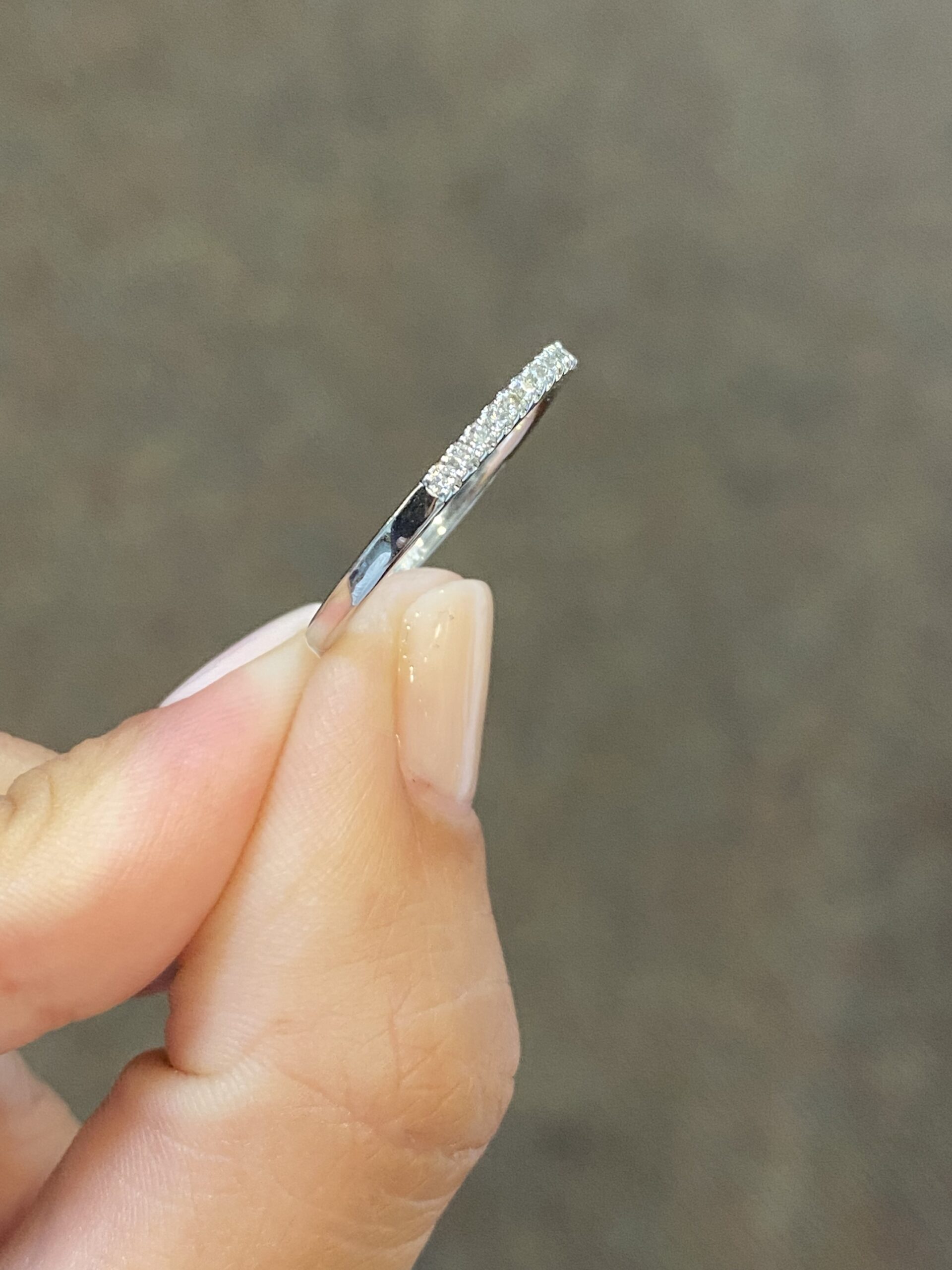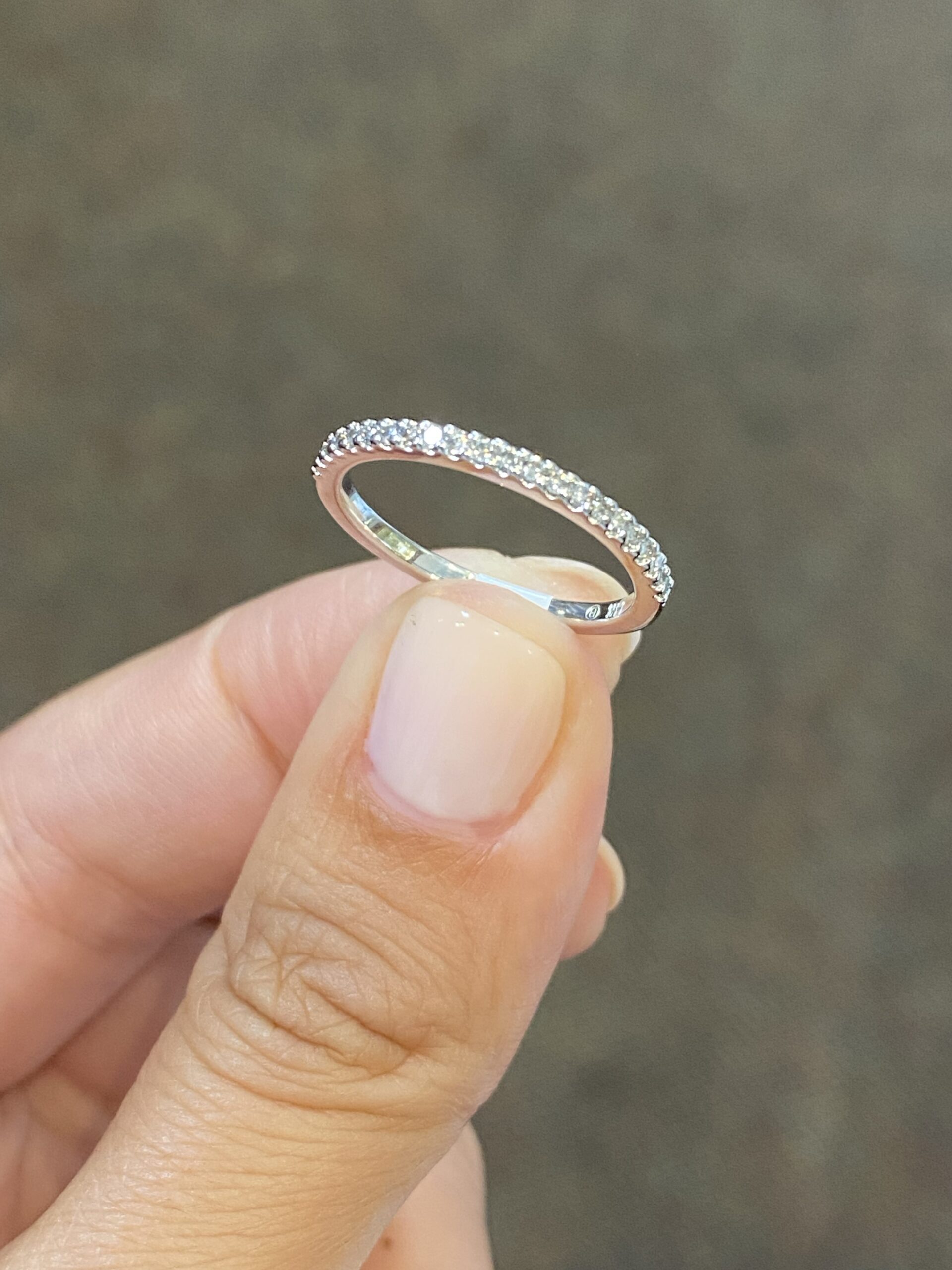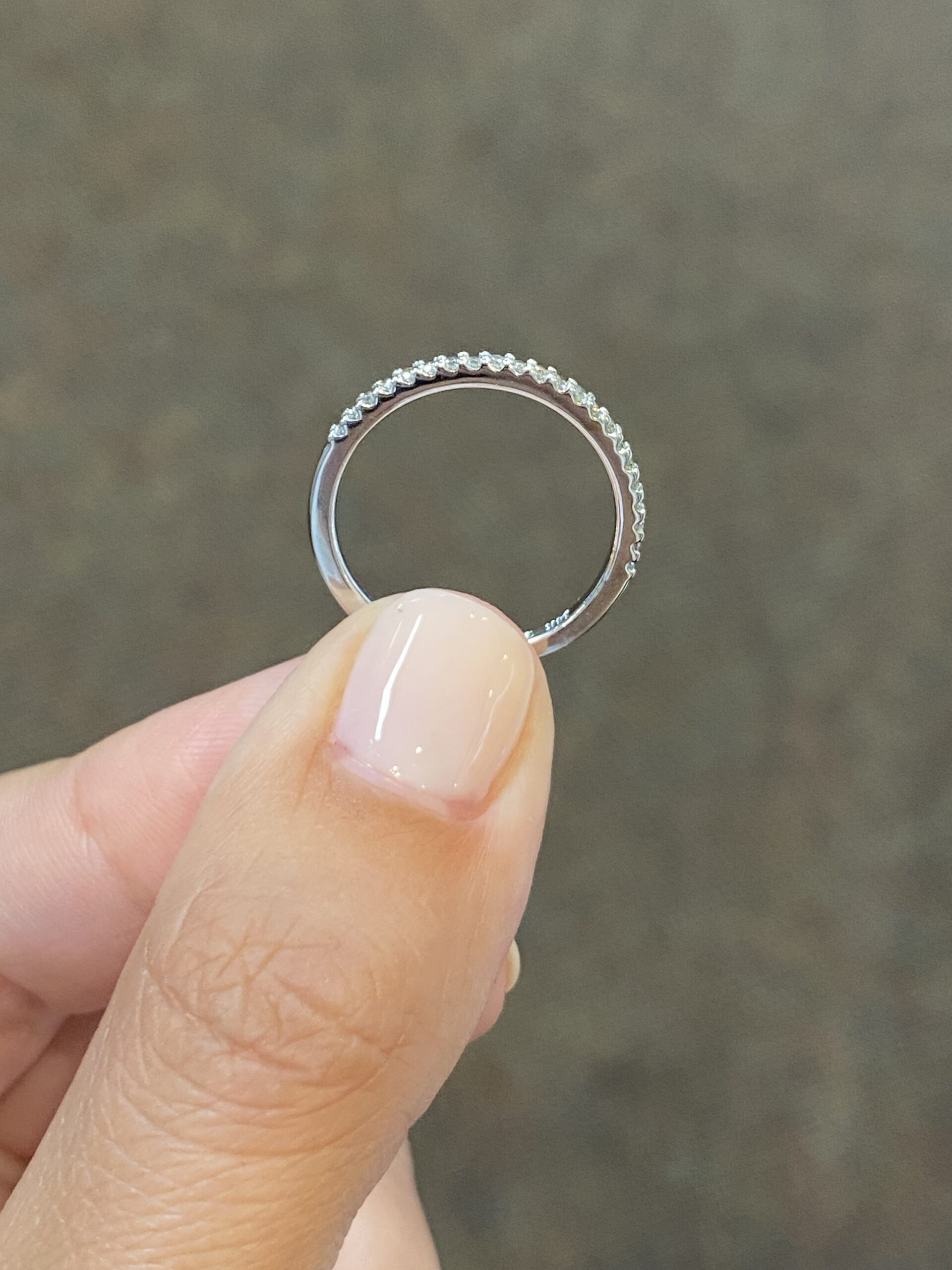 14k white gold 22 stone genuine .18 cttw Round Brilliant Cut diamond shared prong wedding band. These diamonds average G-H in color, and SI in clarity. These diamonds are nicely proportioned and finished. This ring has an entire weight of 1.9 grams. This ring is a finger size 6 1/2, but it can be reasonably altered at no additional charge. If you require a specific size please make note in the comments section at checkout.