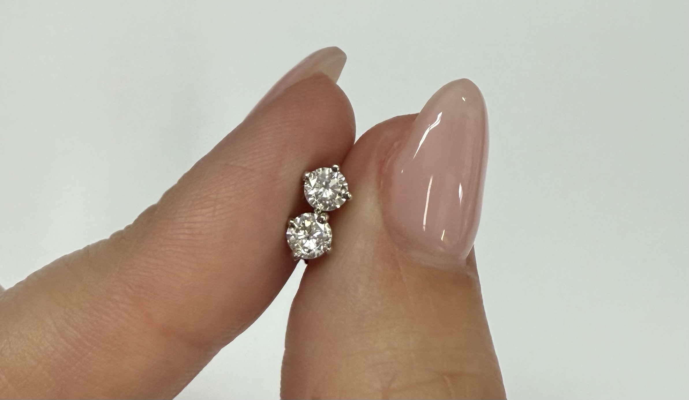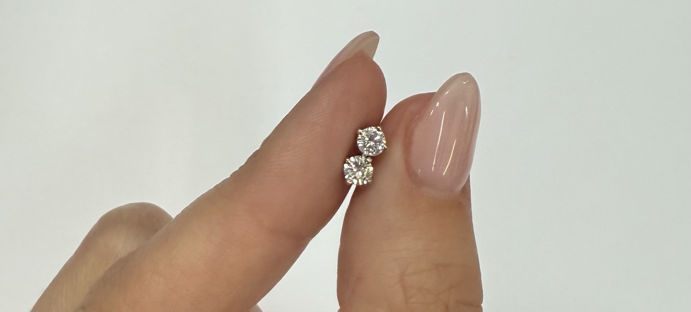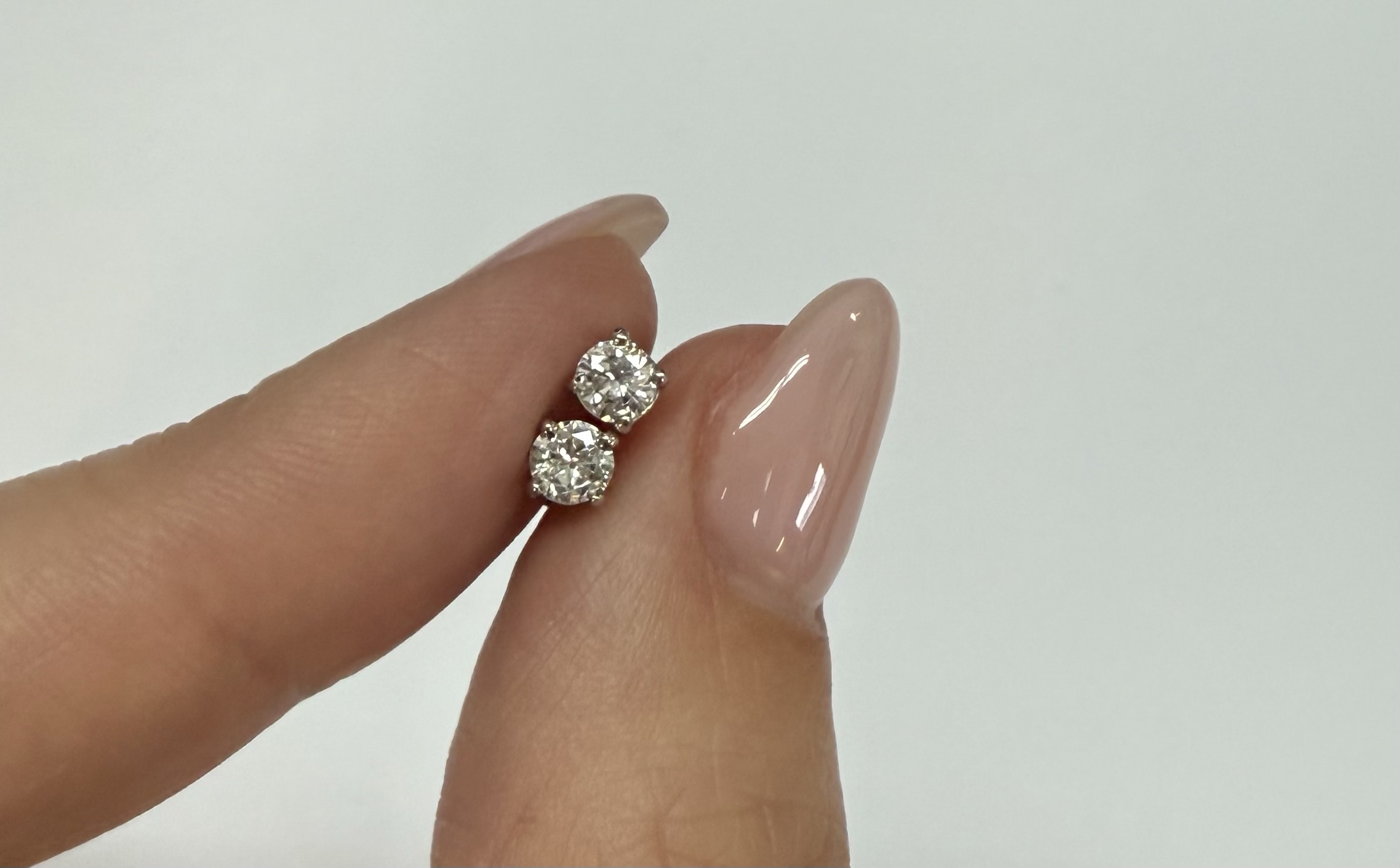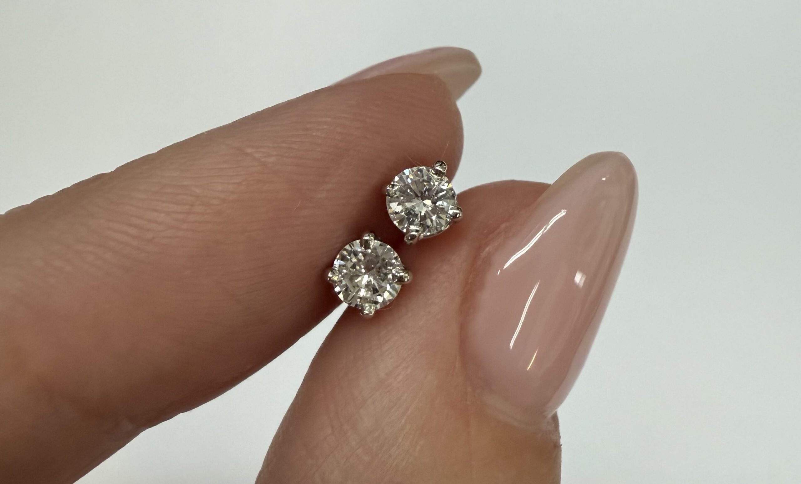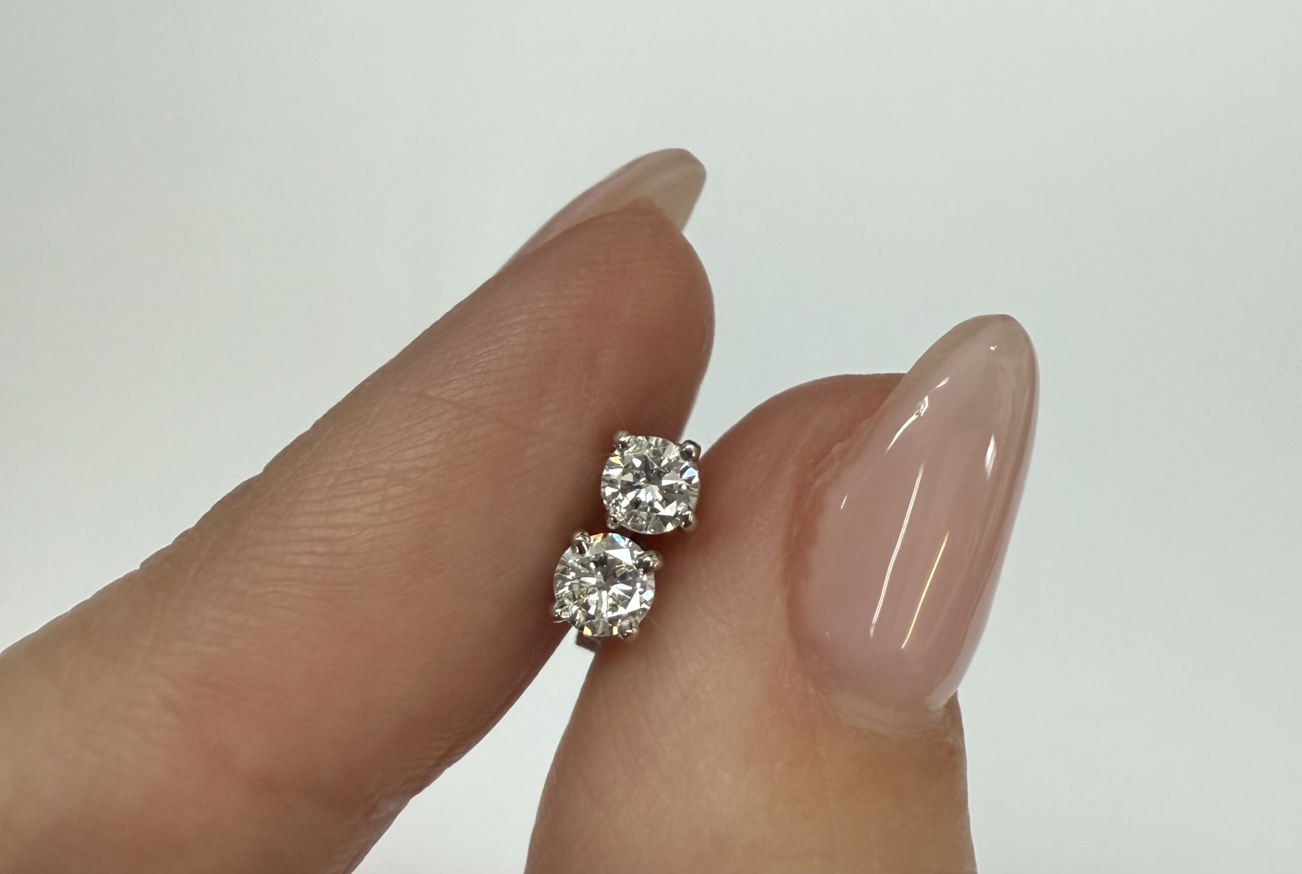14k white gold four prong basket set genuine .35 cttw Round Brilliant Cut diamond stud earrings. These diamonds have a color grade of H, and a clarity grade of SI1. These earrings have an entire weight of 0.7 grams.