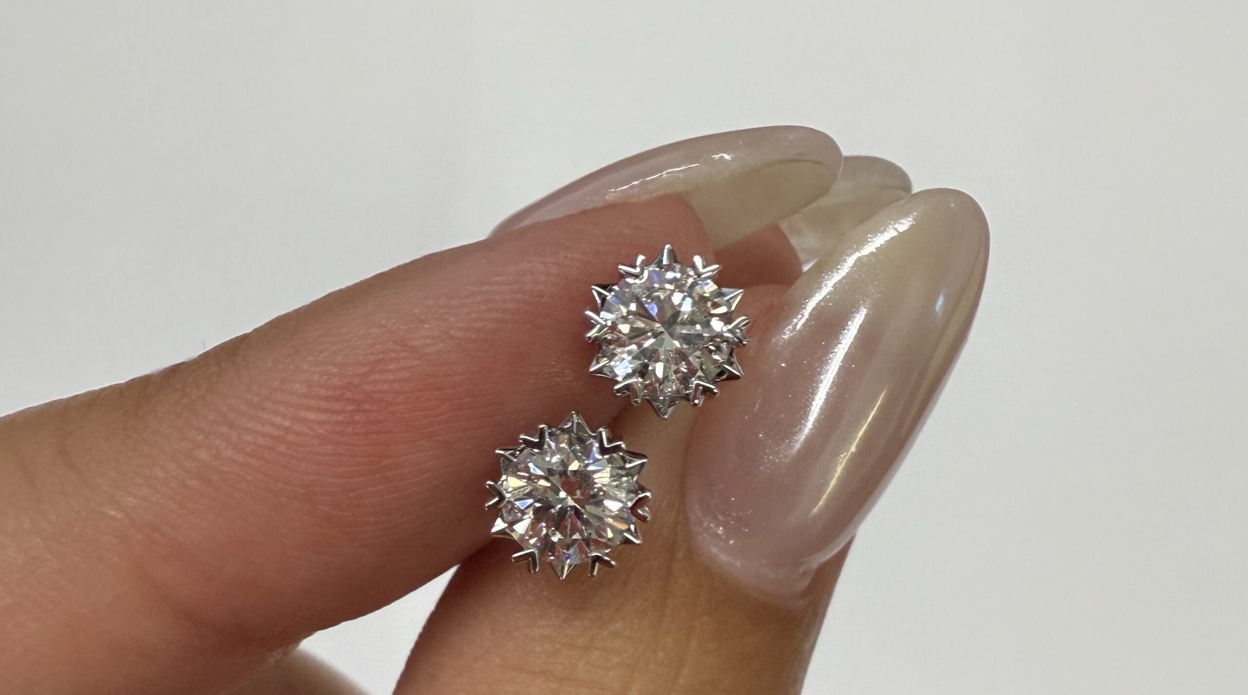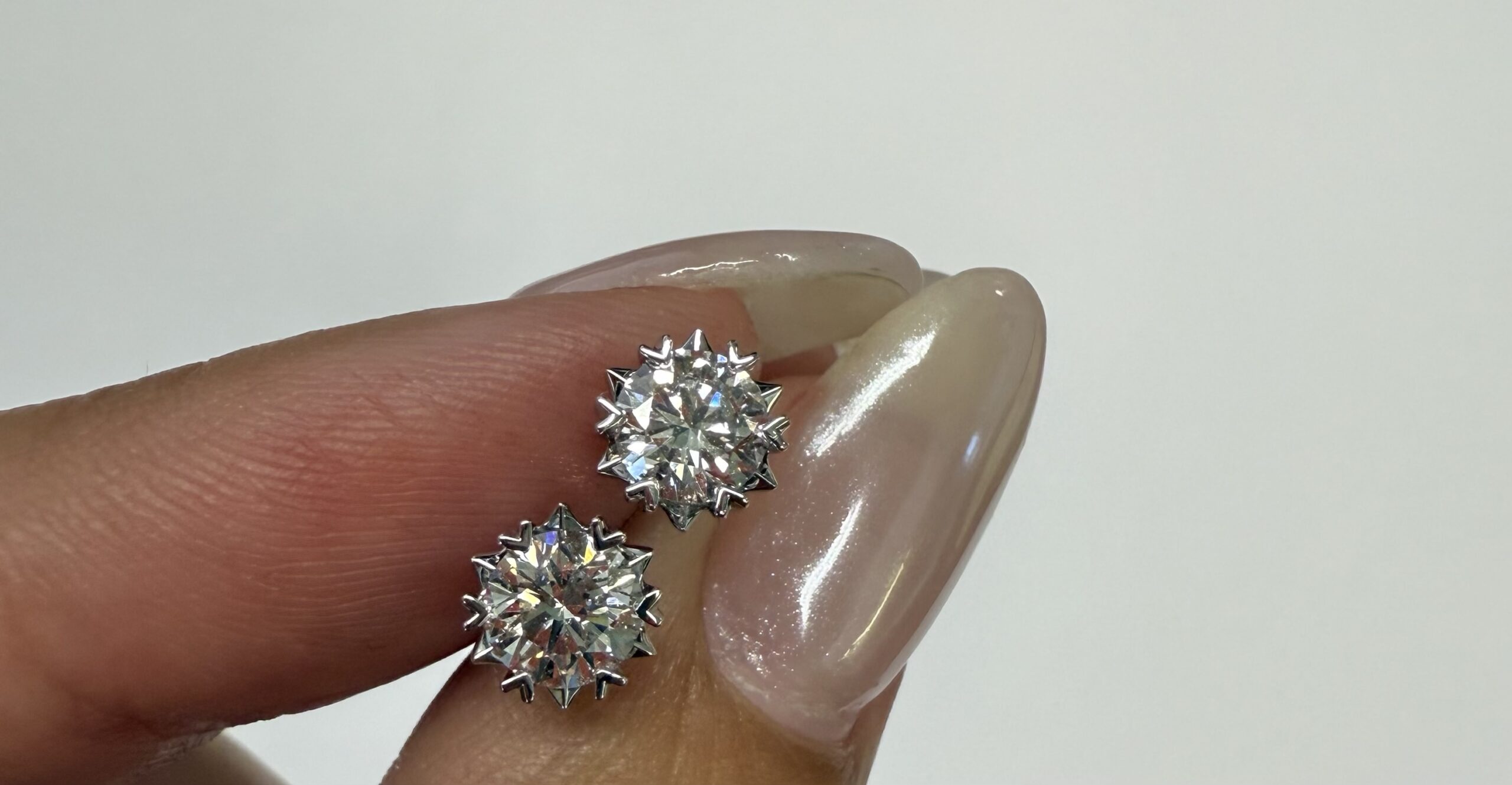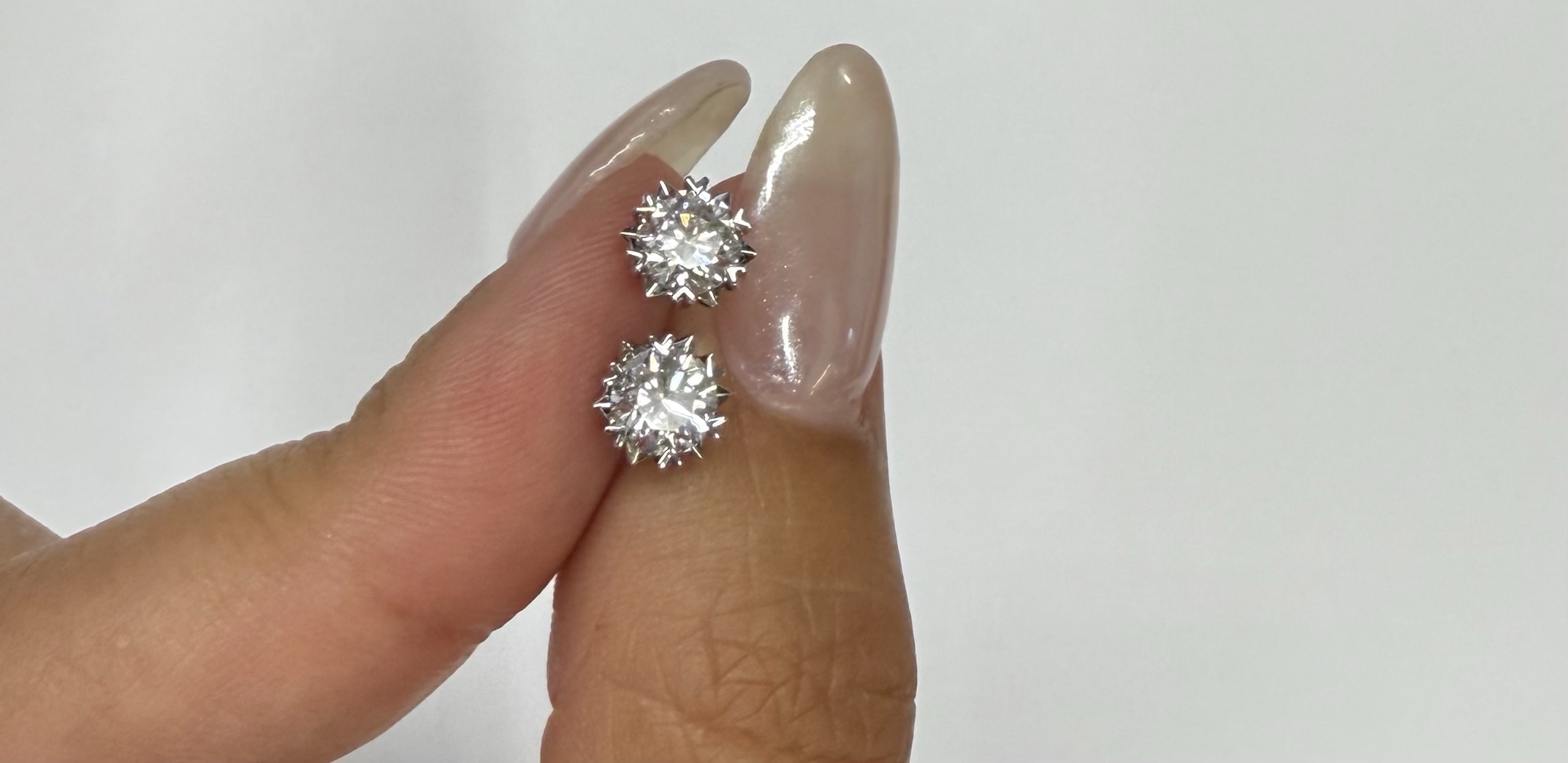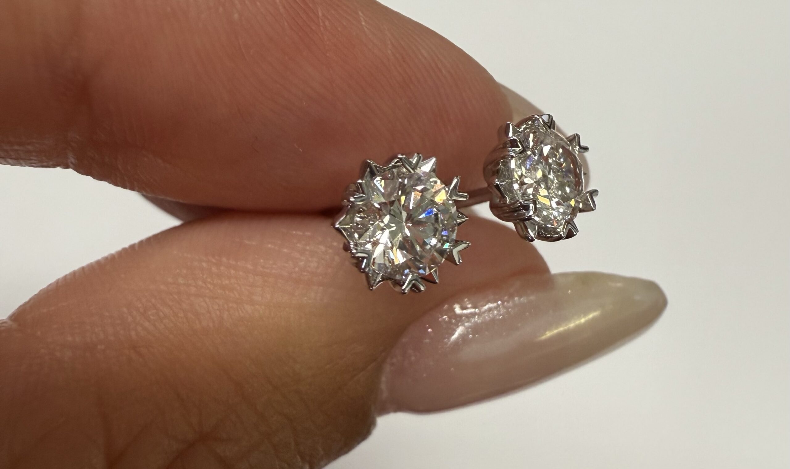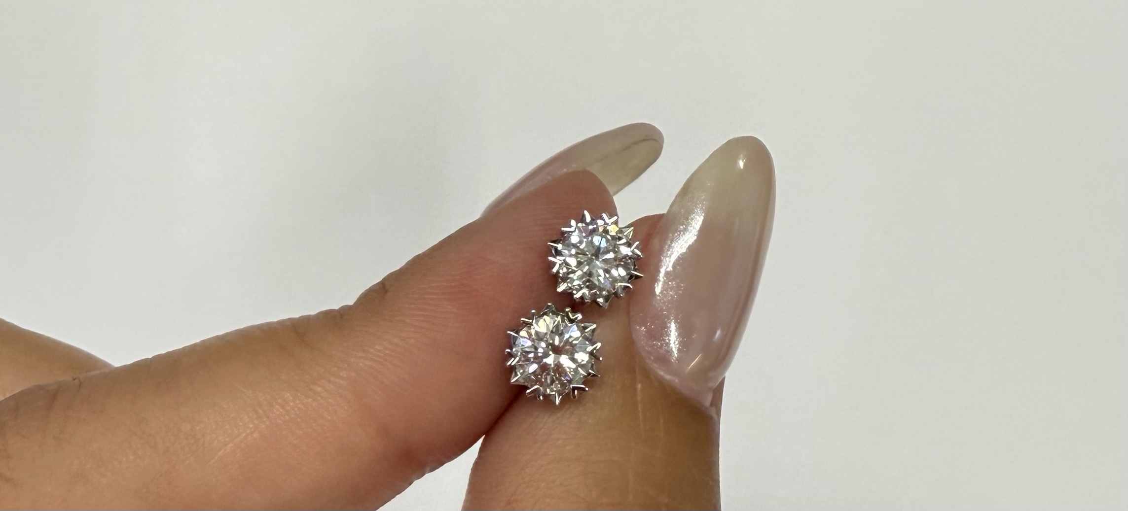 14k white gold genuine 1.03 cttw Laboratory Grown Round Brilliant Cut diamond multi-prong stud earrings. These diamonds average F in color, and VS2 in clarity. These earrings have an entire weight of grams.