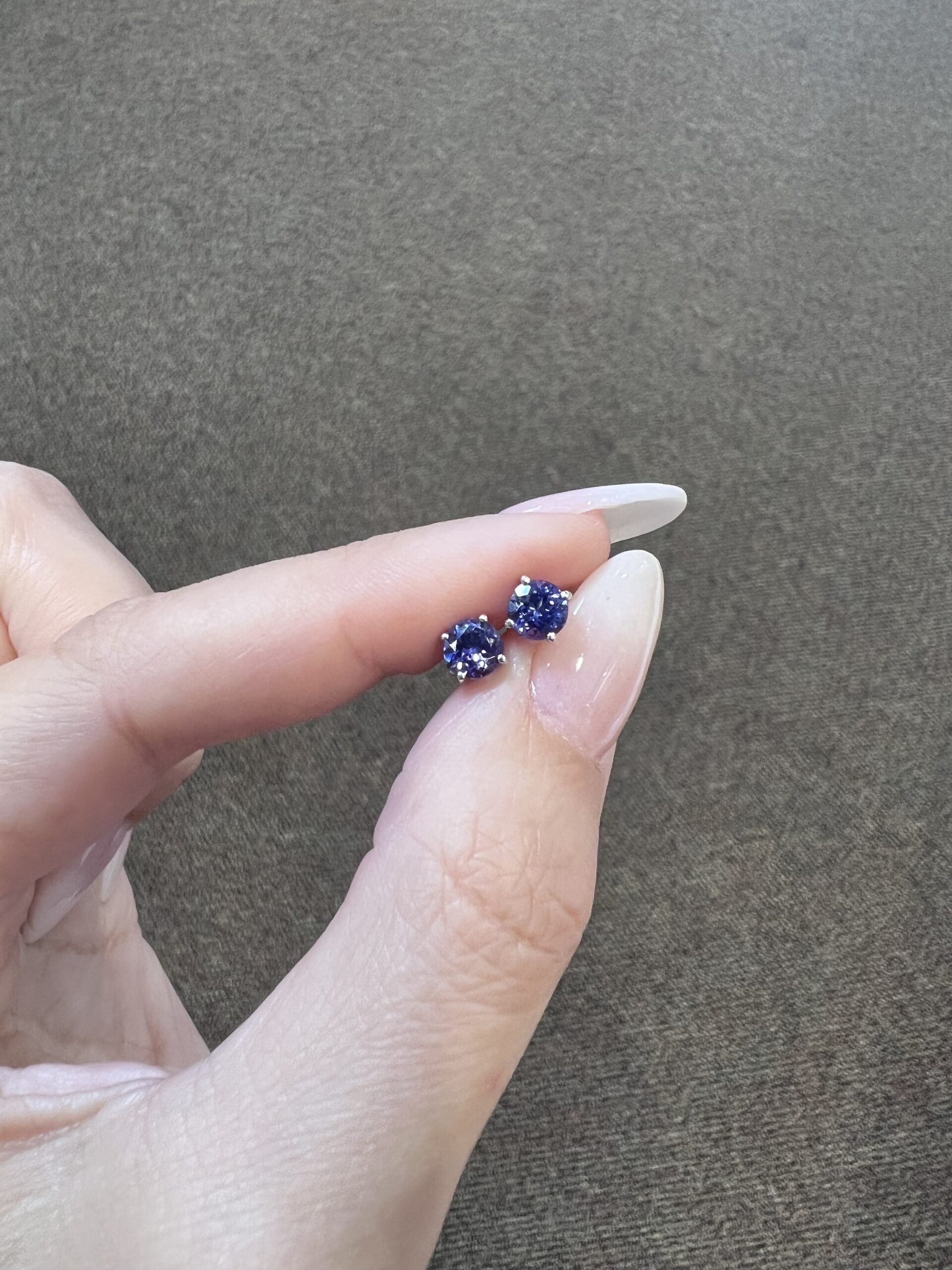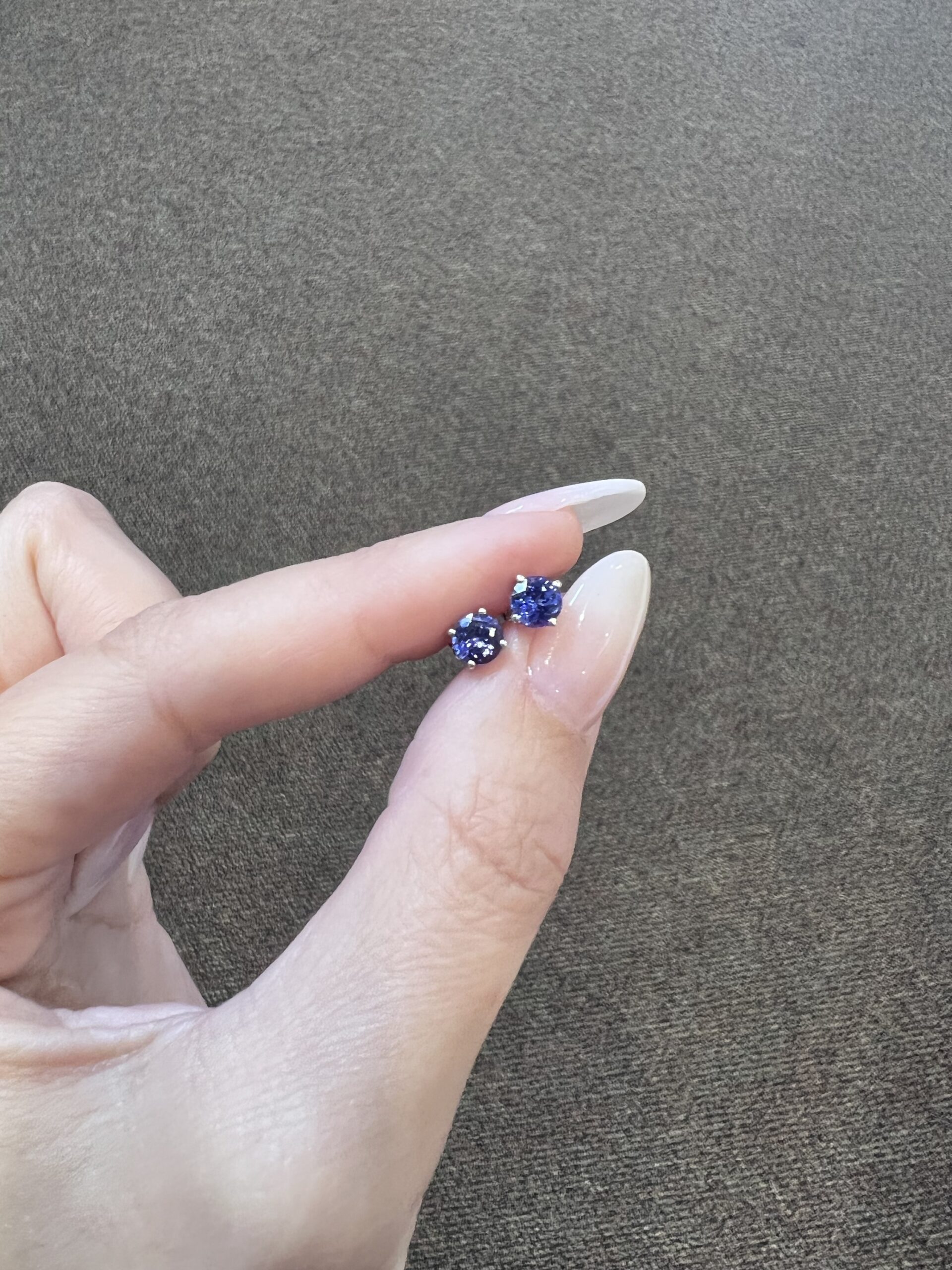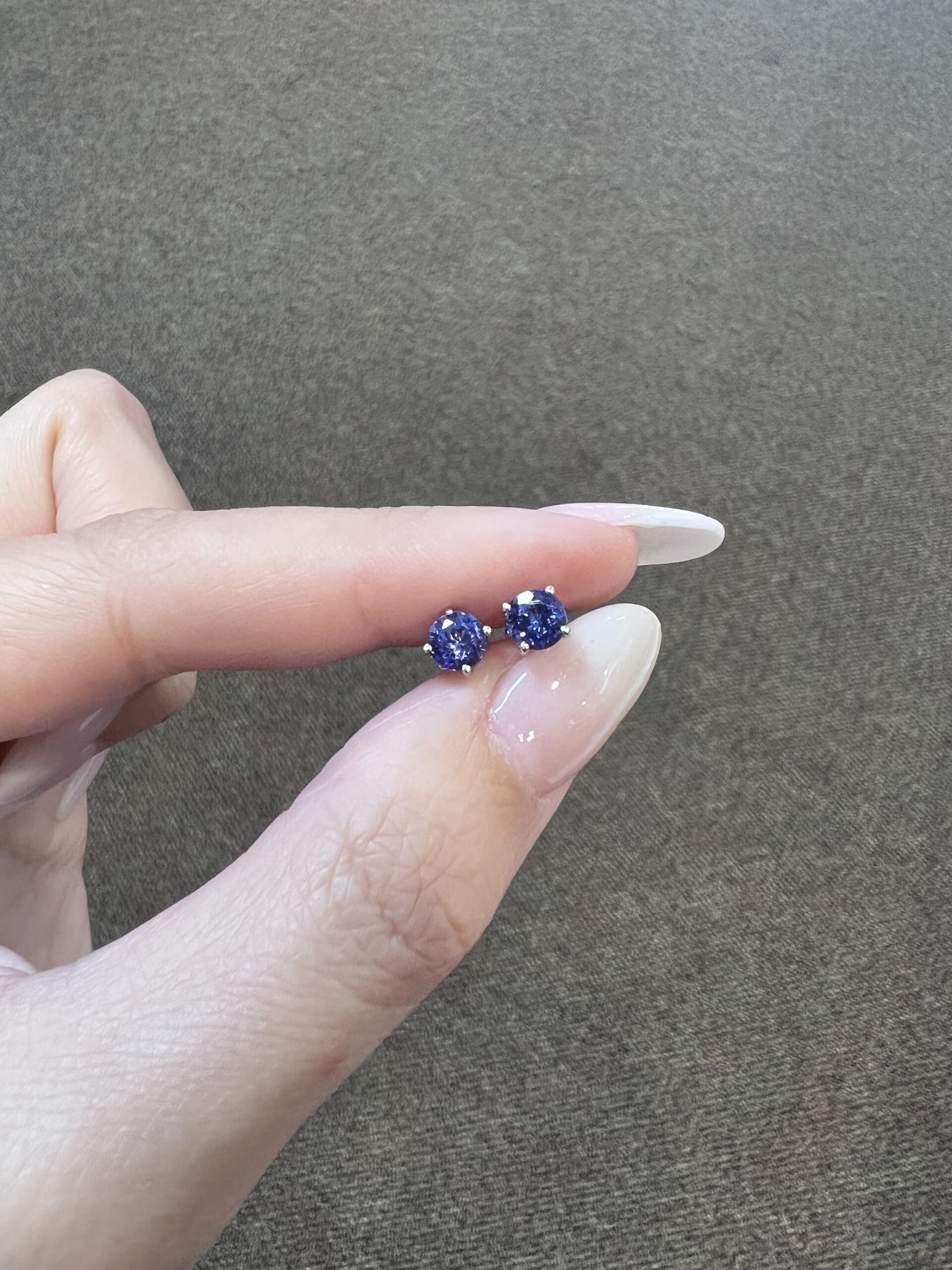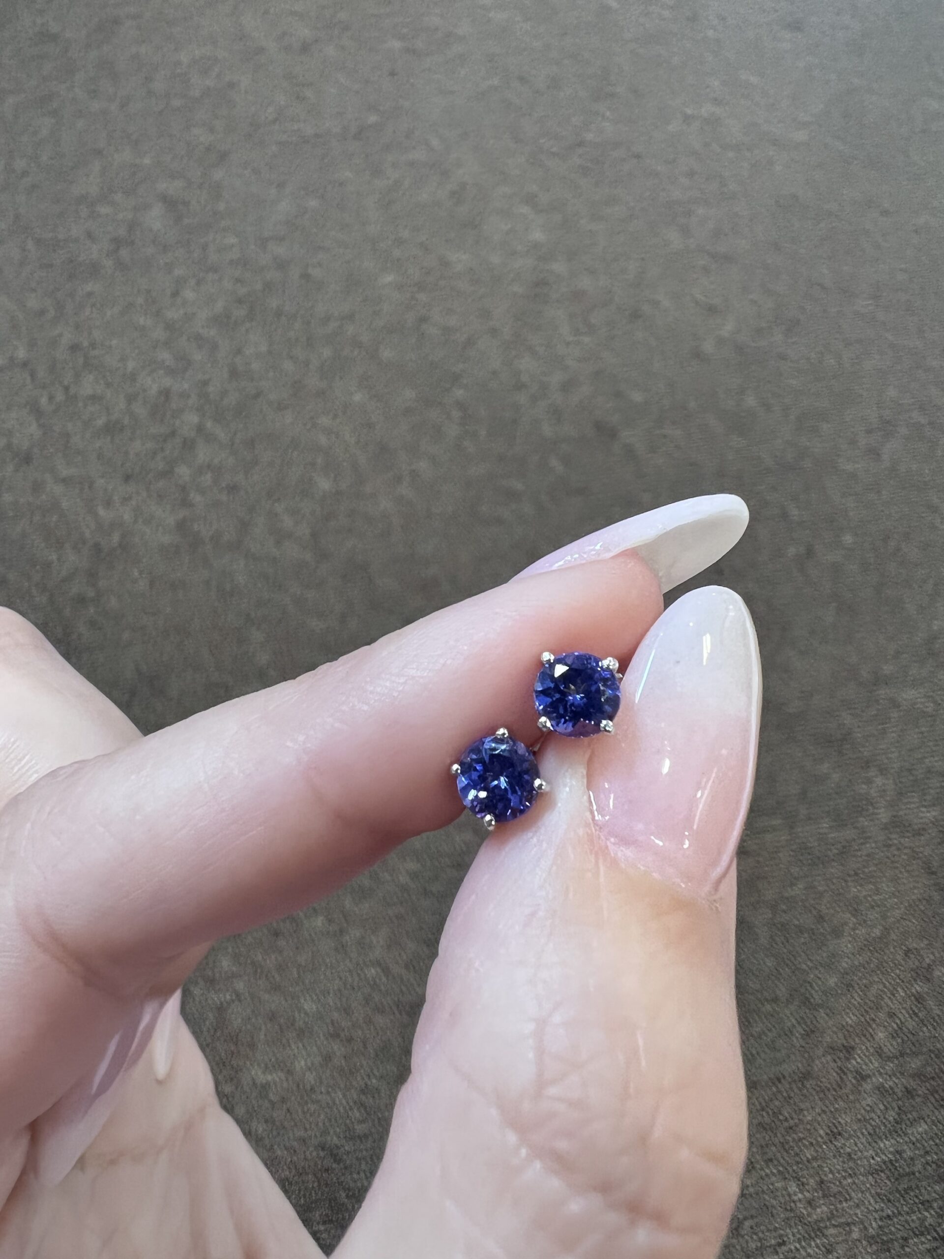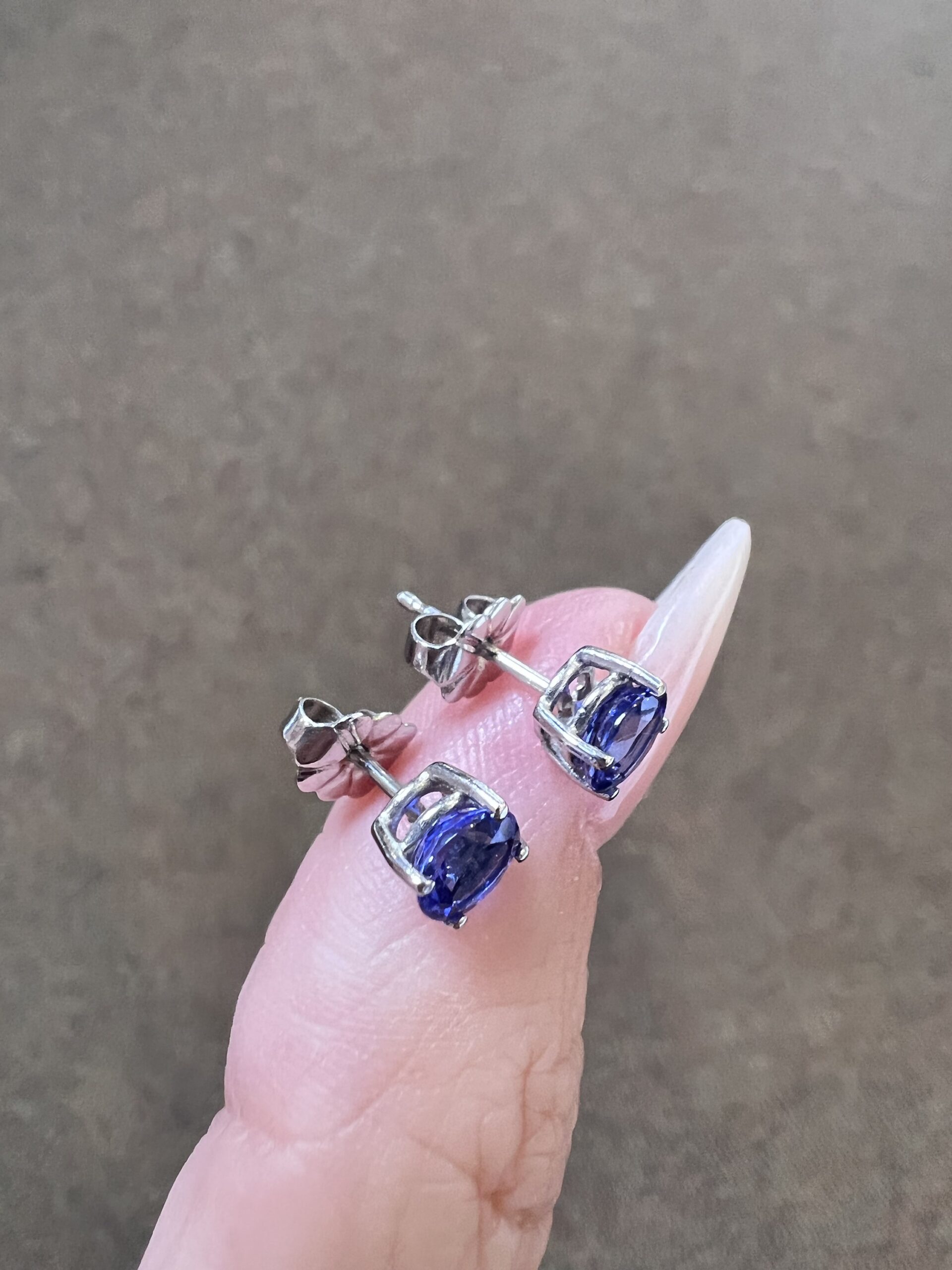 14k white gold genuine round, faceted 1.11 cttw Tanzanite basket set stud earrings. These earrings measure 5 mm in size and they have an entire weight of 1.0 grams.