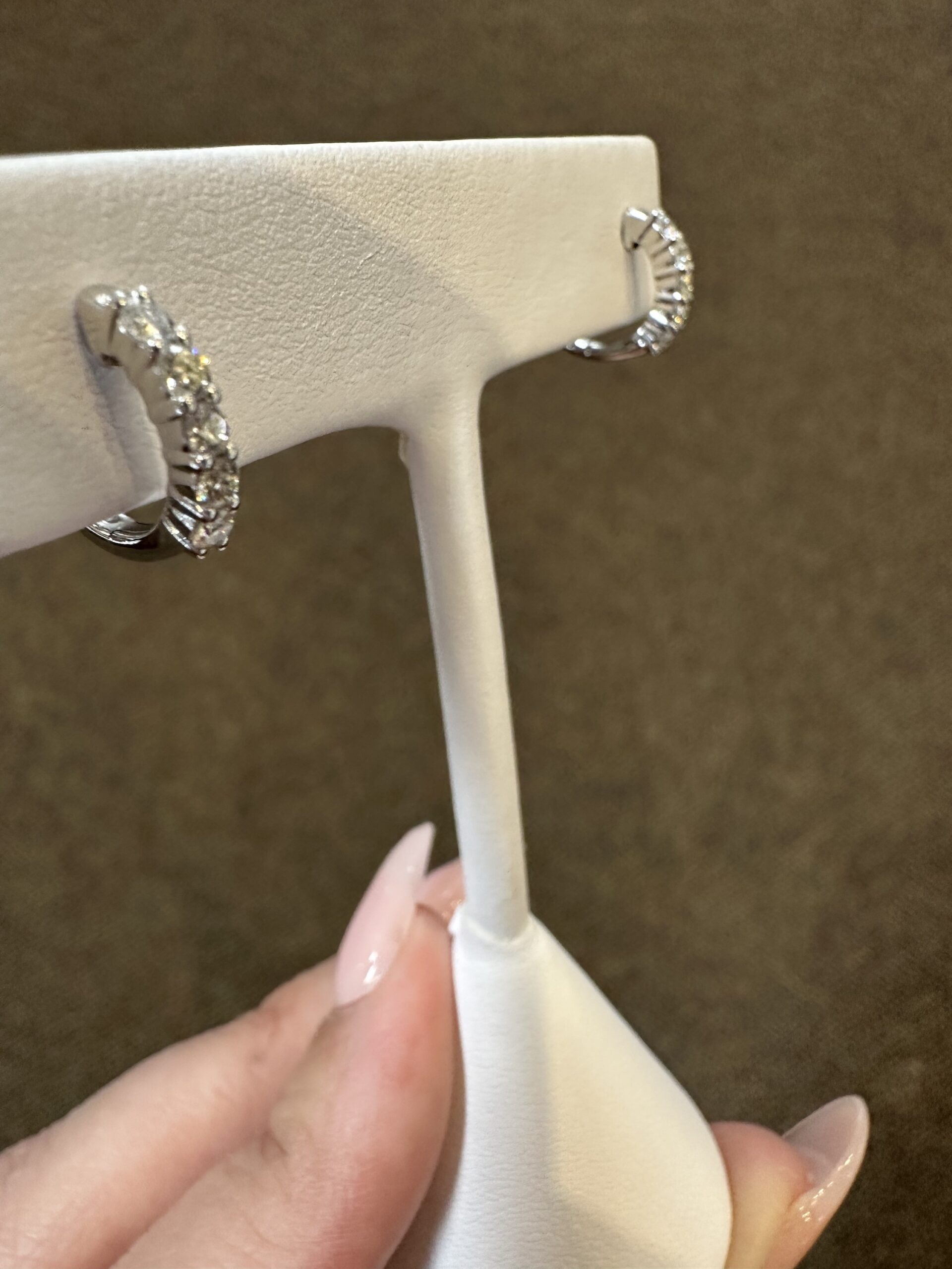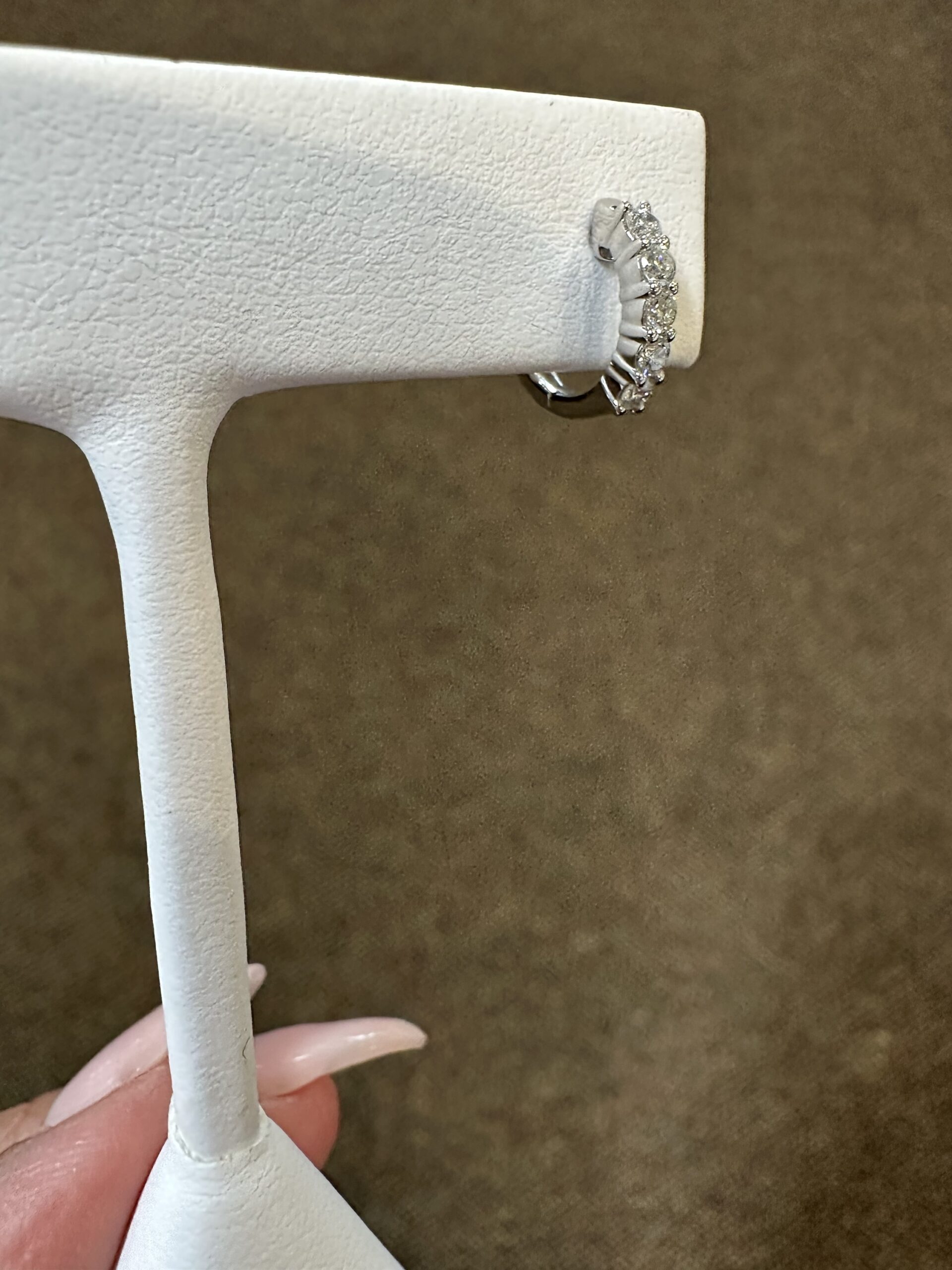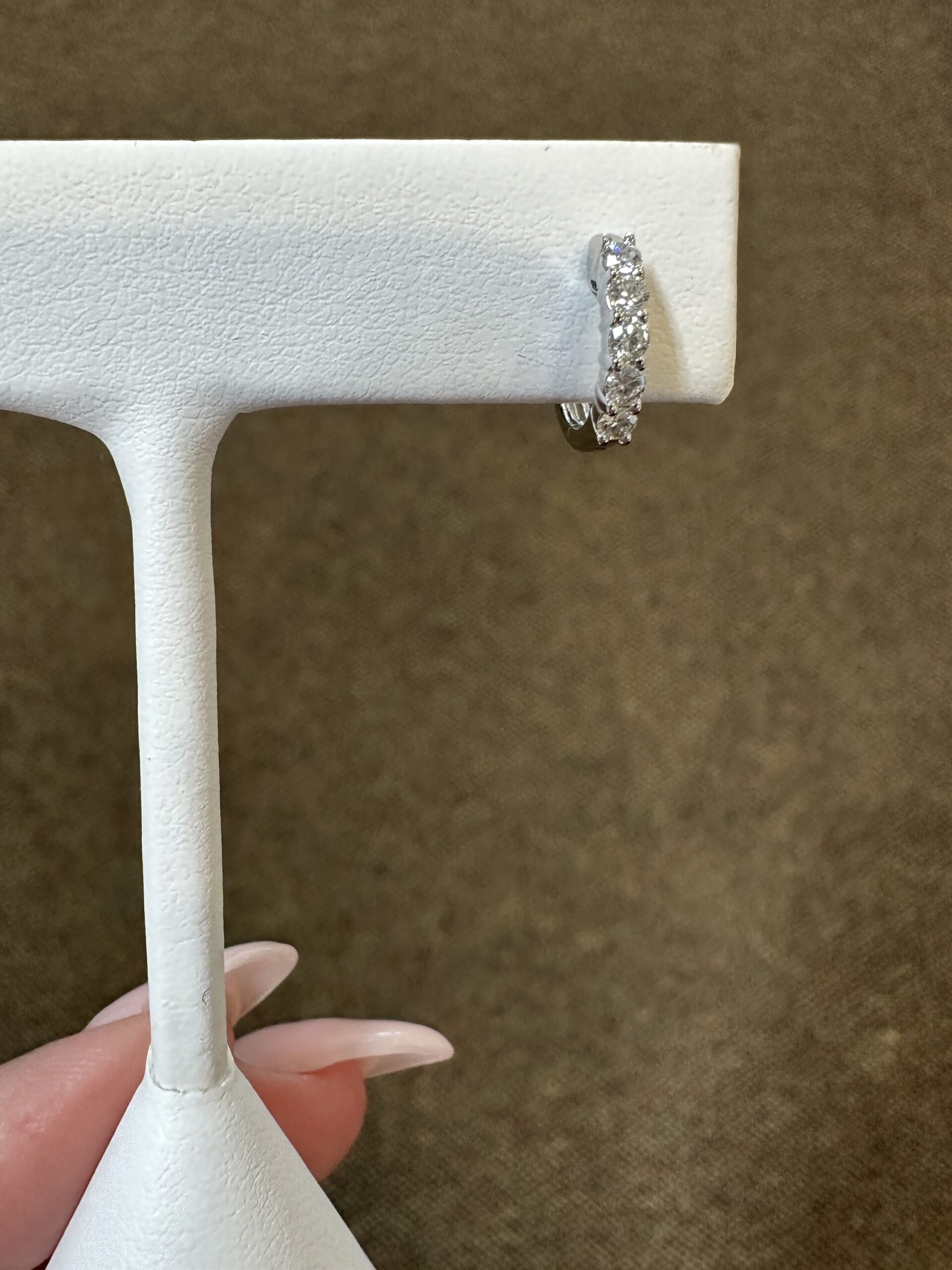 14k white gold .20 cttw genuine Round Brilliant Cut diamond 10 stone (5 each earring) prong set, round huggy hoop style earrings. These diamonds average G-H in color and SI1 in clarity. These diamonds are nicely proportioned and well finished. These earrings have an entire weight of 2.3 grams. These earrings measure 10 x 2 mm in size.