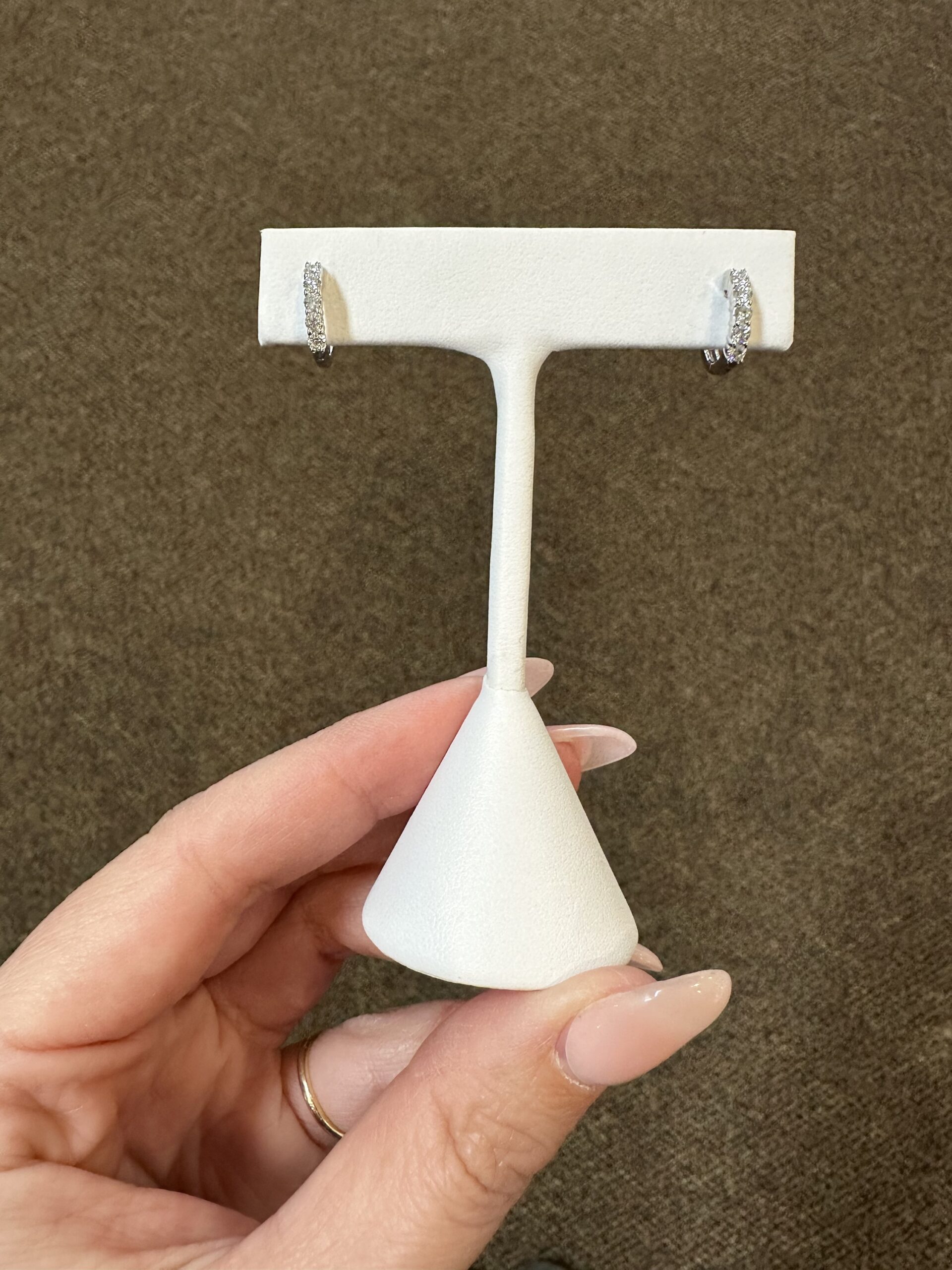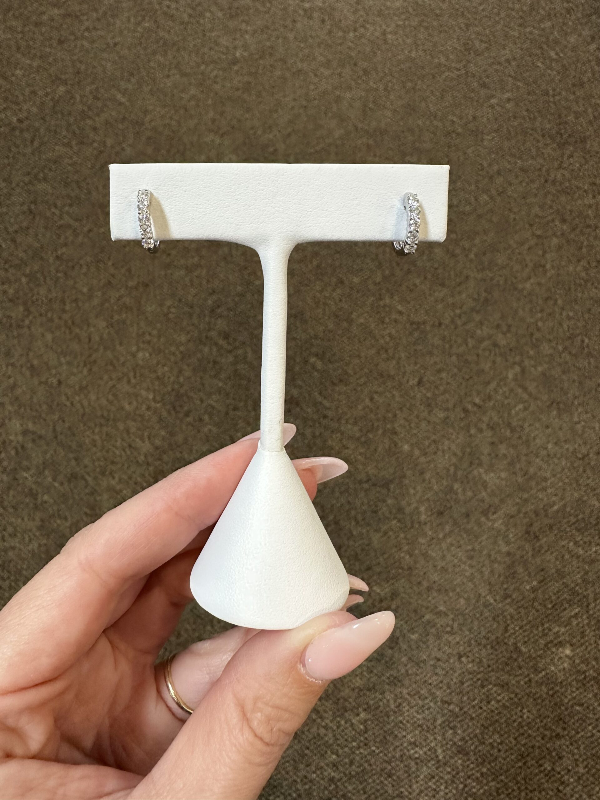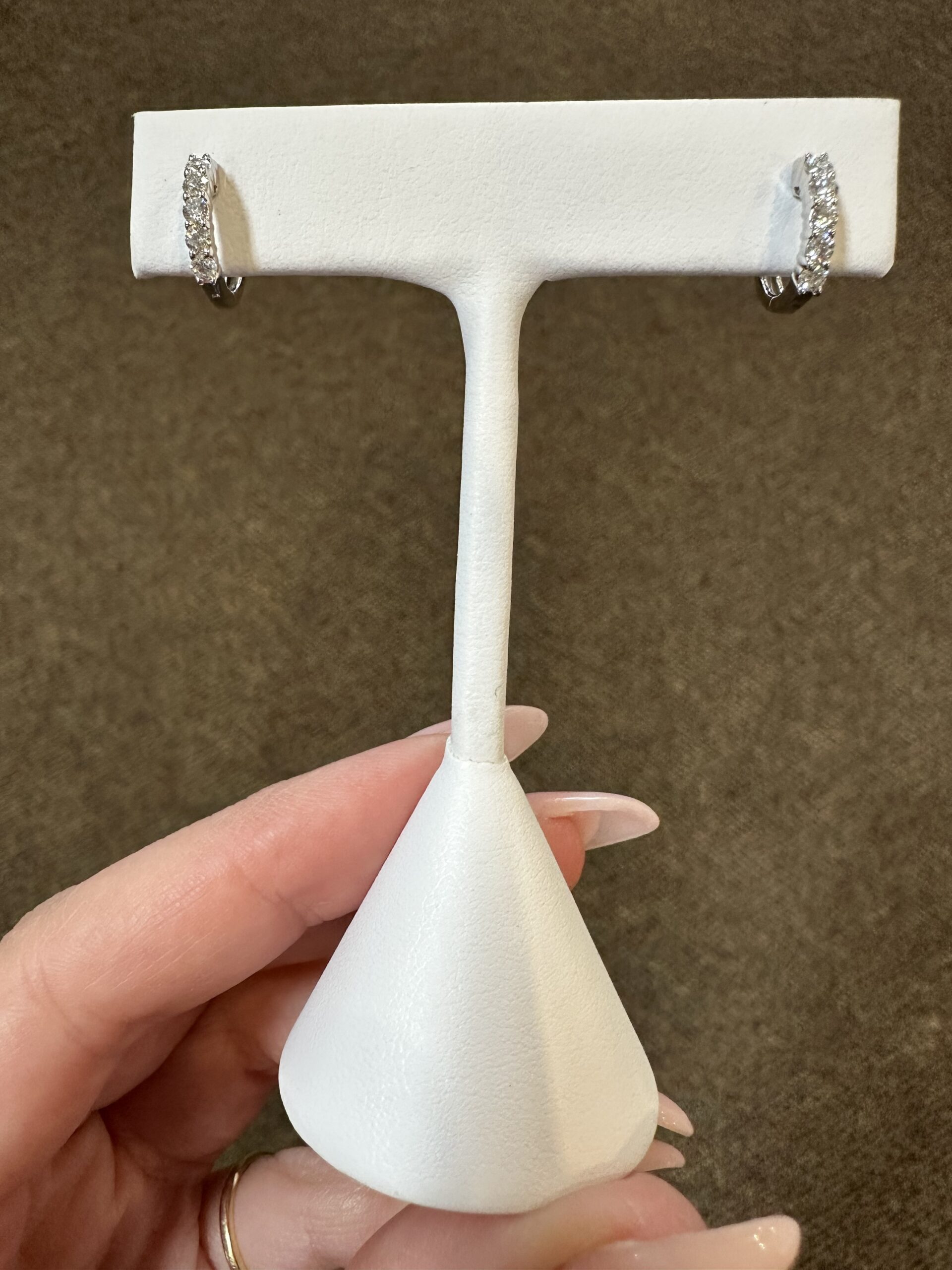 14k white gold .20 cttw genuine Round Brilliant Cut diamond 10 stone (5 each earring) prong set, round huggy hoop style earrings. These diamonds average G-H in color and SI1 in clarity. These diamonds are nicely proportioned and well finished. These earrings have an entire weight of 2.3 grams. These earrings measure 10 x 2 mm in size.