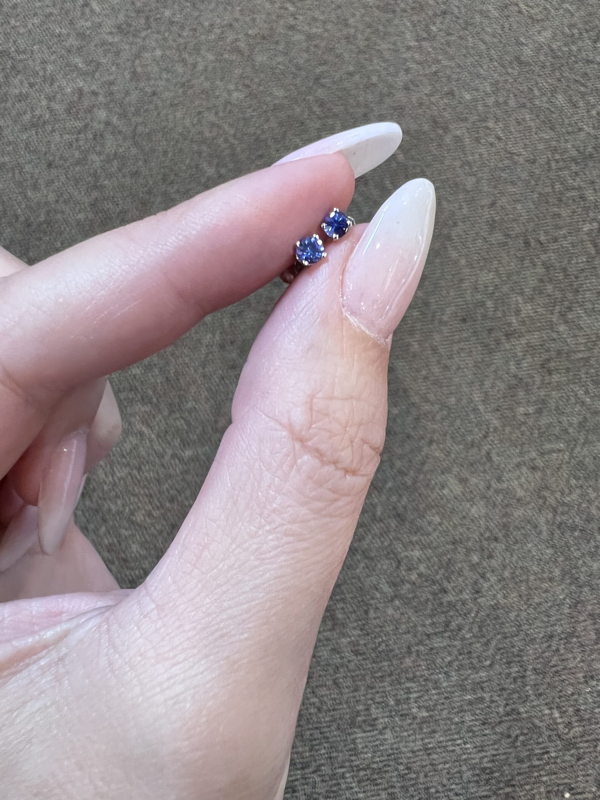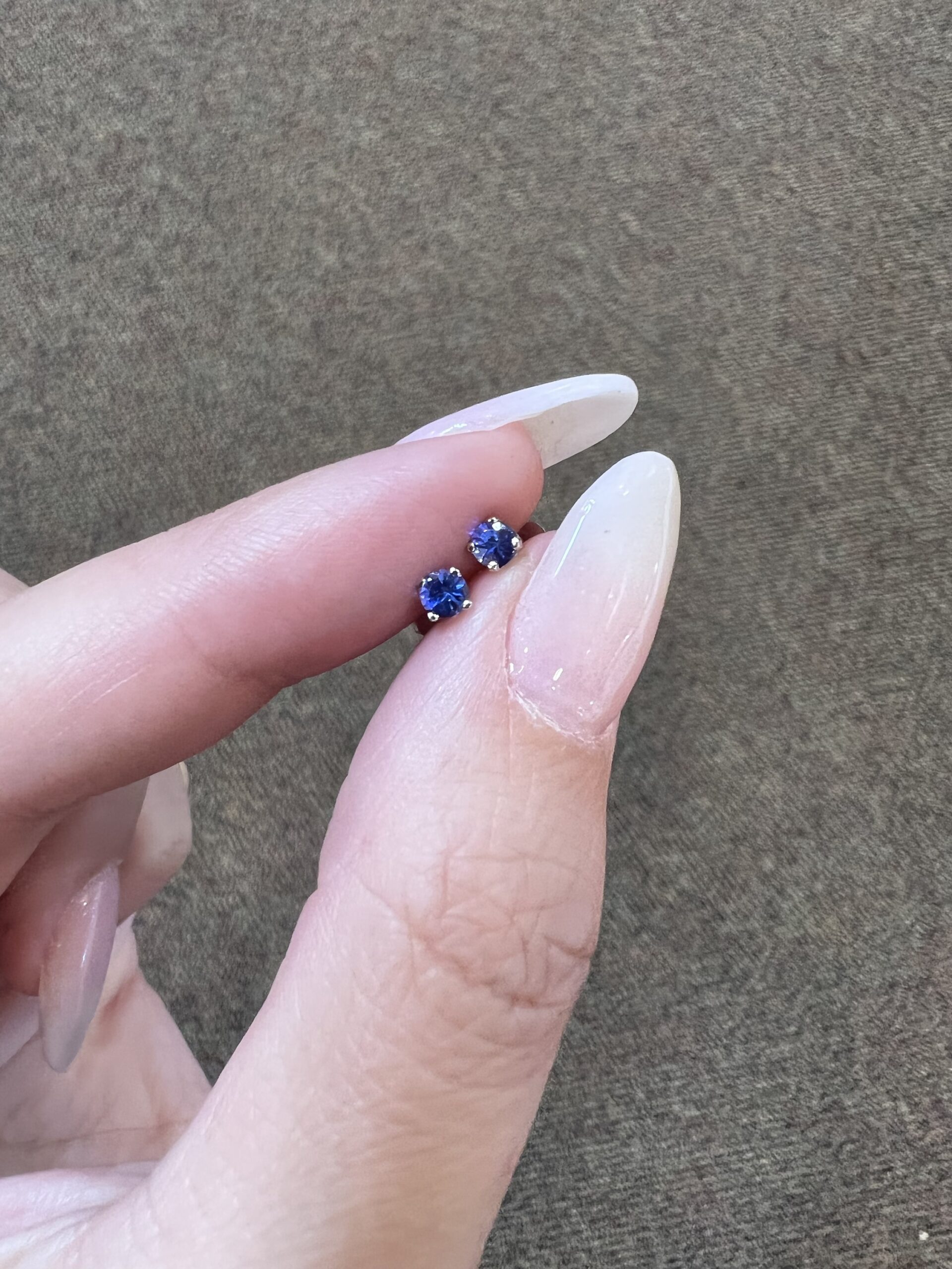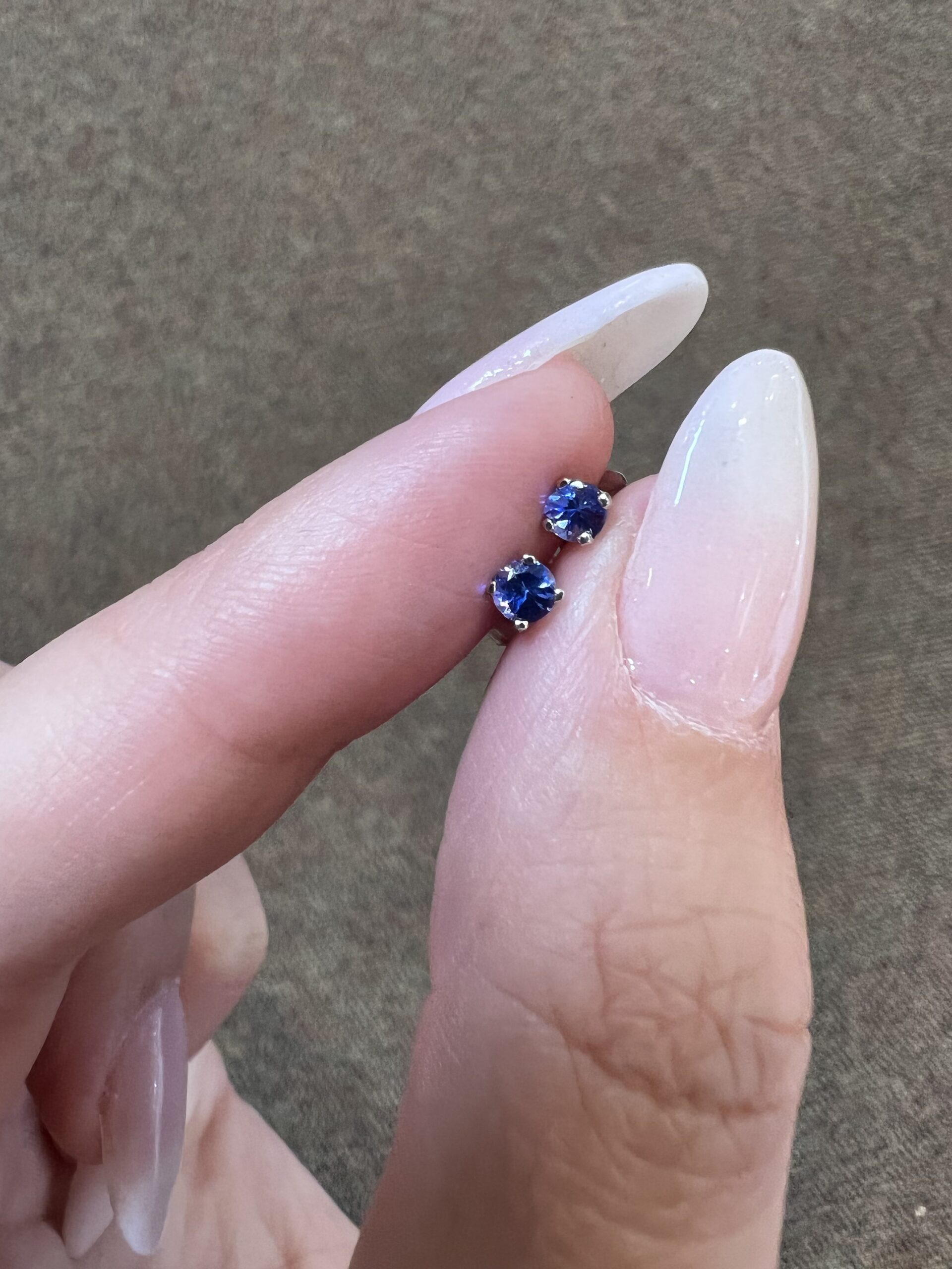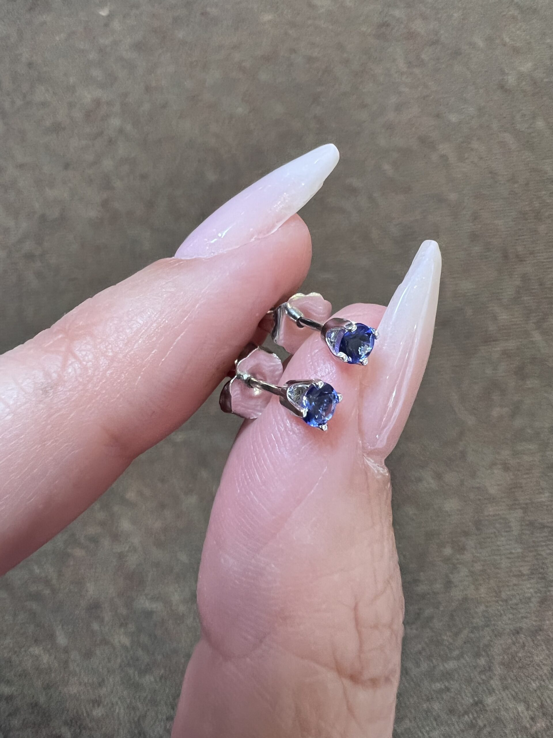 14k white gold genuine round, faceted 3 mm Tanzanite stud earrings. These earrings have an entire weight of 0.6 grams.