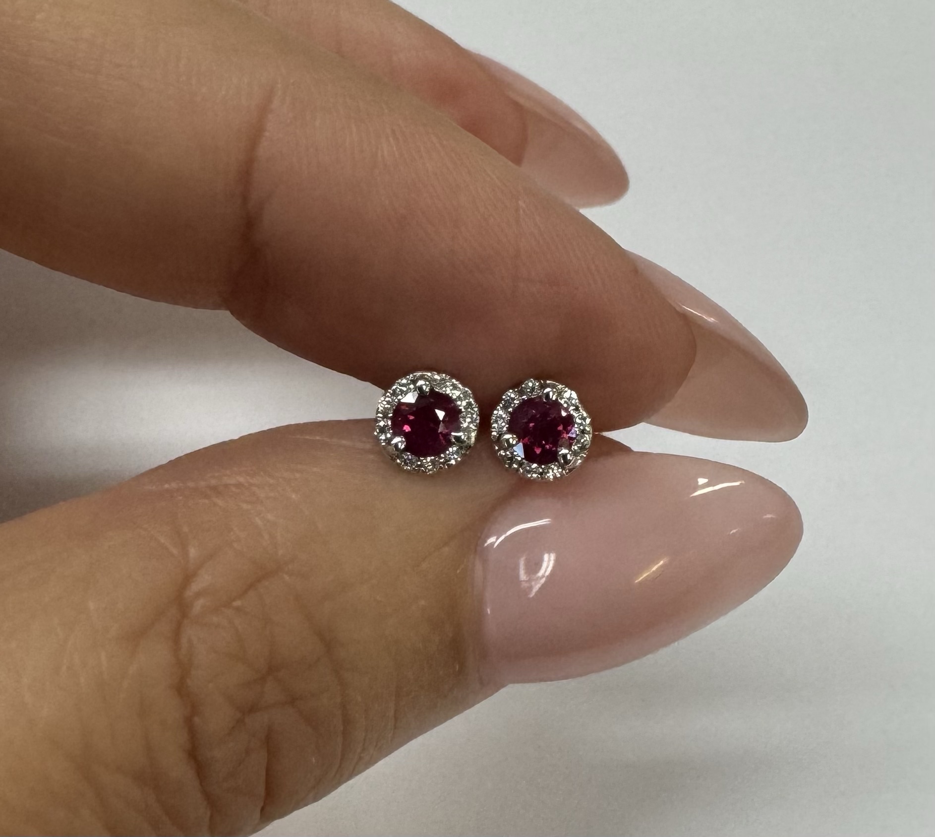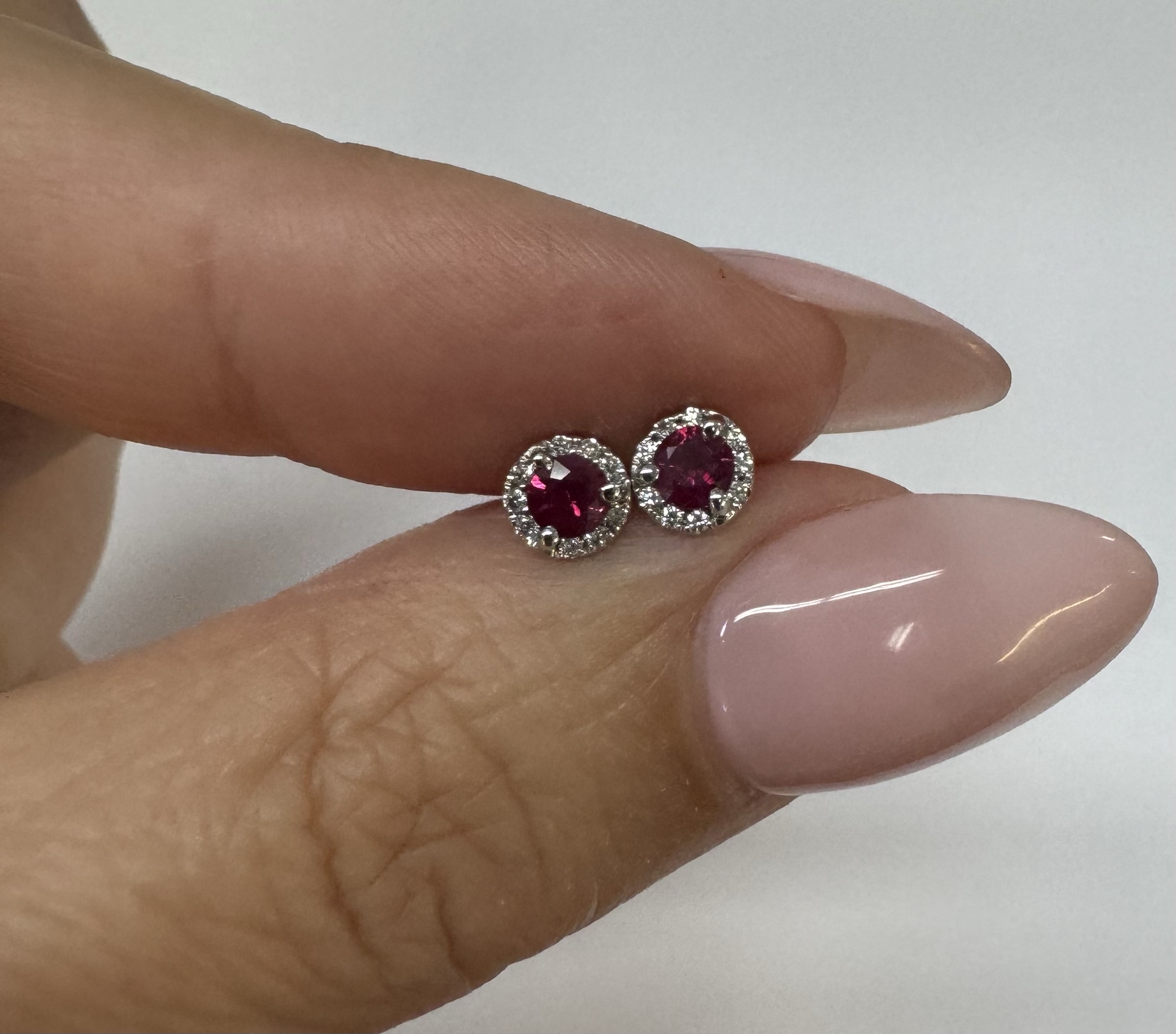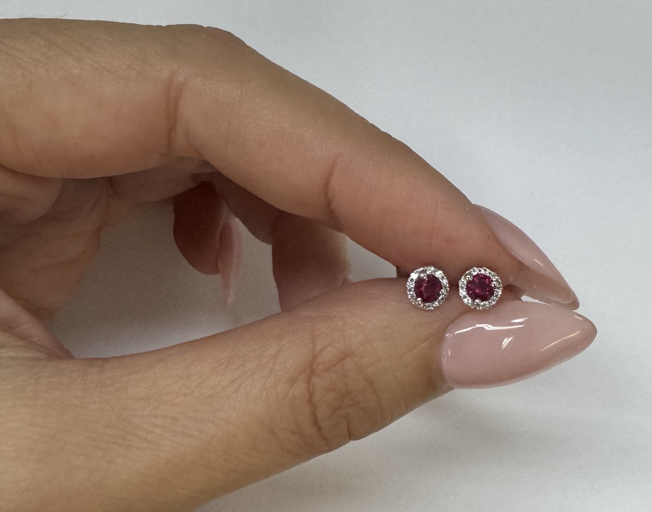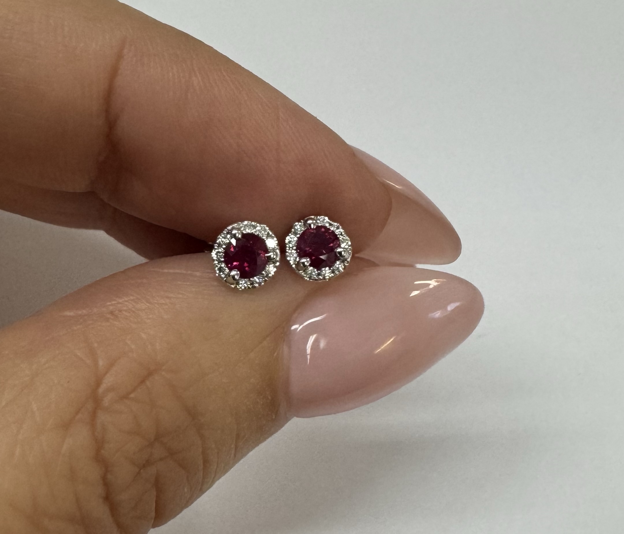 14k White Gold Genuine .34 Cttw Ruby & Diamond Halo Stud Earrings