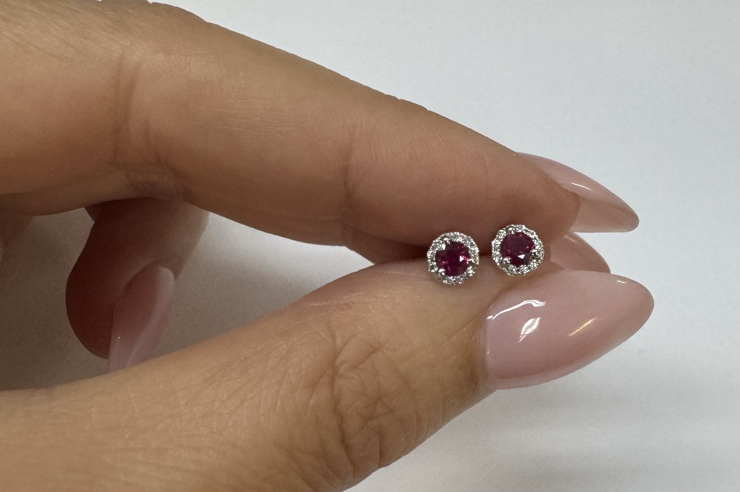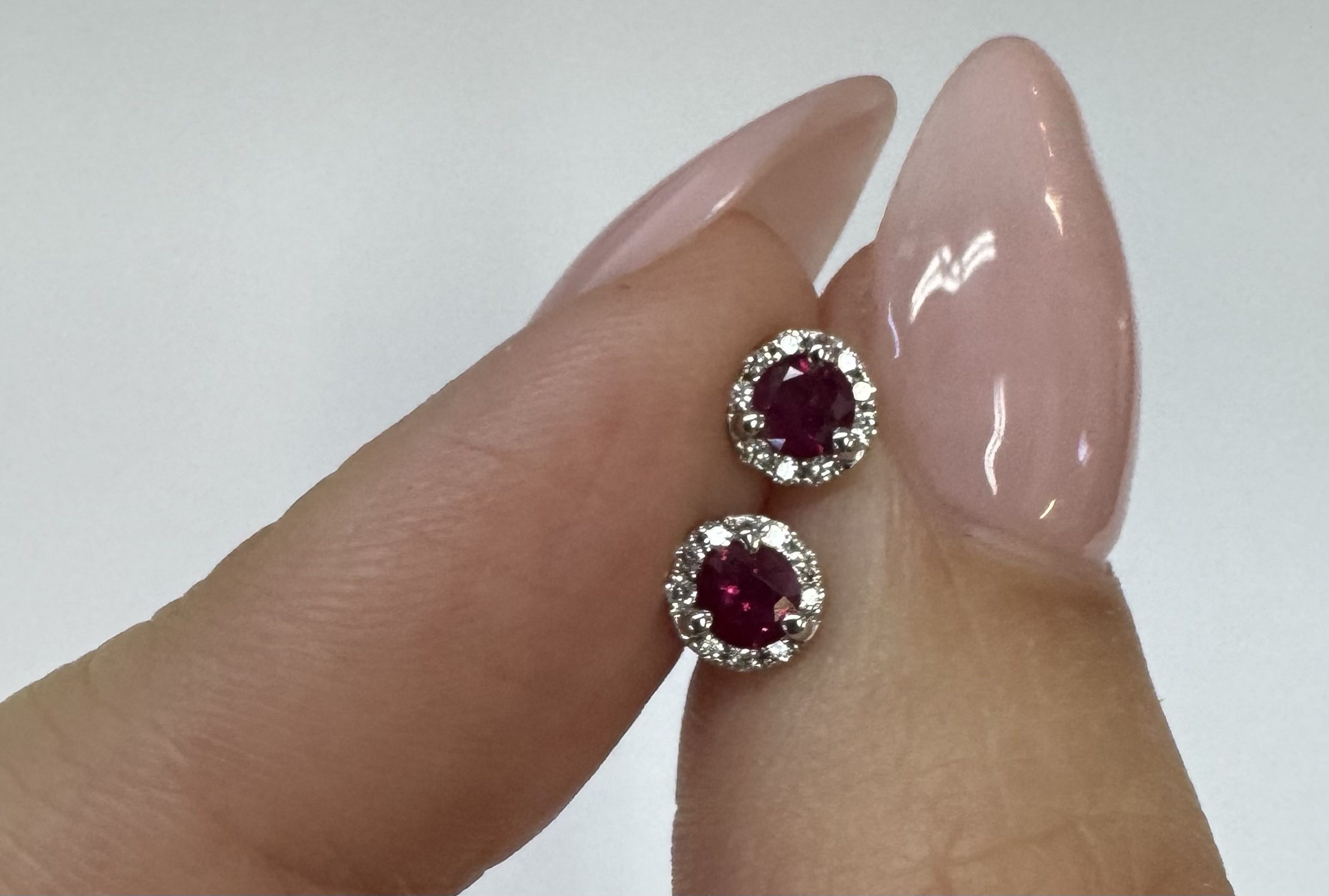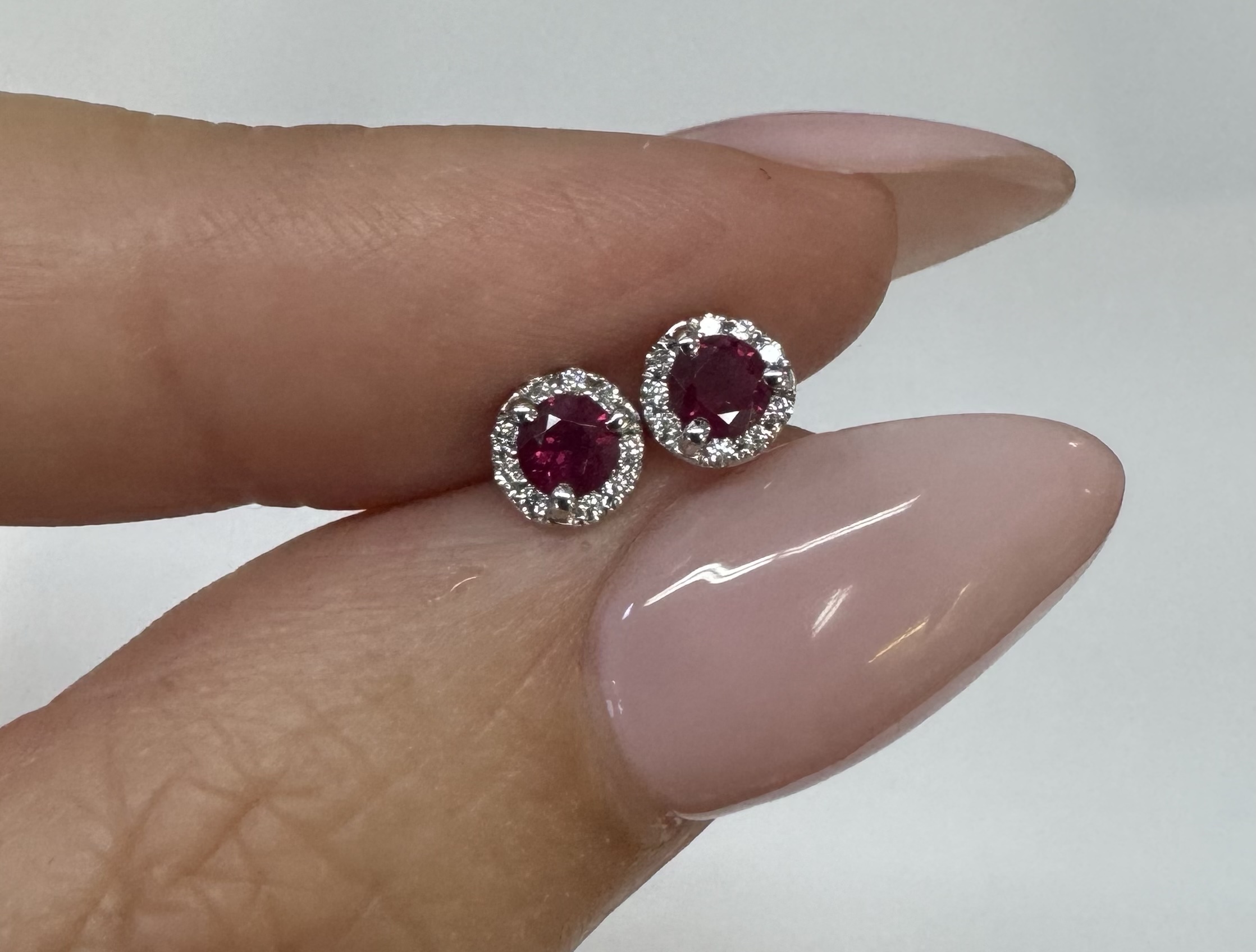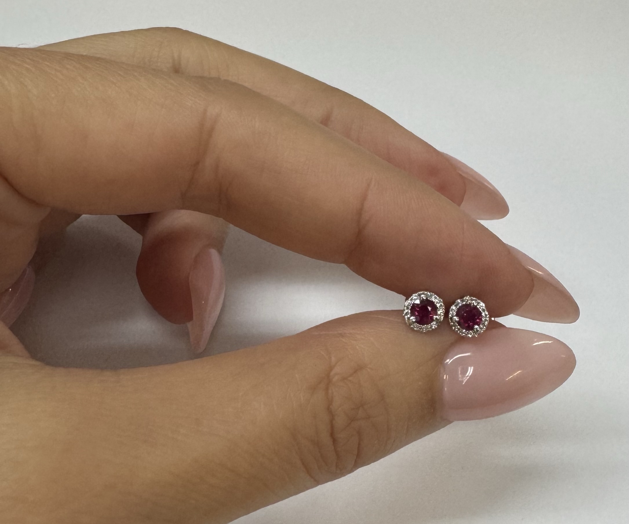 14k White Gold Genuine .34 Cttw Ruby & Diamond Halo Stud Earrings quantity
