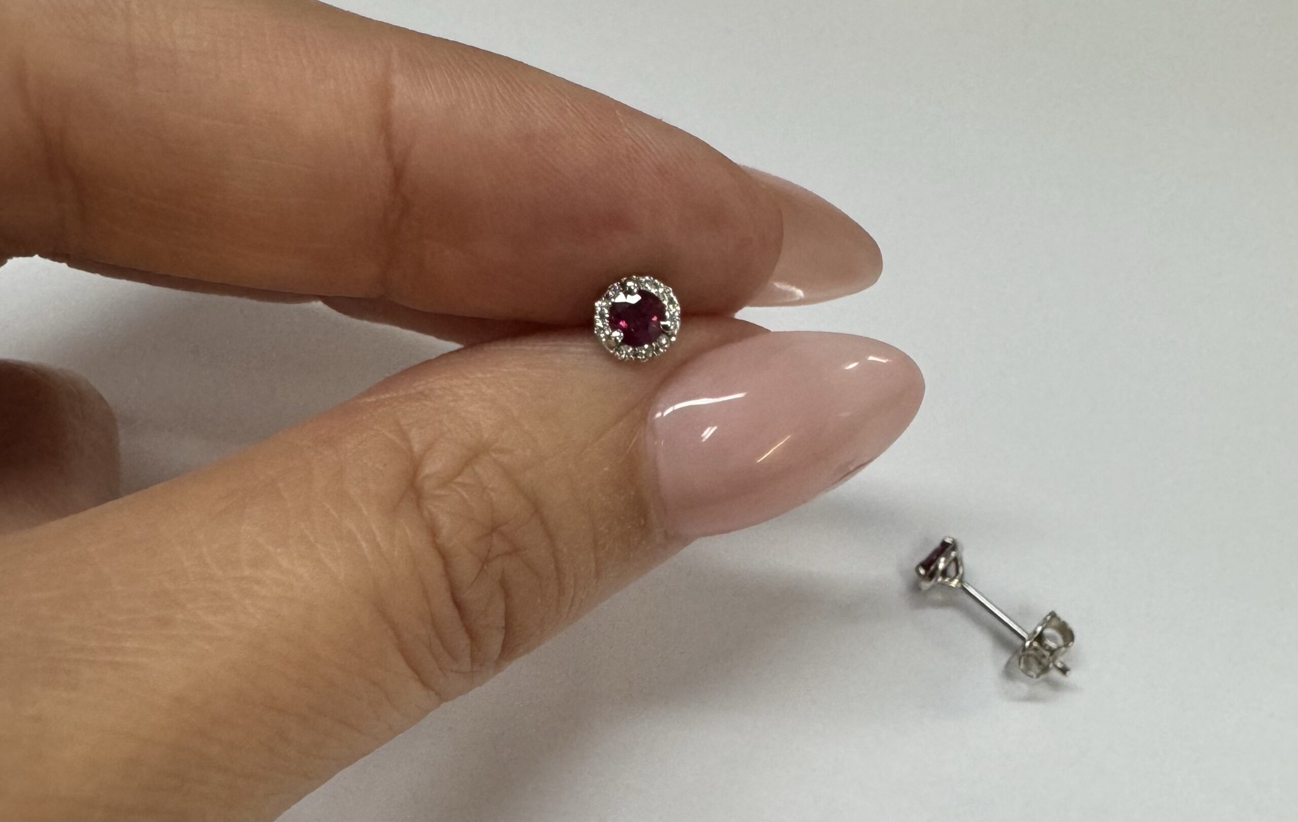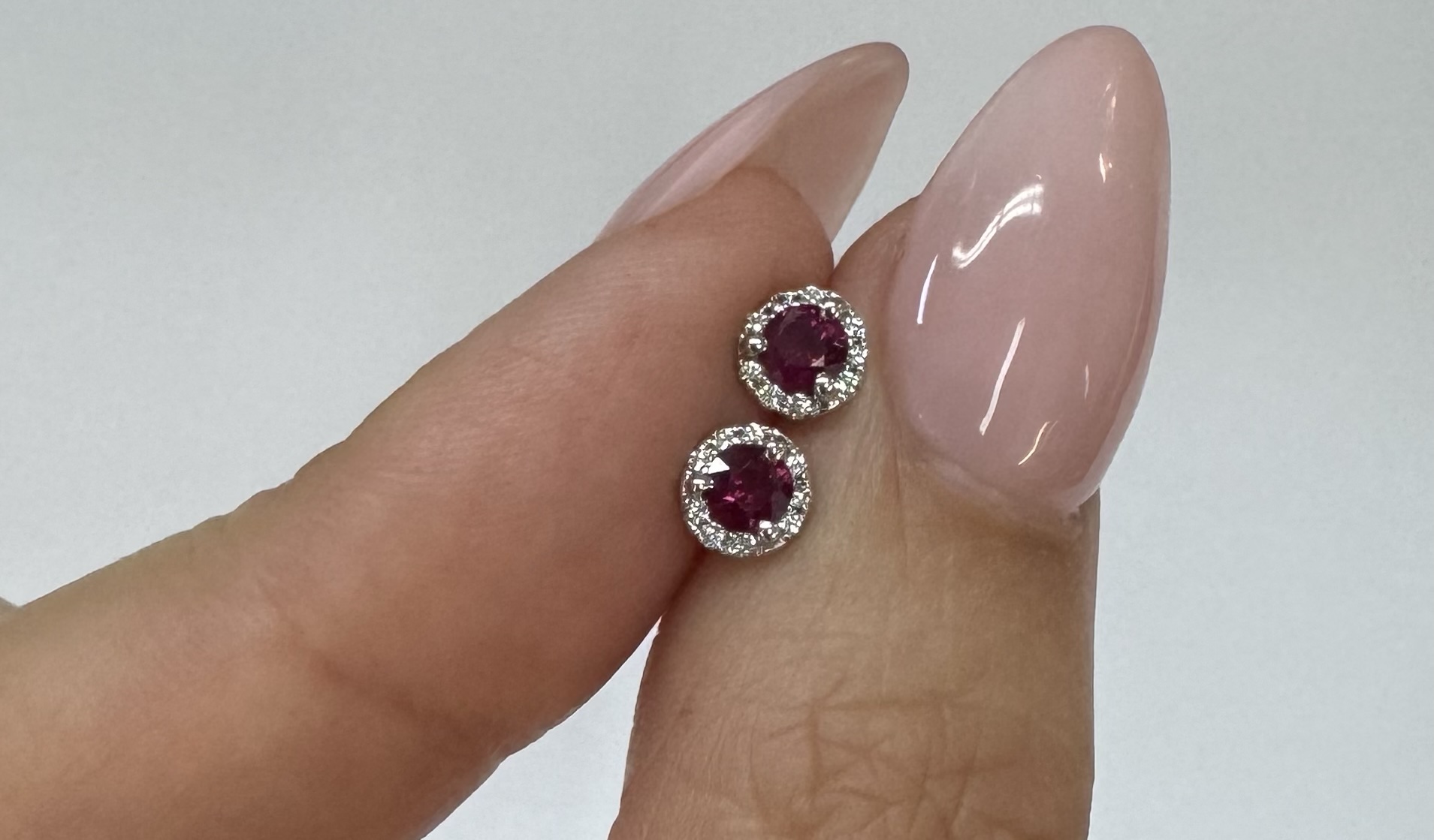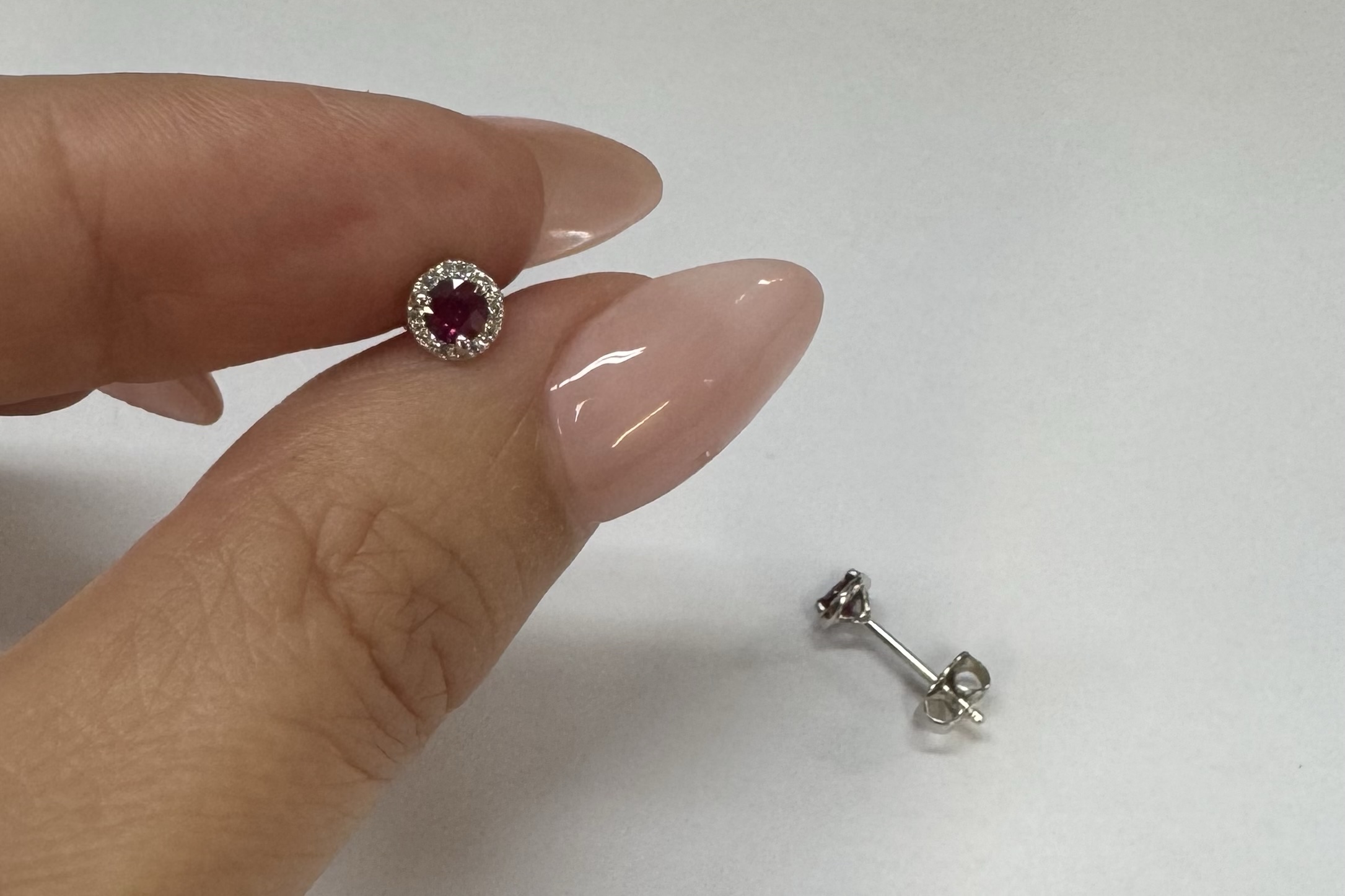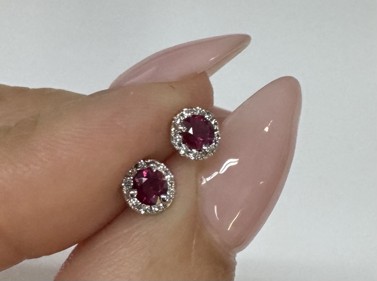 14k White Gold Genuine .34 Cttw Ruby & Diamond Halo Stud Earrings quantity
