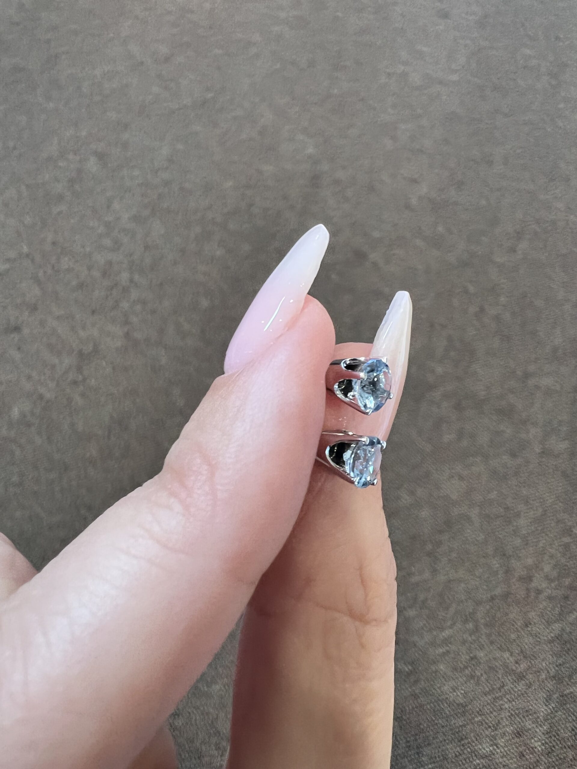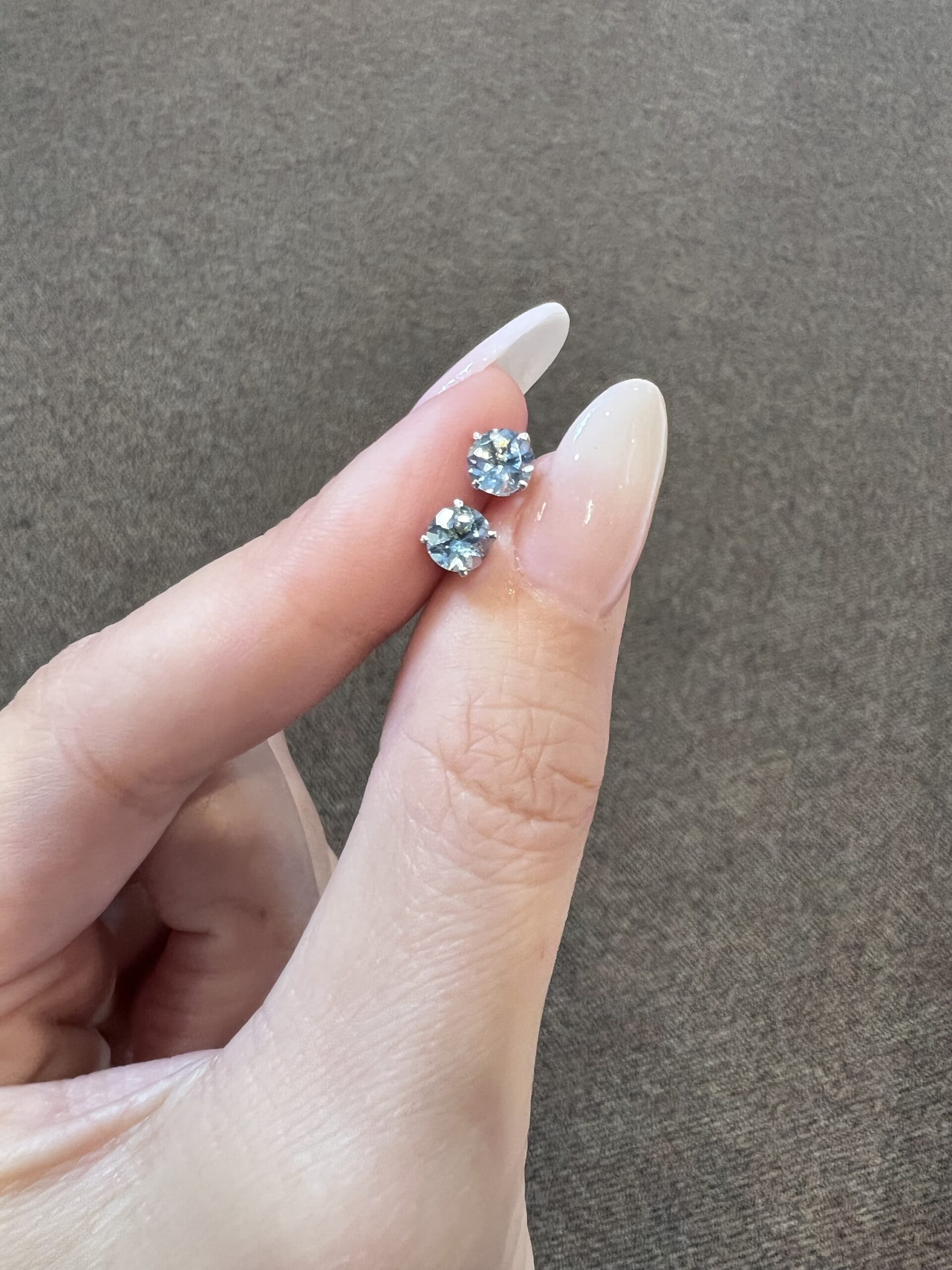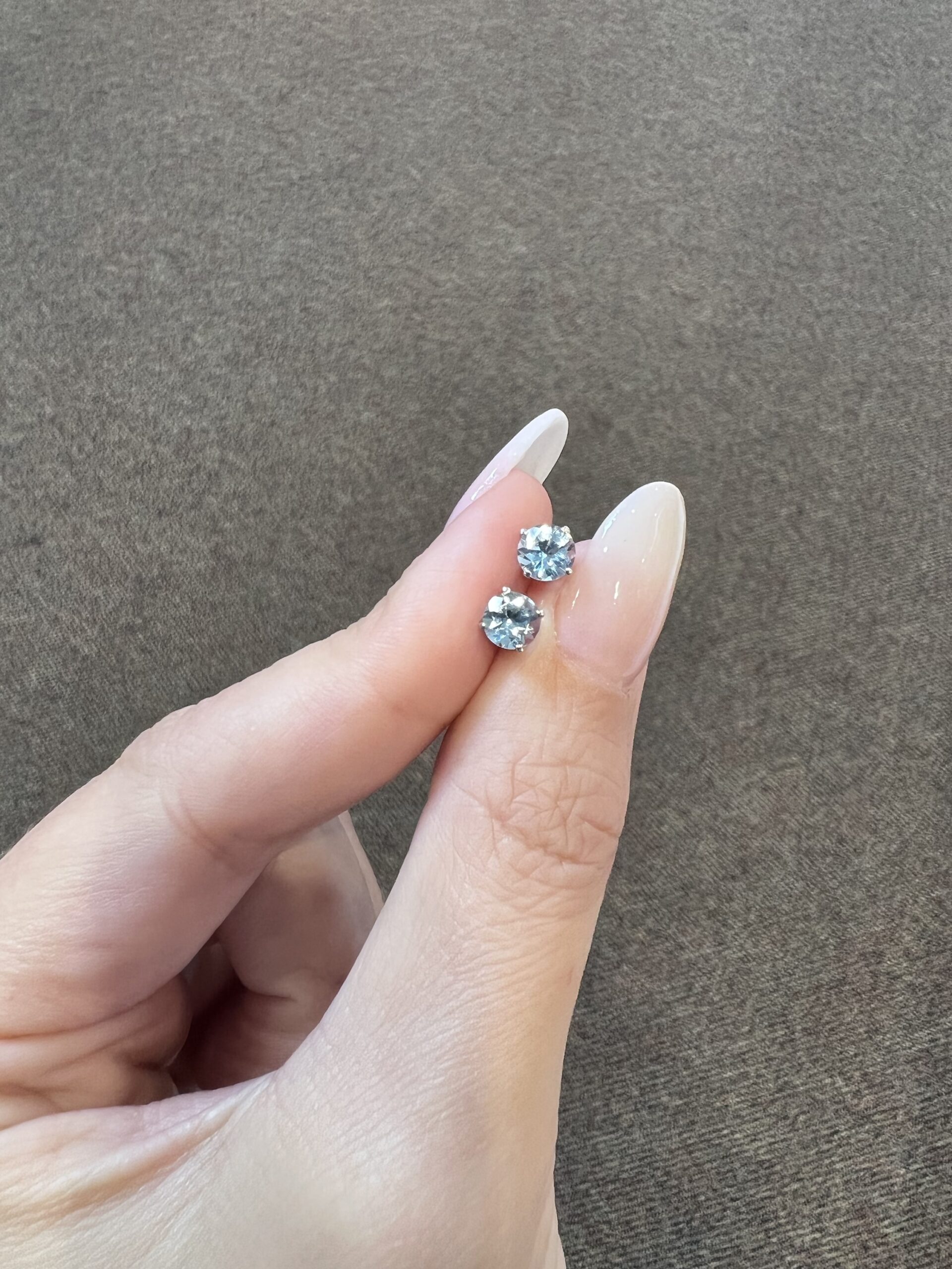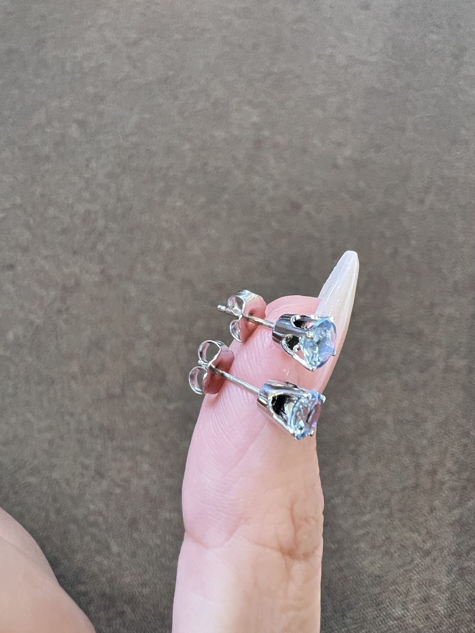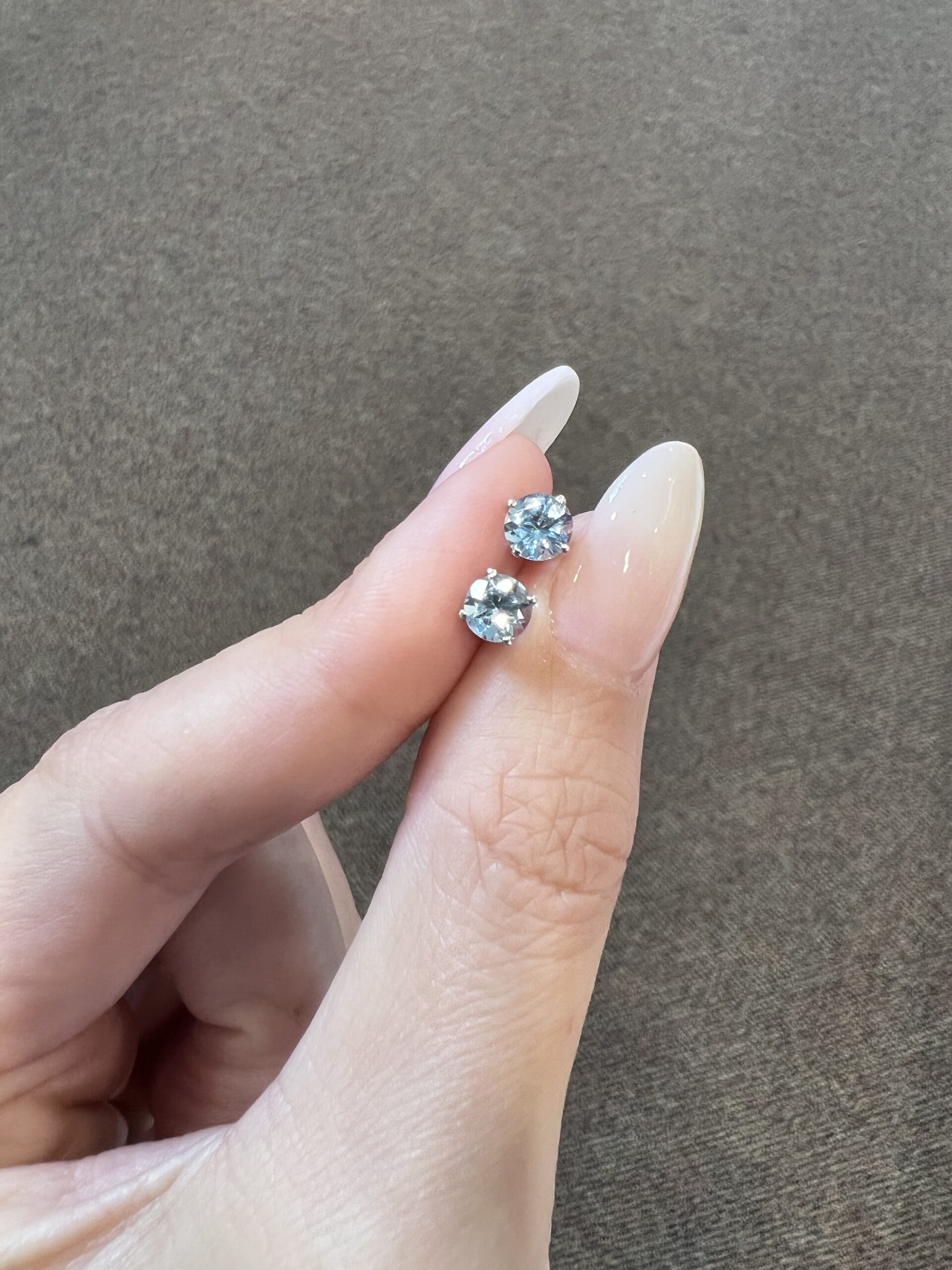 14k white gold genuine round, faceted 5 mm Aquamarine stud earrings. These earrings have an entire weight of 1.1 grams.