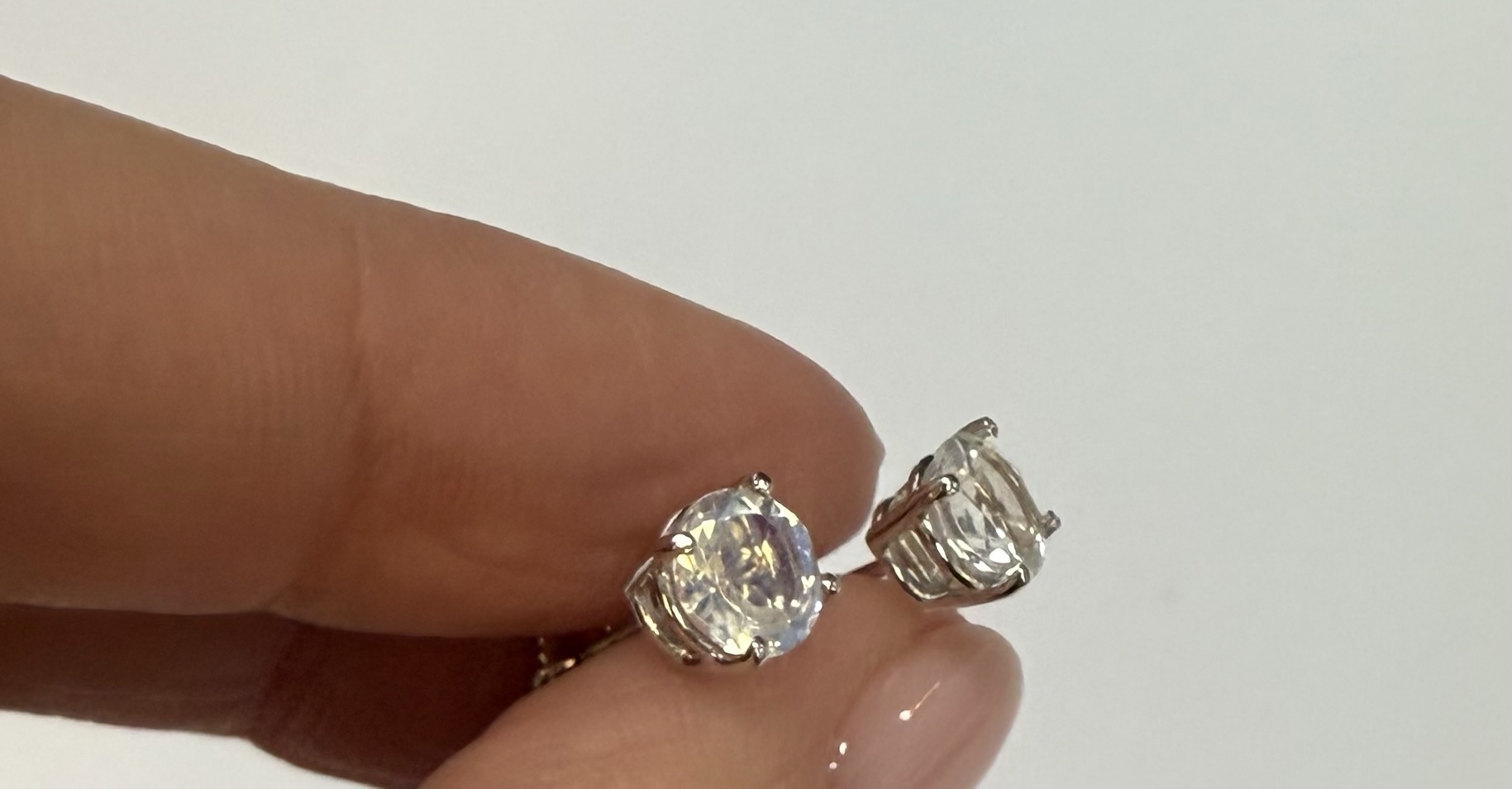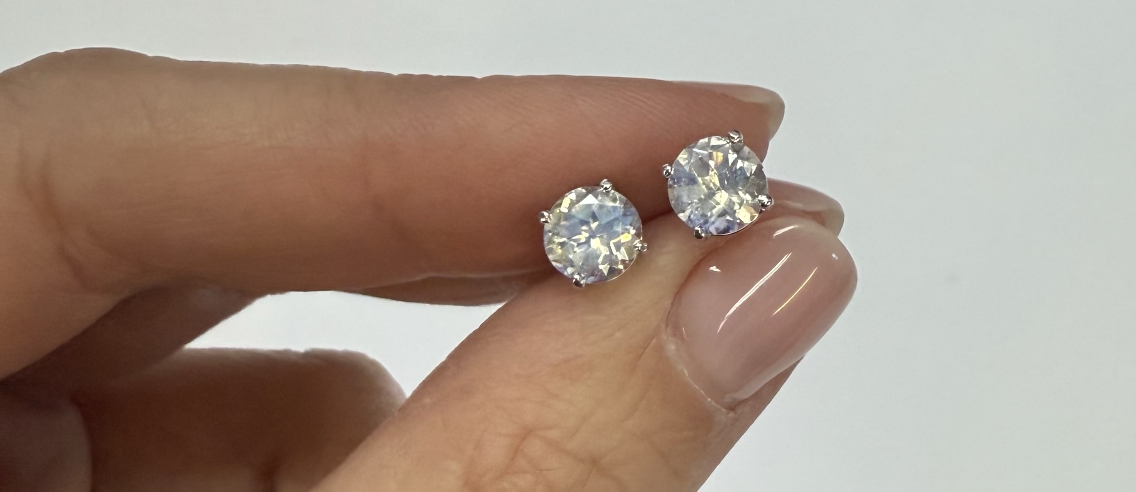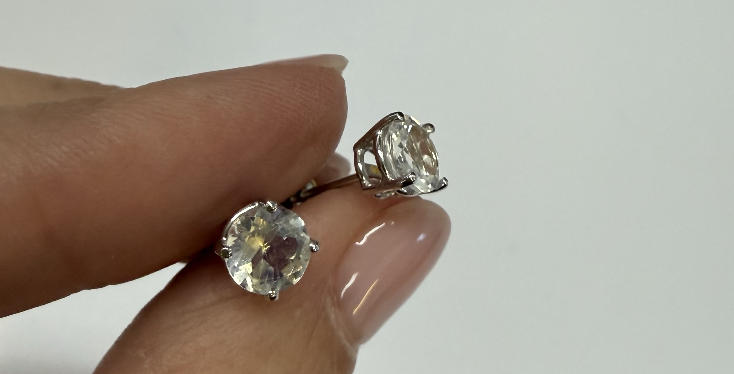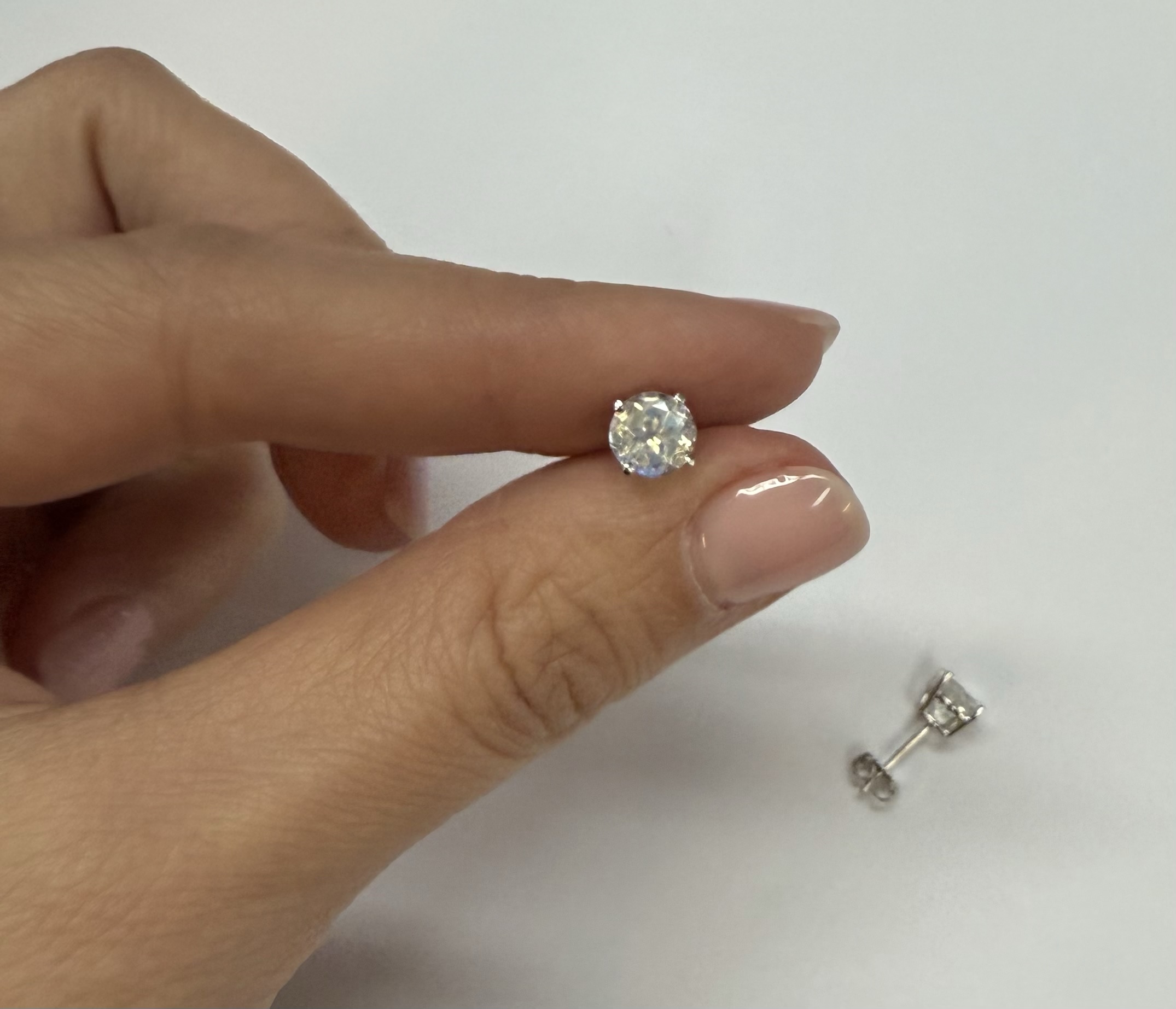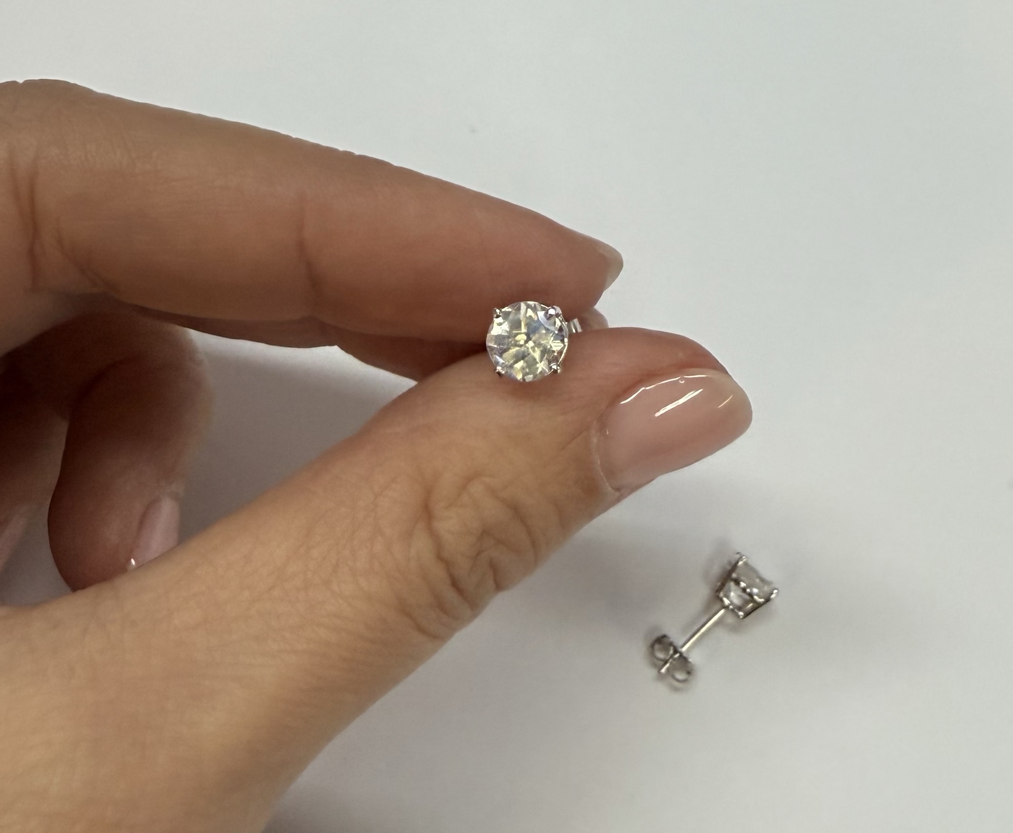 14k white gold round 6 mm AAA quality faceted genuine Moonstone basket set stud earrings. These earrings have an entire weight of grams.