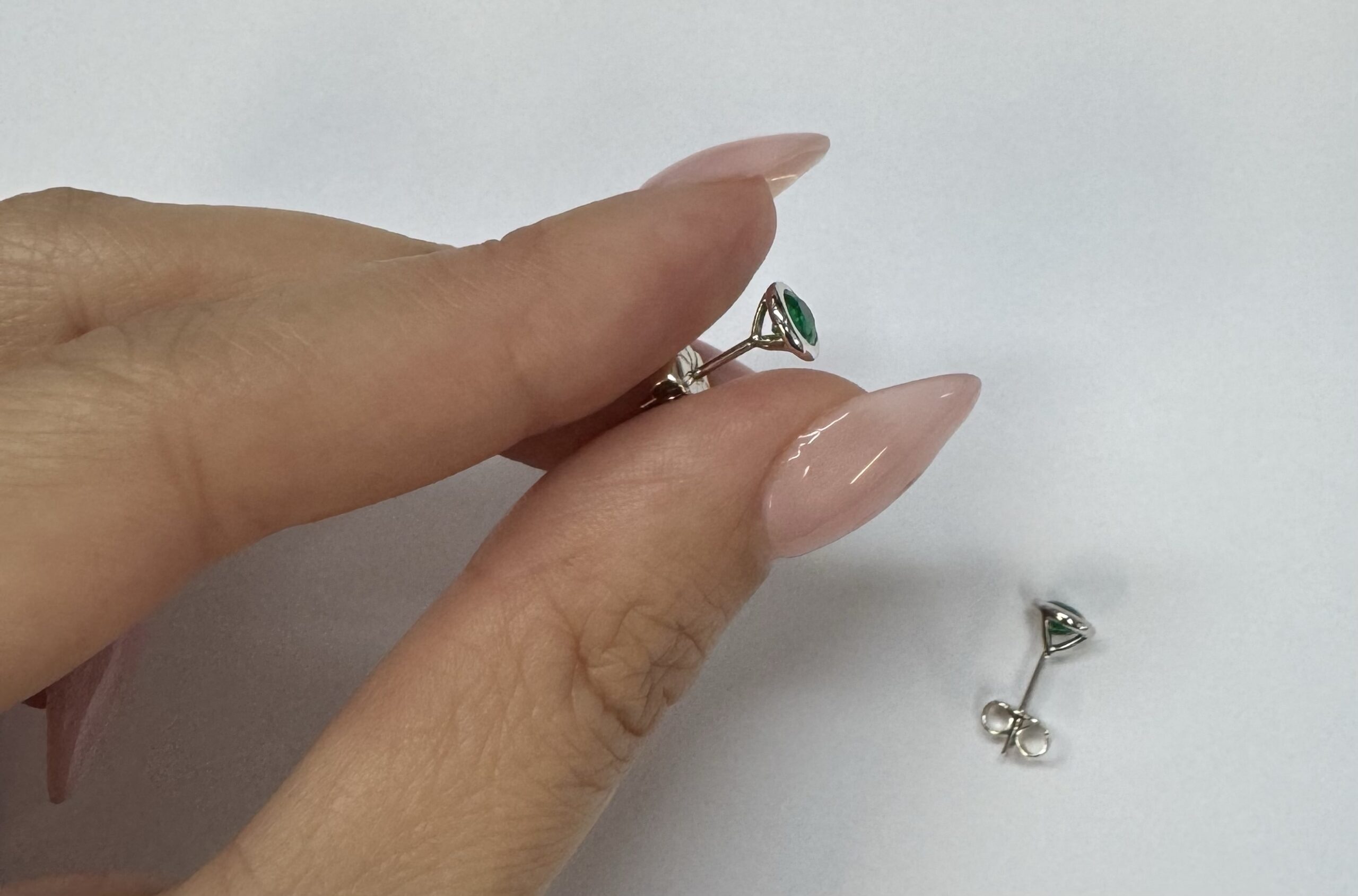 14k White Gold Genuine .62 Cttw Emerald Bezel Set Stud Earrings