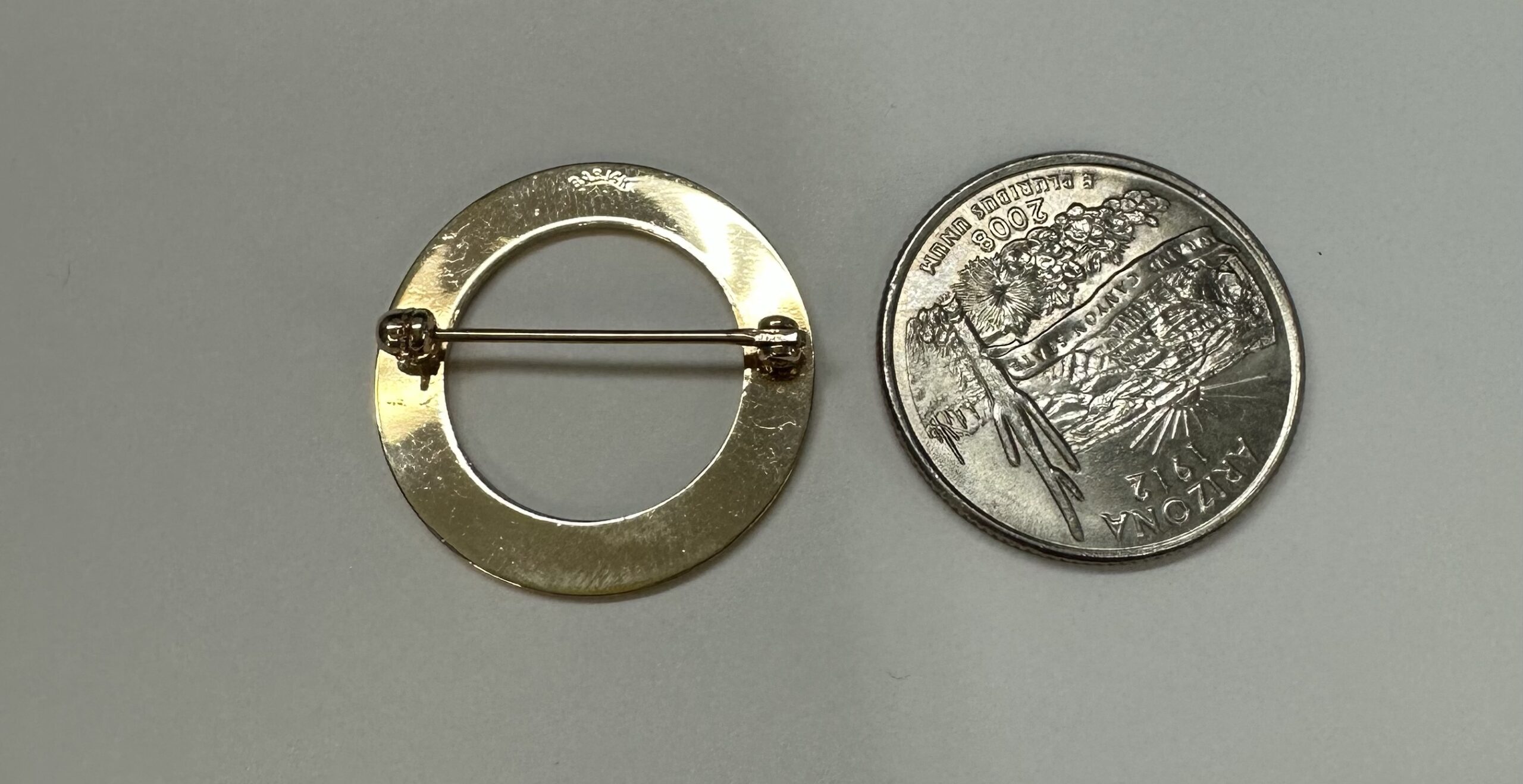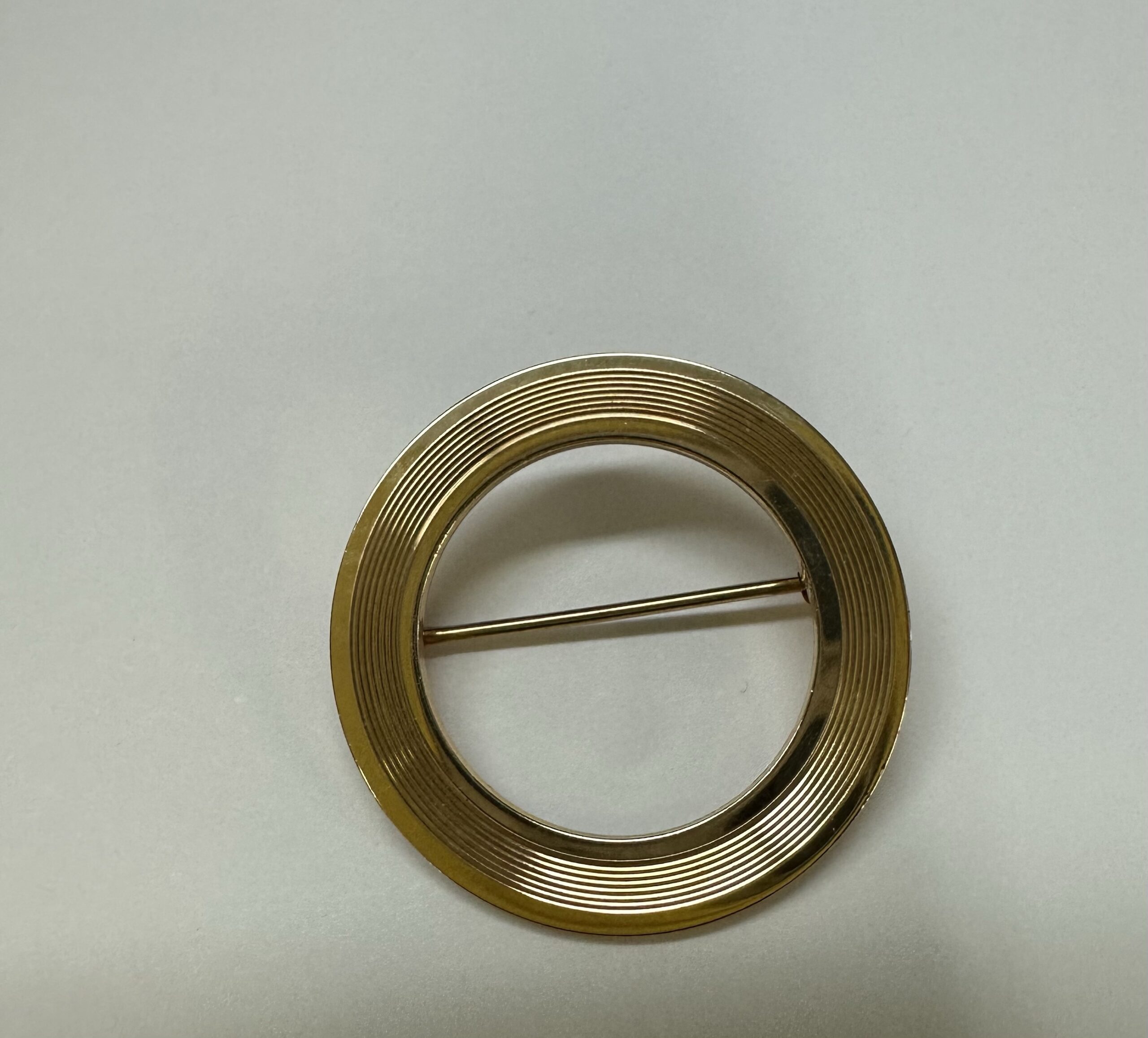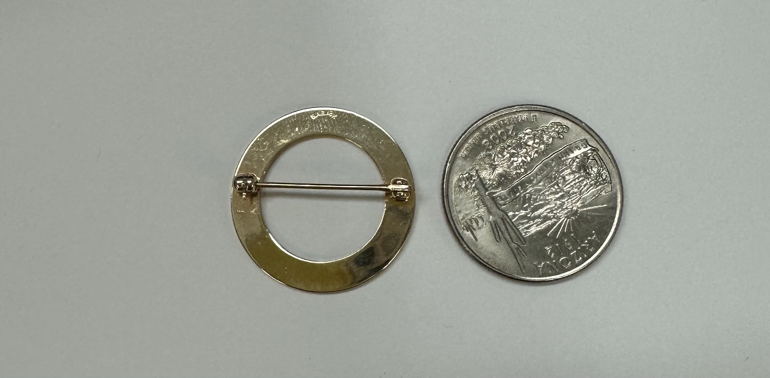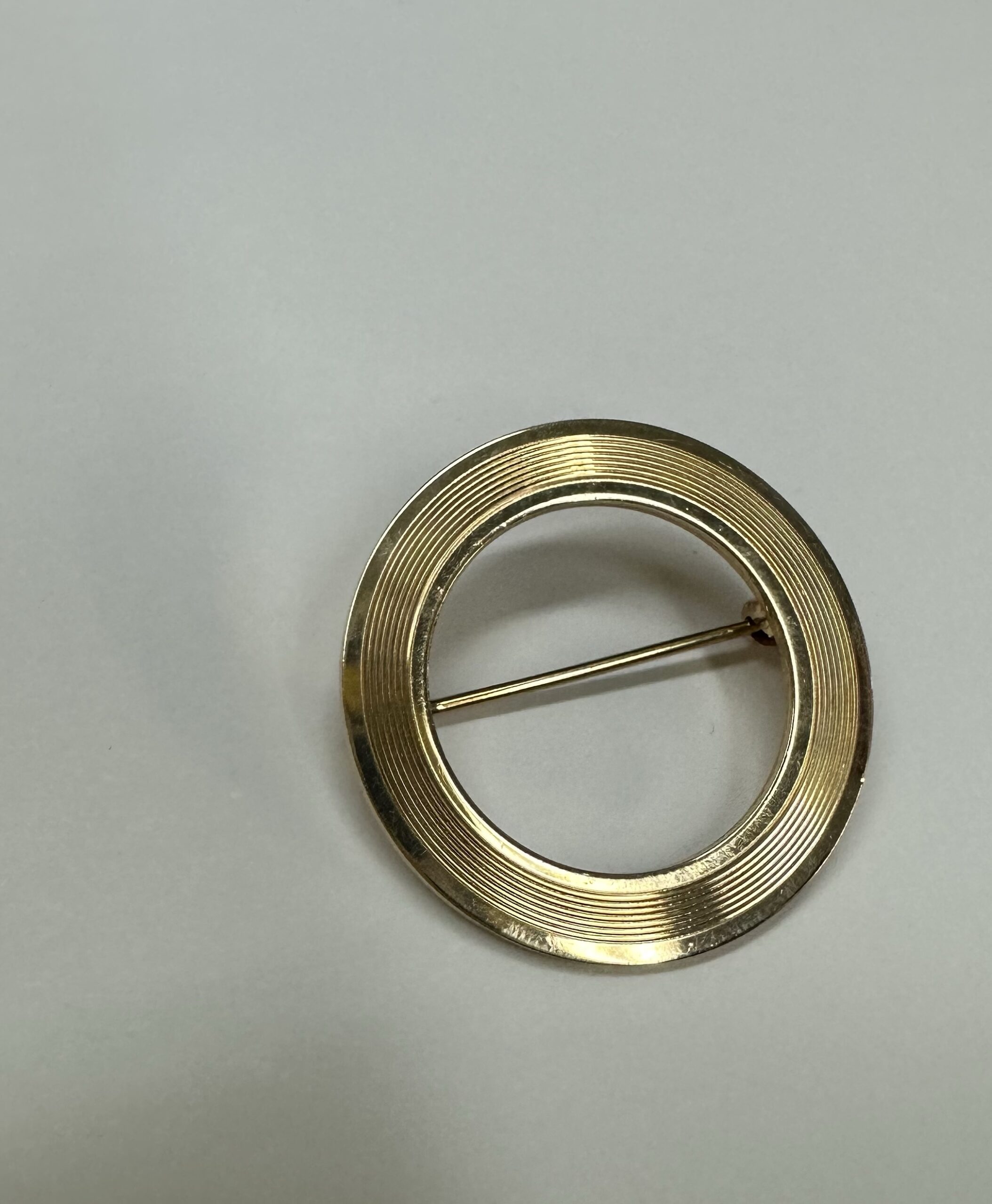 Vintage 14k yellow gold 25.5 mm open circle brooch. This brooch has an entire weight of 4.0 grams.