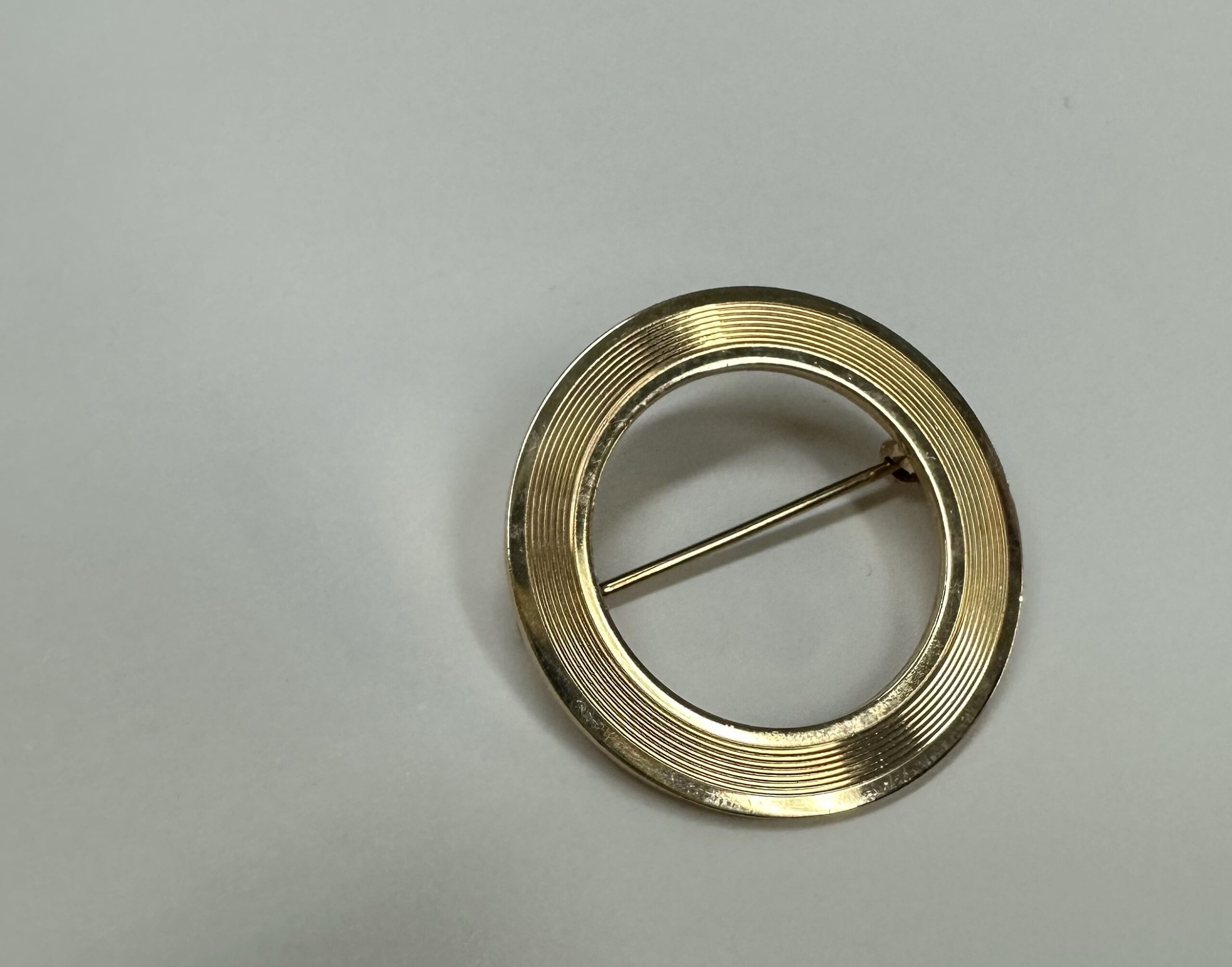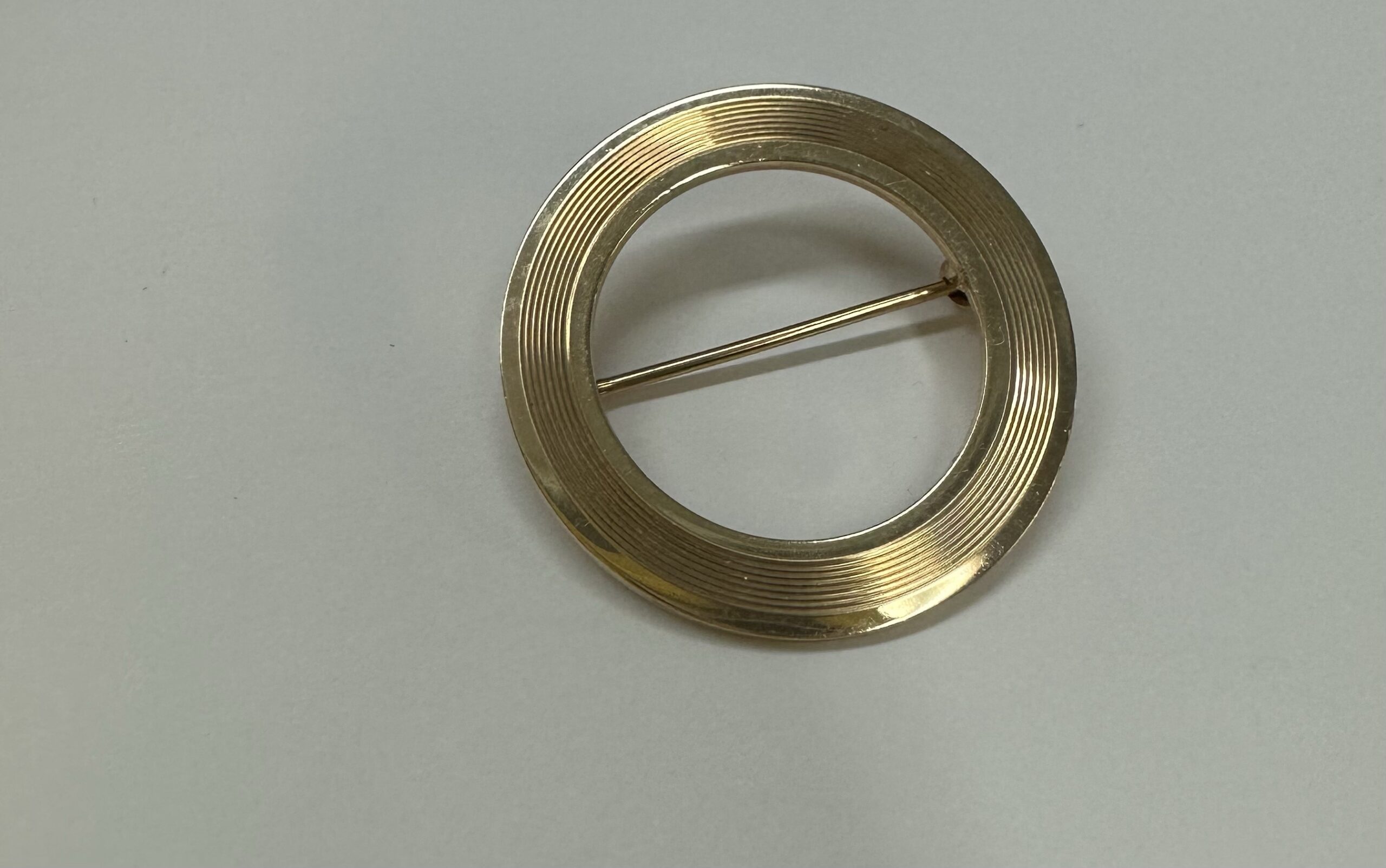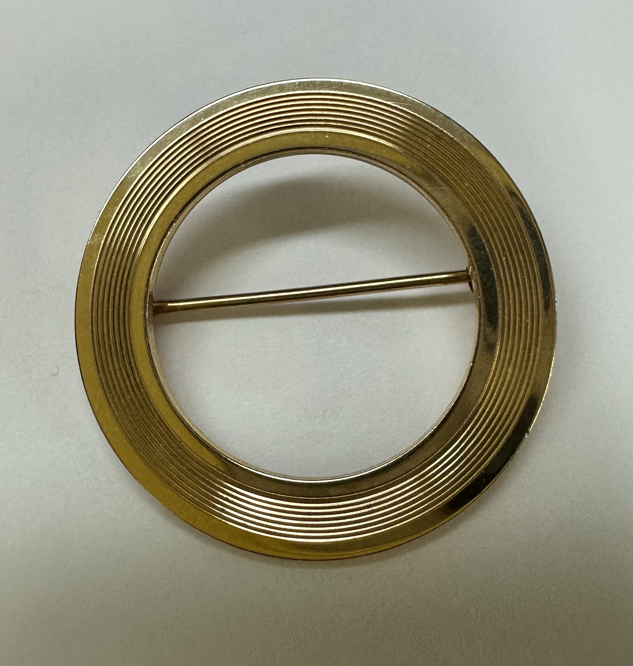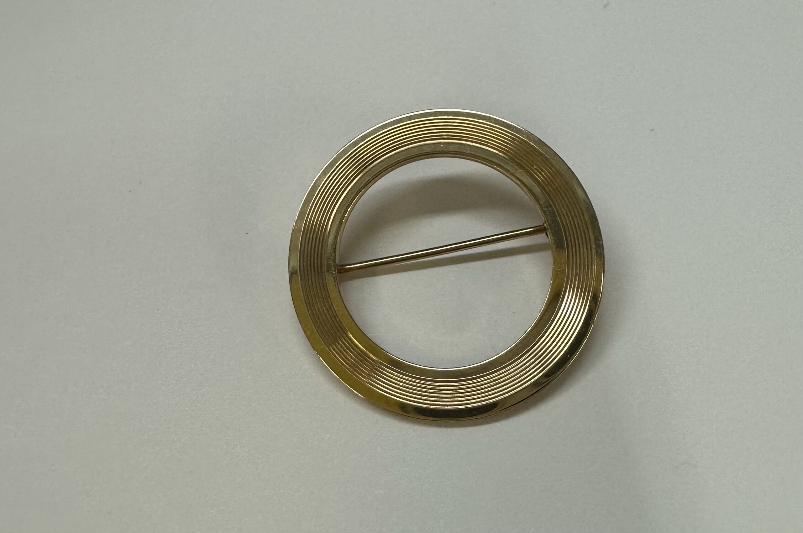 Vintage 14k yellow gold 25.5 mm open circle brooch. This brooch has an entire weight of 4.0 grams.