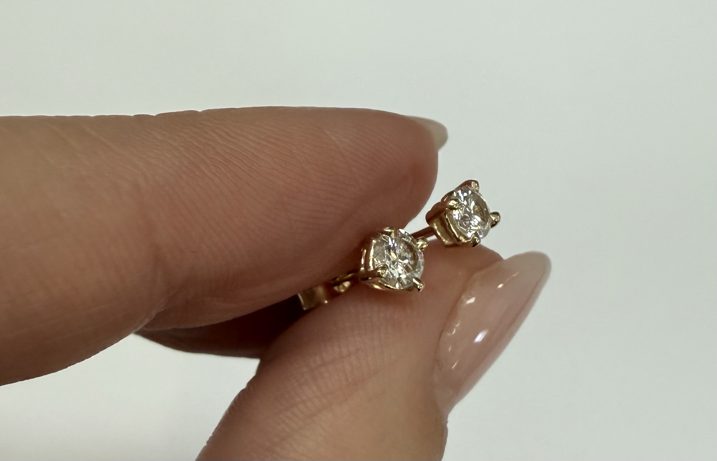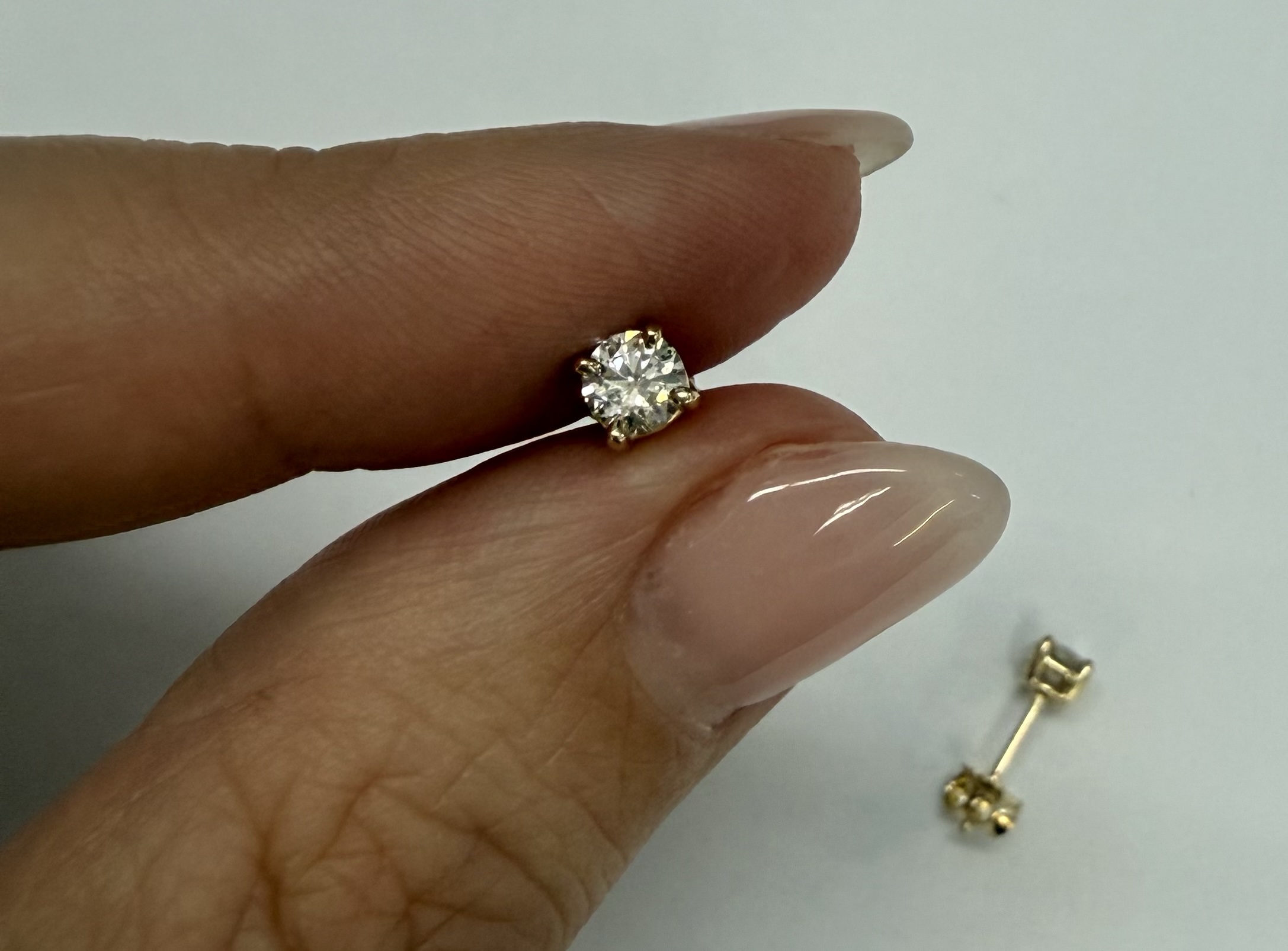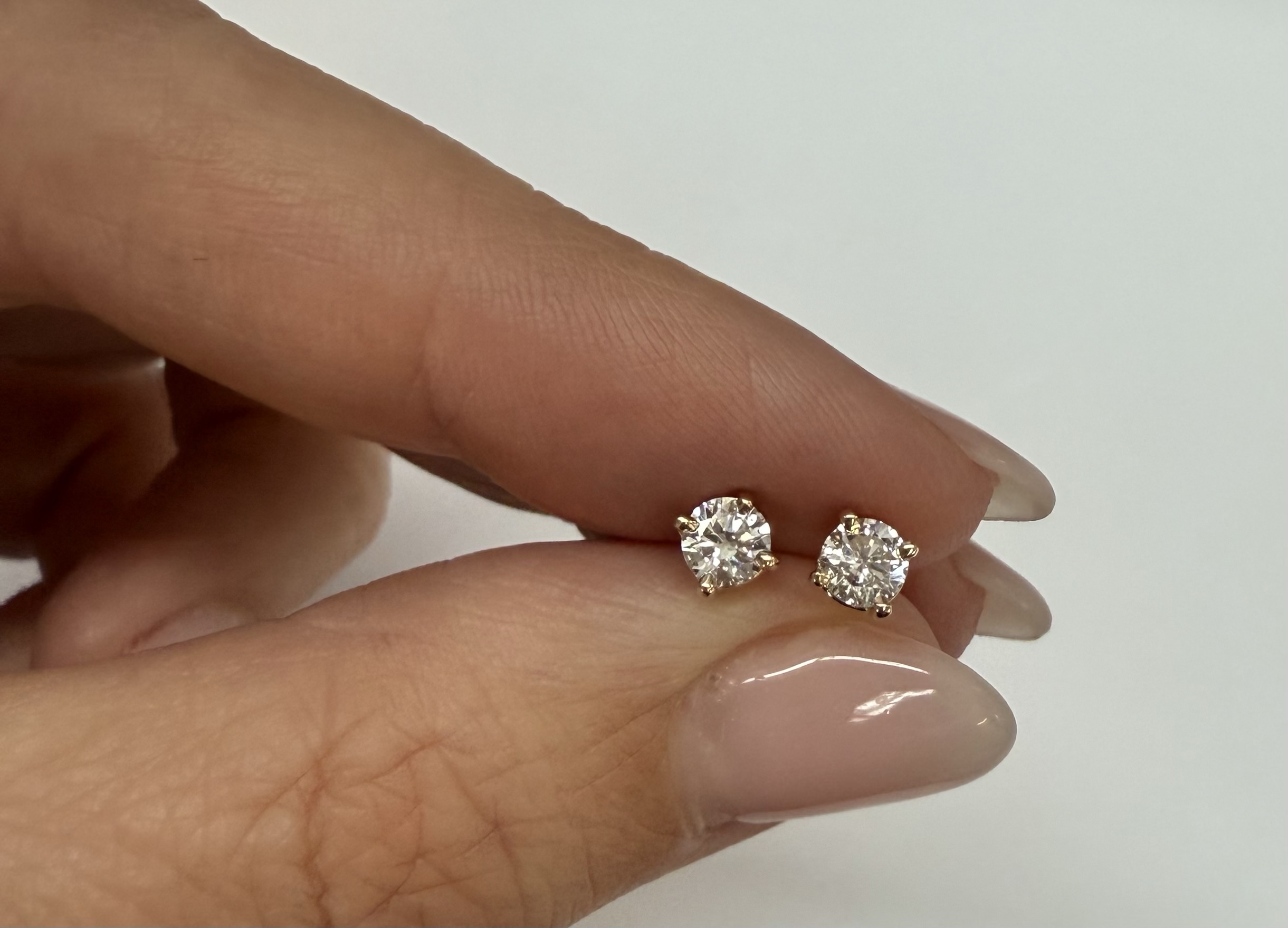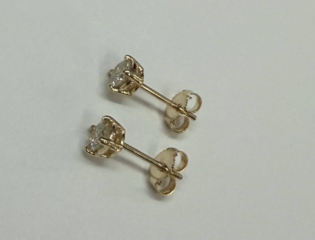 14k yellow gold four prong basket set .42 cttw genuine Round Brilliant Cut diamond stud earrings. These diamonds average G in color, and SI2 in clarity. These earrings have an entire weight of 0.8 grams.