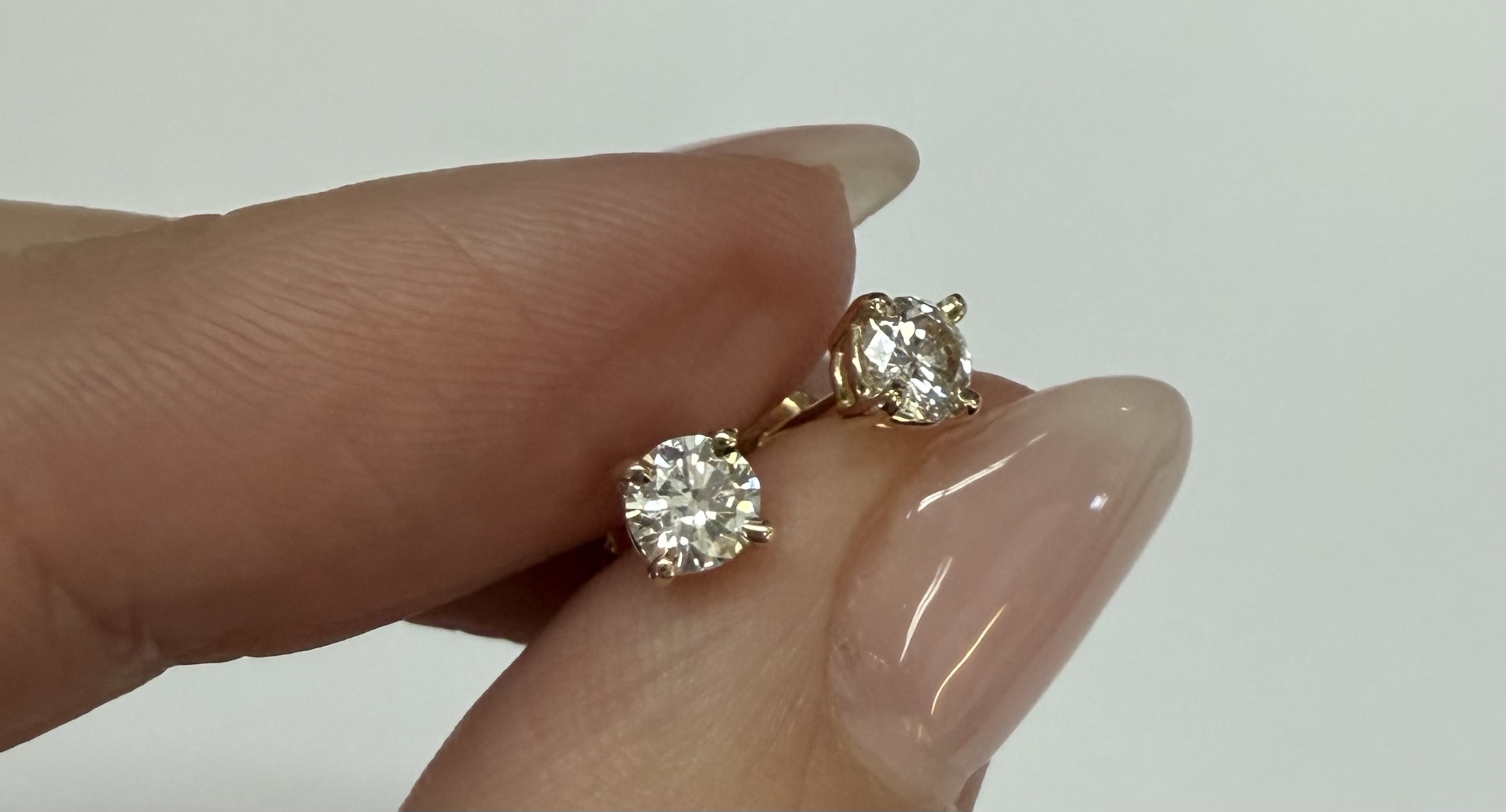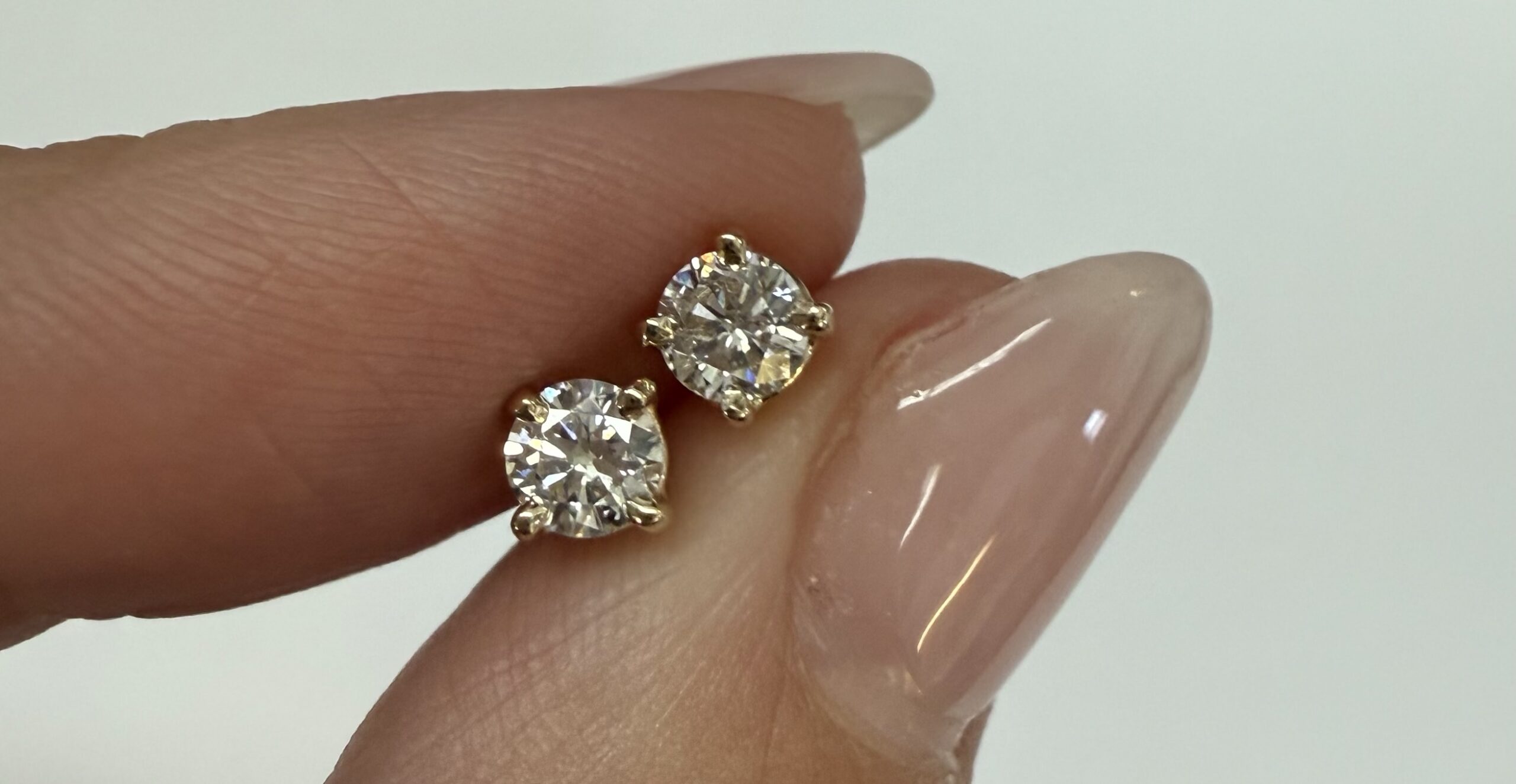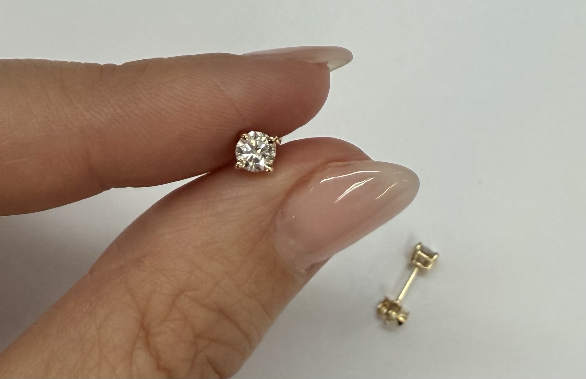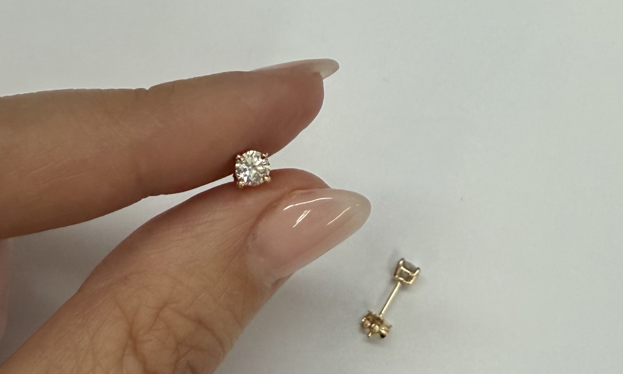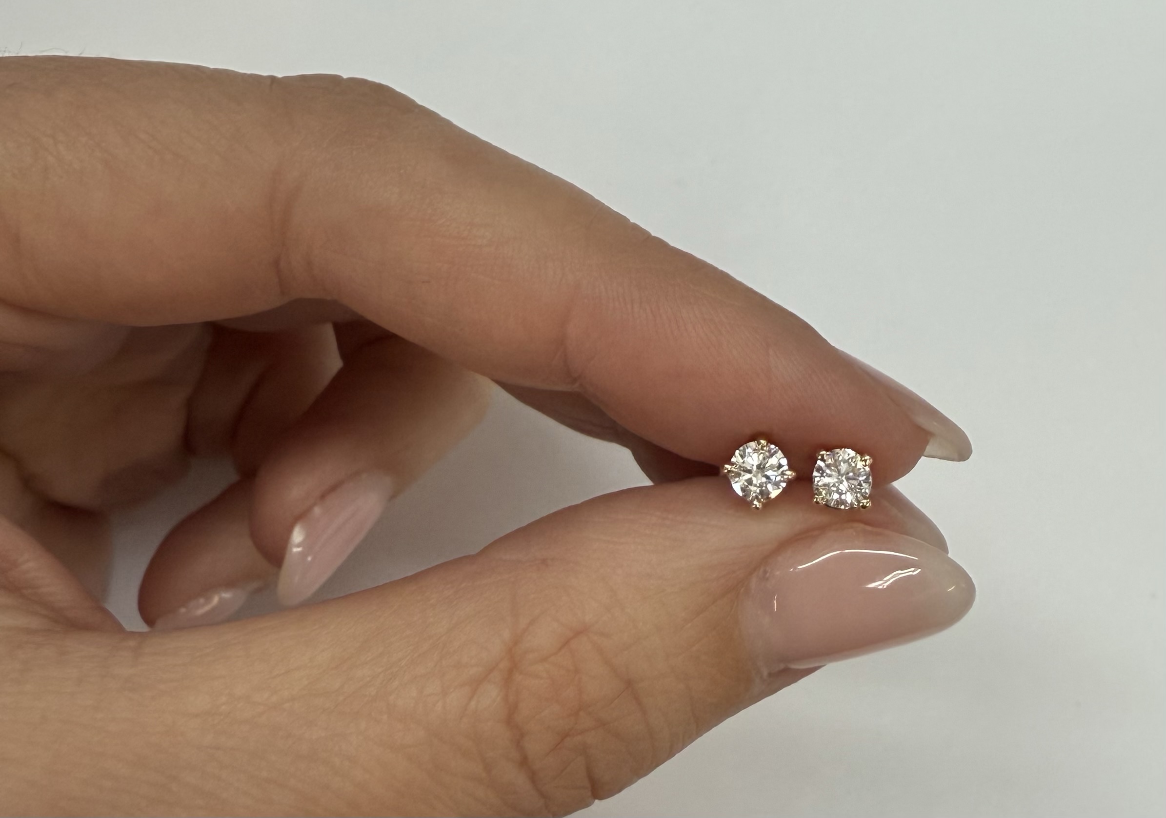14k yellow gold four prong basket set .42 cttw genuine Round Brilliant Cut diamond stud earrings. These diamonds average G in color, and SI2 in clarity. These earrings have an entire weight of 0.8 grams.