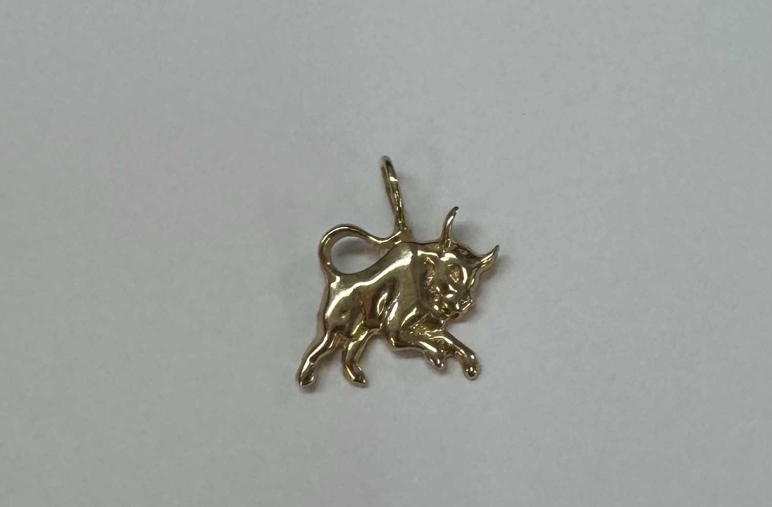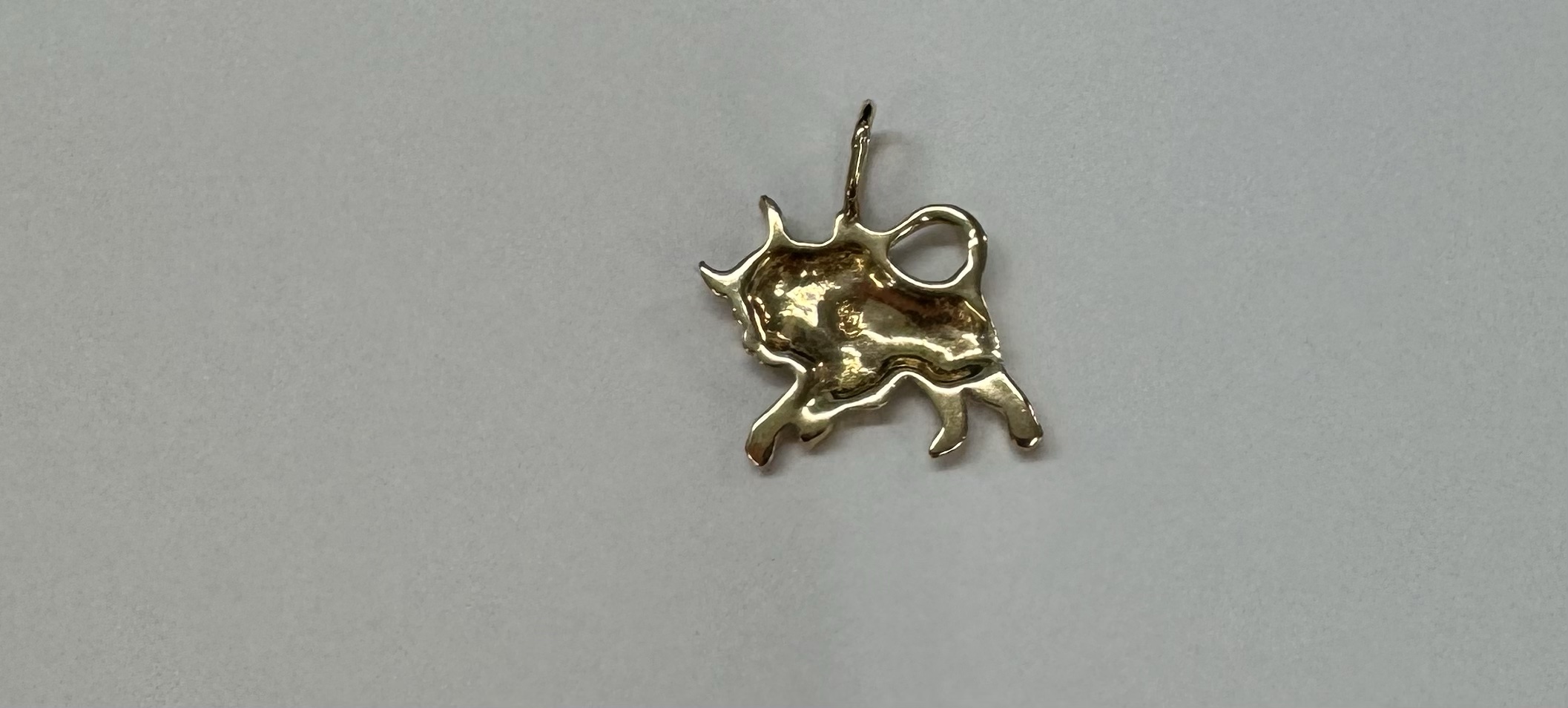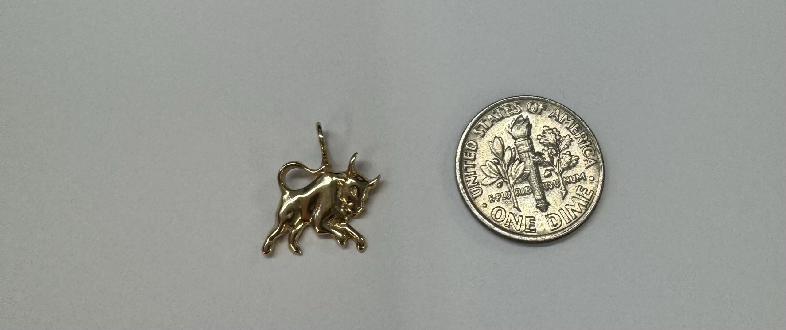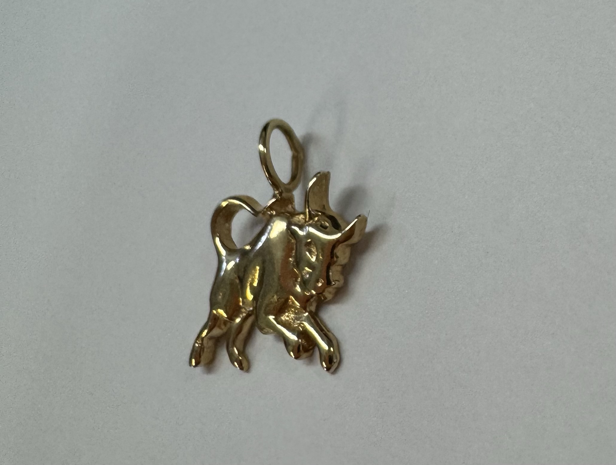 14k yellow gold Bull charm/pendant. This piece has an entire weight of 1.0 grams.