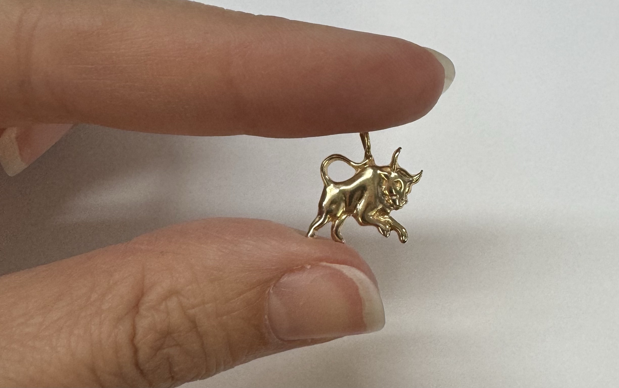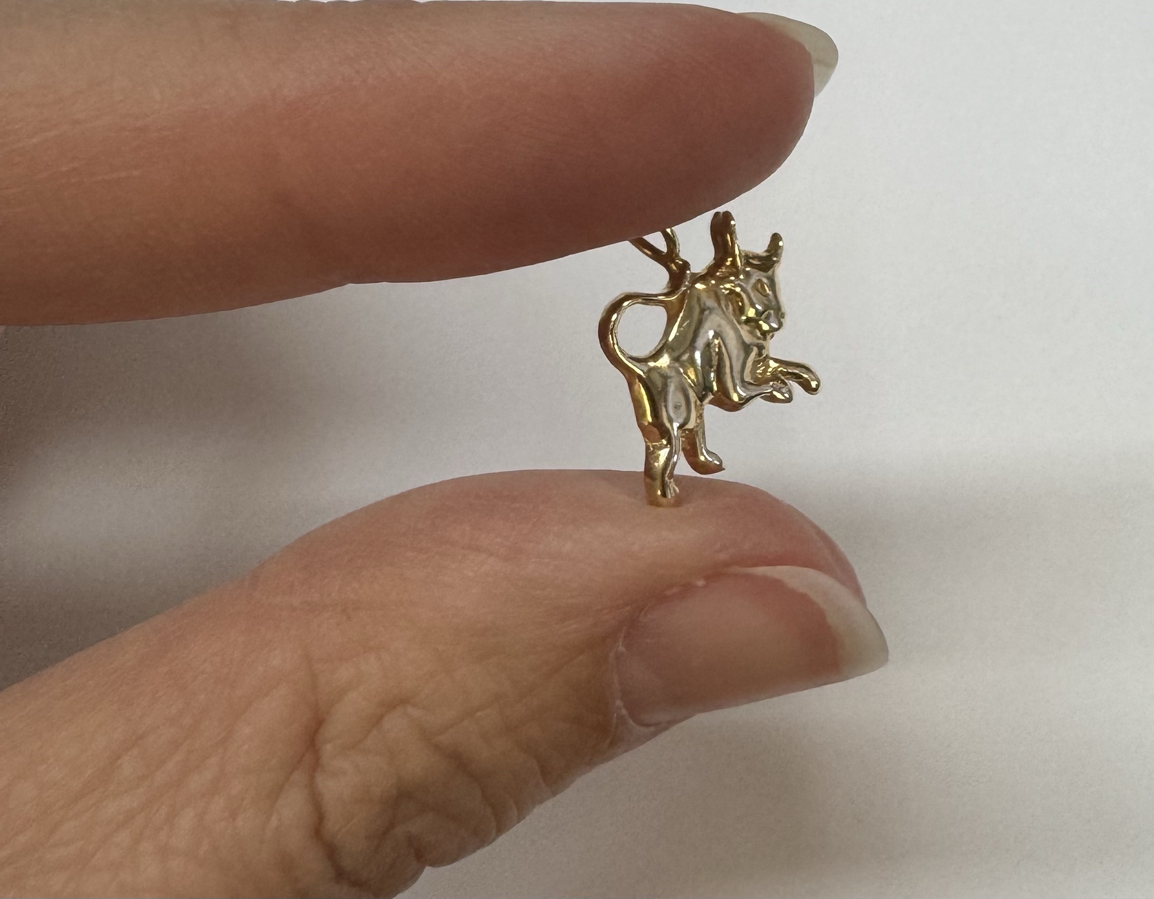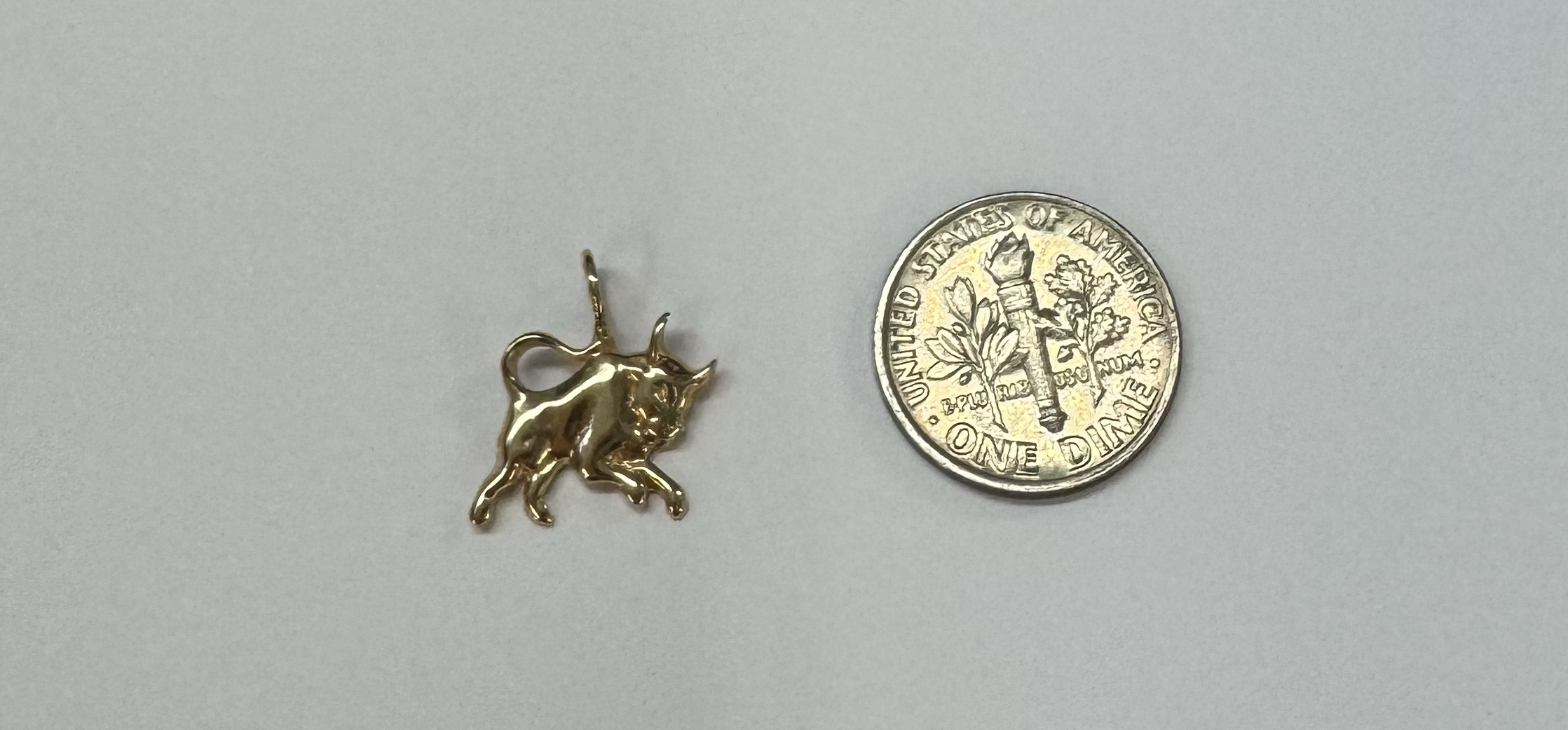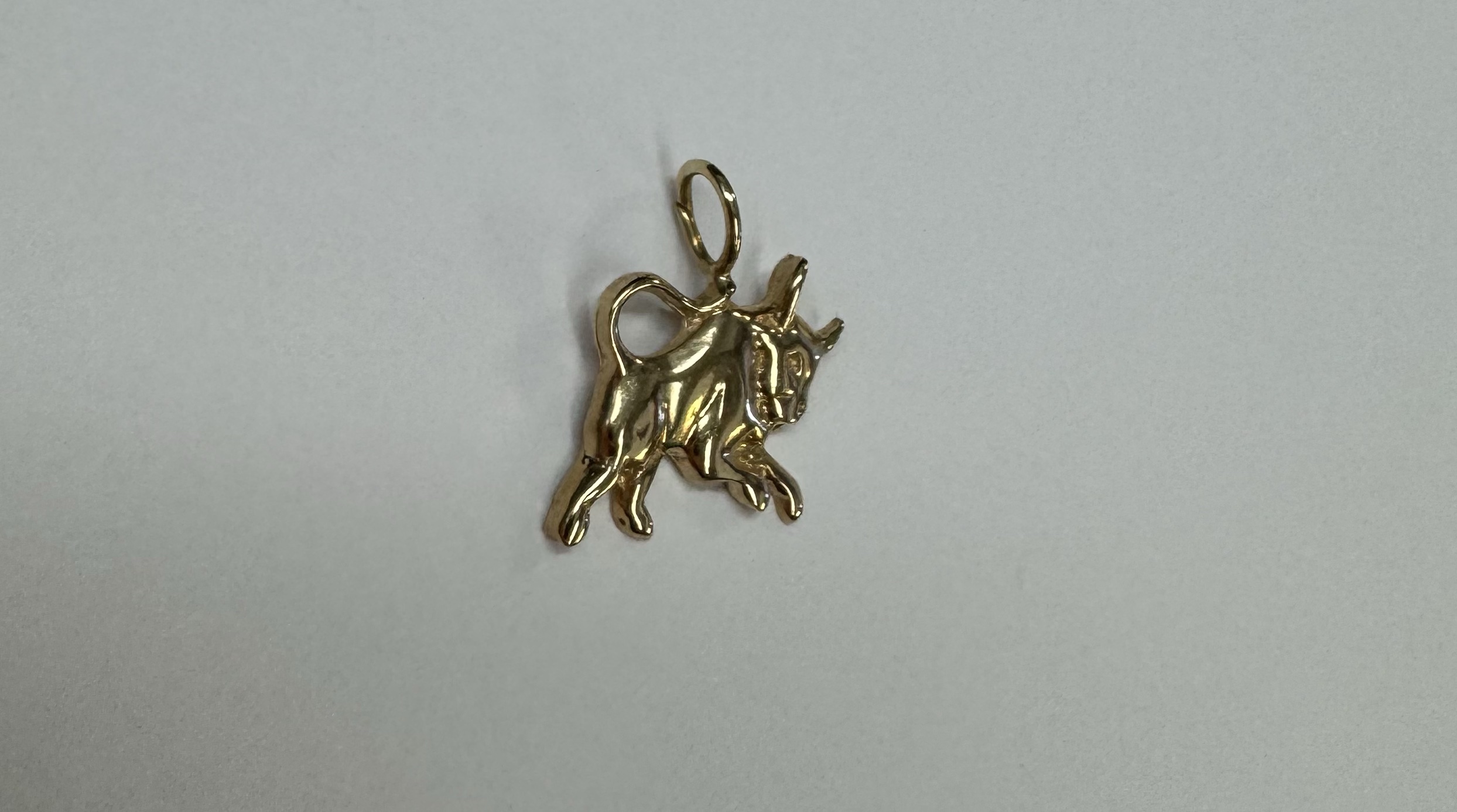 14k yellow gold Bull charm/pendant. This piece has an entire weight of 1.0 grams.