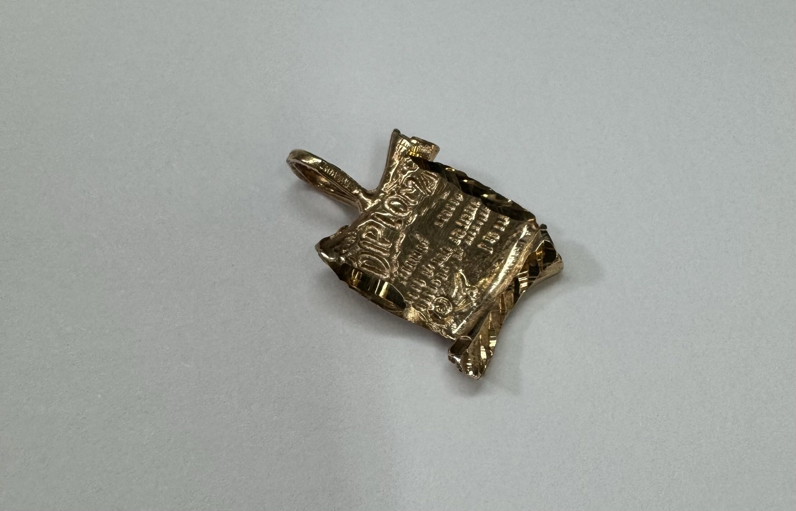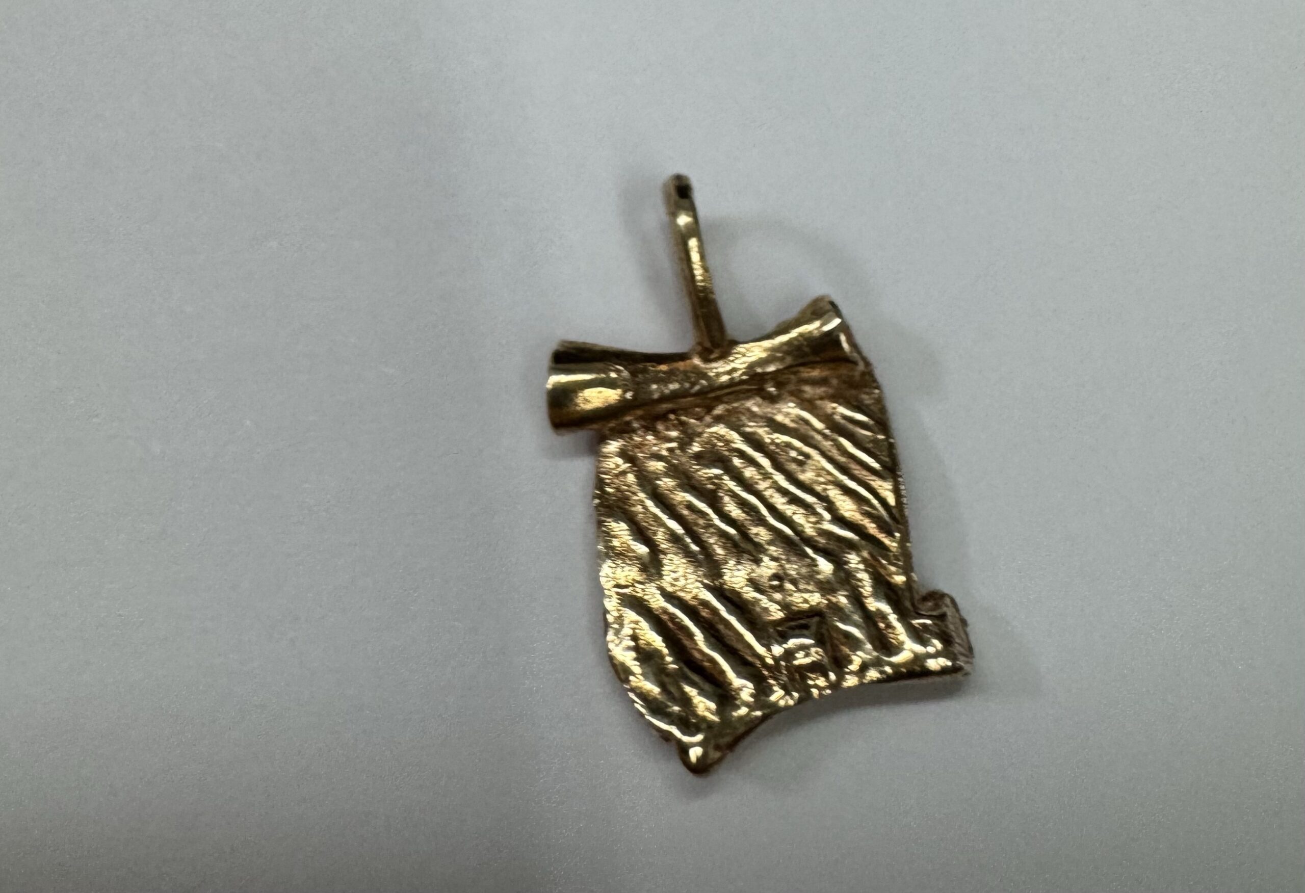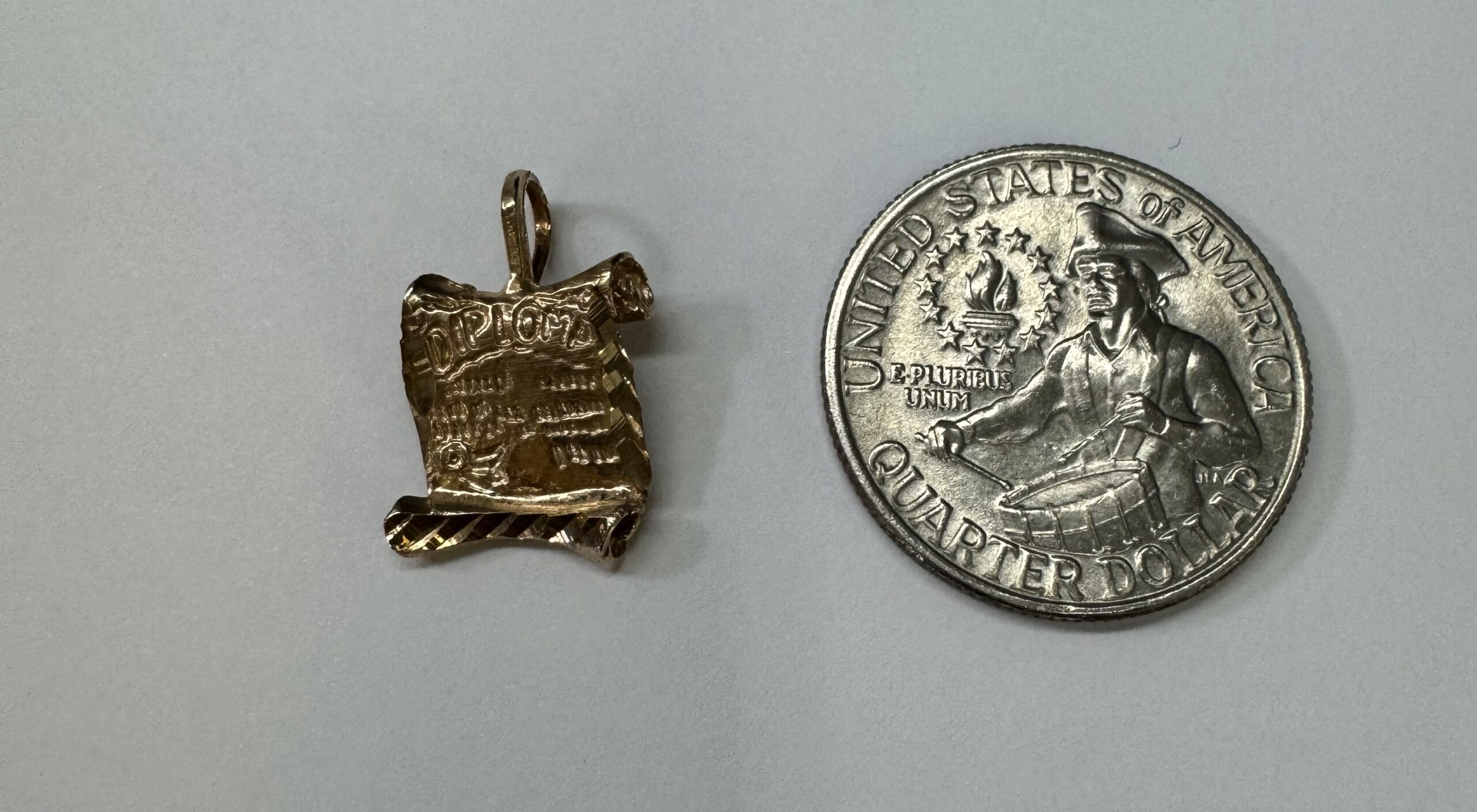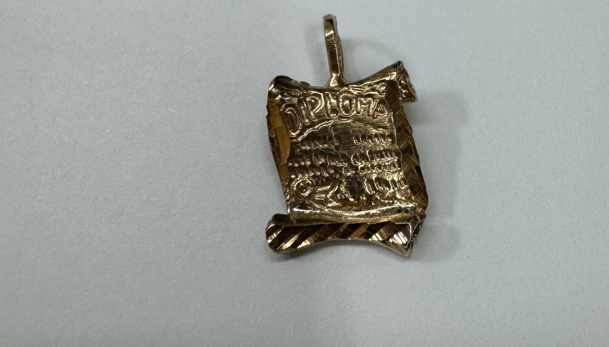 14k yellow gold engraved Diploma charm/pendant. This piece has an entire weight of 1.6 grams.