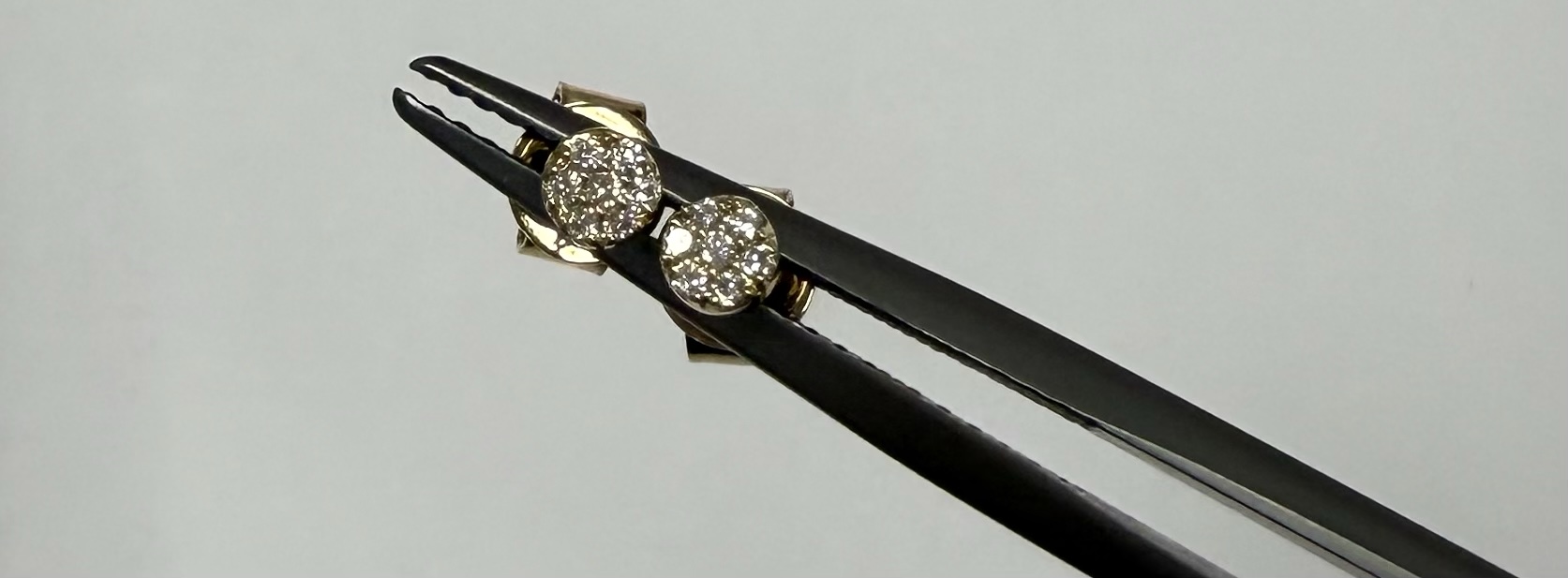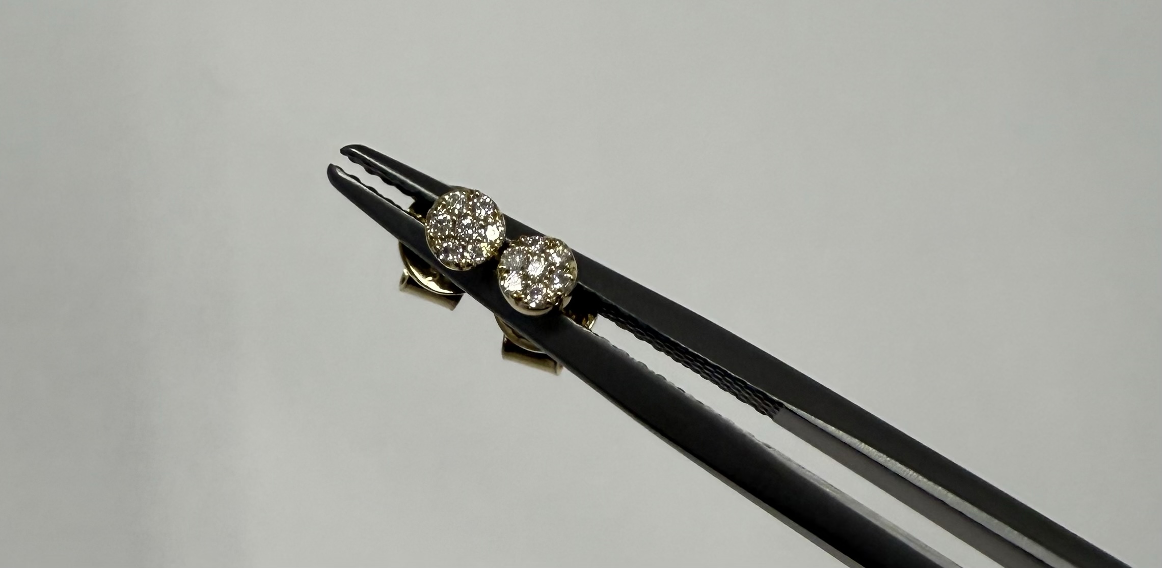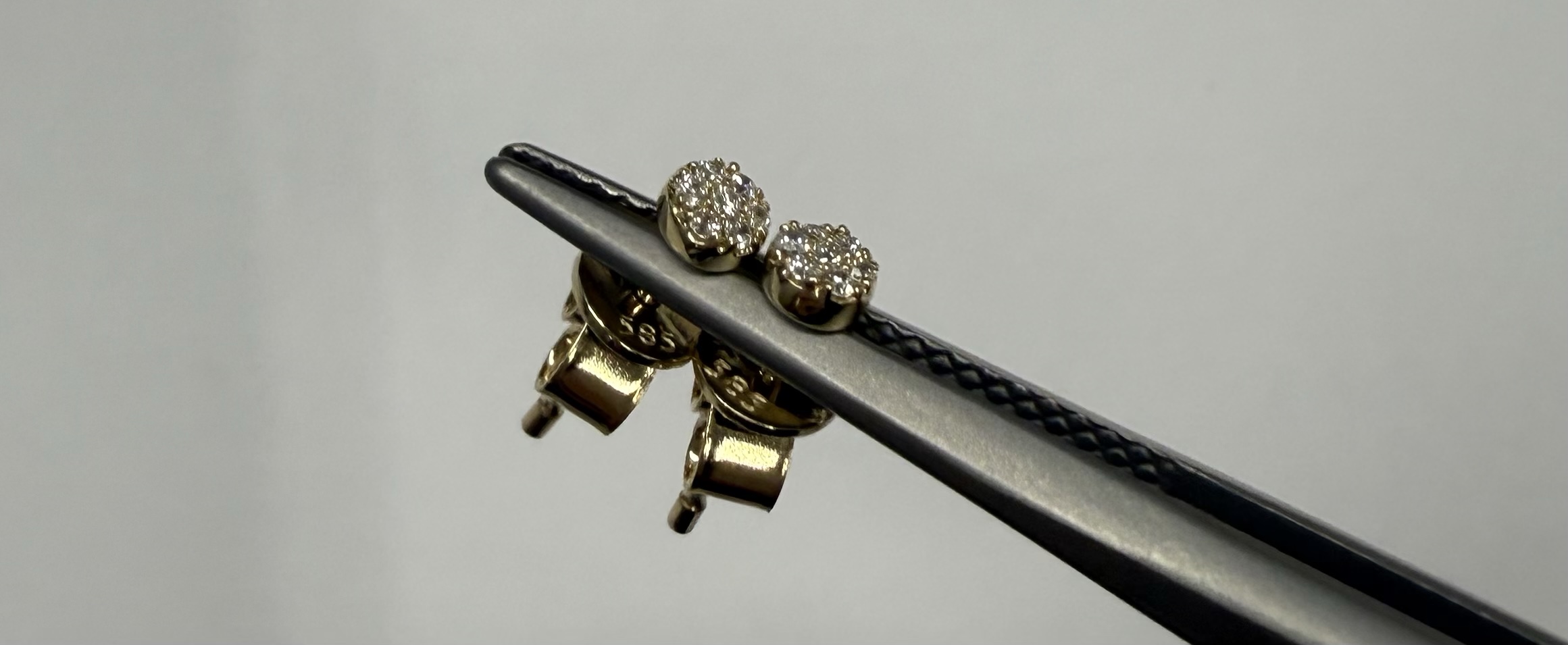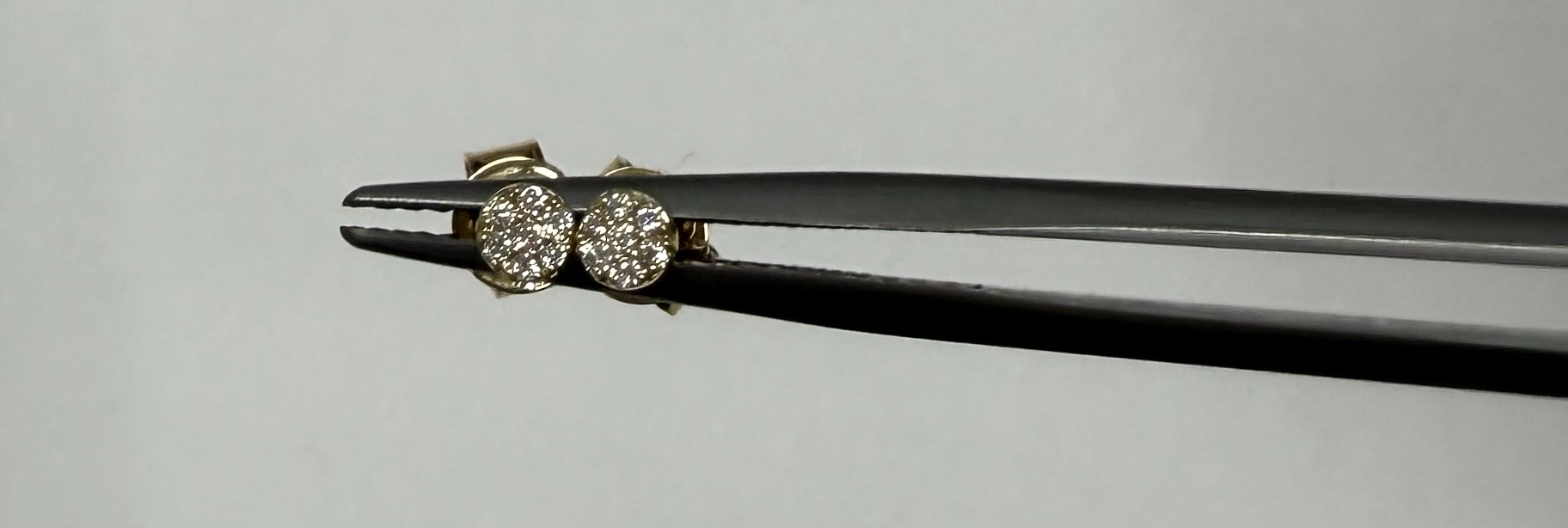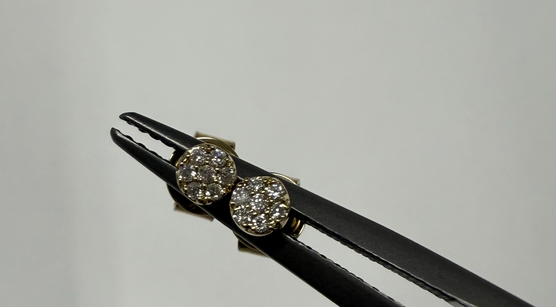 14k yellow gold round genuine .05 cttw Round Brilliant Cut diamond cluster stud earrings. The diamonds average G-H in color, and SI1-SI2 in clarity. These earrings have an entire weight of 0.9 grams.