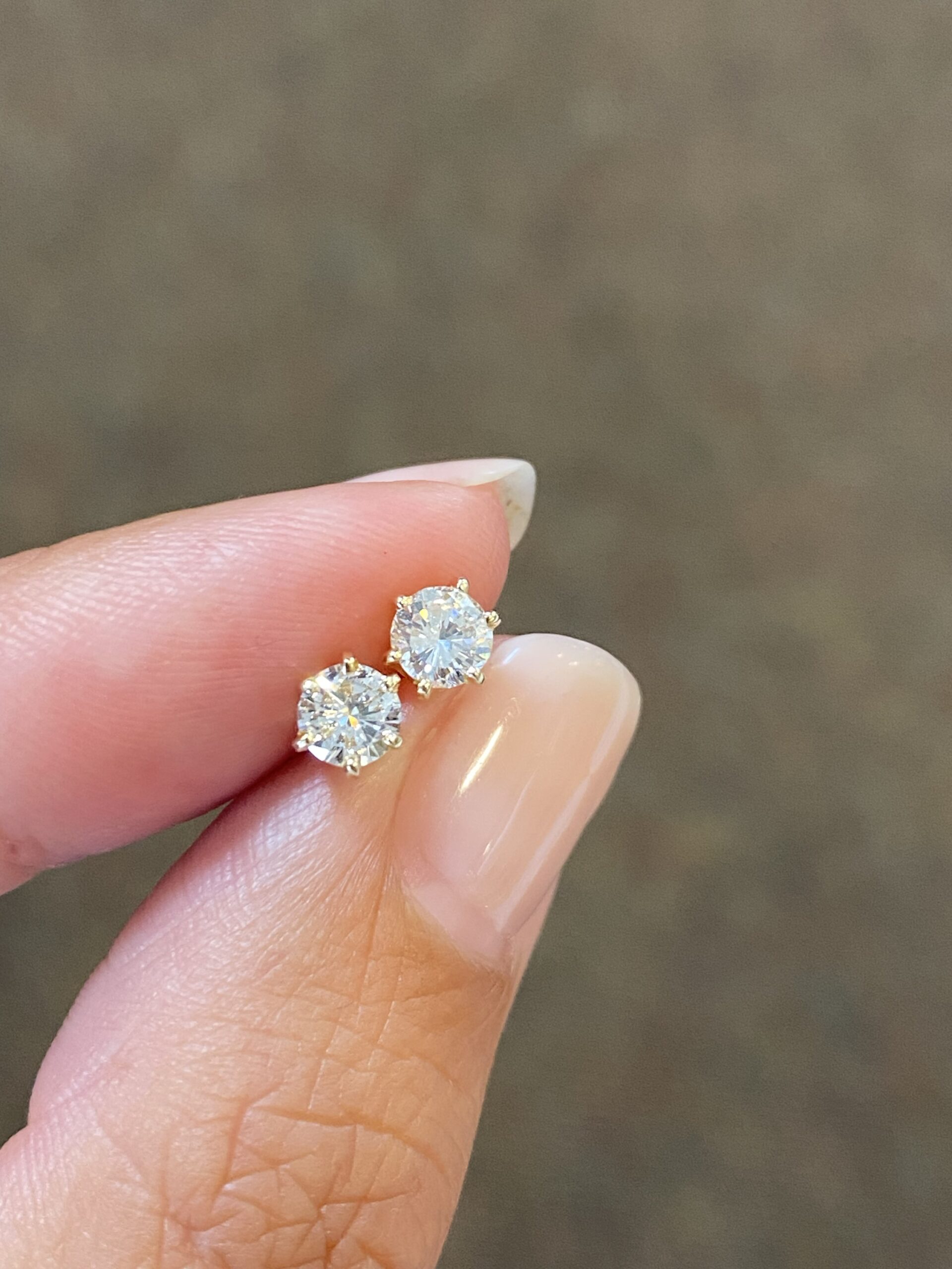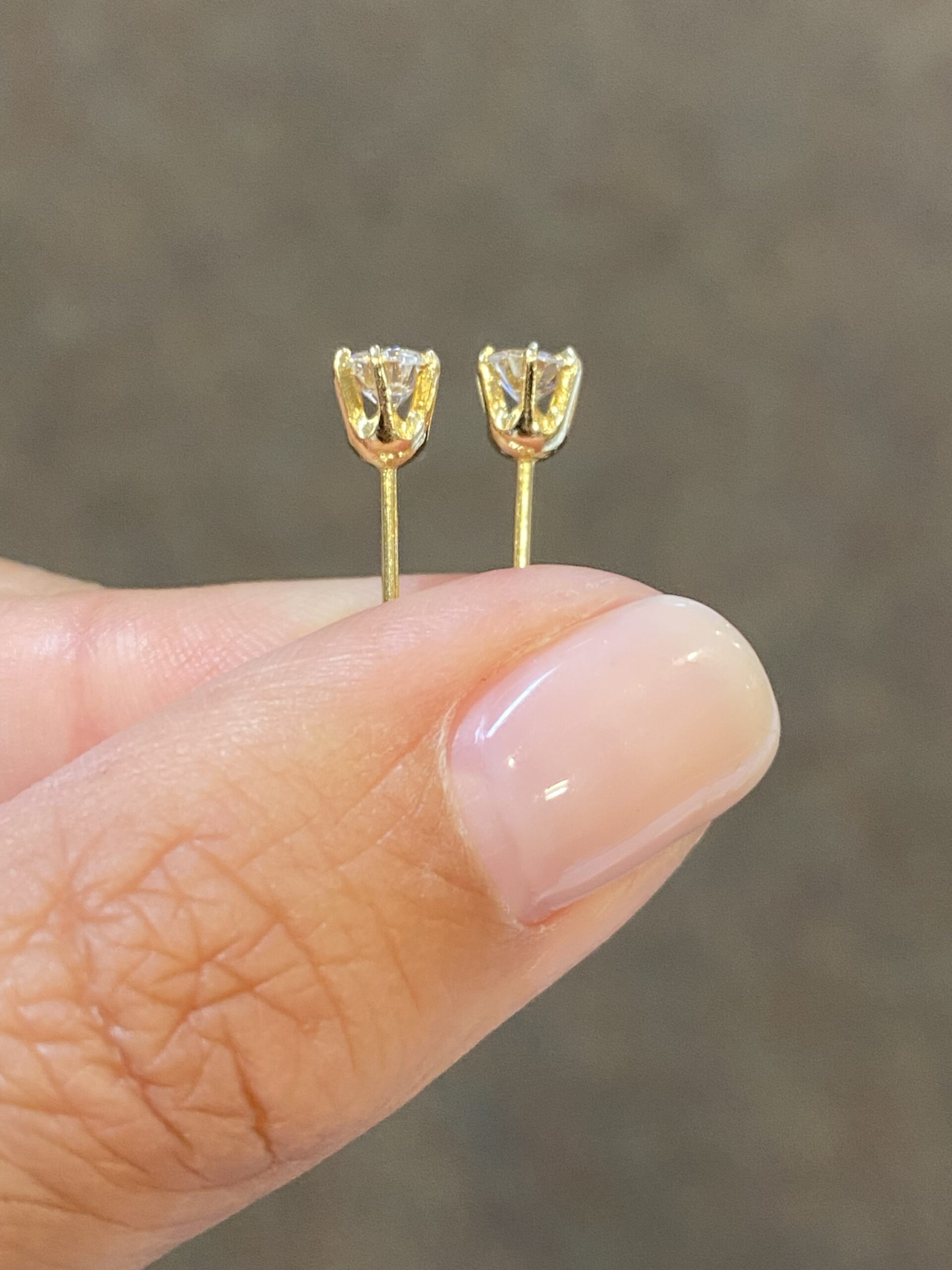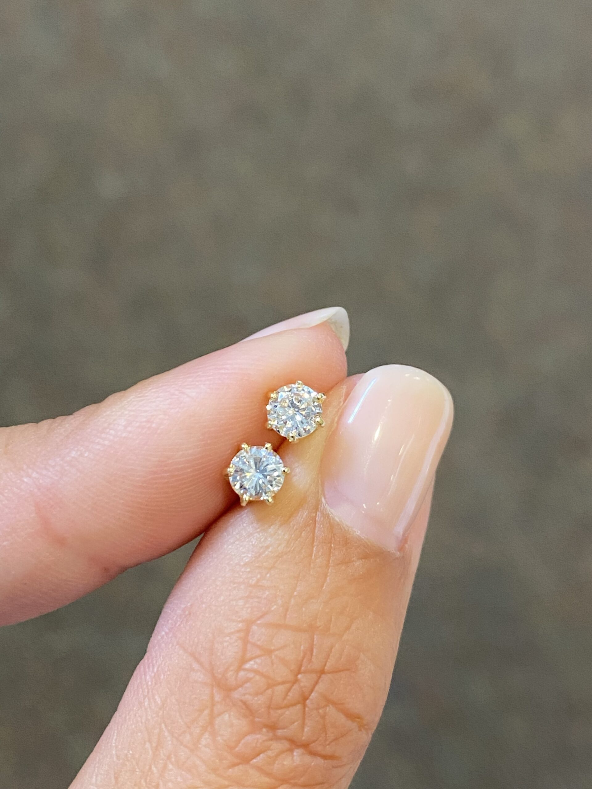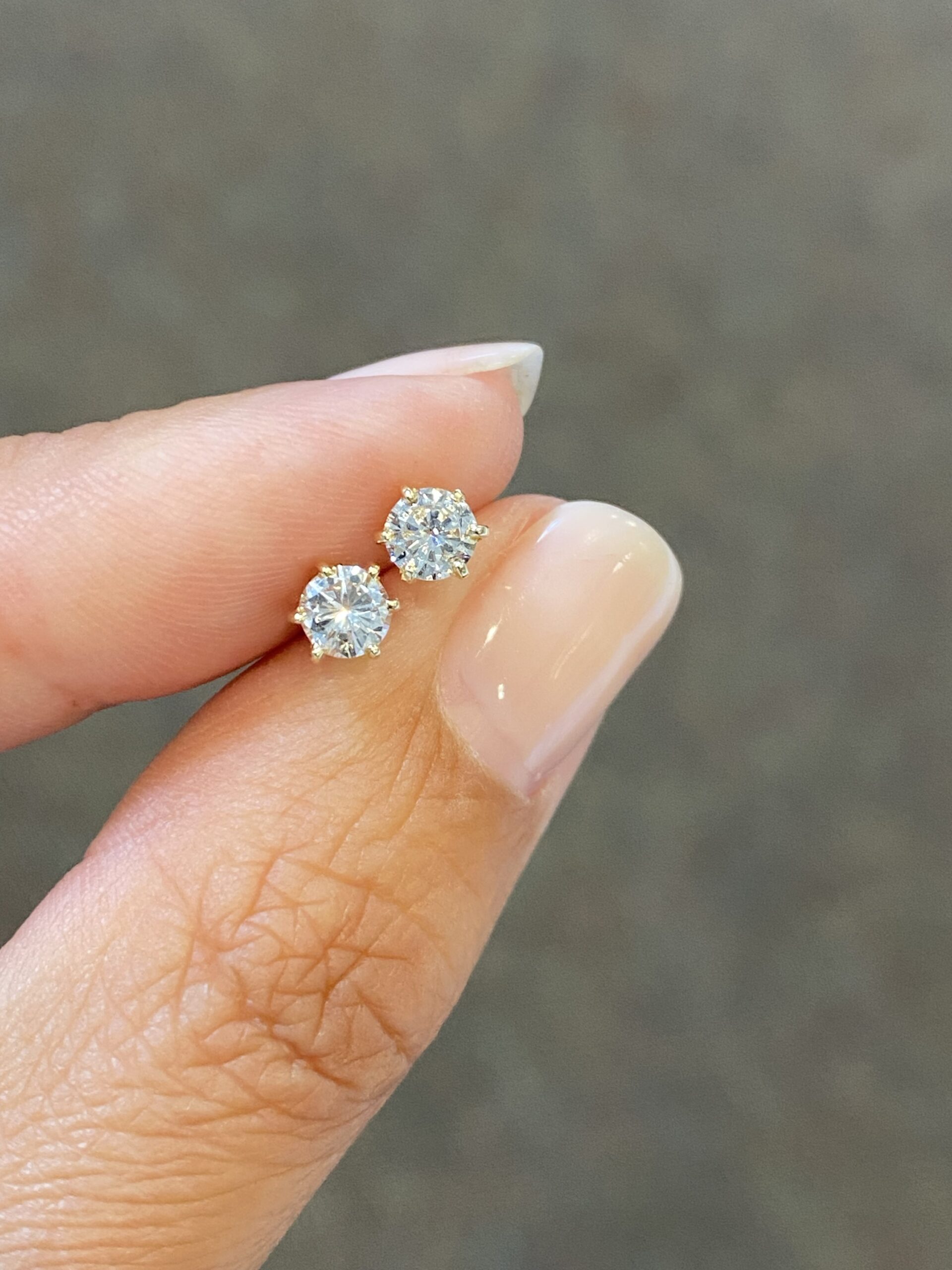 14k yellow gold 6 prong genuine 1/2 cttw Round Brilliant Cut diamond studs earrings with I color, VS2 clarity. These earrings have an entire weight of 0.7 grams.