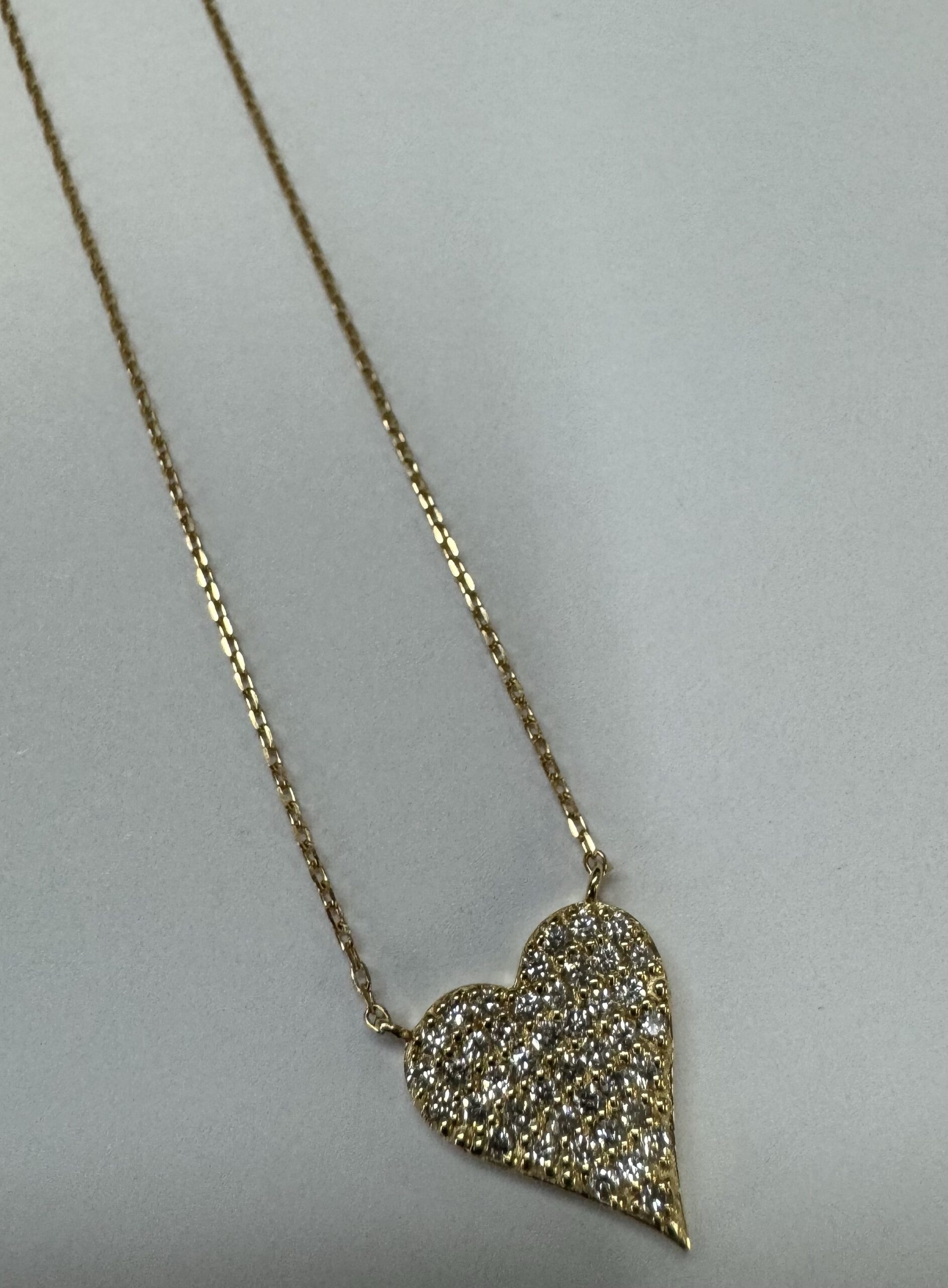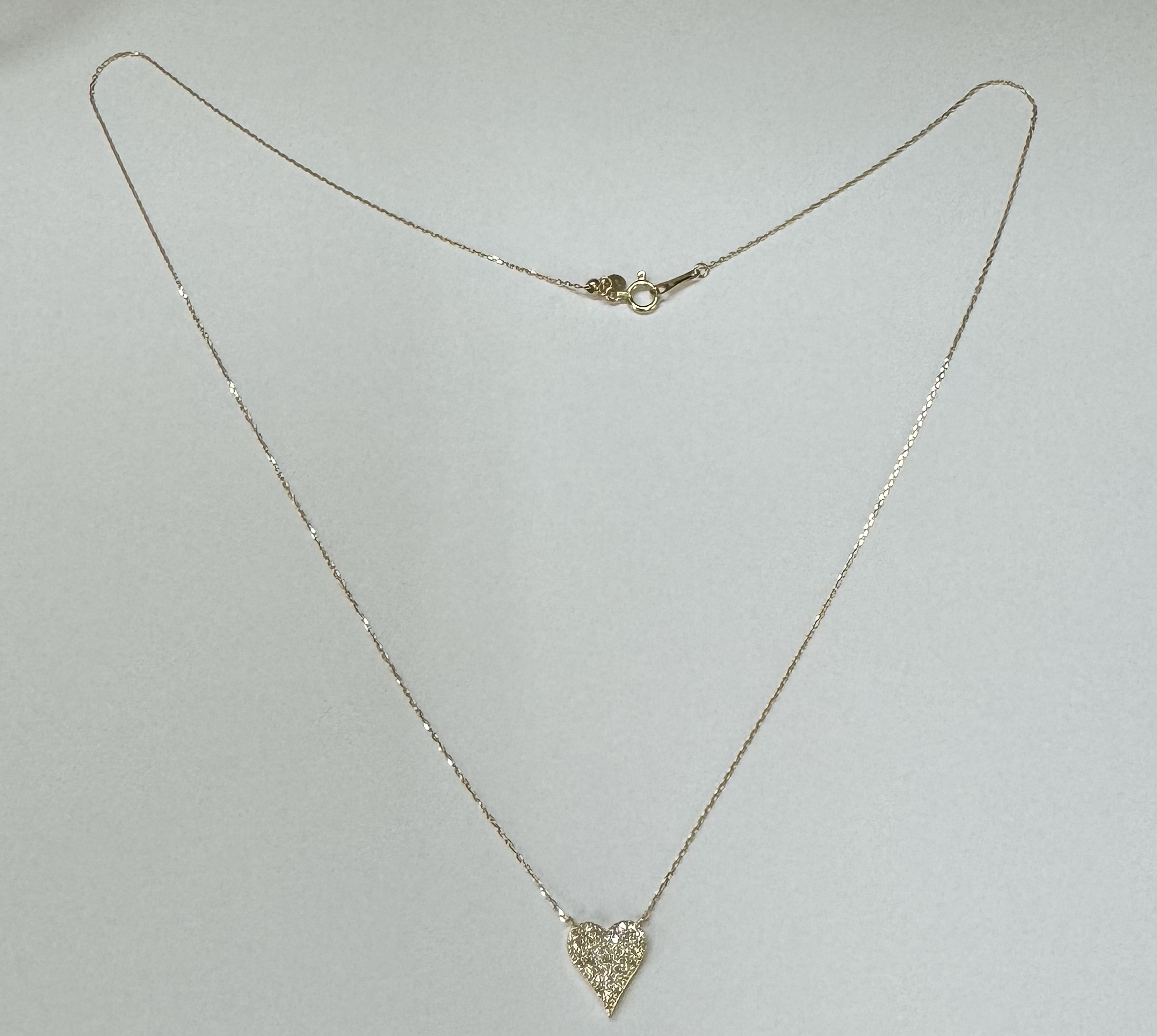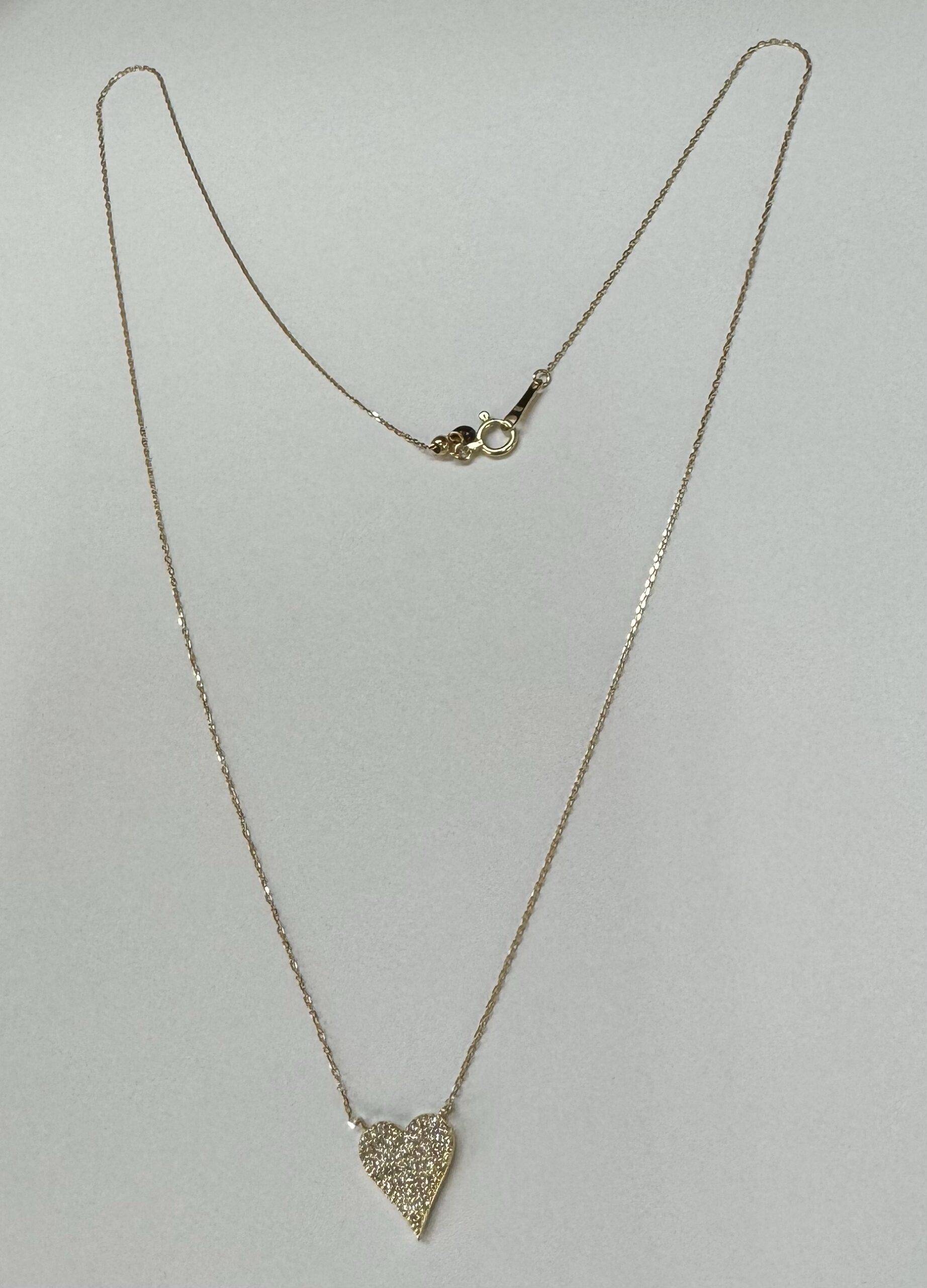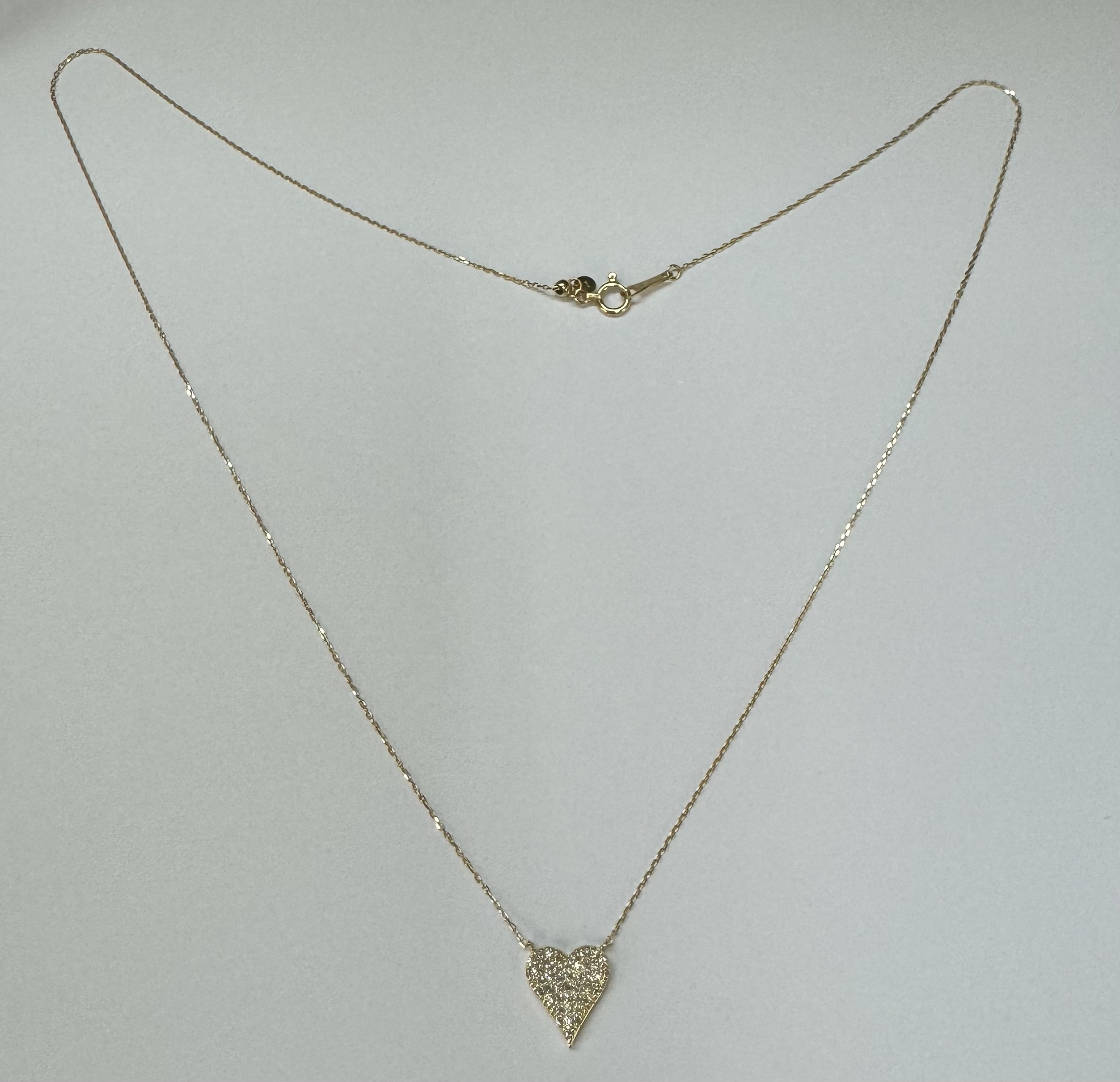 18k yellow gold genuine .22 cttw Round Brilliant Cut diamond flat heart pendant. The diamonds average H in color, and SI1-SI2 in clarity. This pendant is adjustable up to 18″. This piece has an entire weight of grams.