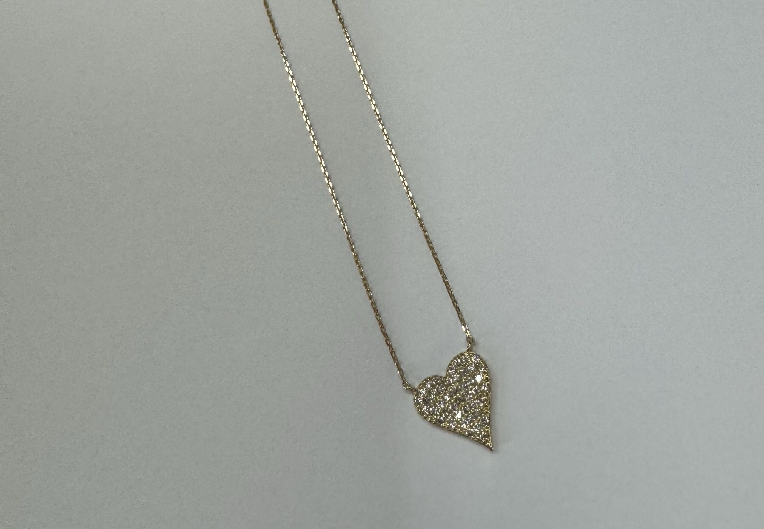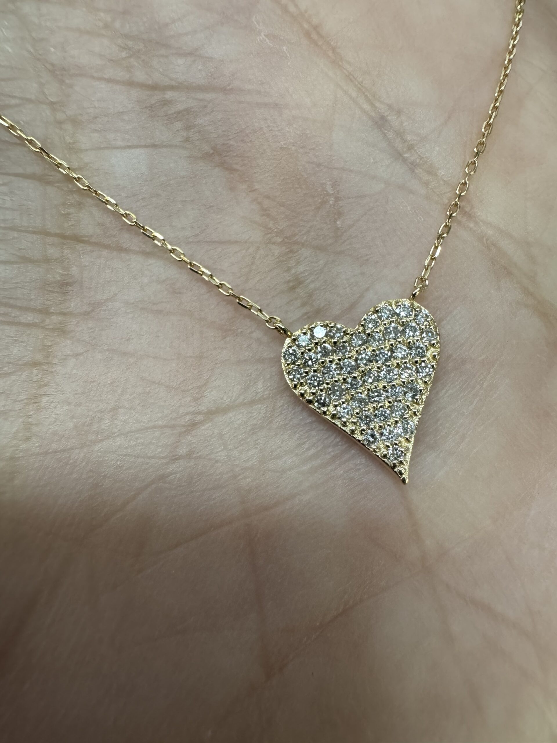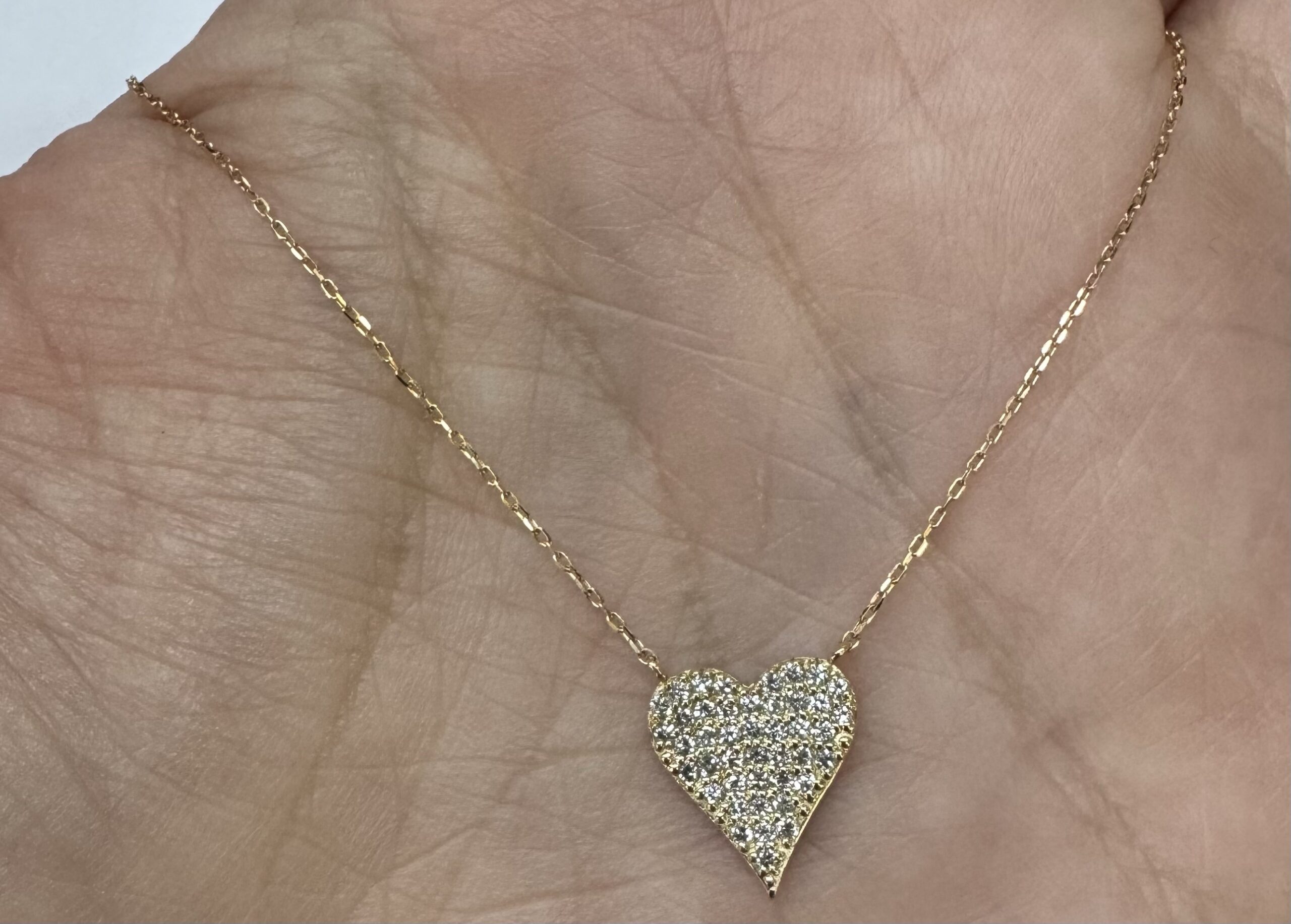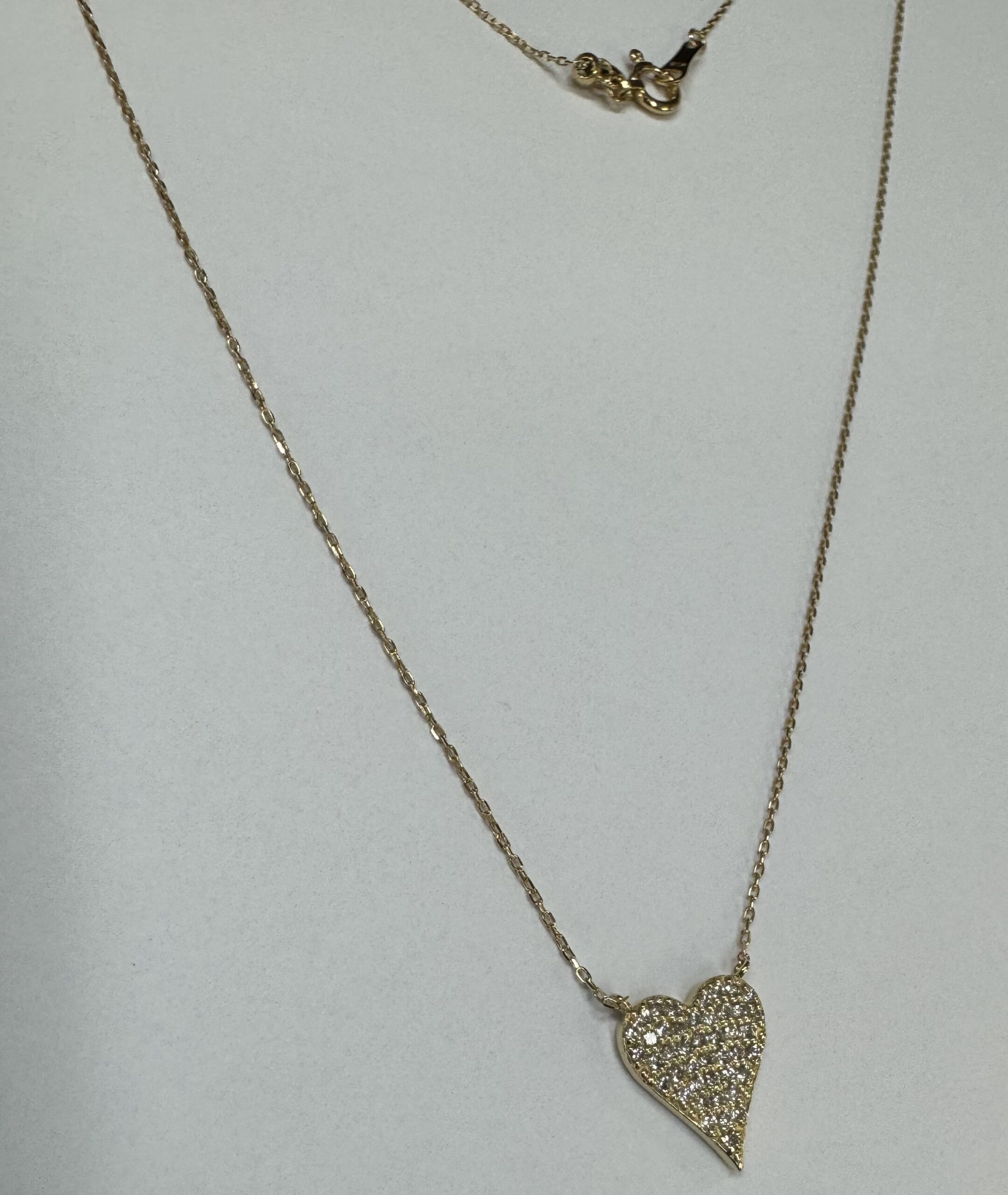 18k yellow gold genuine .22 cttw Round Brilliant Cut diamond flat heart pendant. The diamonds average H in color, and SI1-SI2 in clarity. This pendant is adjustable up to 18″. This piece has an entire weight of grams.