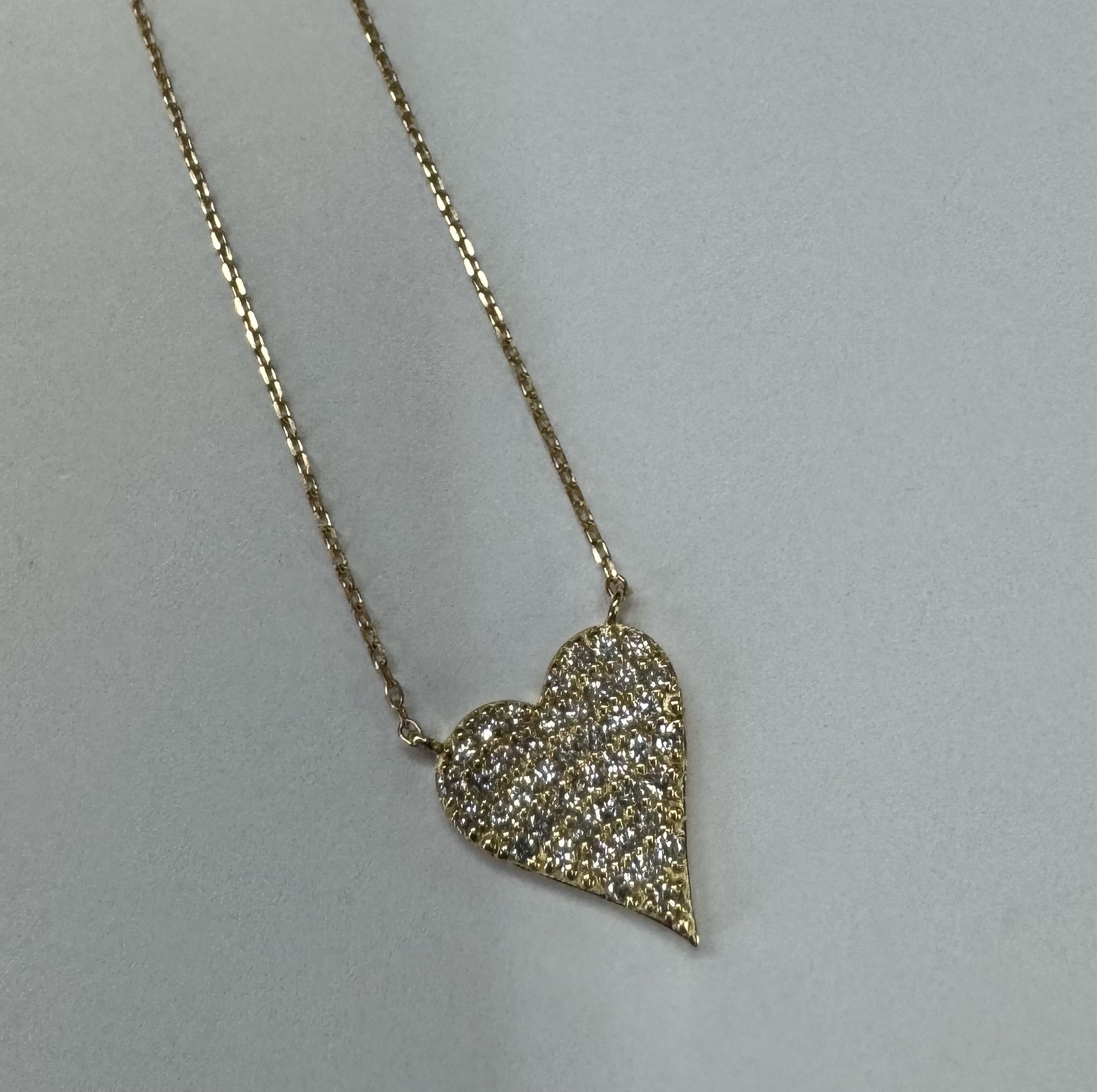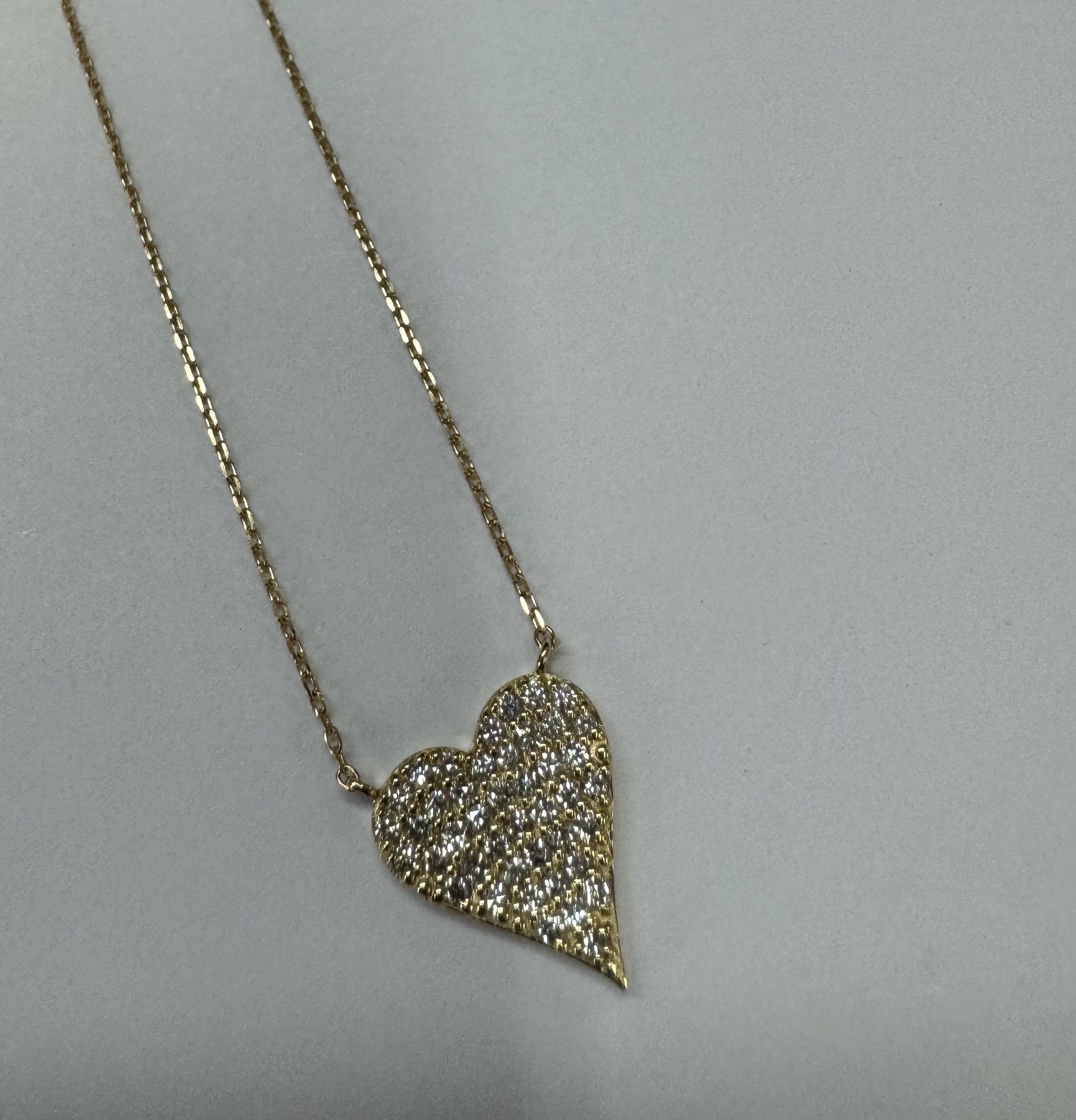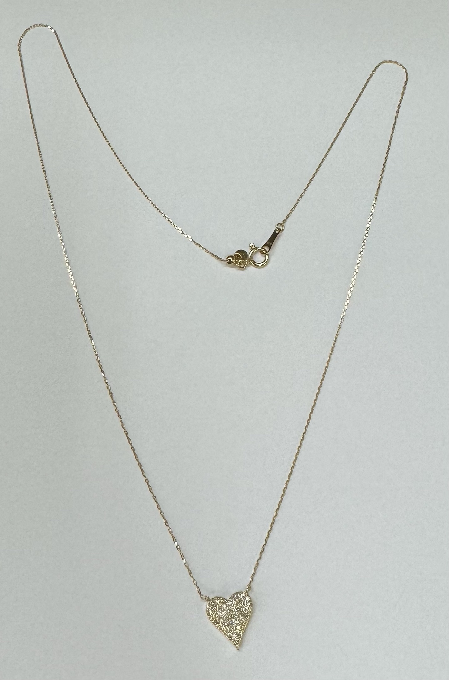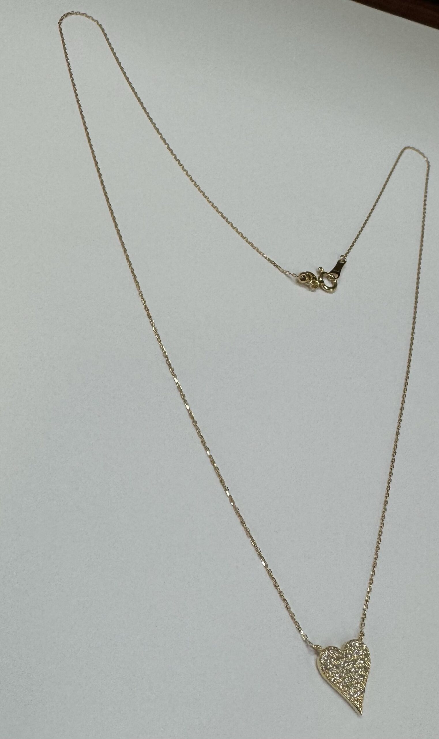 18k yellow gold genuine .22 cttw Round Brilliant Cut diamond flat heart pendant. The diamonds average H in color, and SI1-SI2 in clarity. This pendant is adjustable up to 18″. This piece has an entire weight of grams.