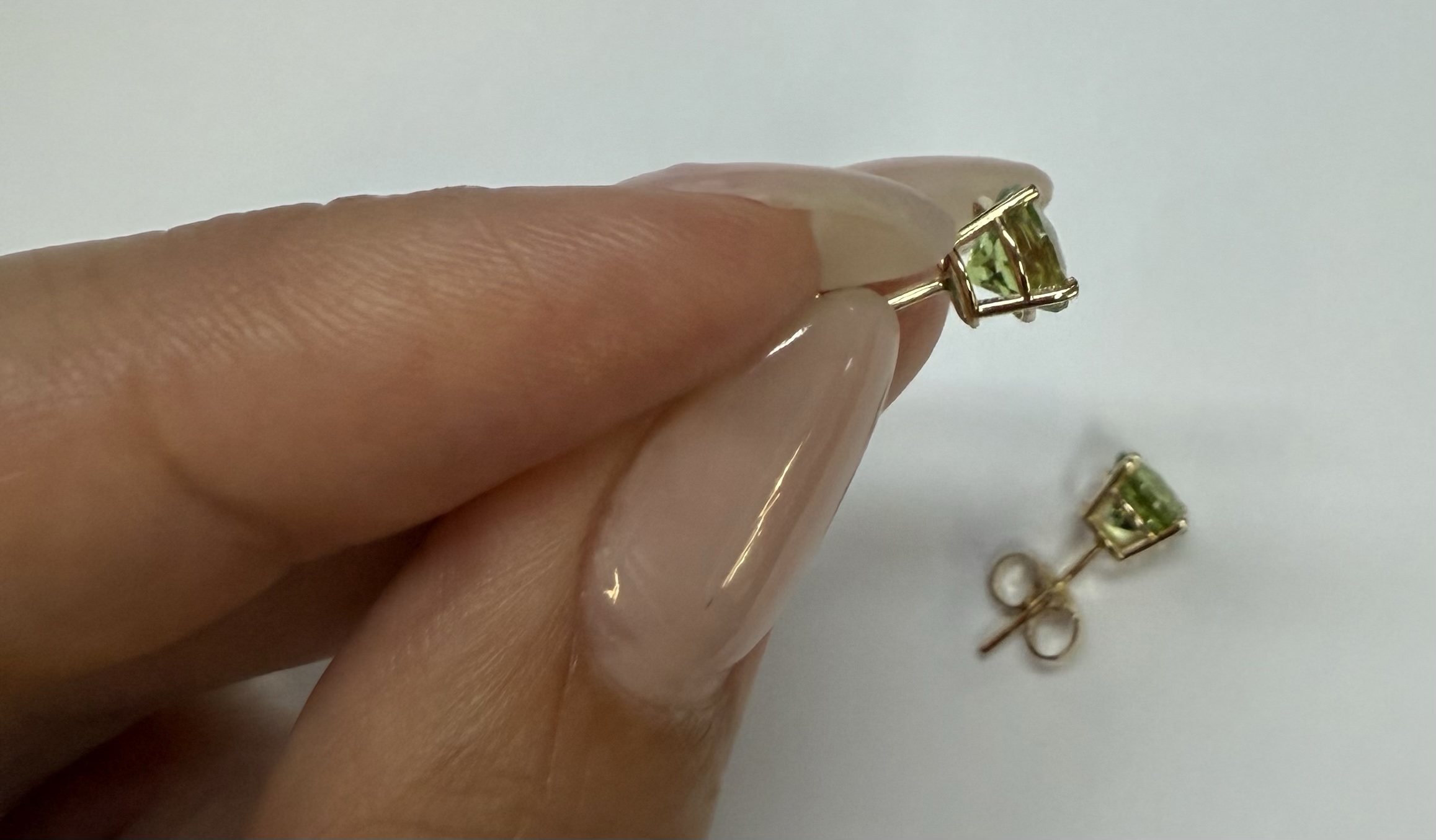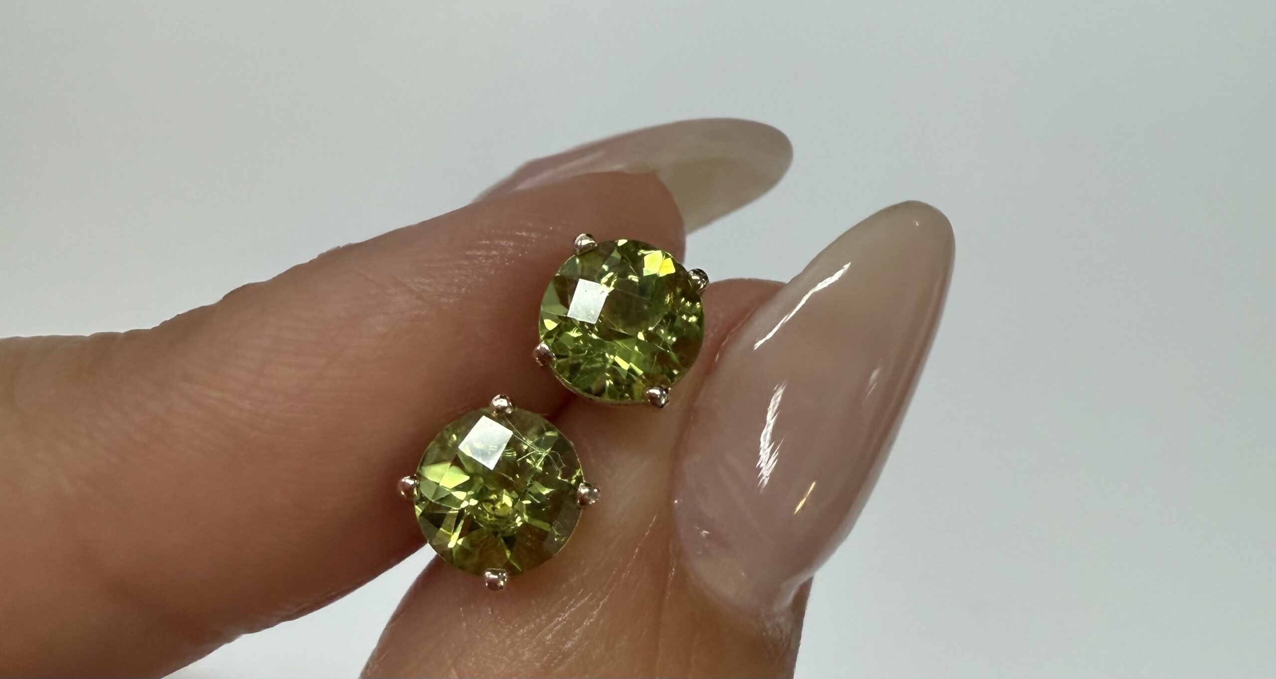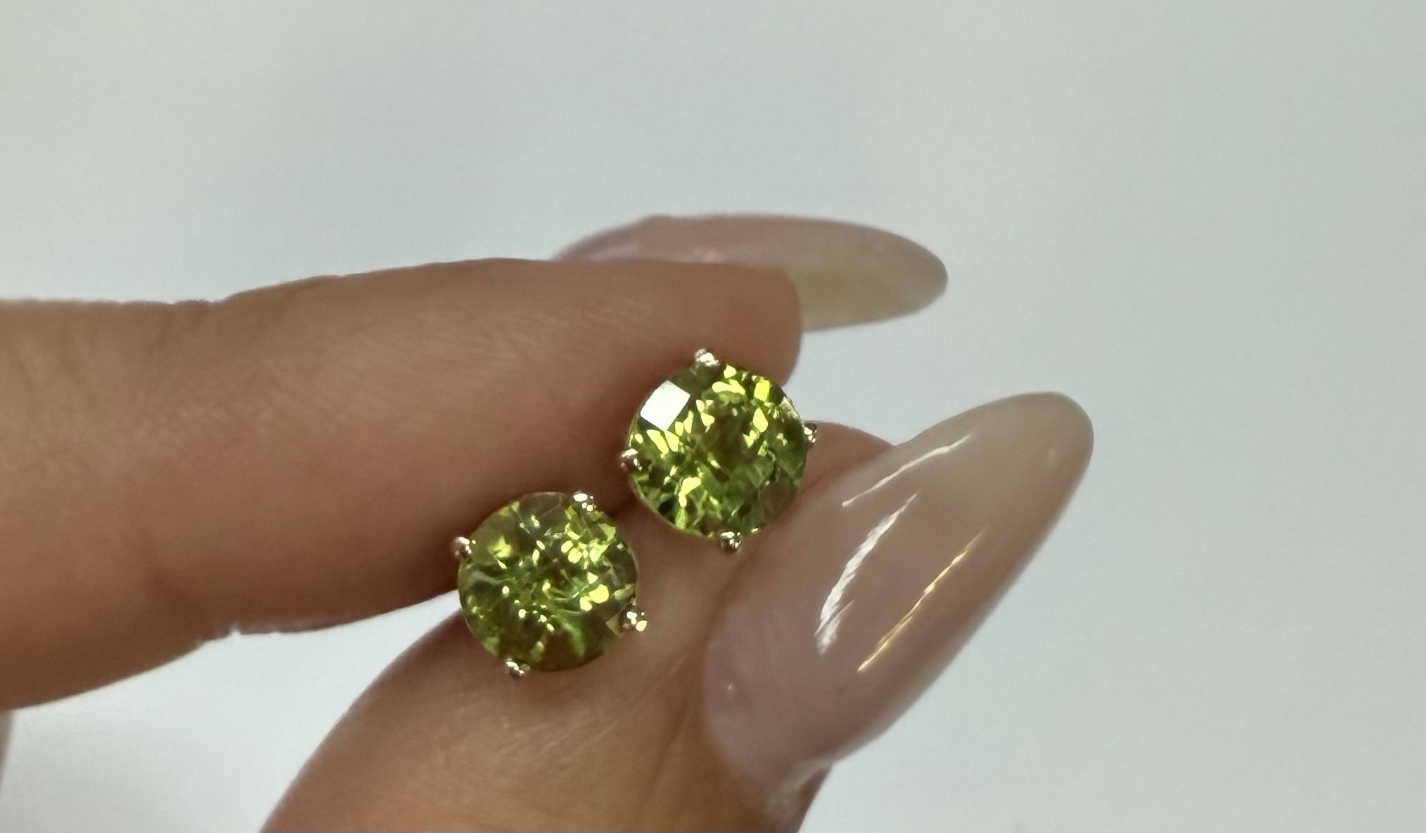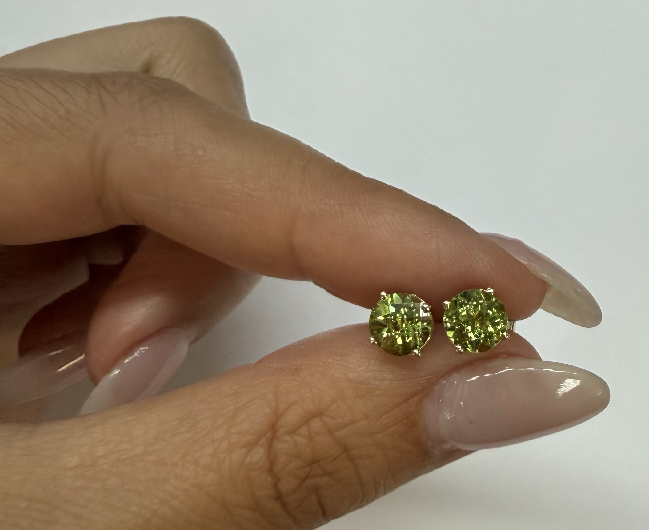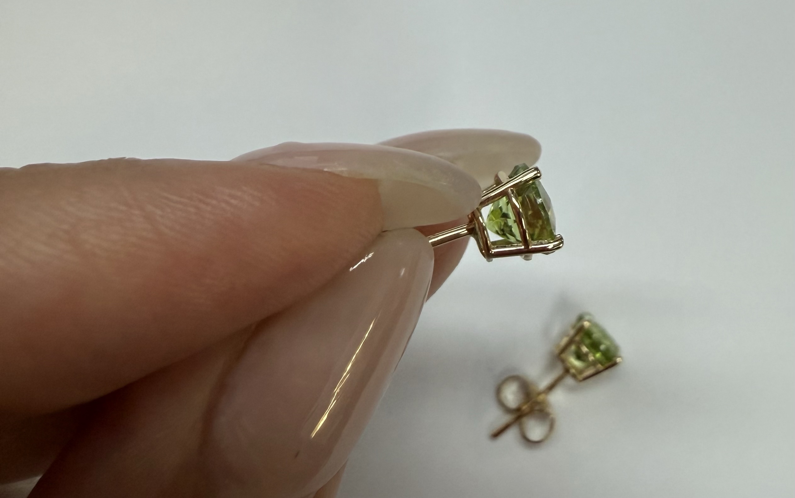 14k yellow gold four prong basket set genuine 6 mm Peridot (August birthstone) stud earrings. These earrings have an entire weight of 1.2 grams.