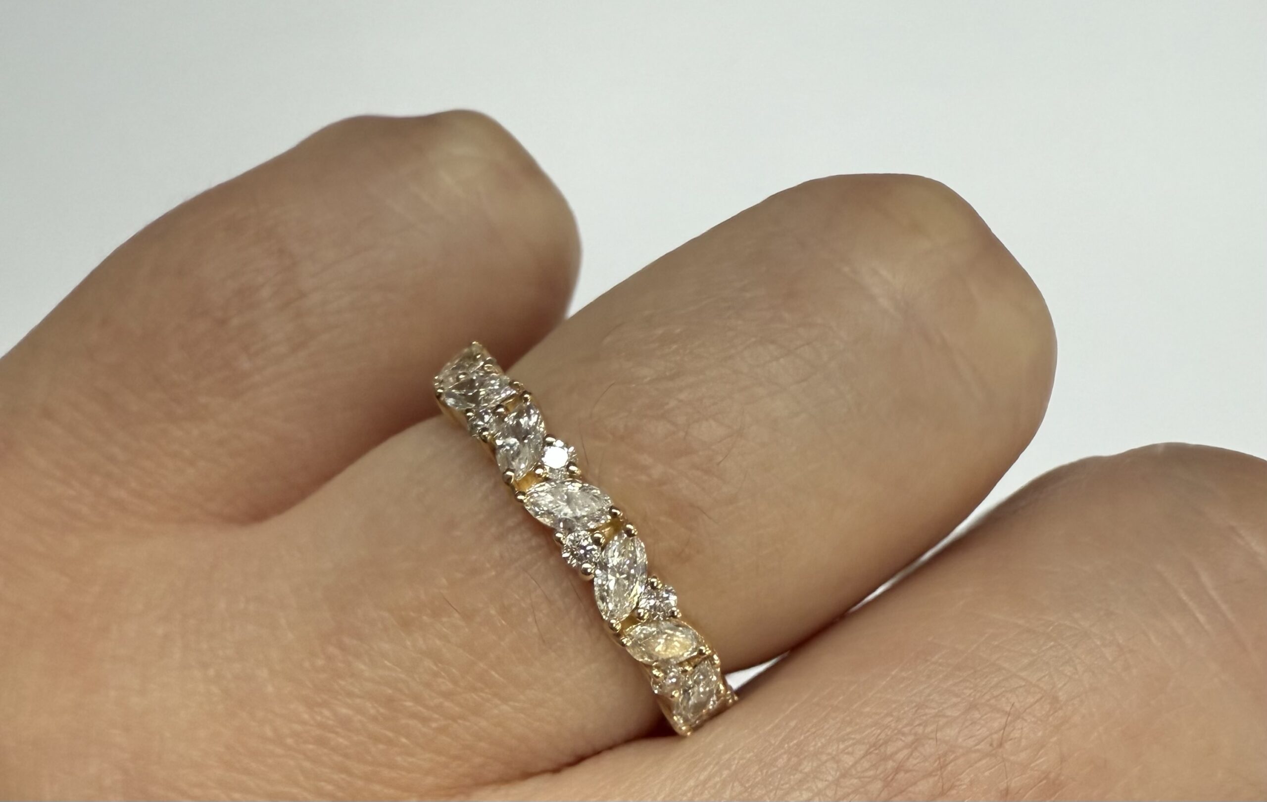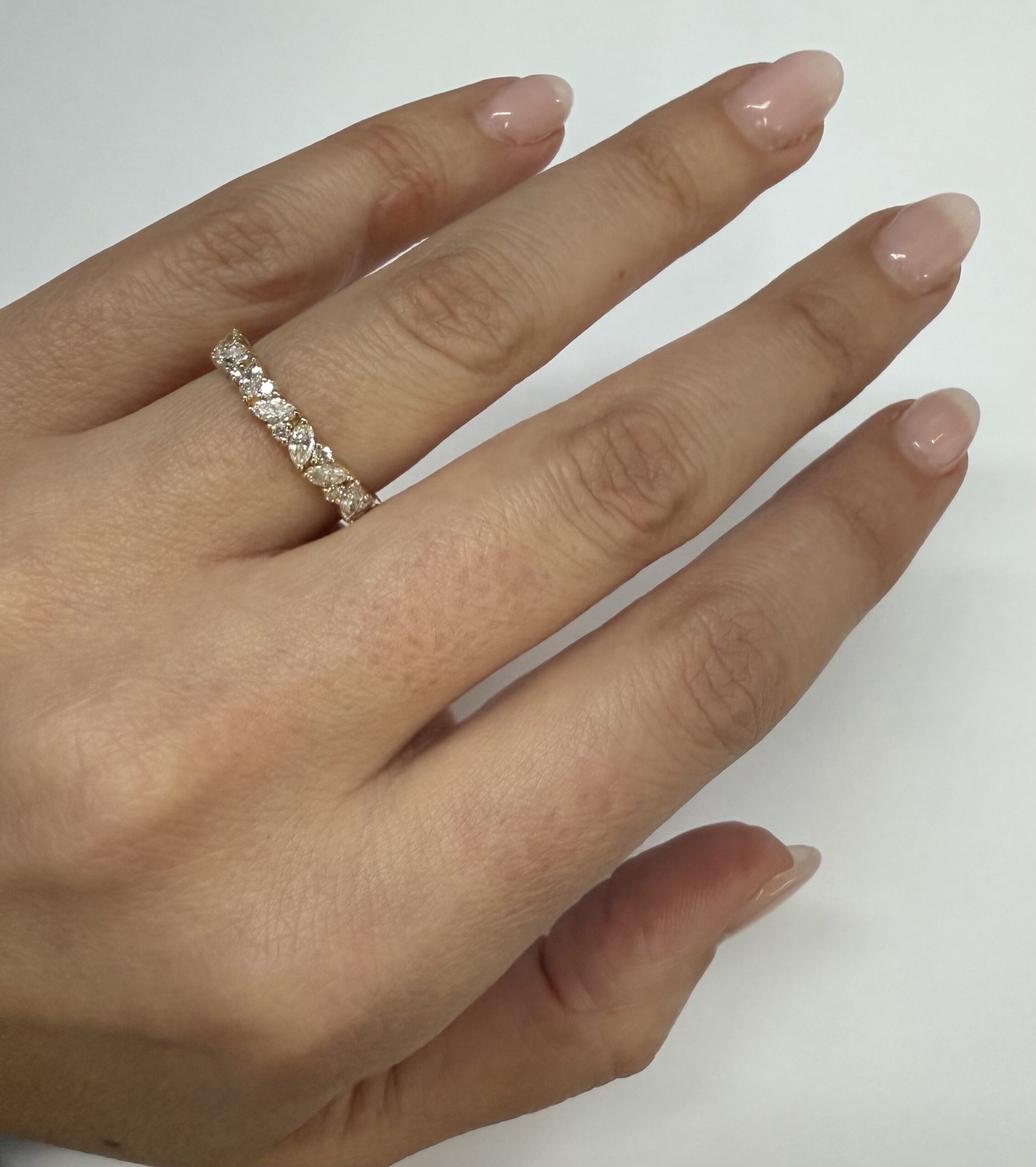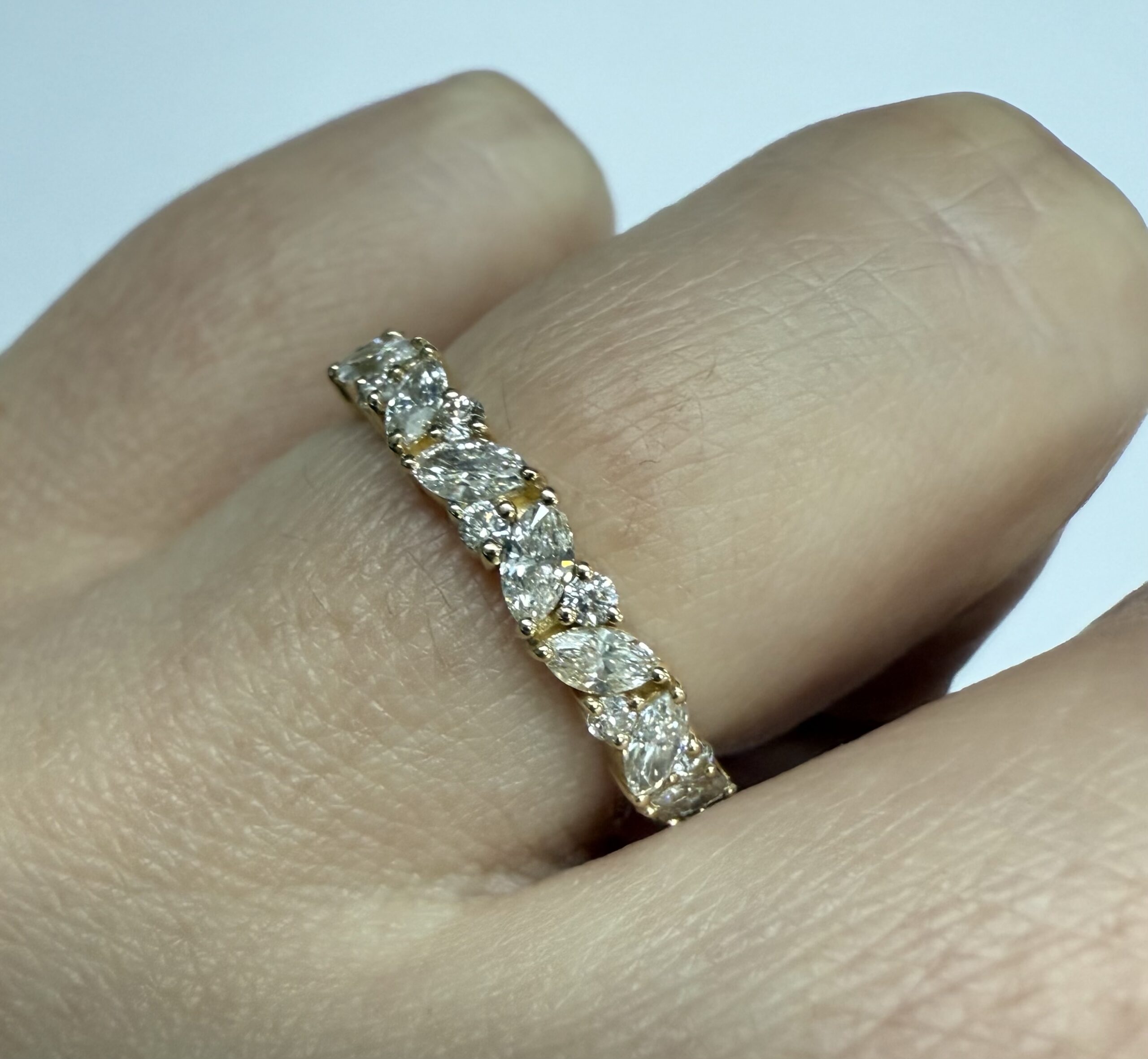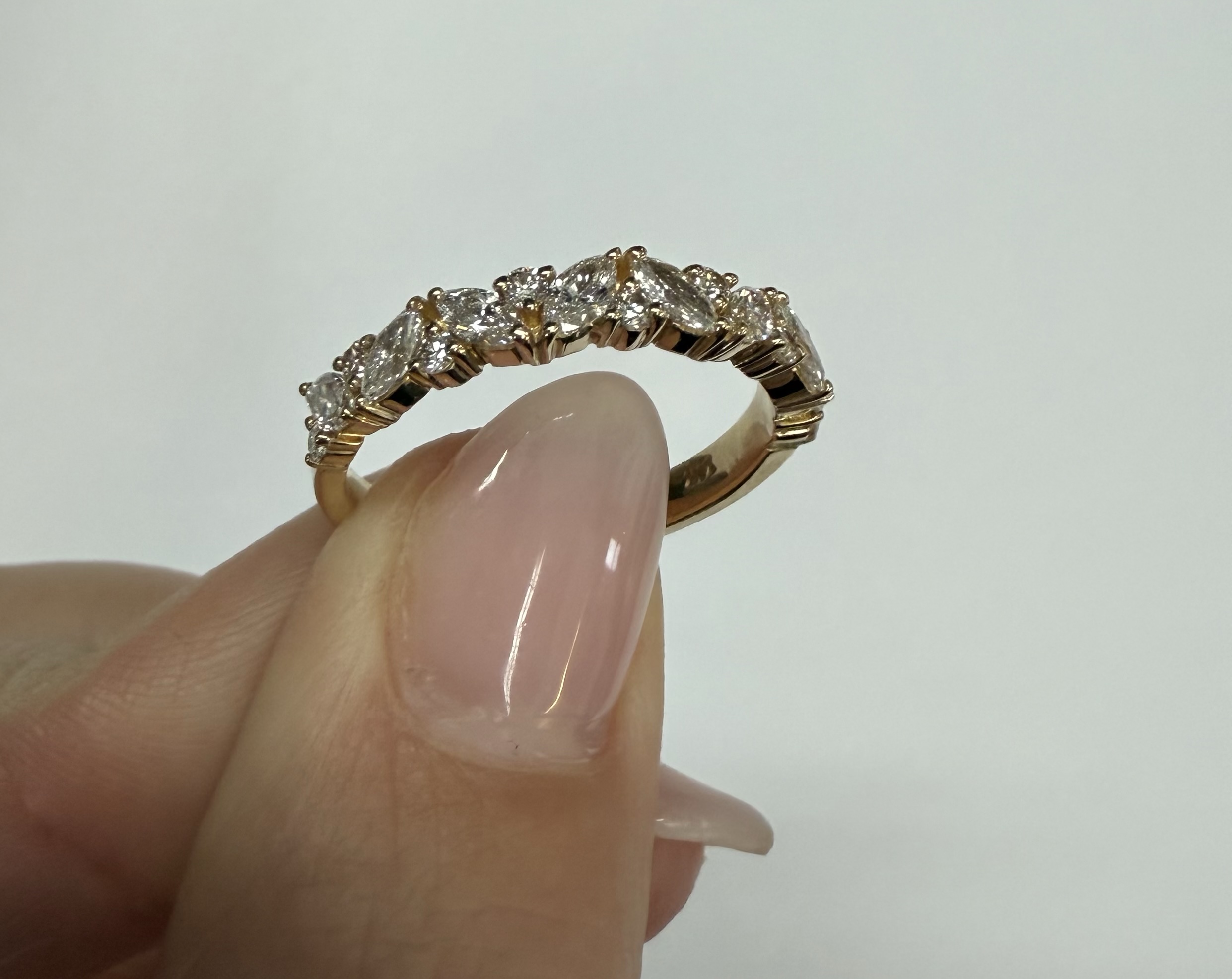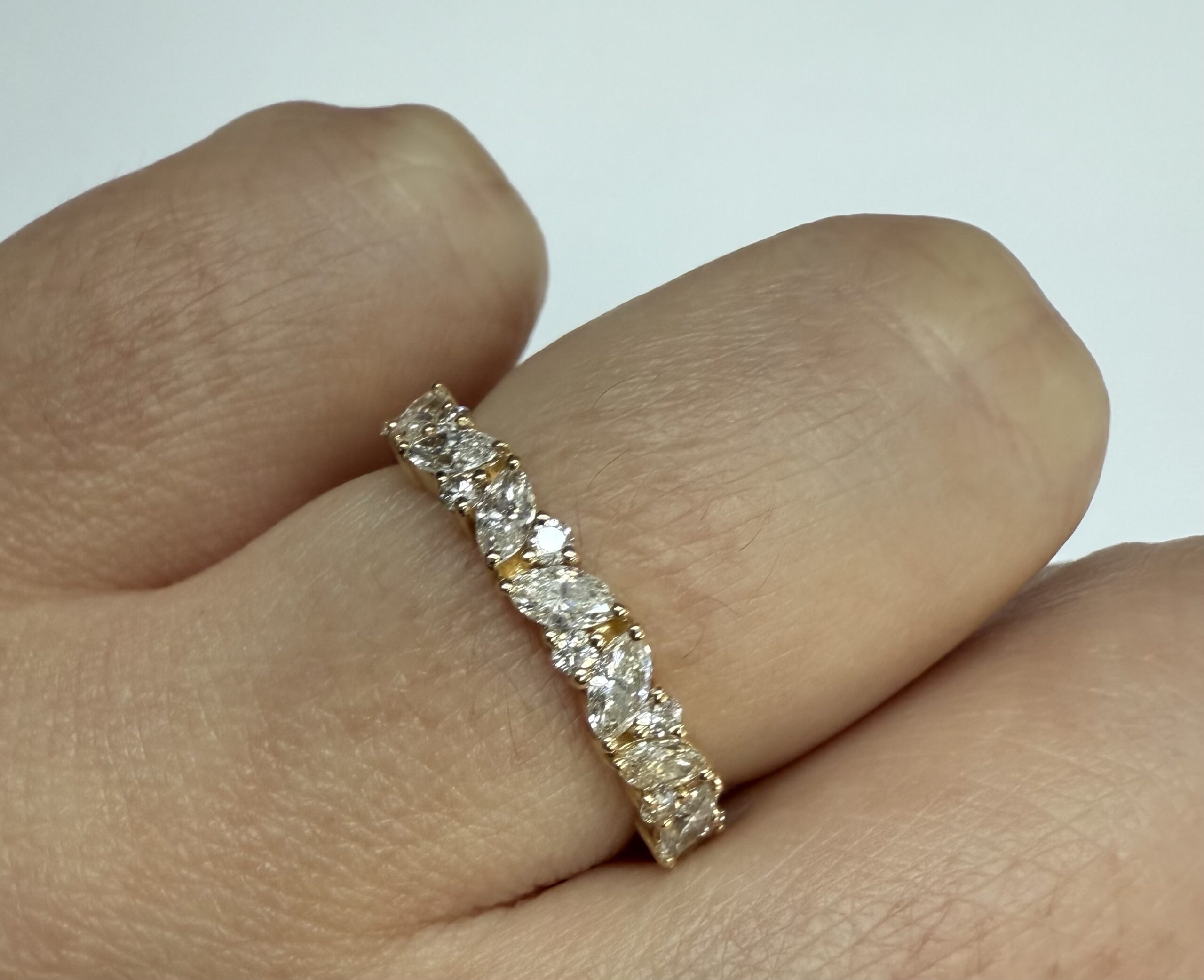 14k Yellow Gold Genuine .66 Cttw Marquise & Round Brilliant Cut Diamond Scattered Band quantity