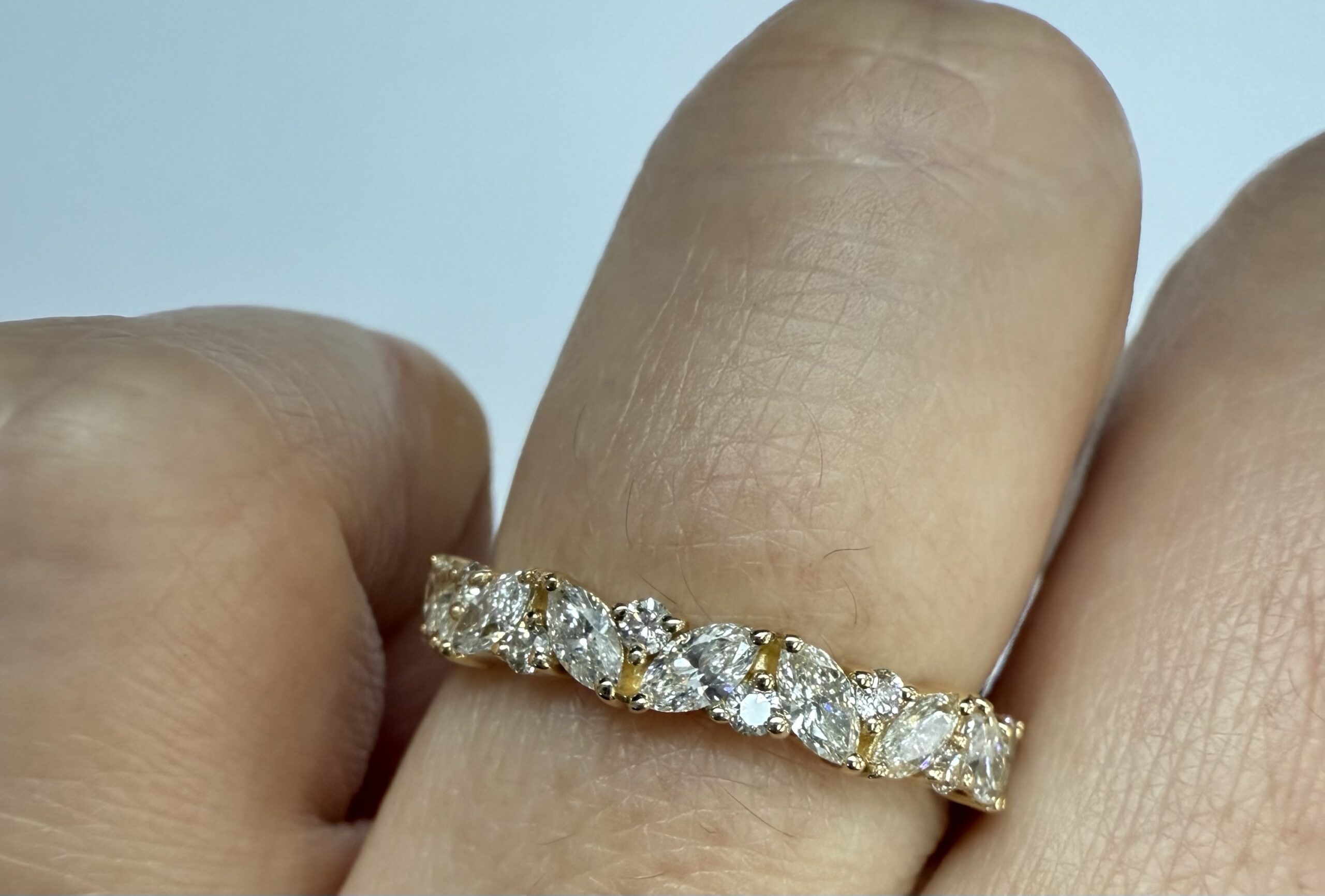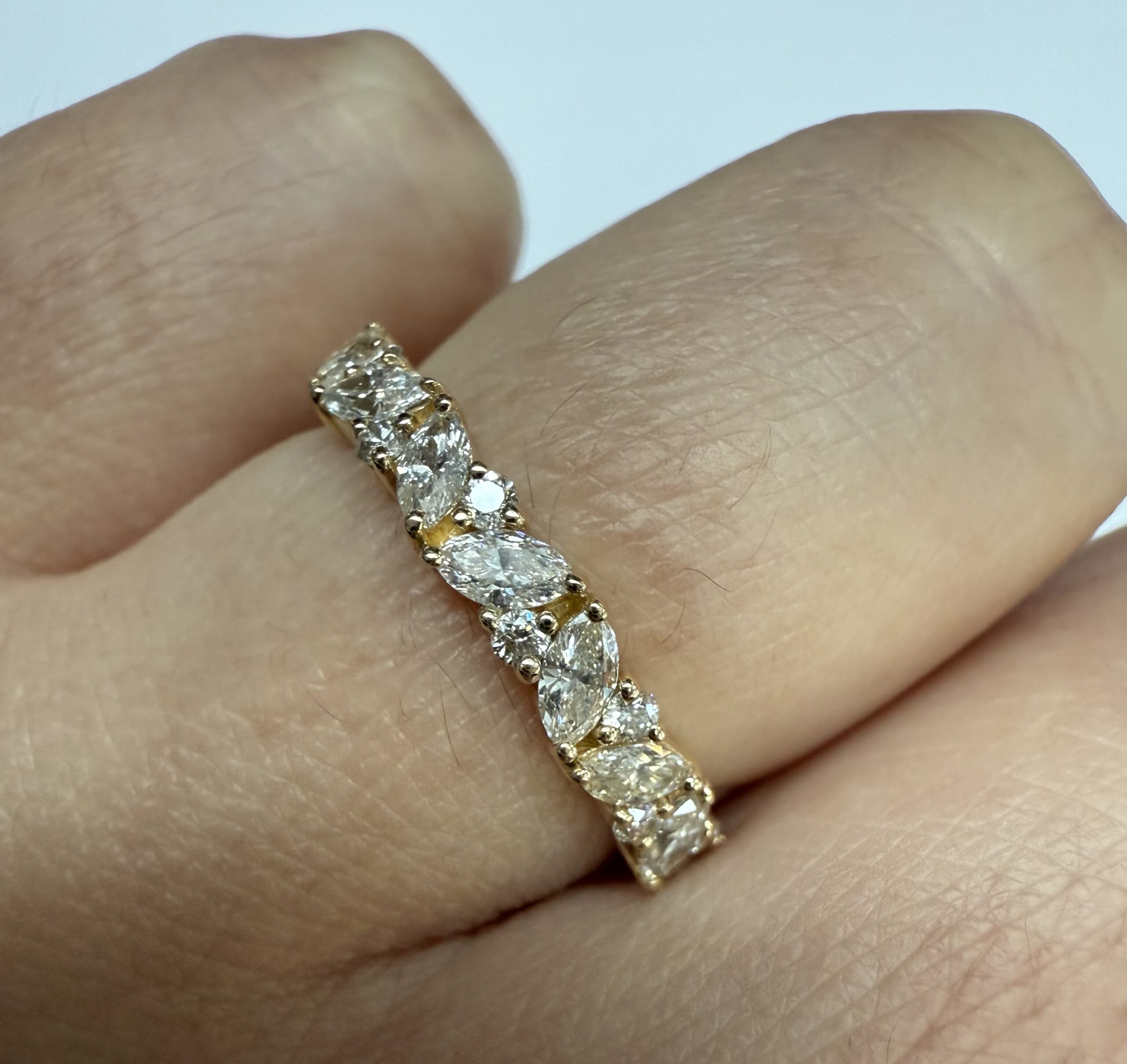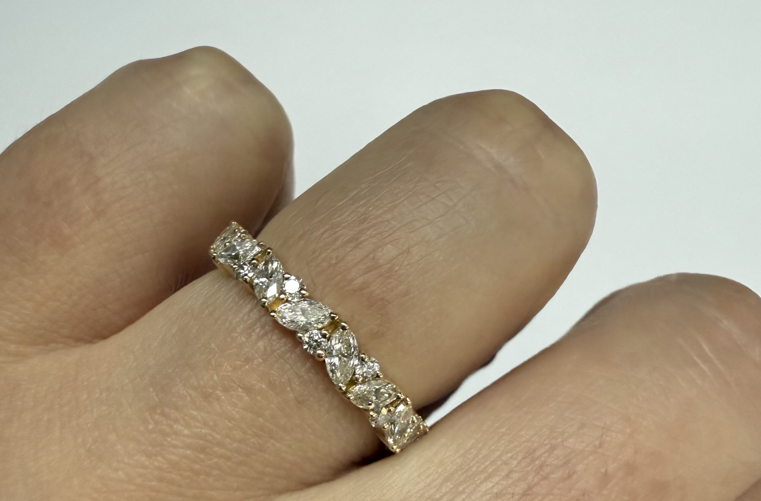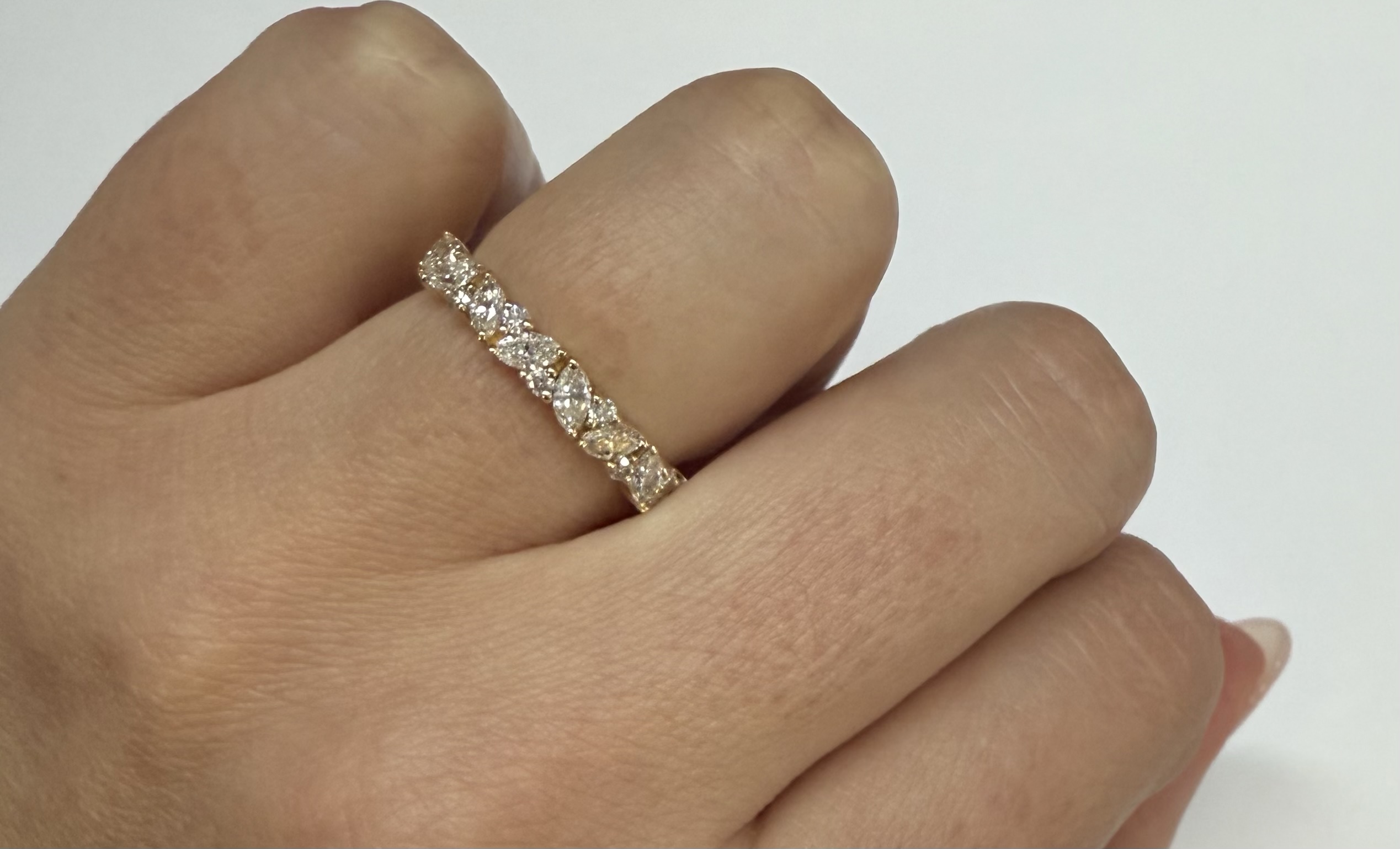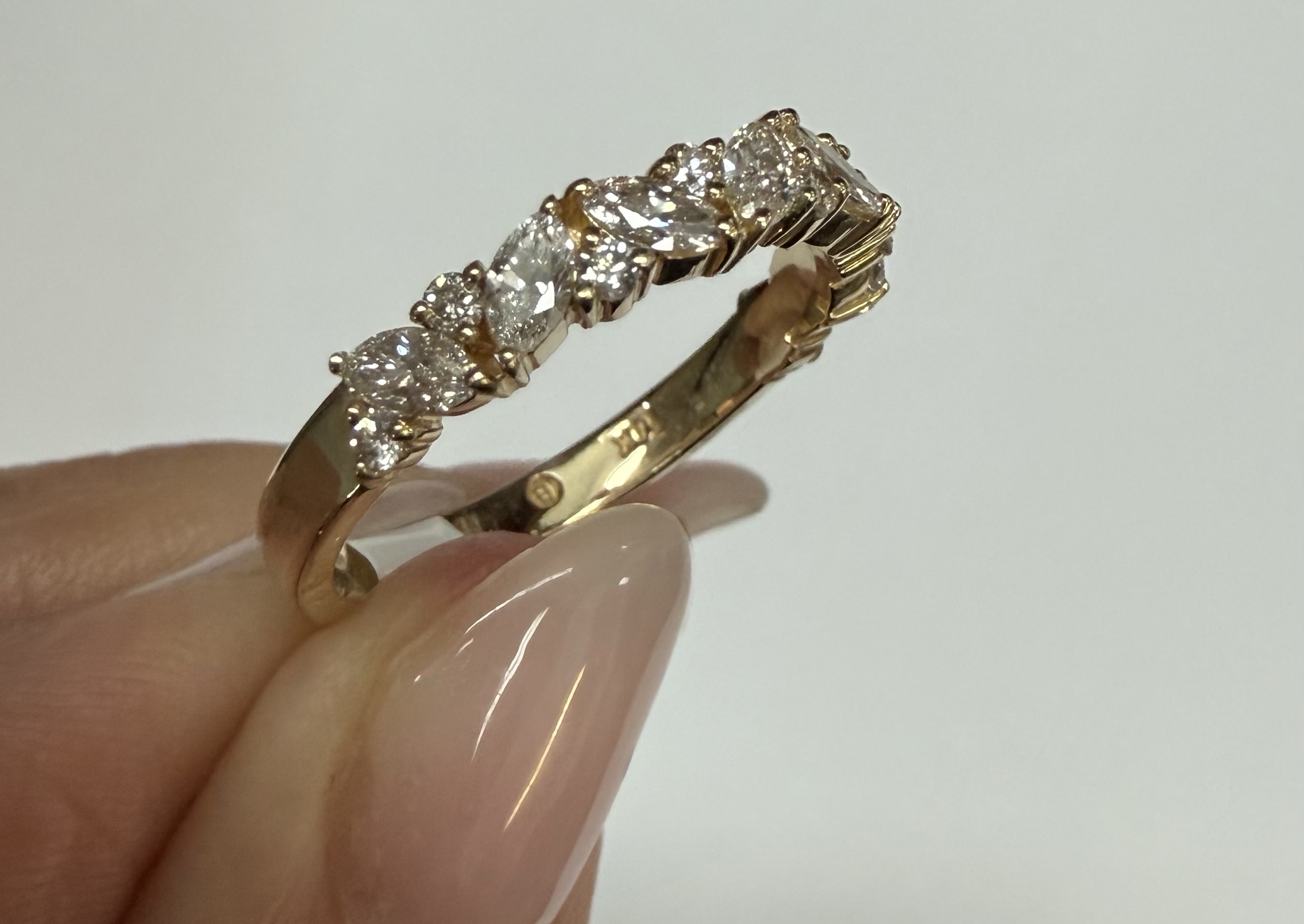 14k Yellow Gold Genuine .66 Cttw Marquise & Round Brilliant Cut Diamond Scattered Band quantity