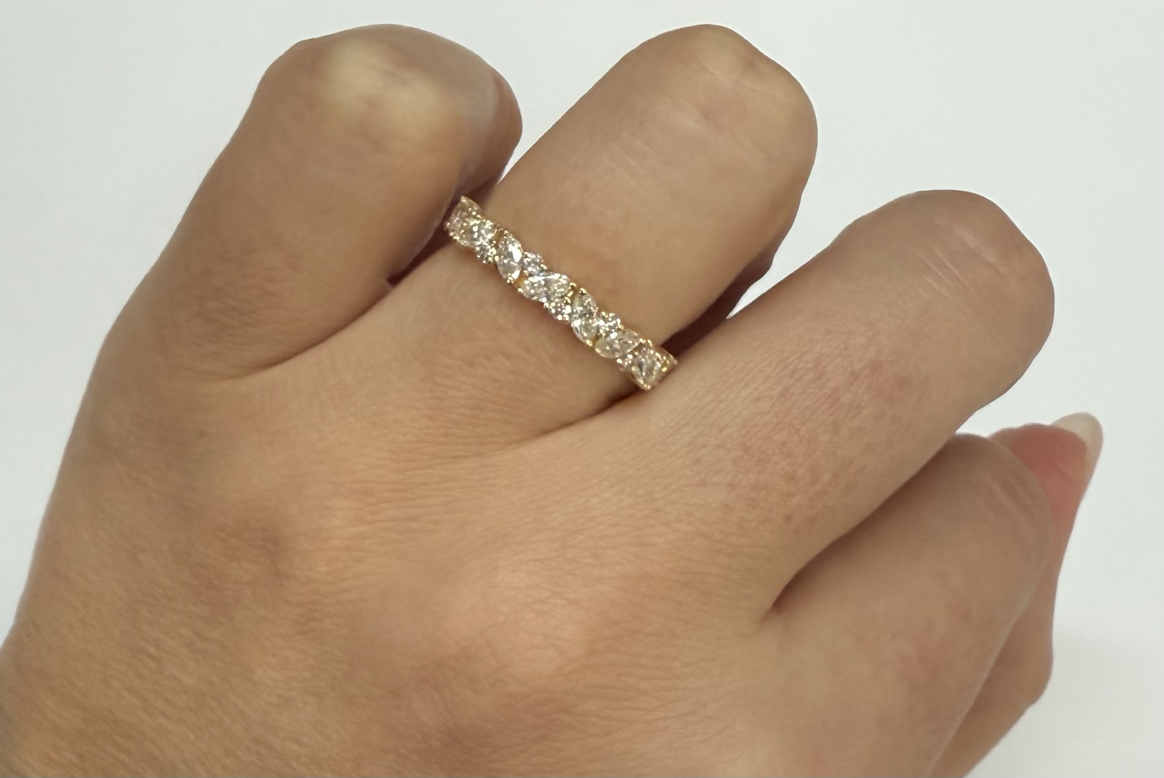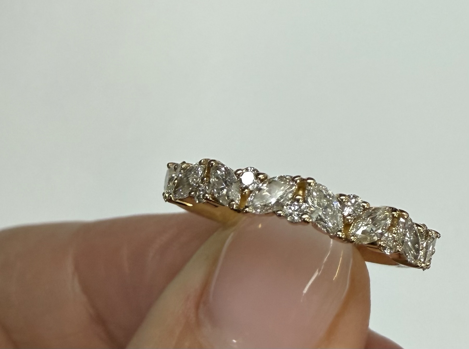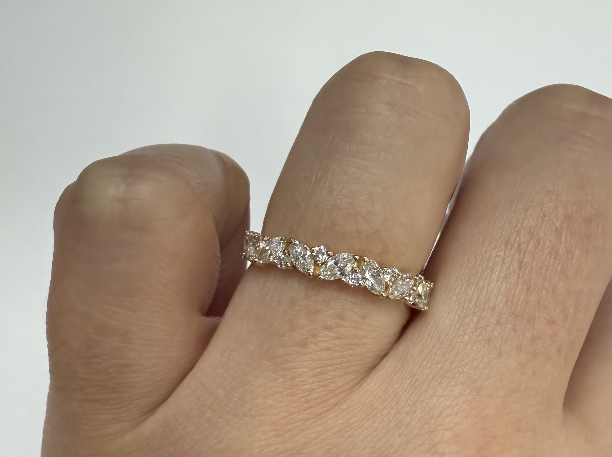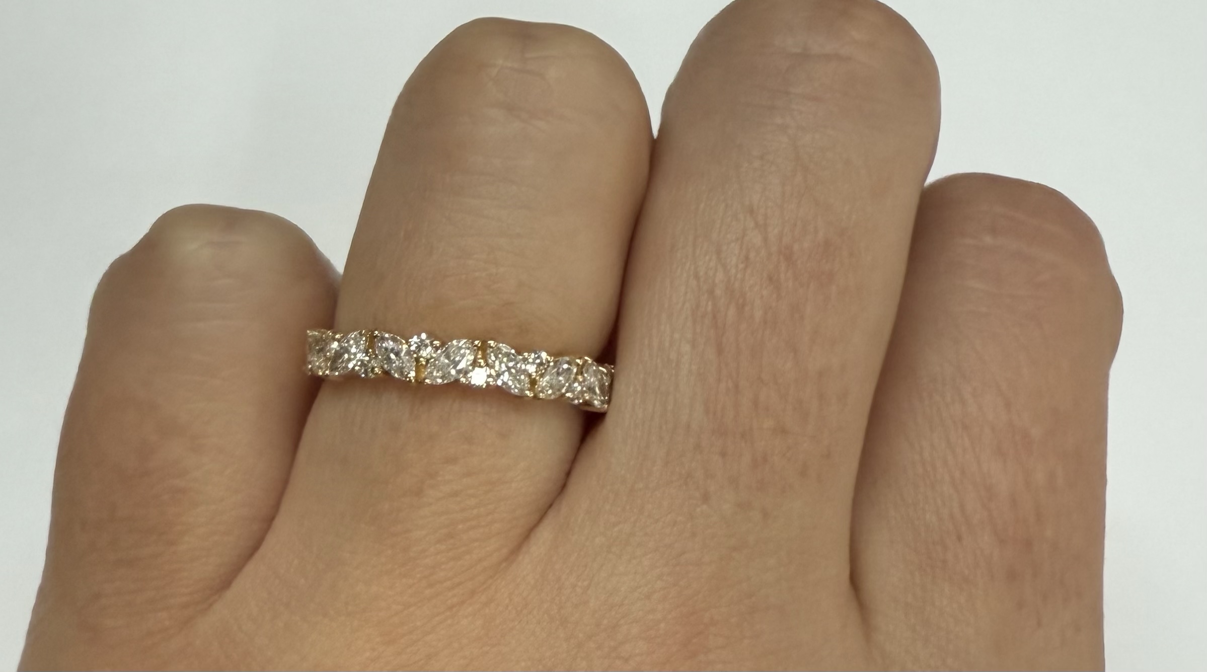14k Yellow Gold Genuine .66 Cttw Marquise & Round Brilliant Cut Diamond Scattered Band quantity