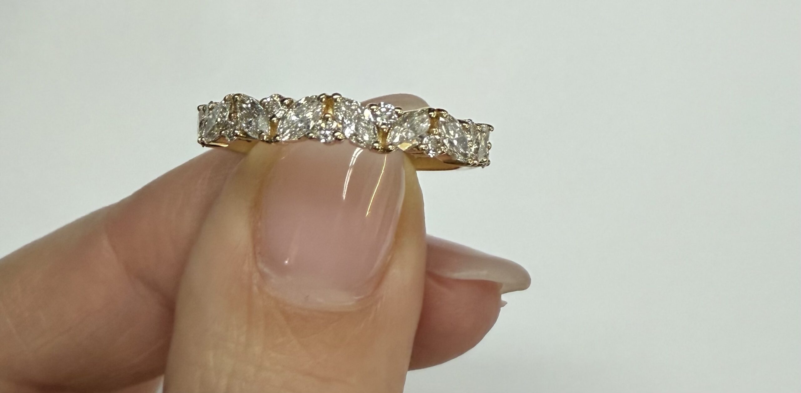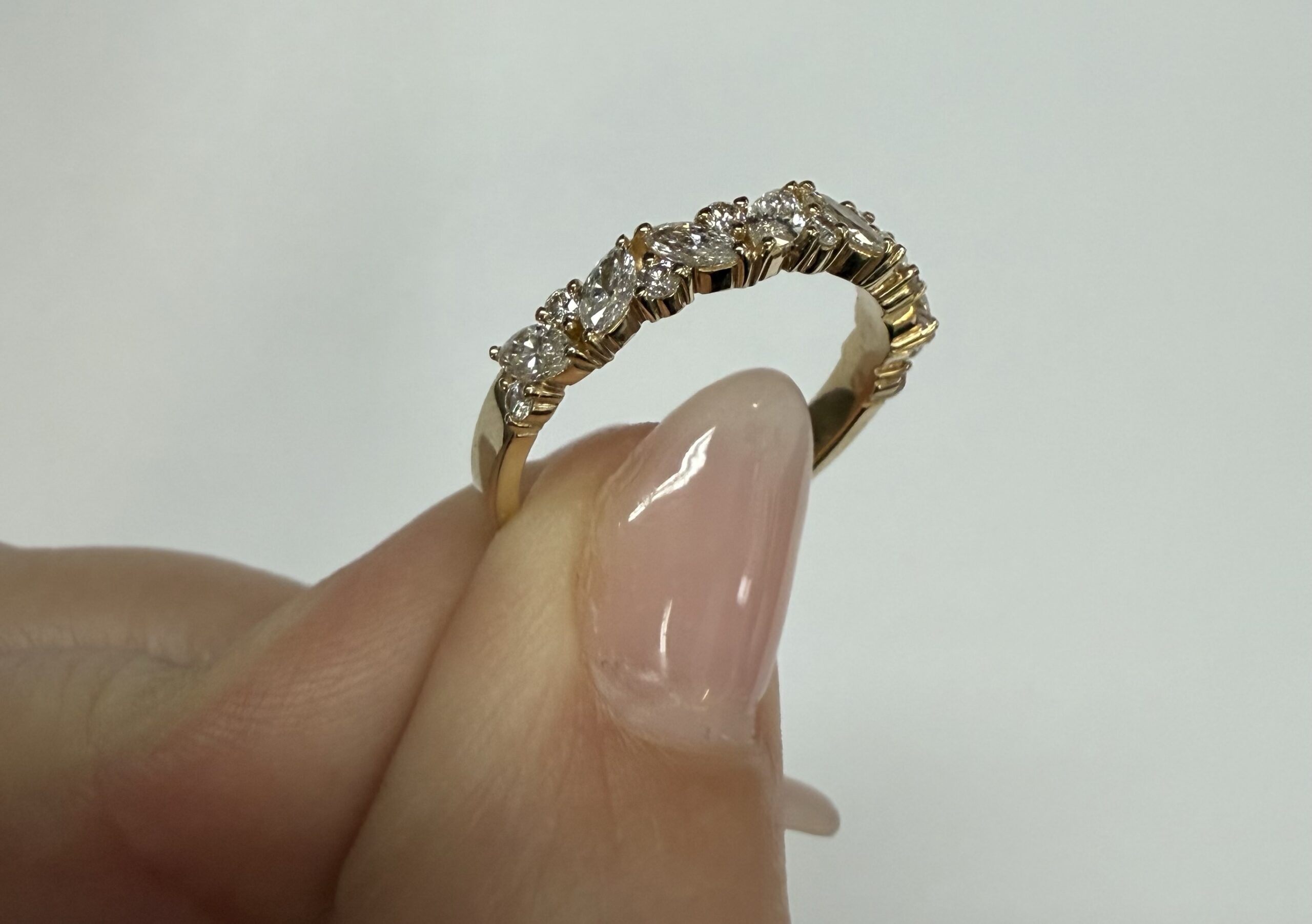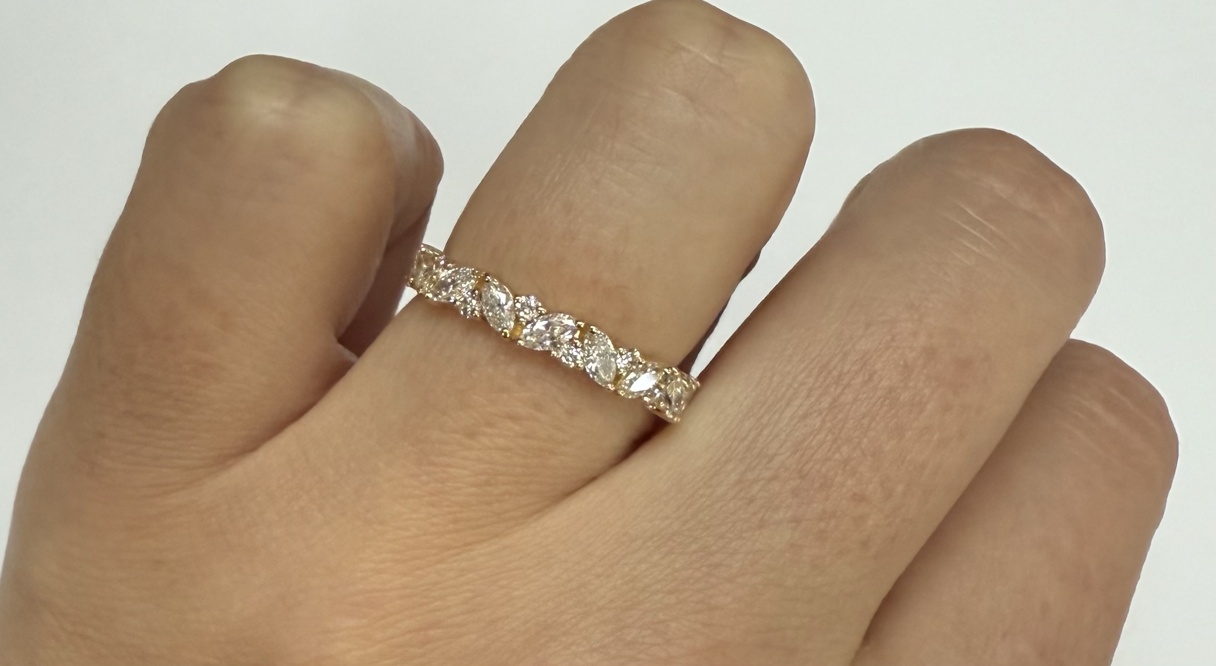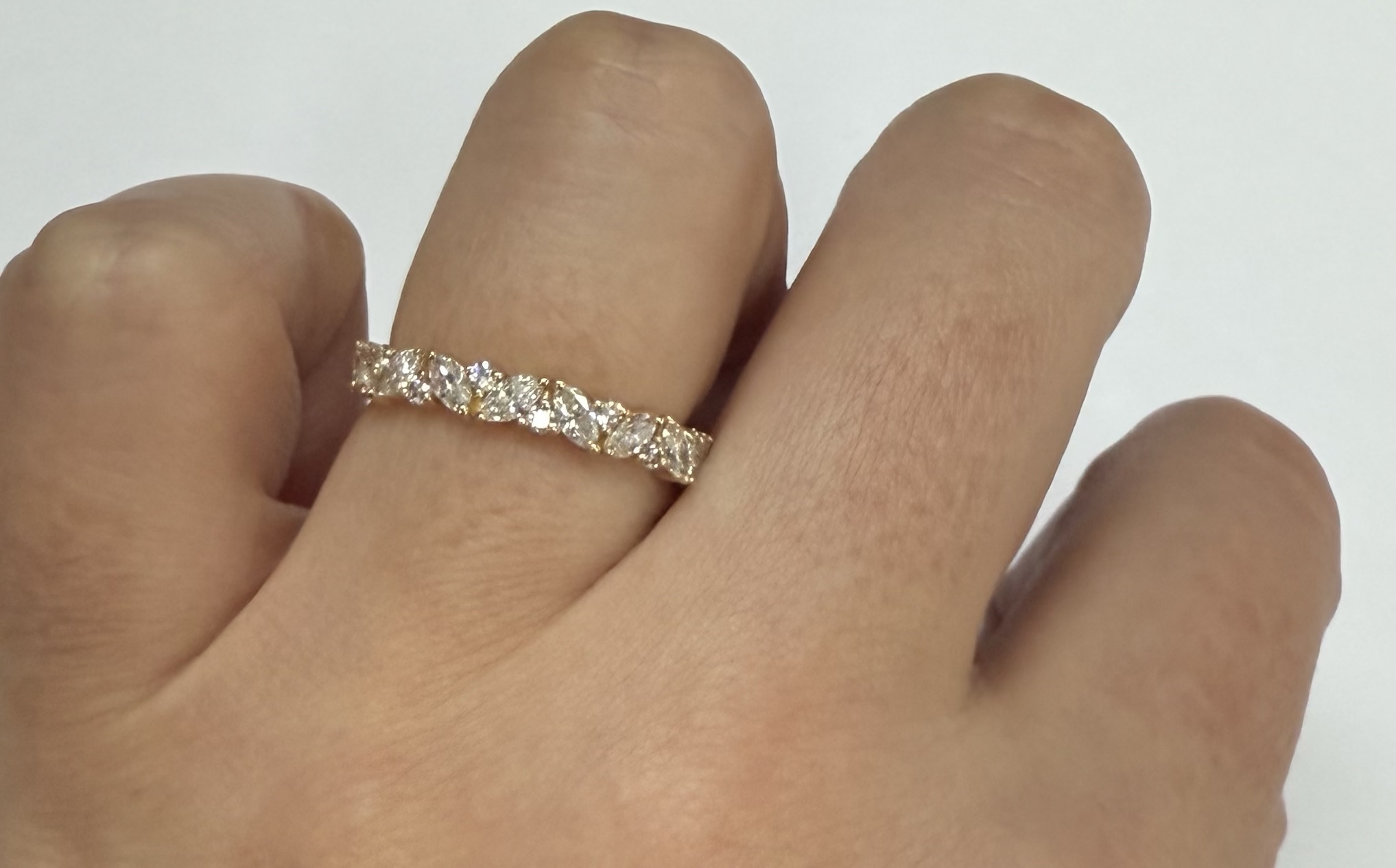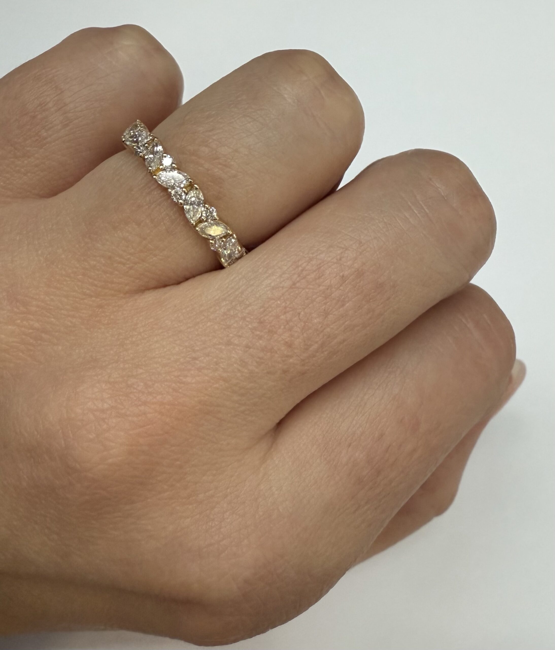 14k Yellow Gold Genuine .66 Cttw Marquise & Round Brilliant Cut Diamond Scattered Band quantity