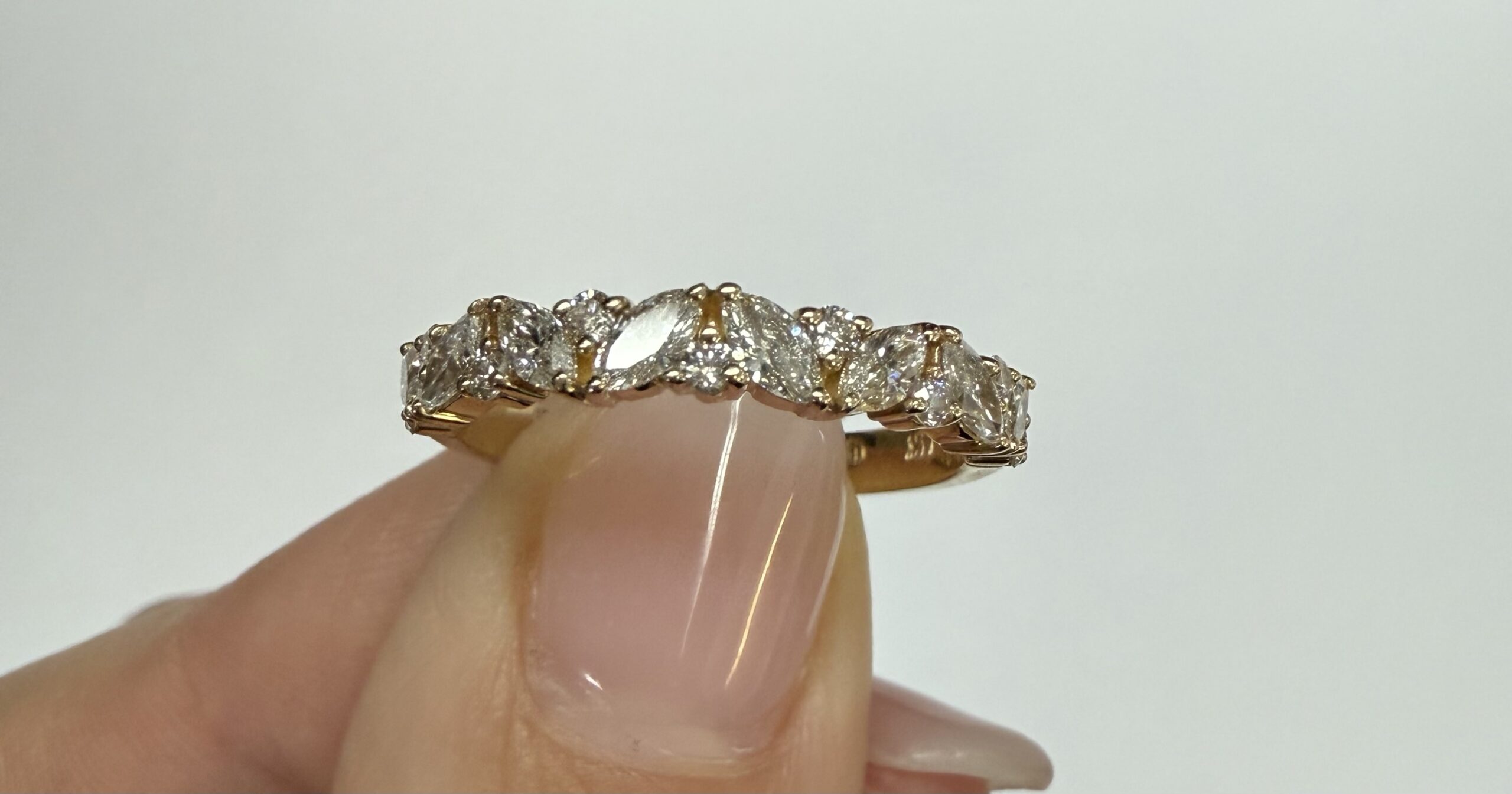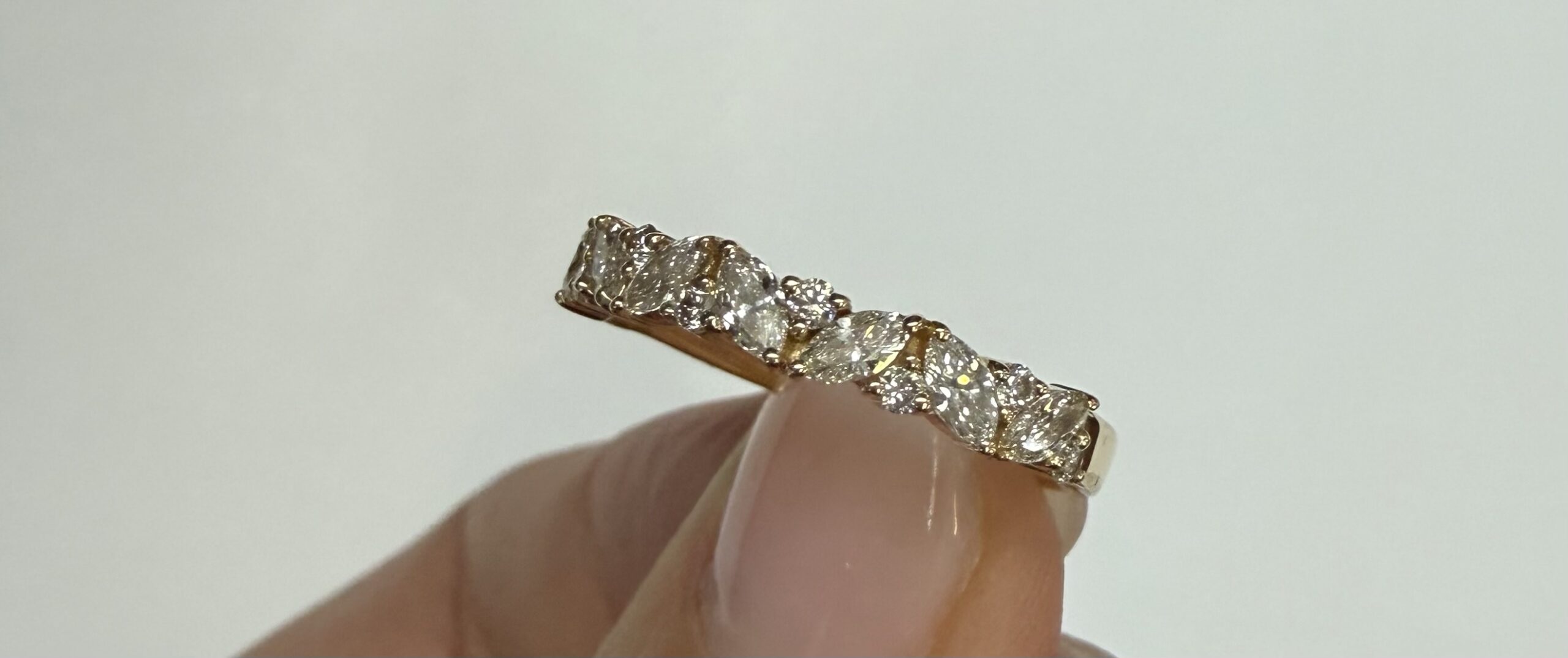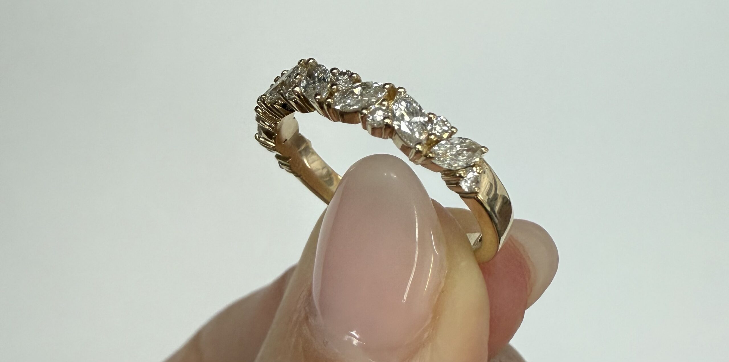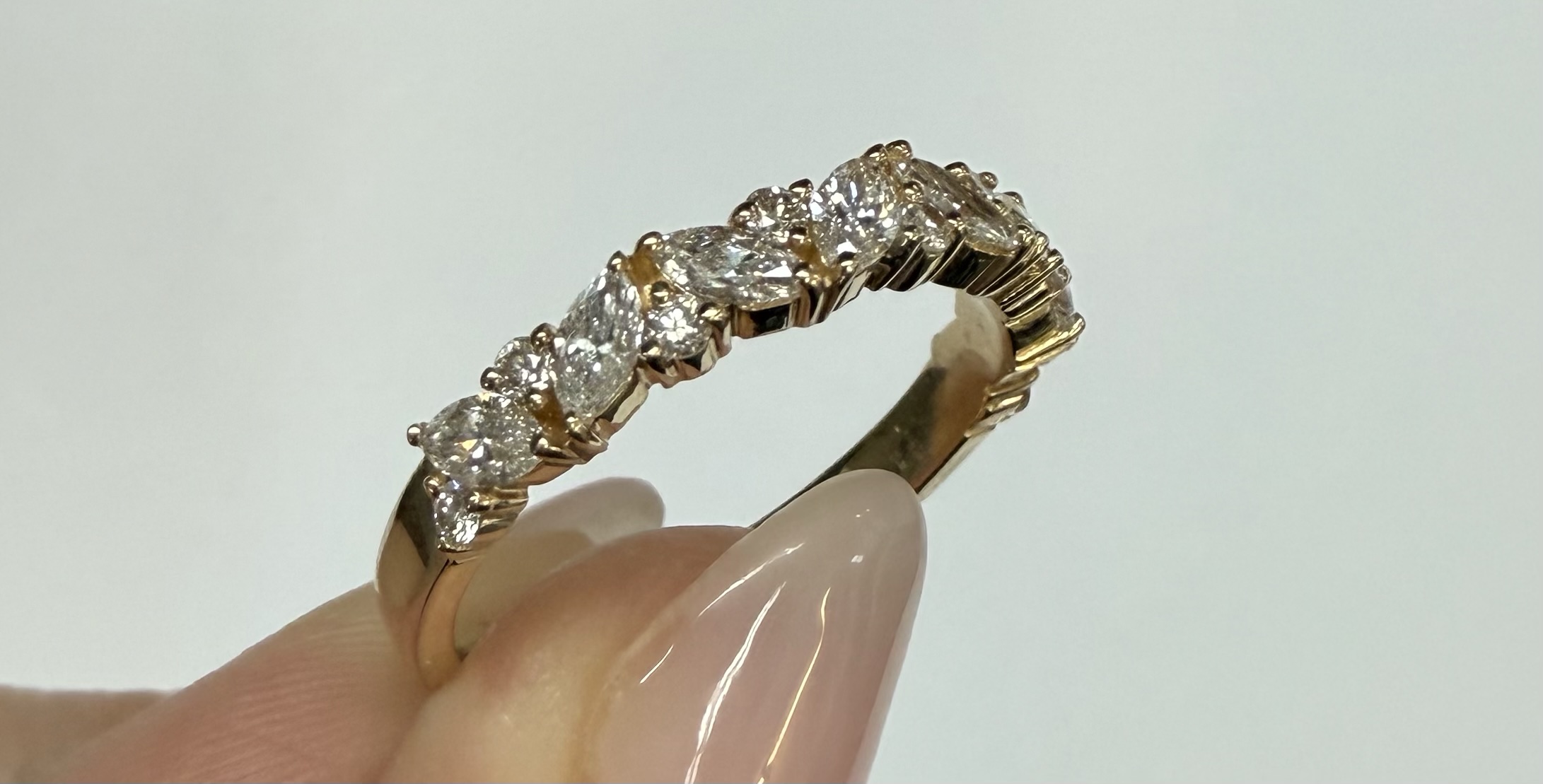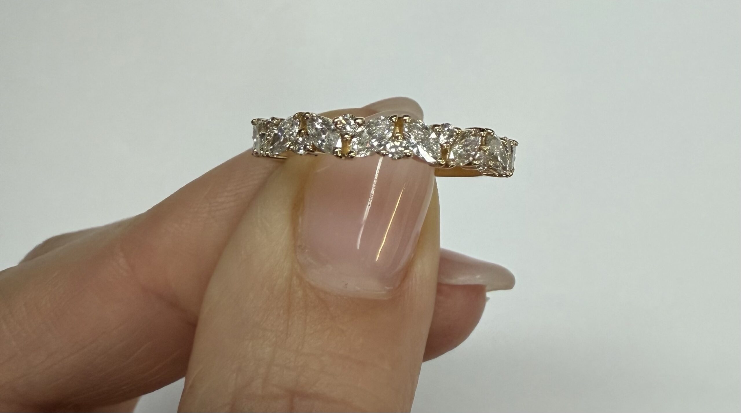 14k Yellow Gold Genuine .66 Cttw Marquise & Round Brilliant Cut Diamond Scattered Band quantity