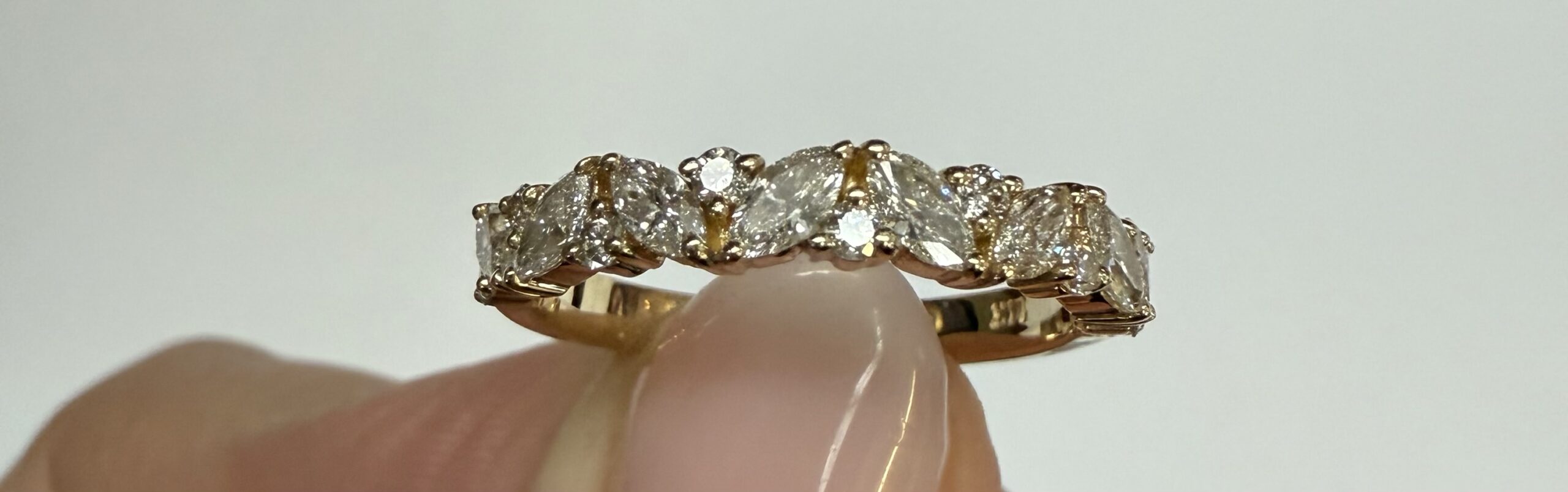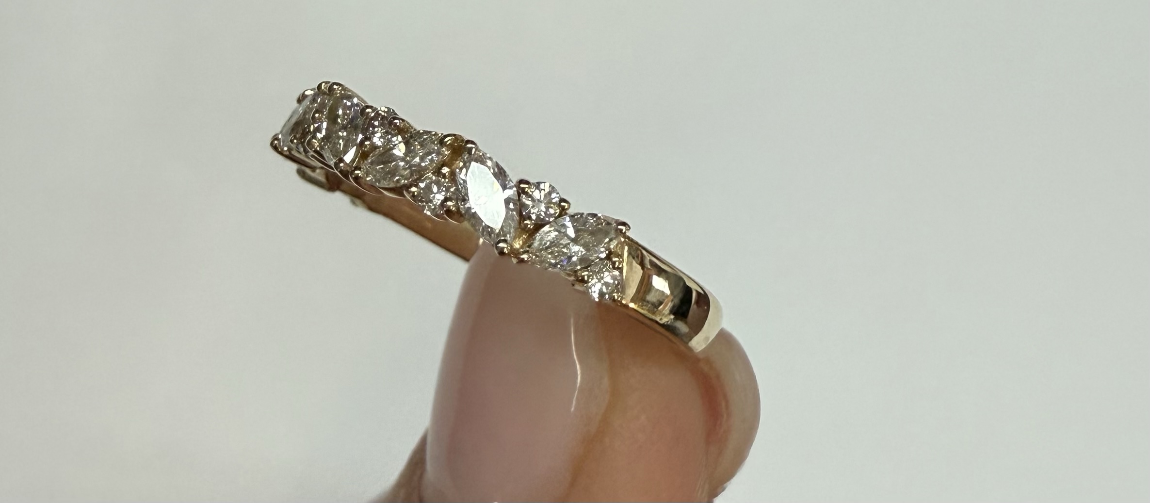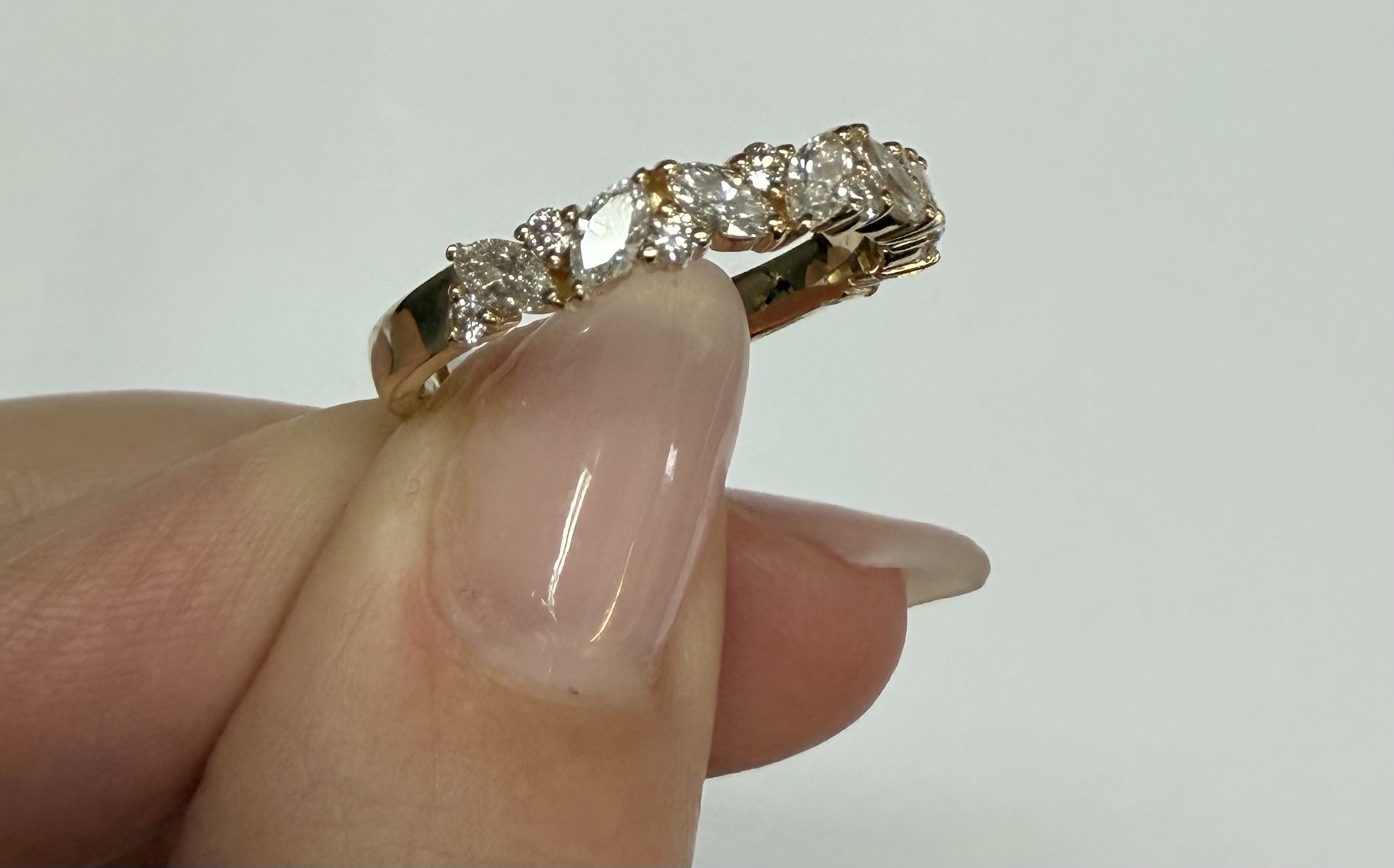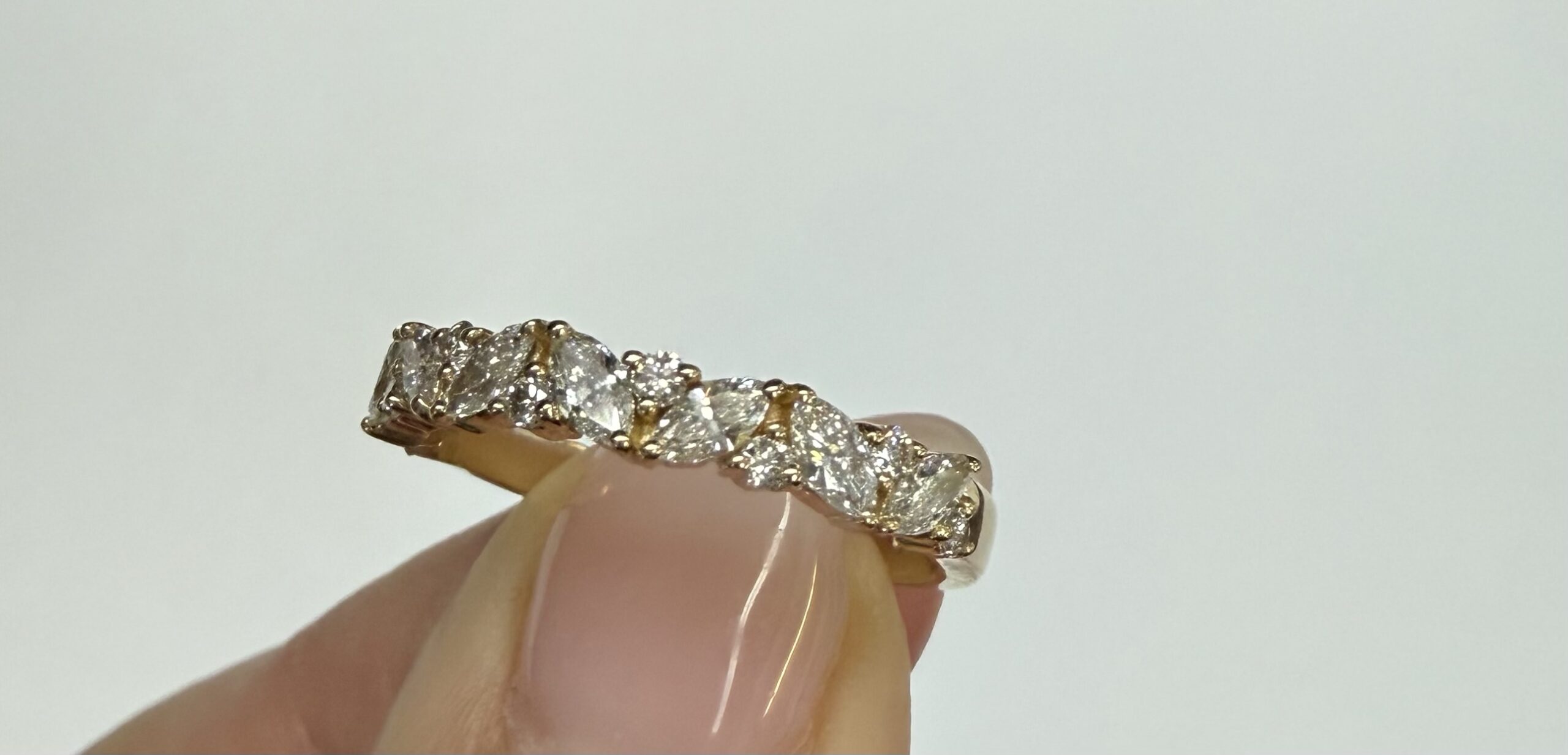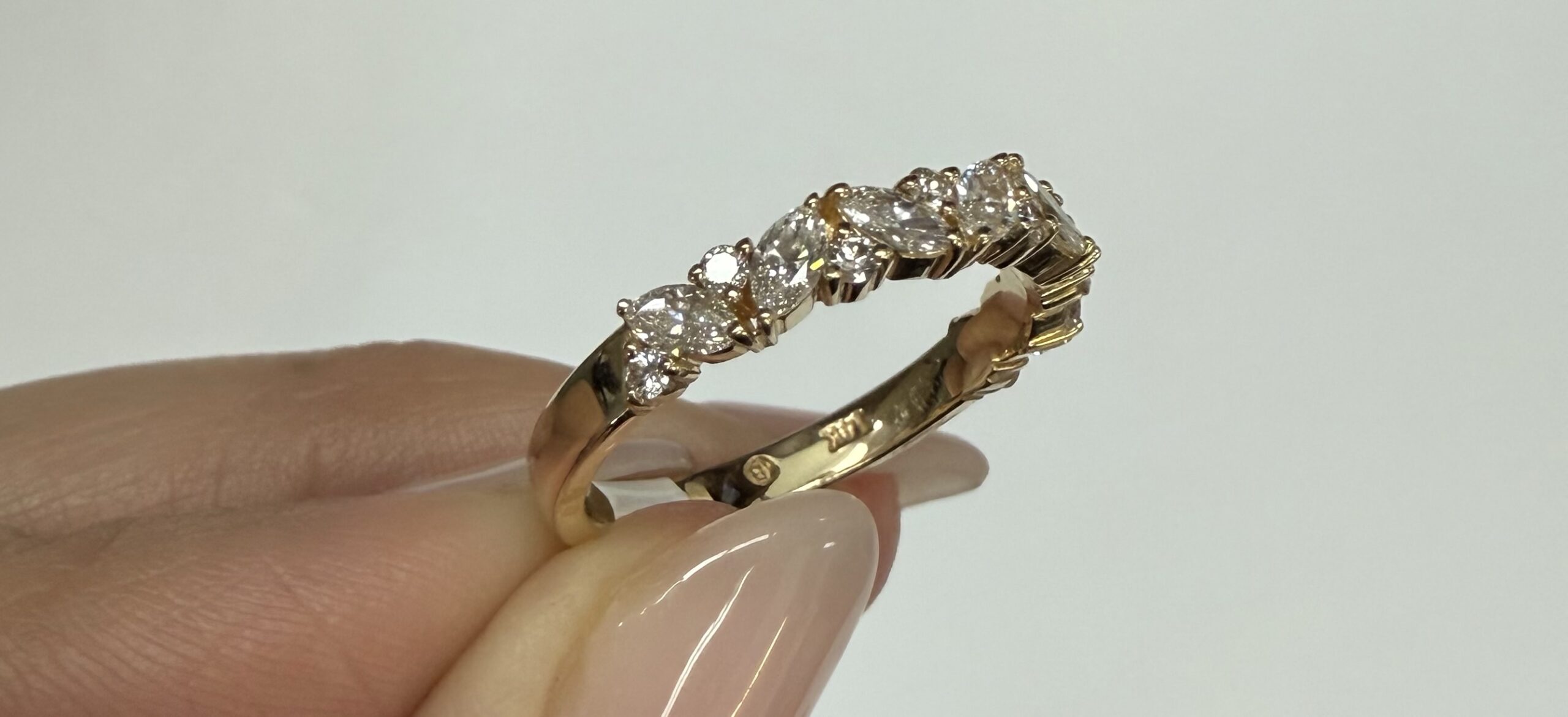 14k Yellow Gold Genuine .66 Cttw Marquise & Round Brilliant Cut Diamond Scattered Band quantity