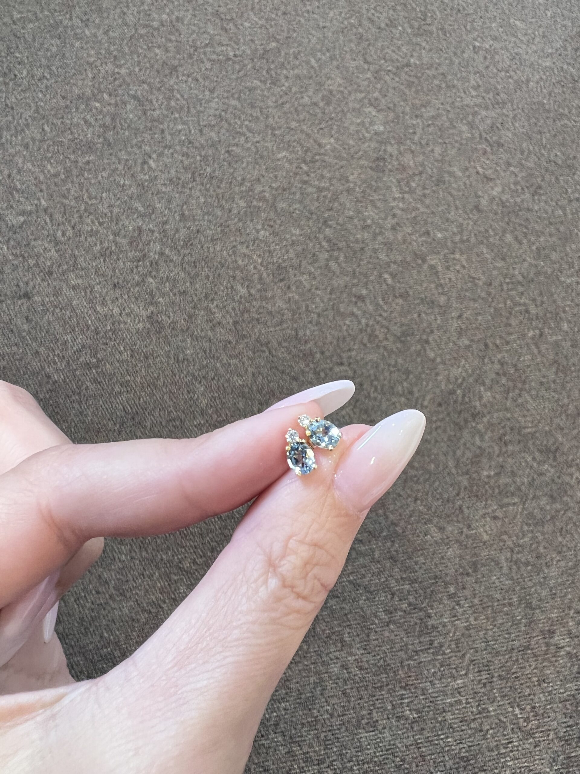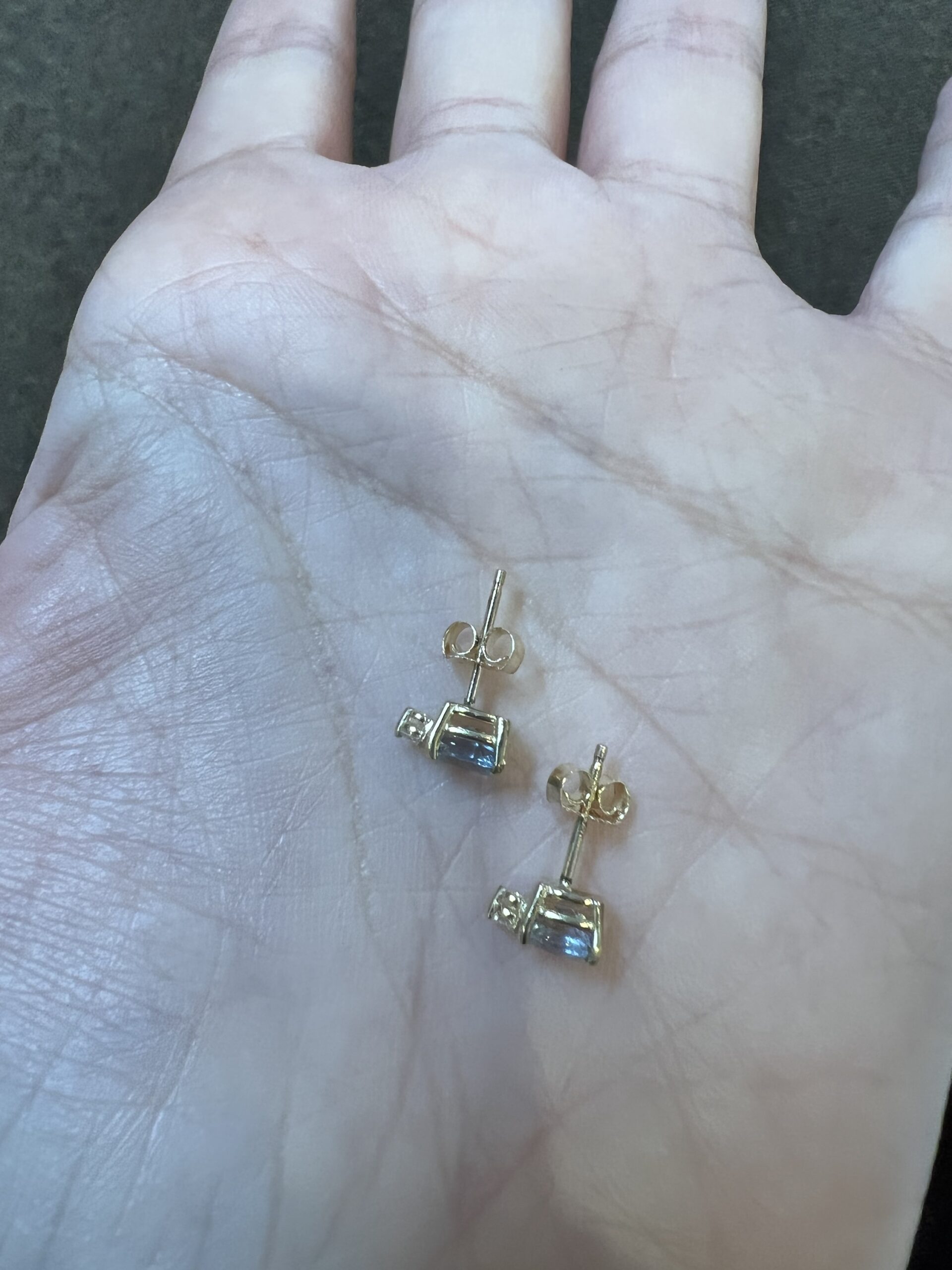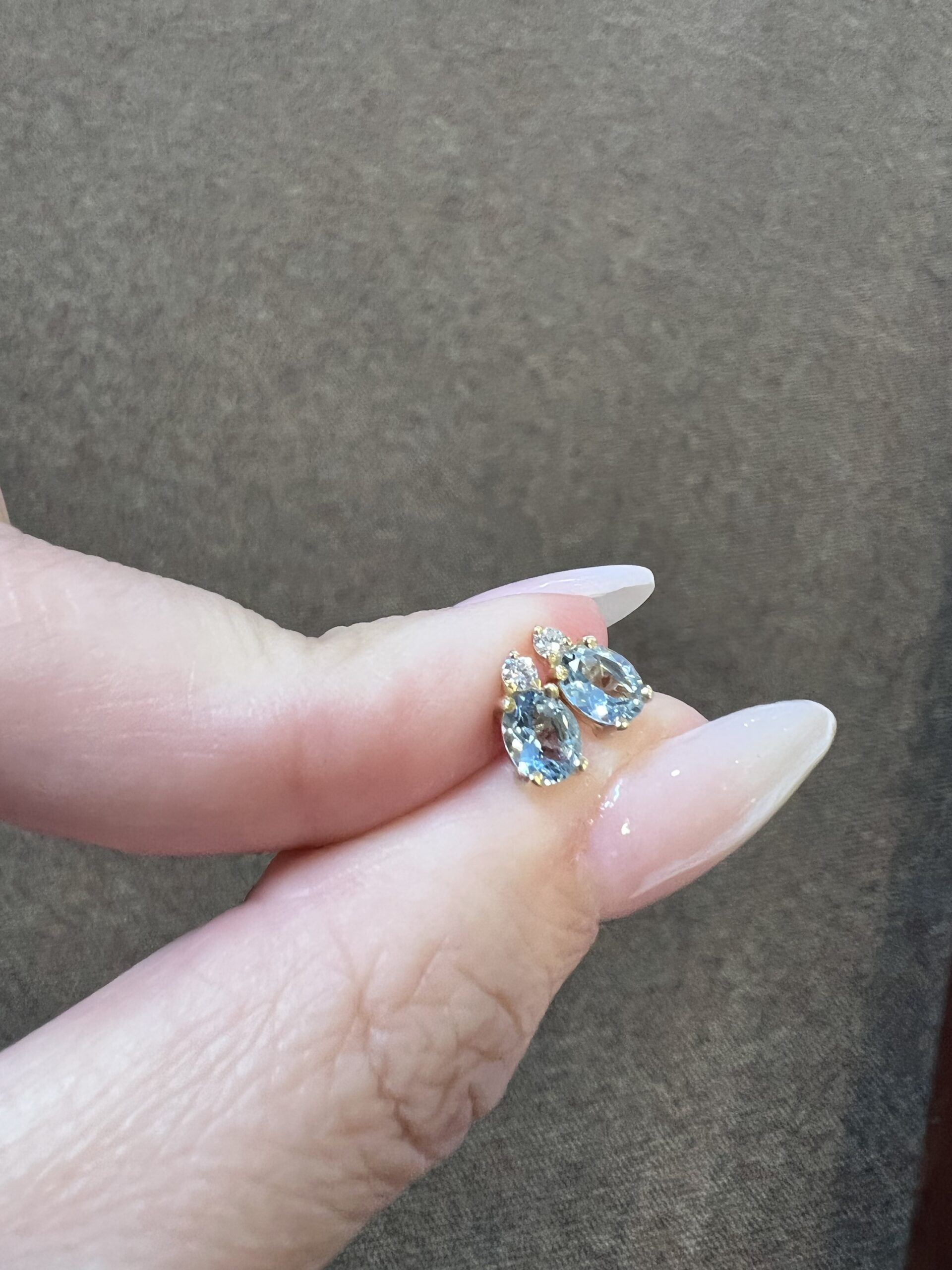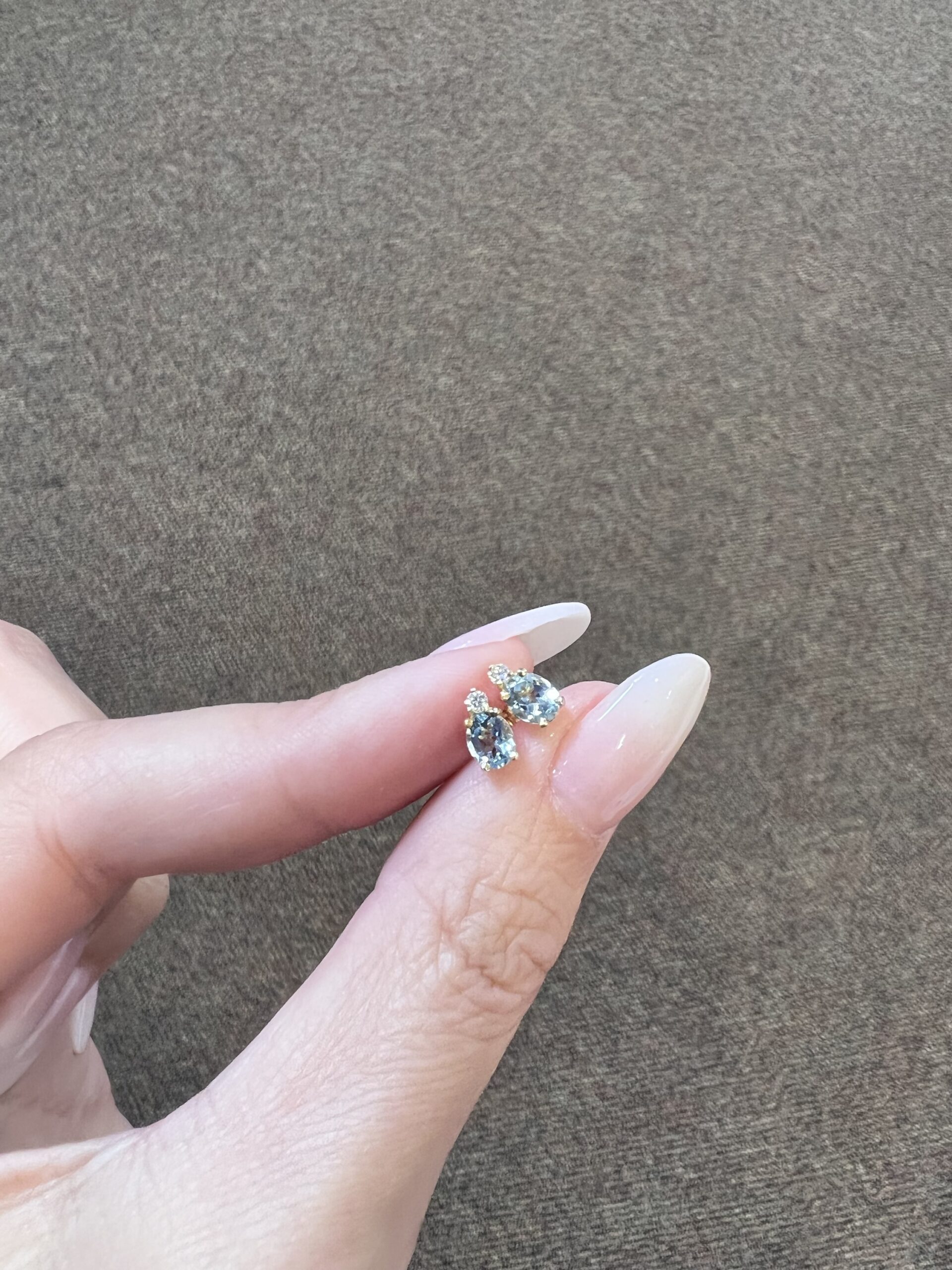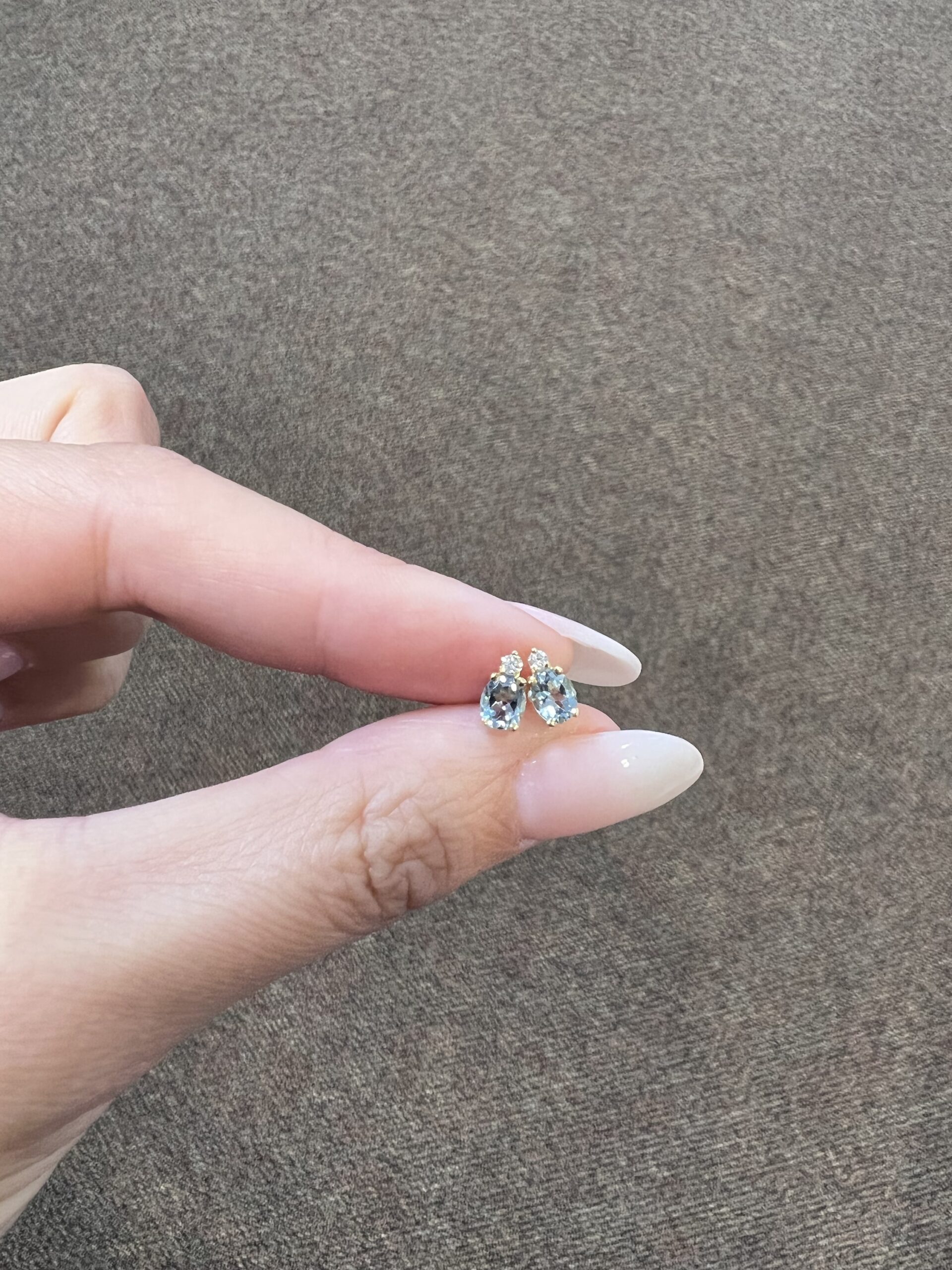 14k yellow gold oval shaped, faceted genuine .68 cttw Aquamarine (March birthstone) and genuine .06 cttw Round Brilliant Cut diamond basket set stud earrings. These diamonds average G-H in color and SI1 in clarity. These earrings have an entire weight of 1.1 grams.
