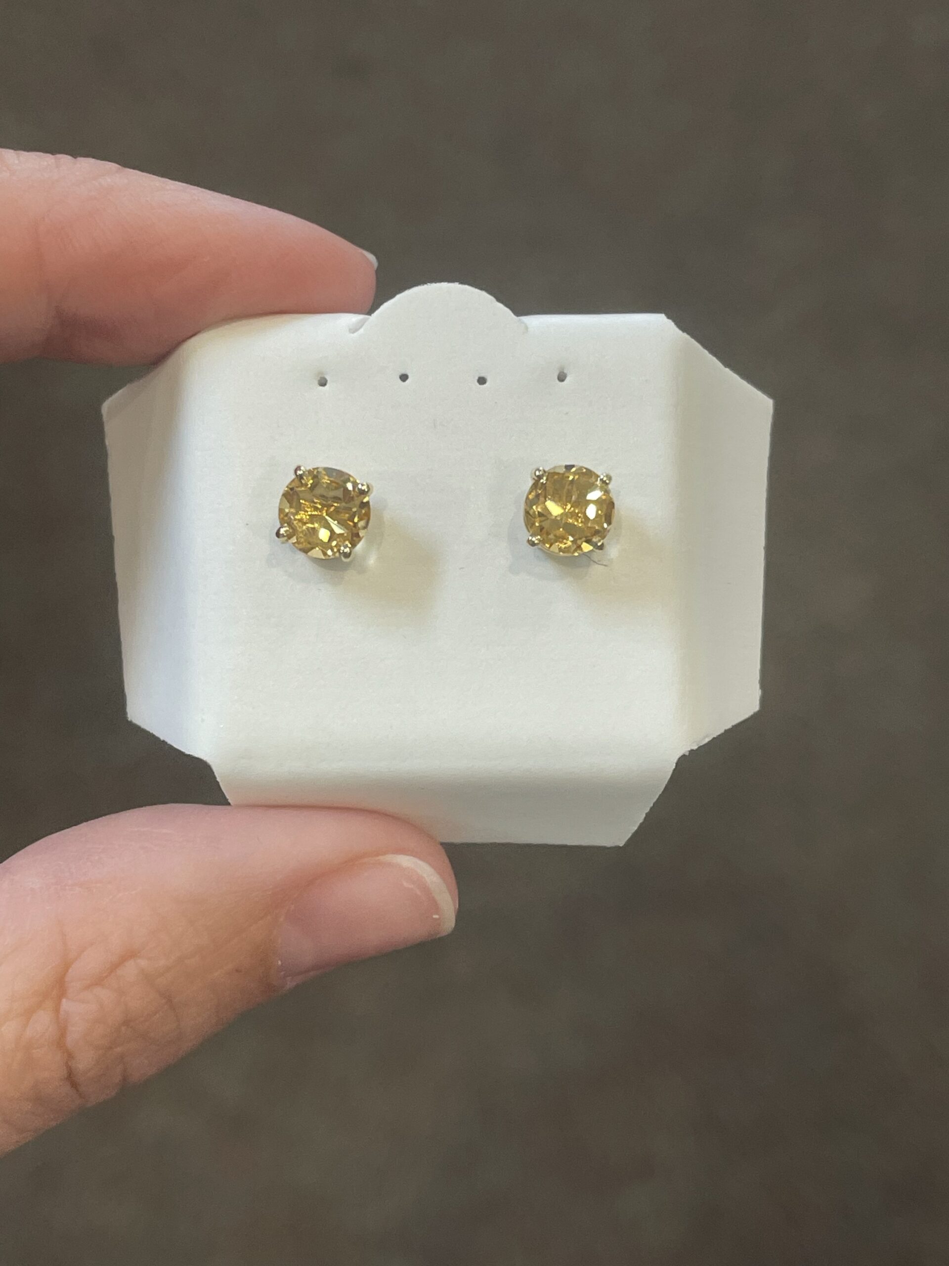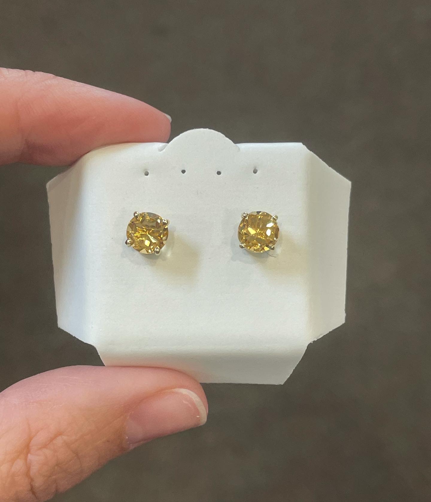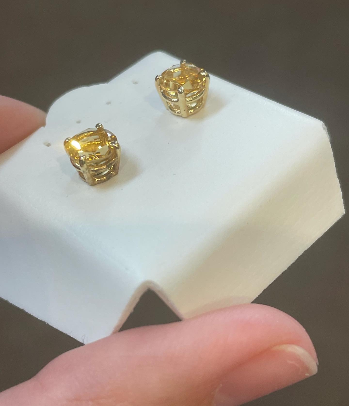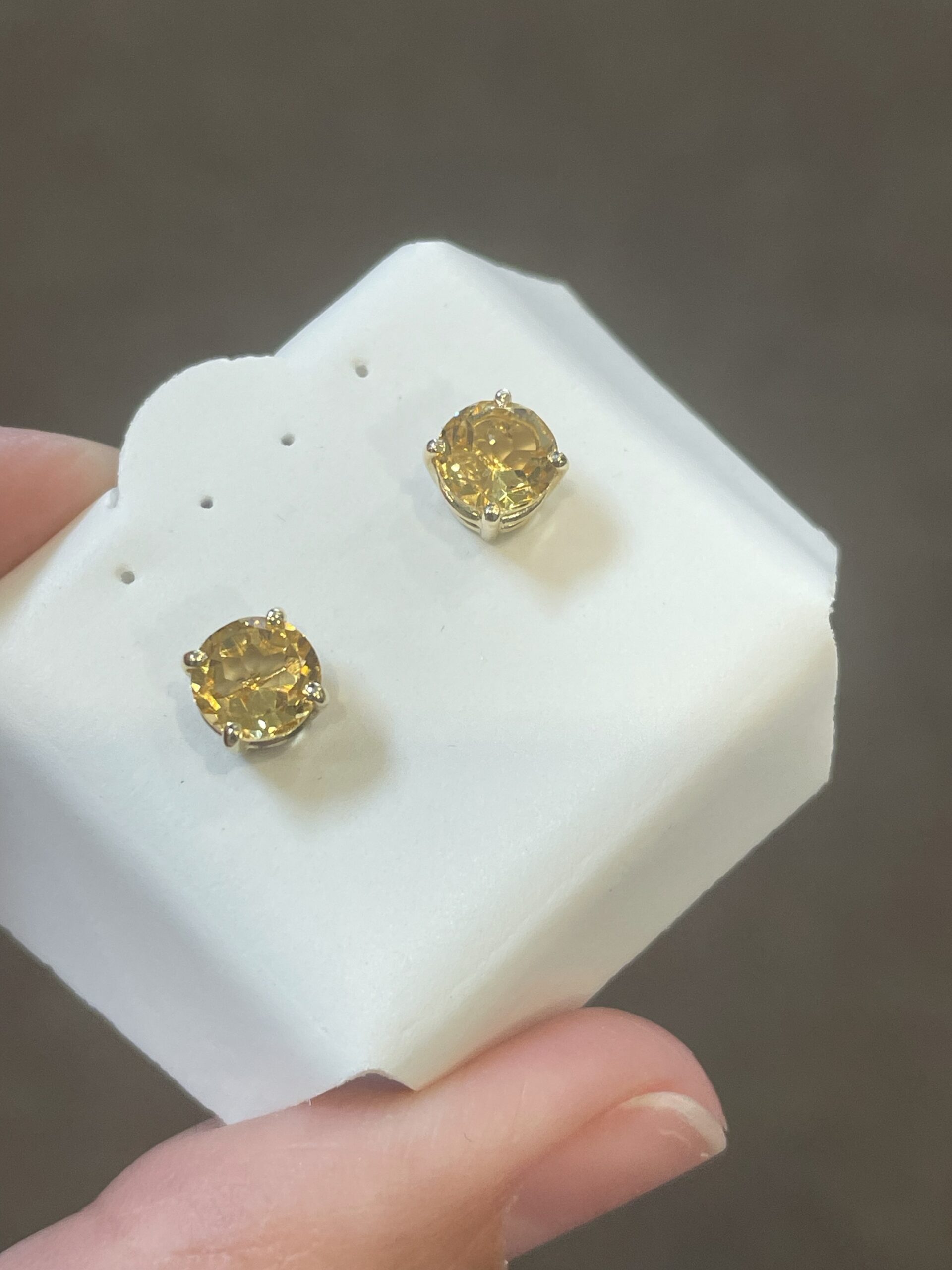 14k yellow gold genuine Round Brilliant Cut, faceted, 6 mm basket set Citrine (November birthstone) stud earrings.