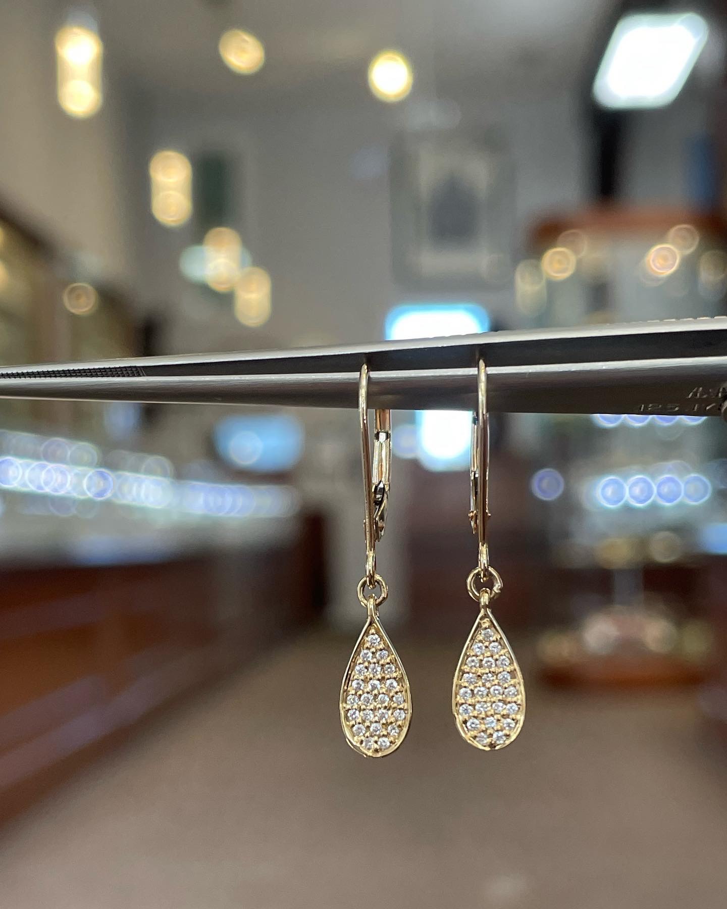 14k Yellow Gold Genuine Round Brilliant Cut Diamond Teardrop Shaped Dangle Earrings quantity