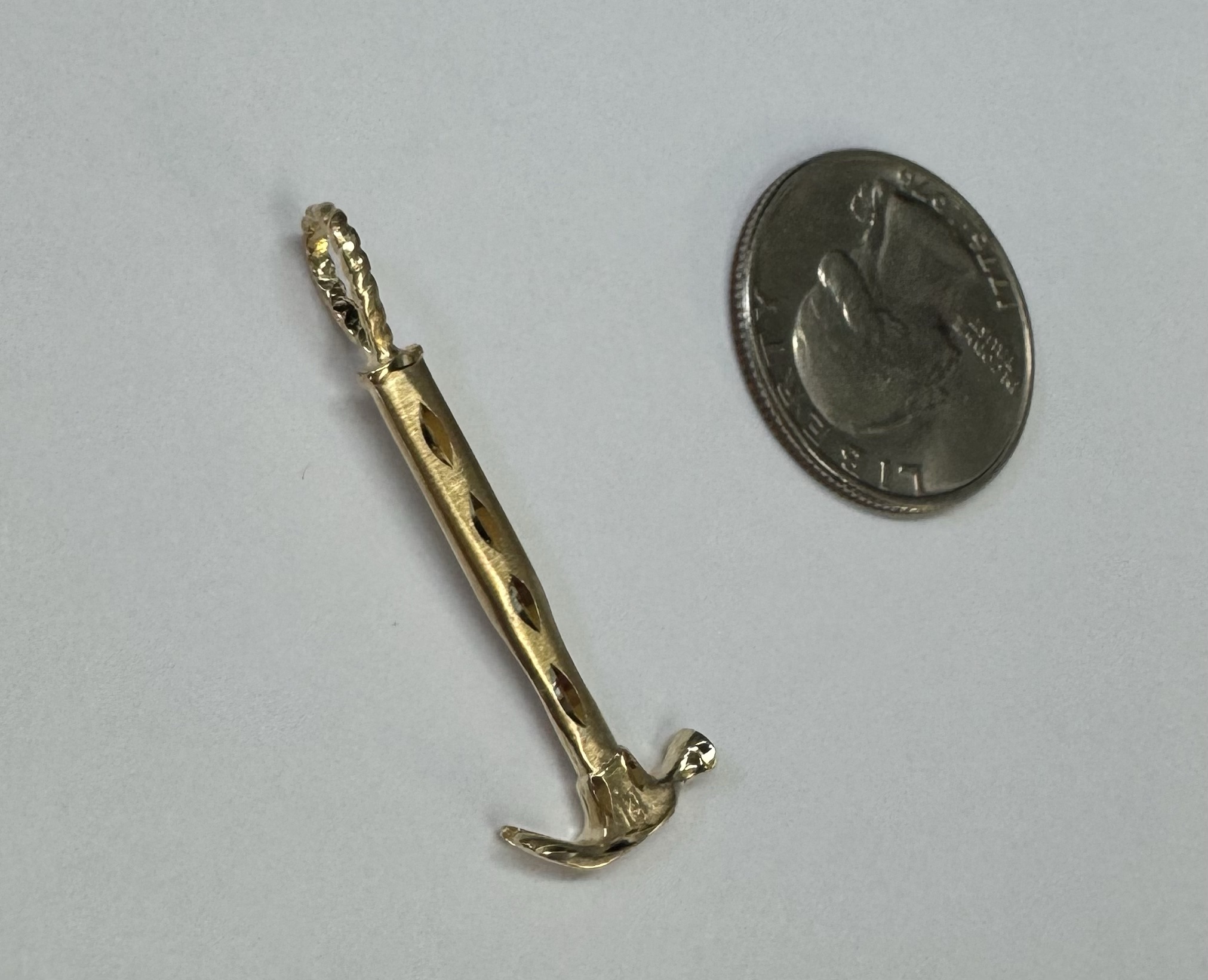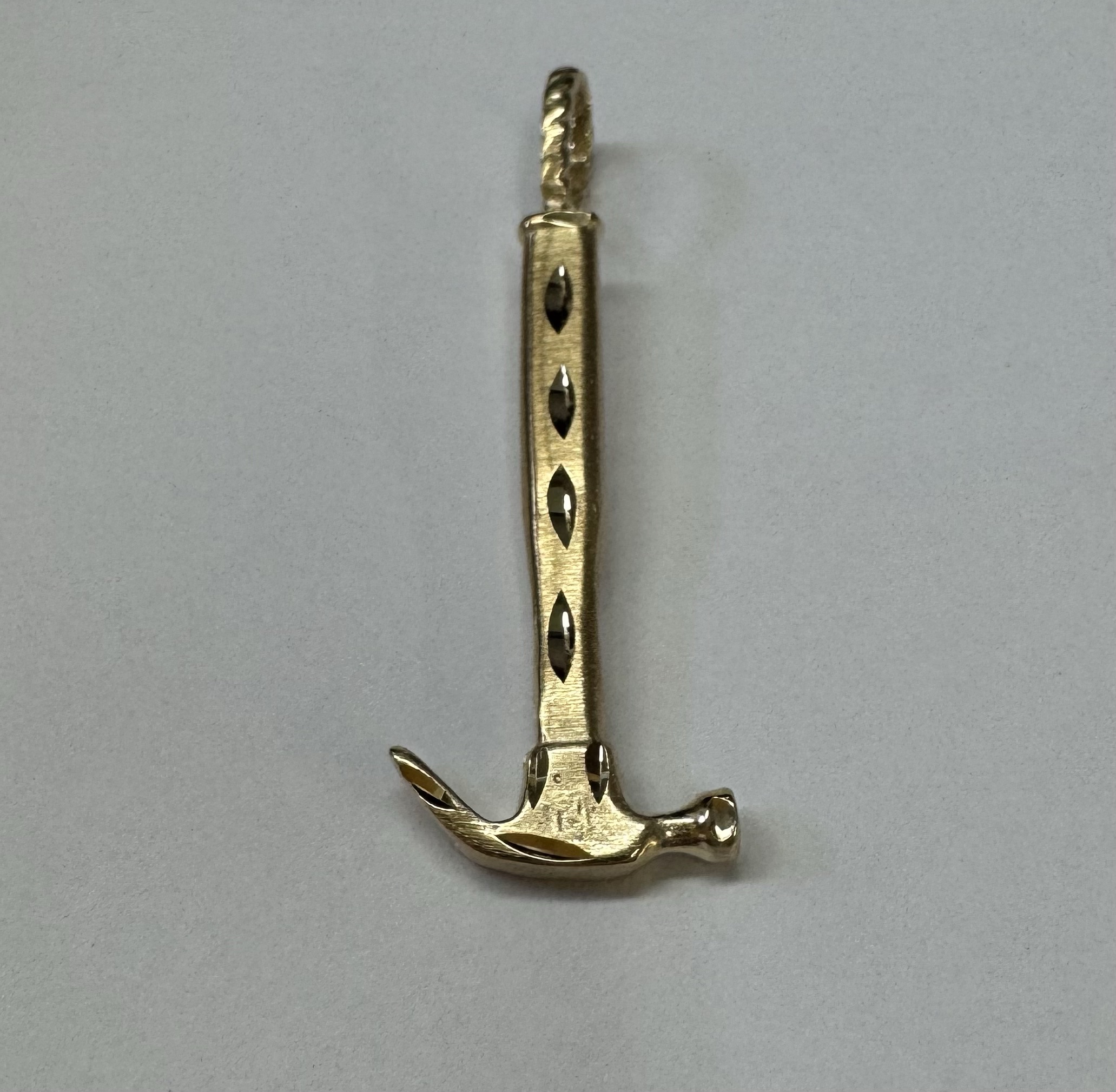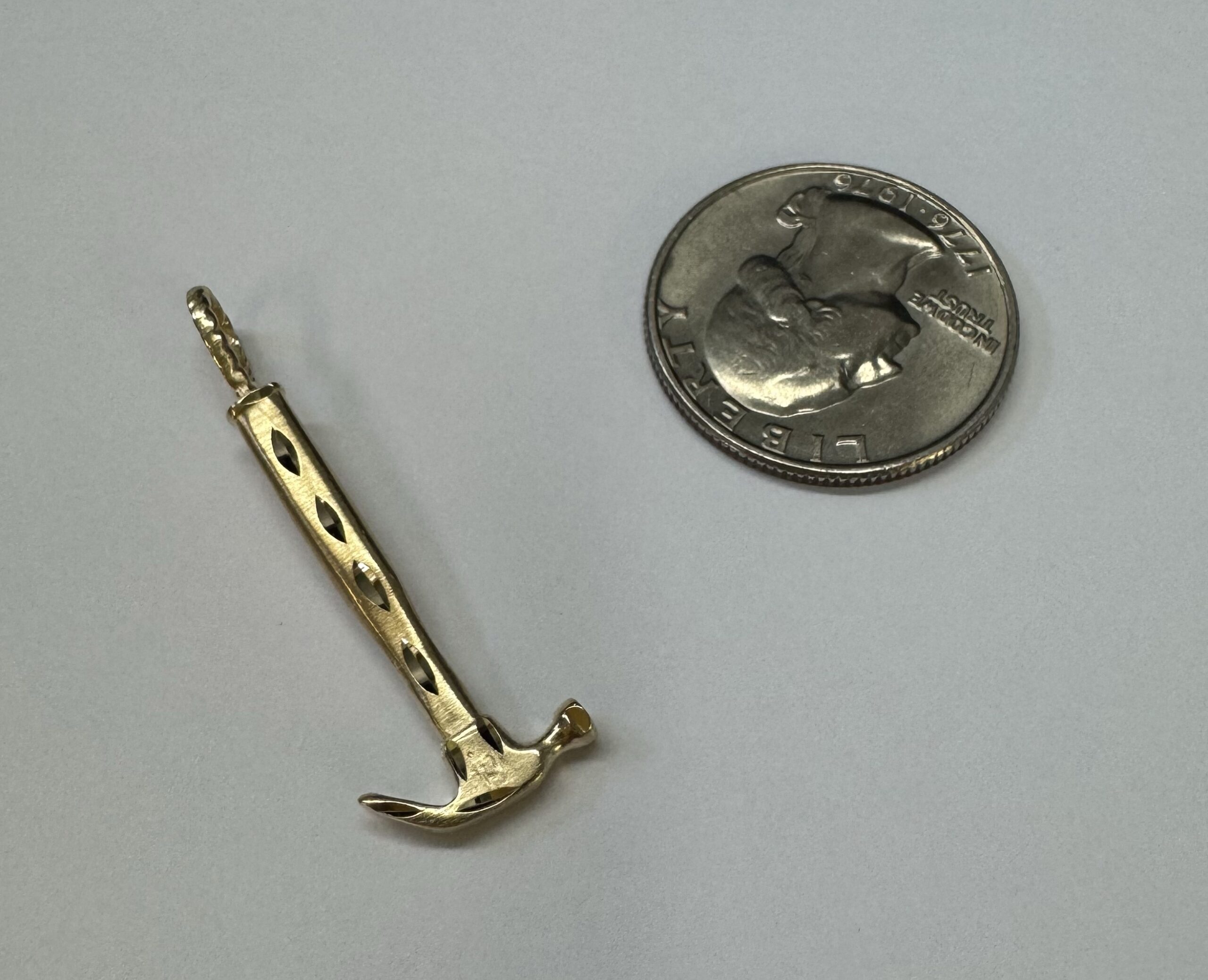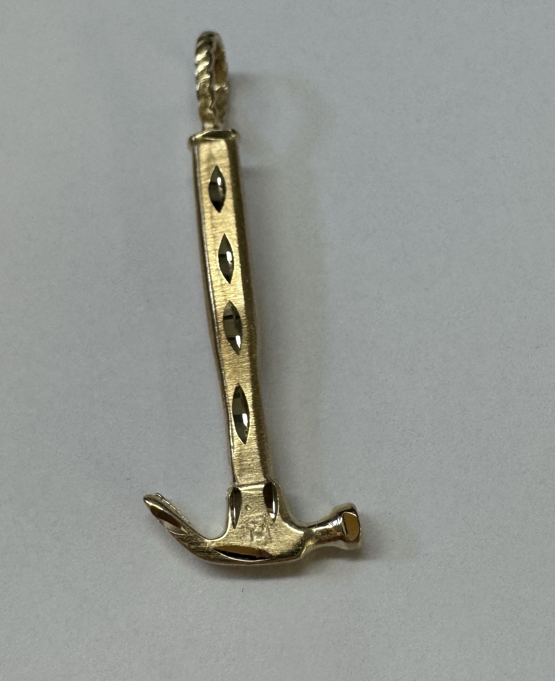 14k yellow gold engraved Hammer pendant/charm. This piece has an entire weight of 2.6 grams.