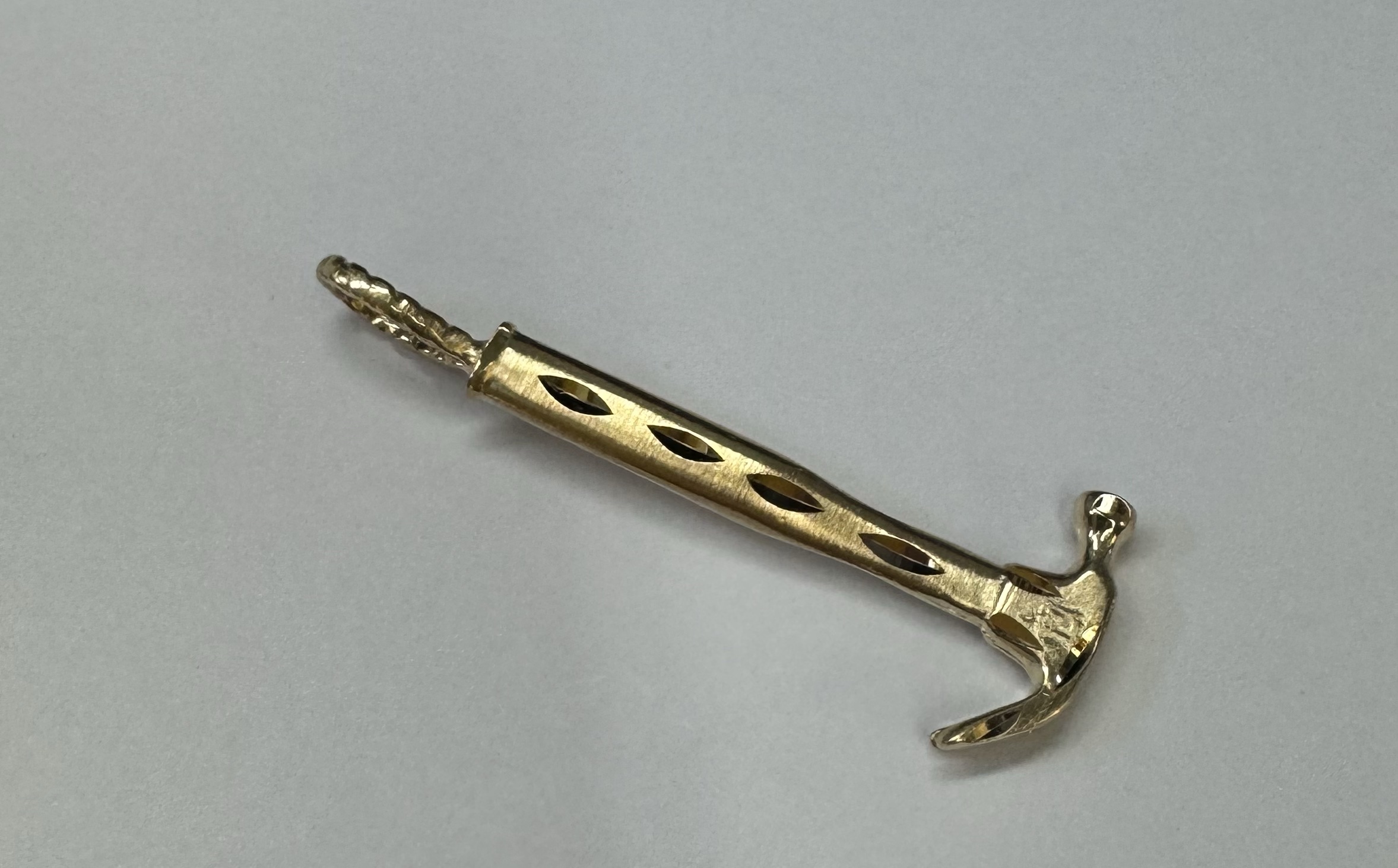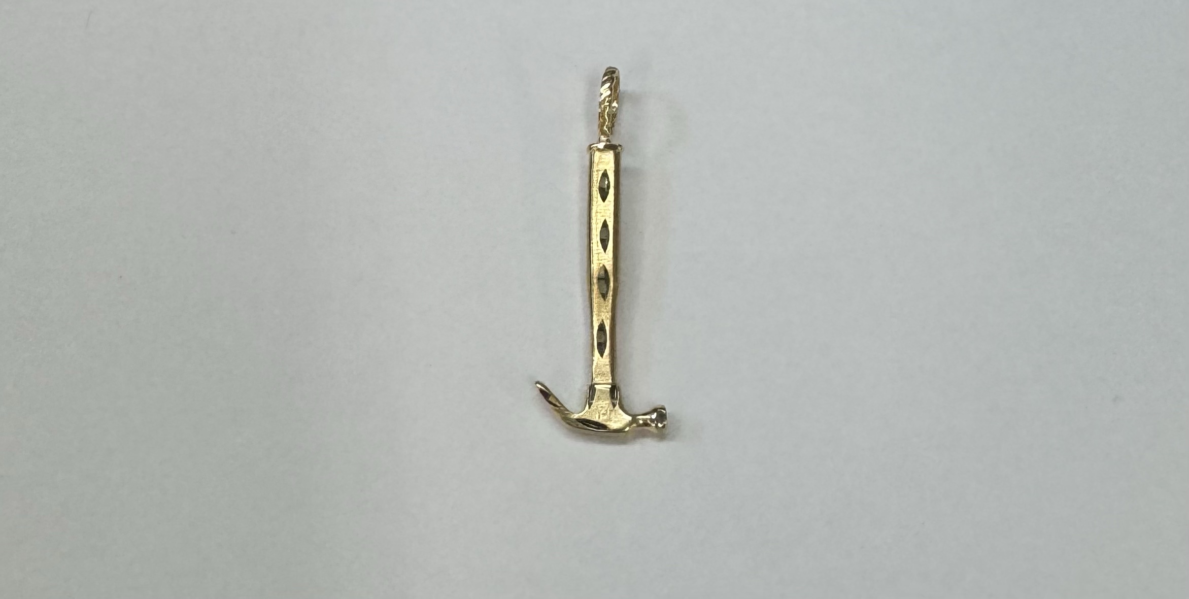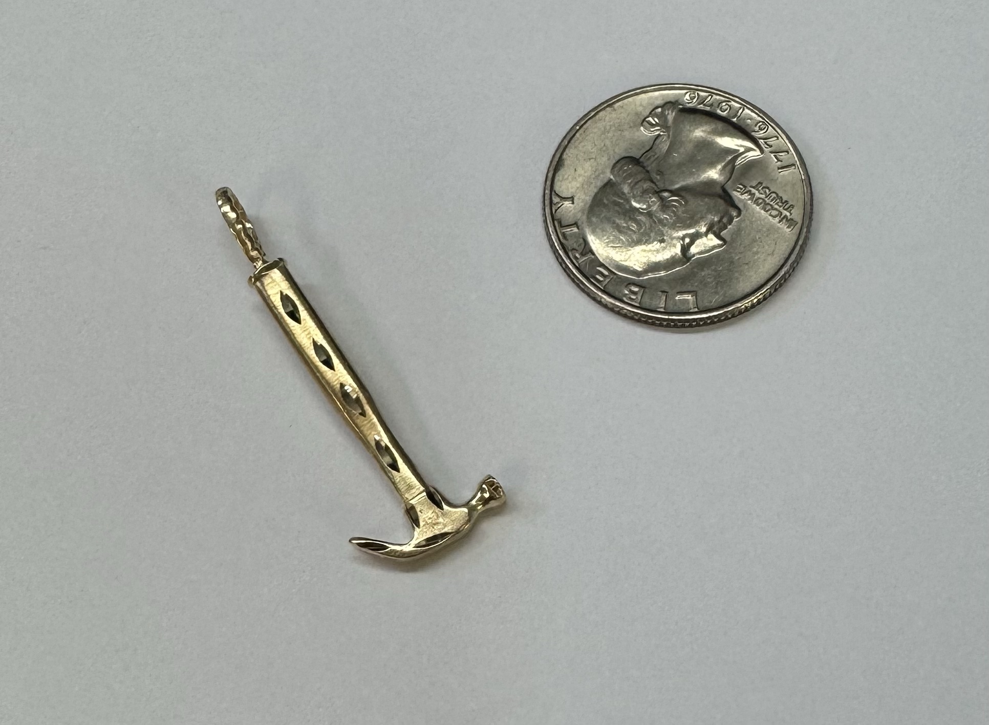14k yellow gold engraved Hammer pendant/charm. This piece has an entire weight of 2.6 grams.
