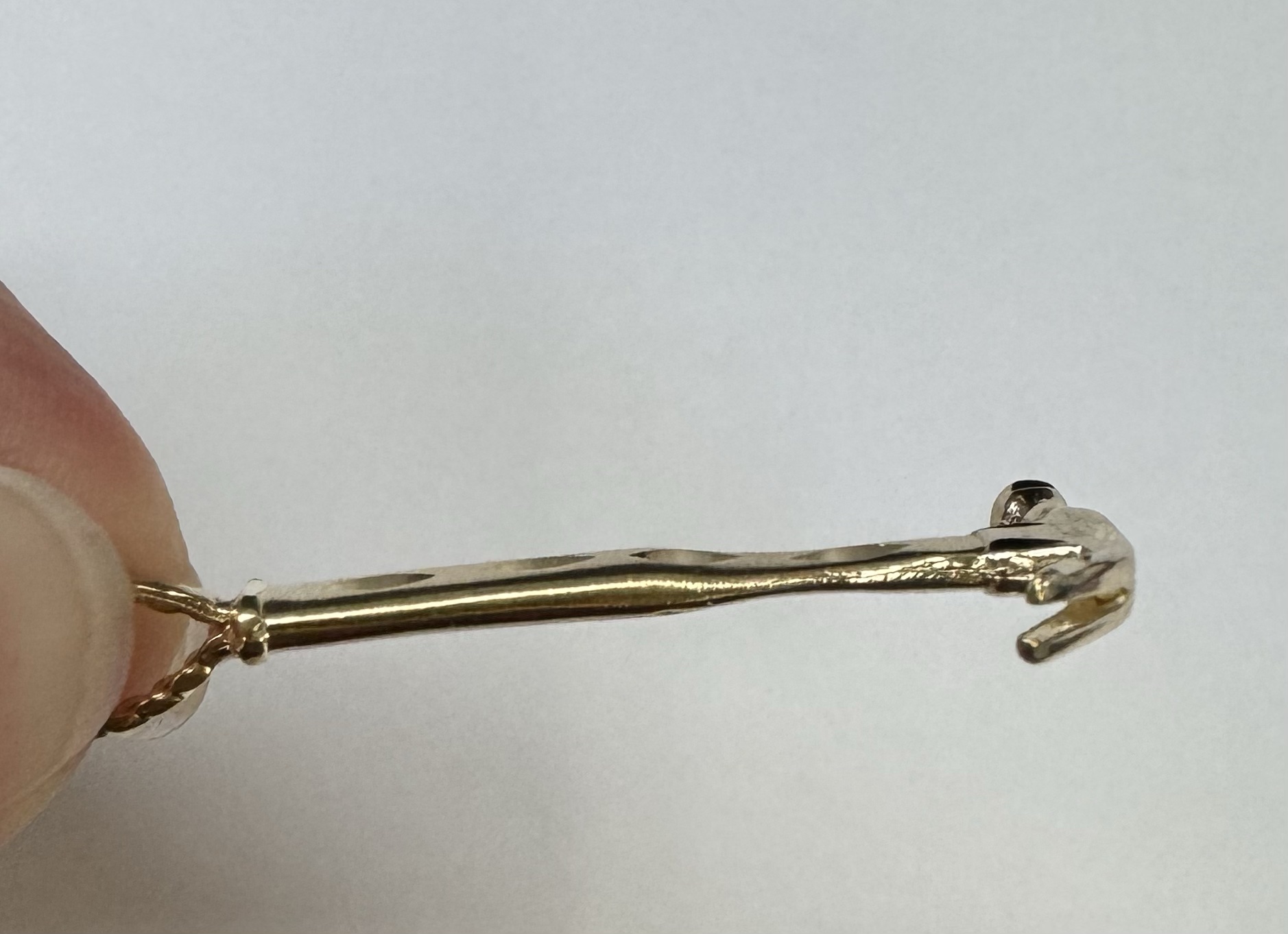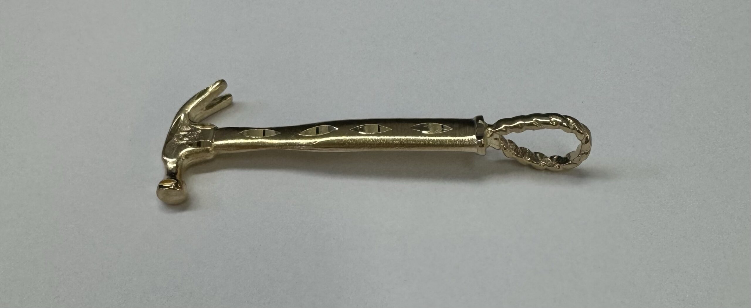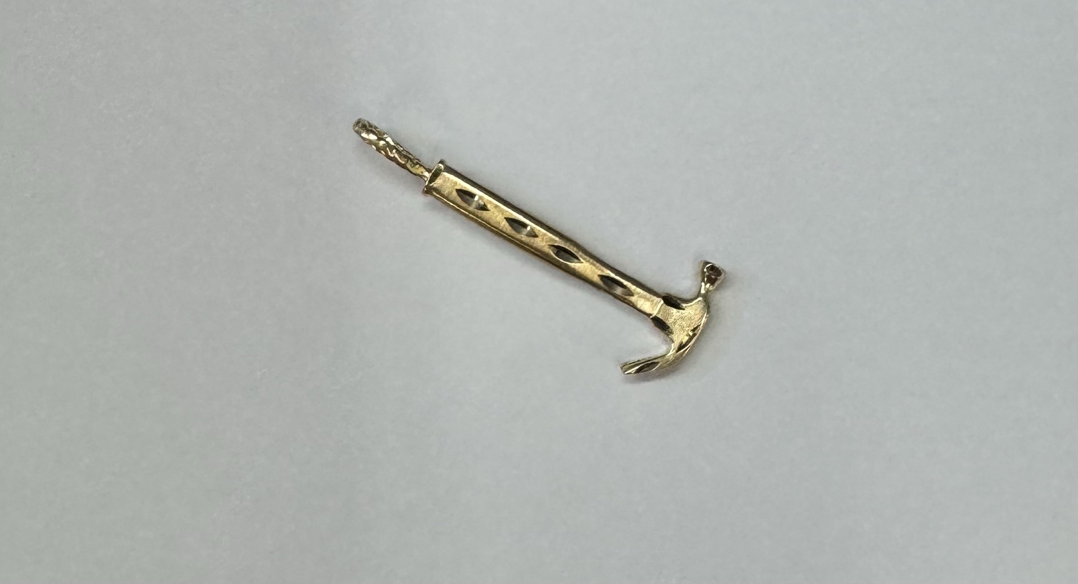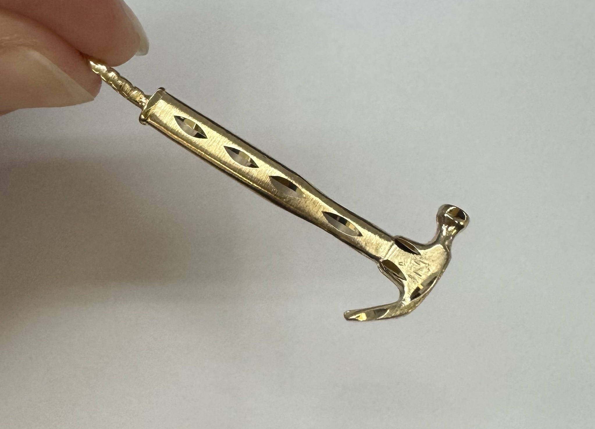 14k yellow gold engraved Hammer pendant/charm. This piece has an entire weight of 2.6 grams.
