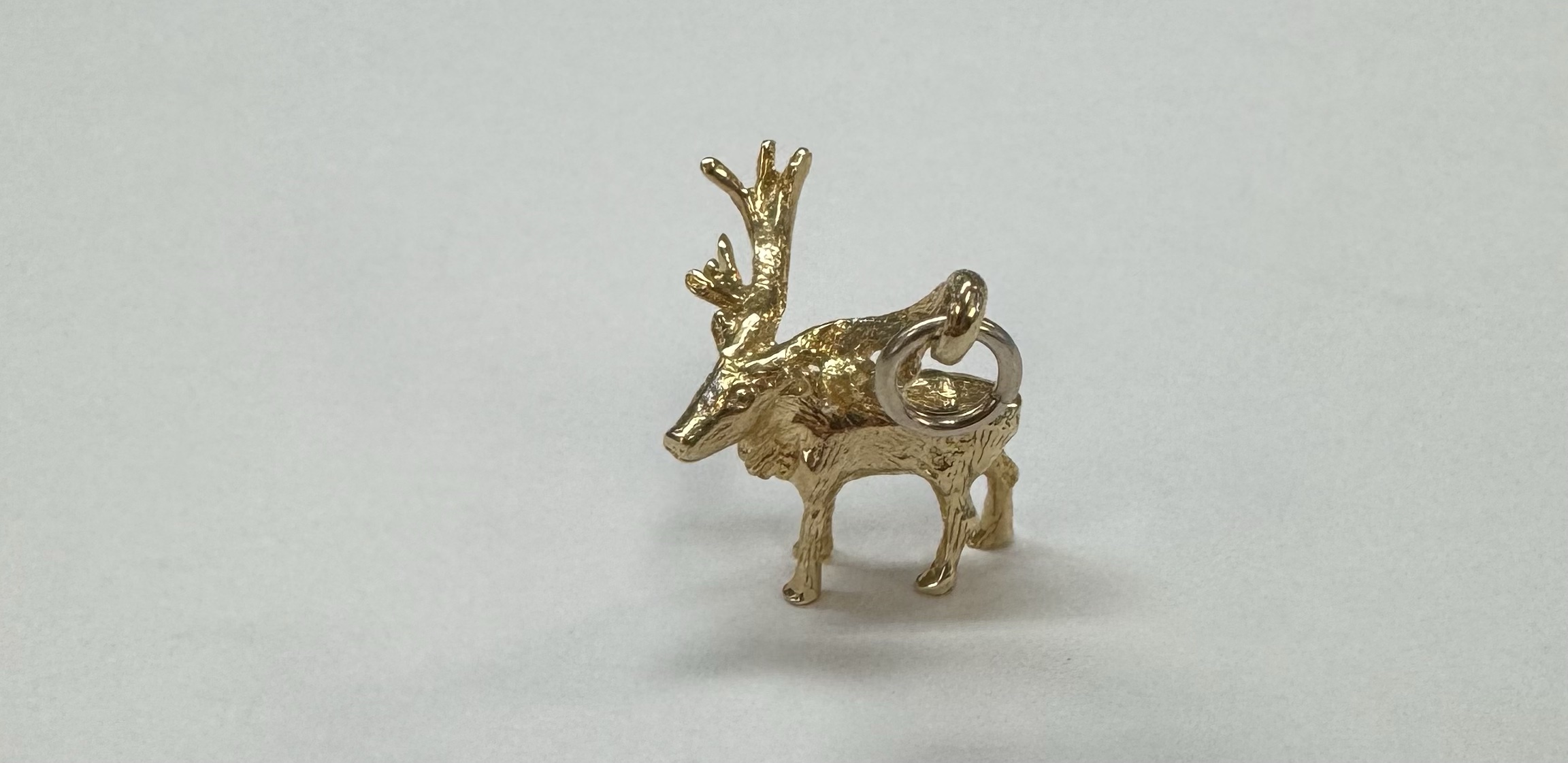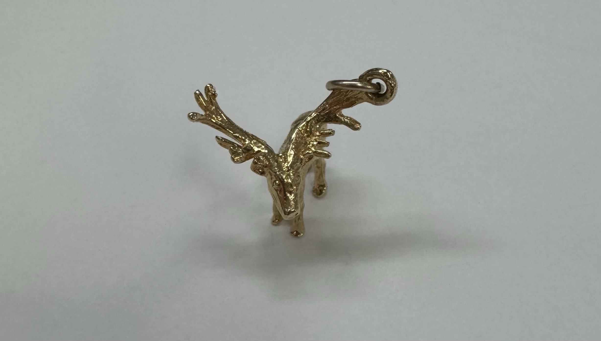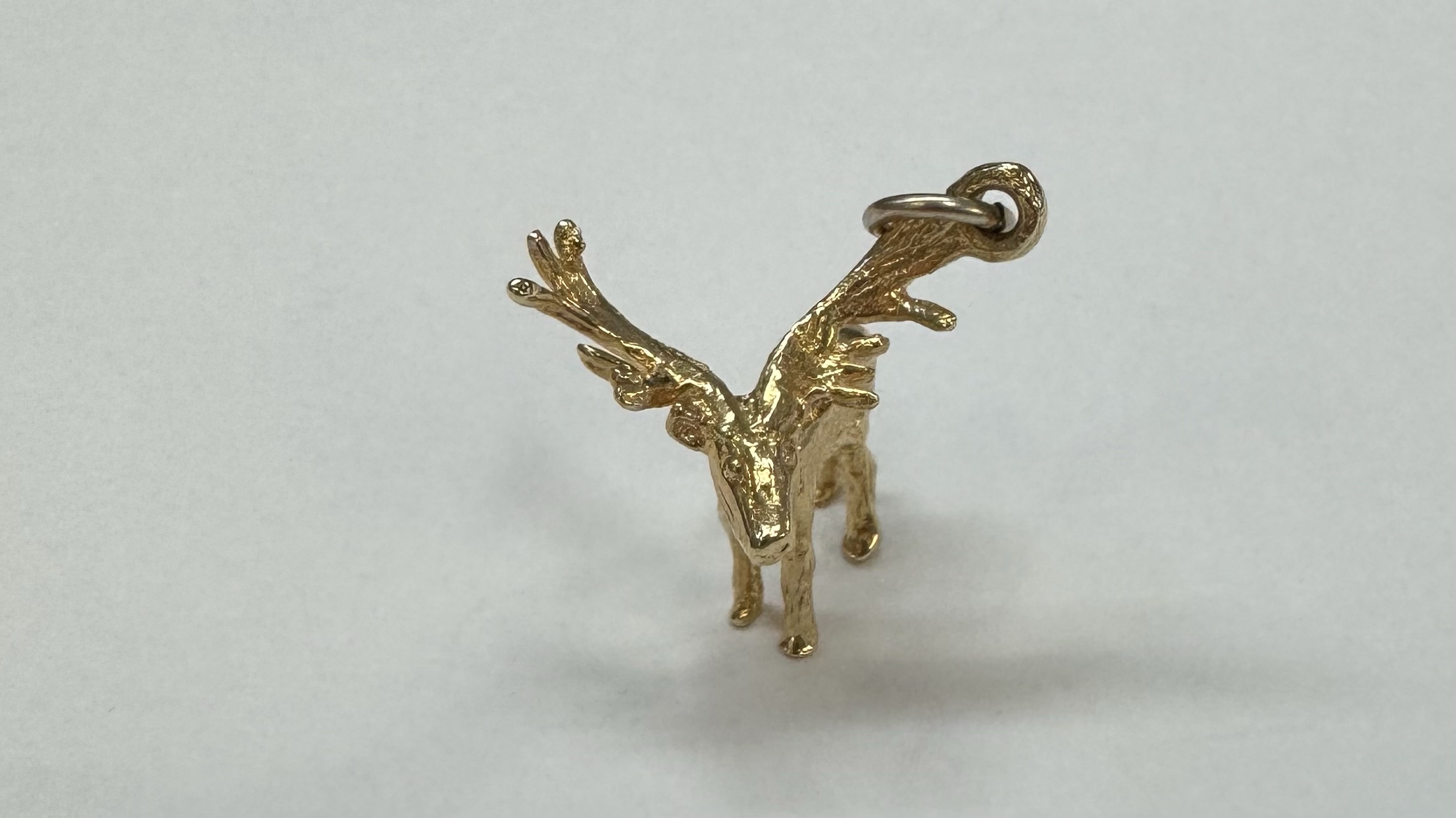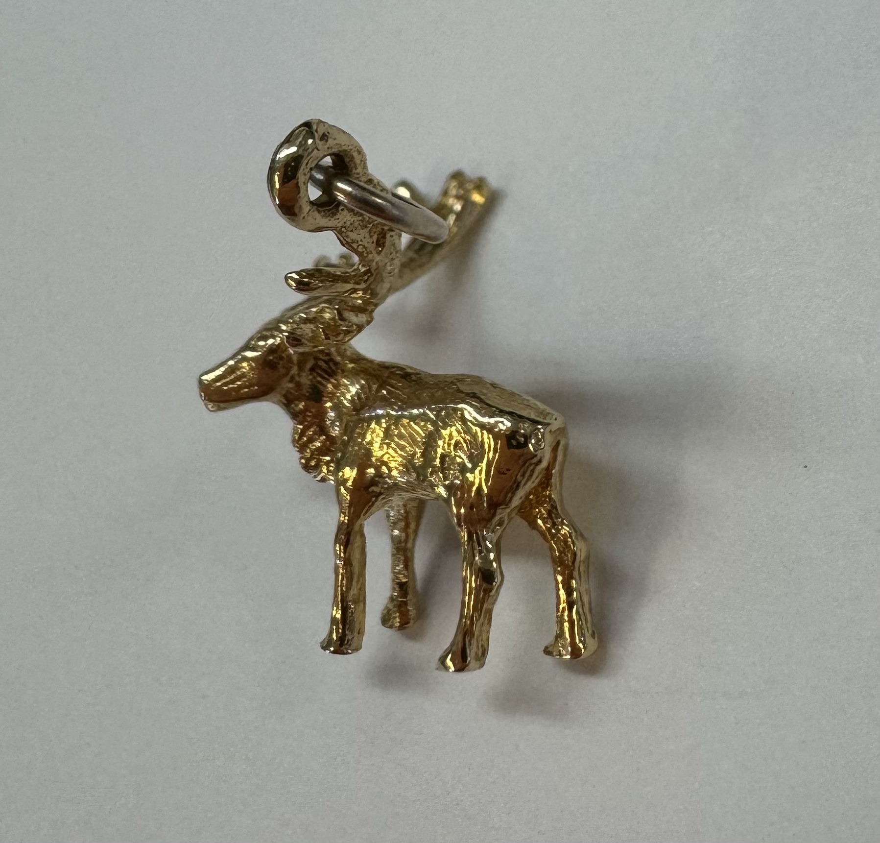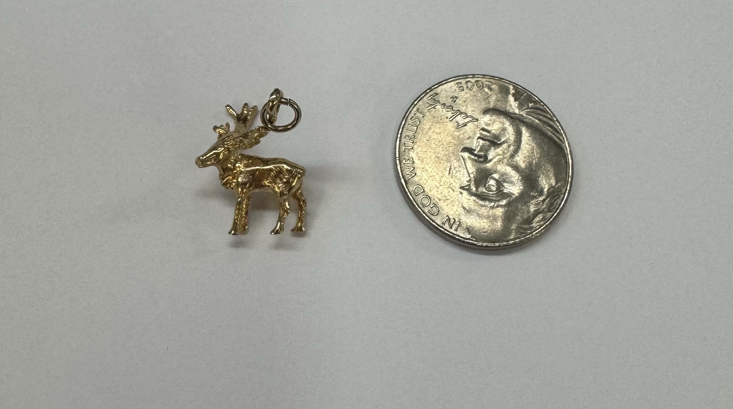 14k yellow gold Elk charm/pendant. This piece has an entire weight of 1.9 grams.