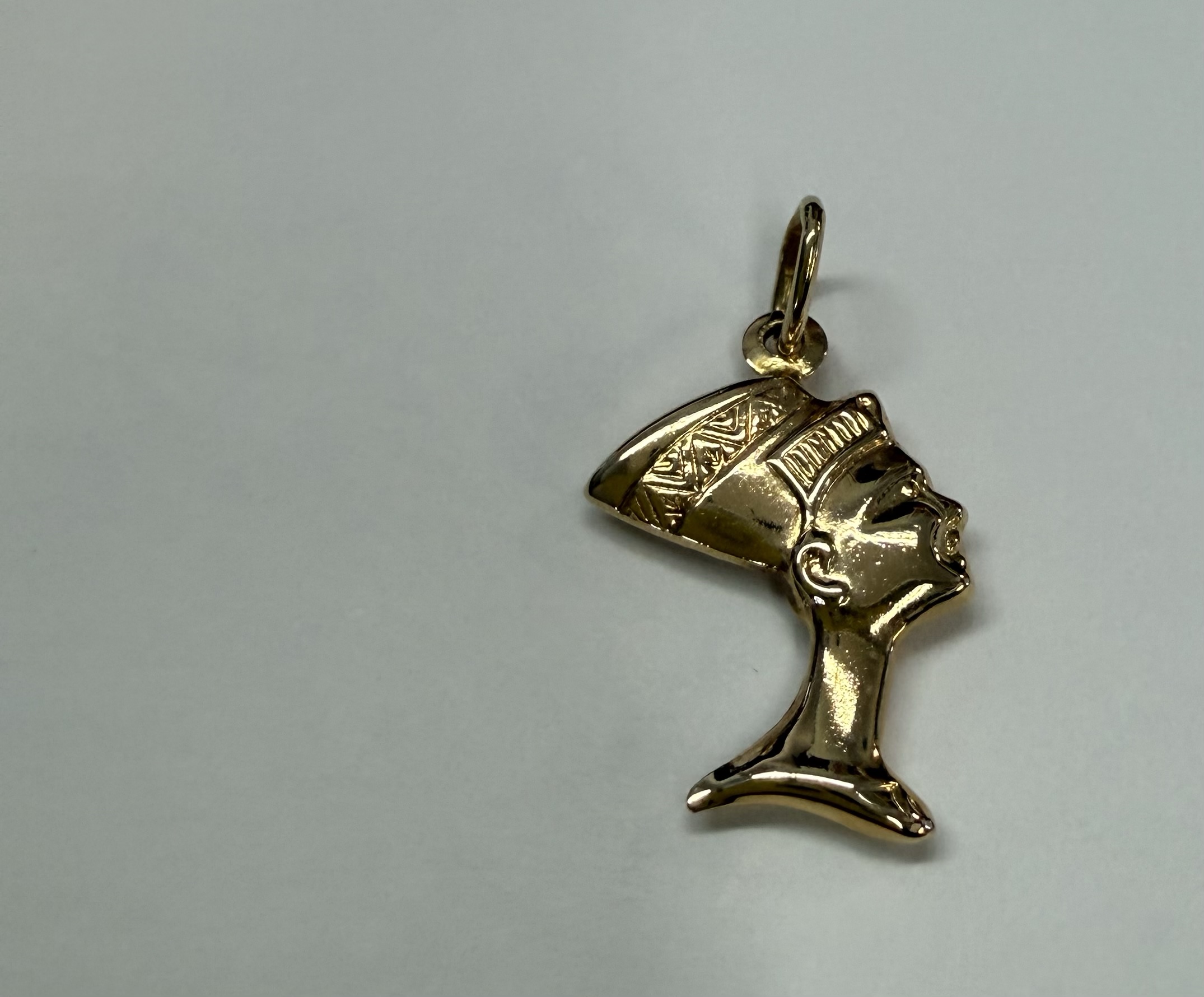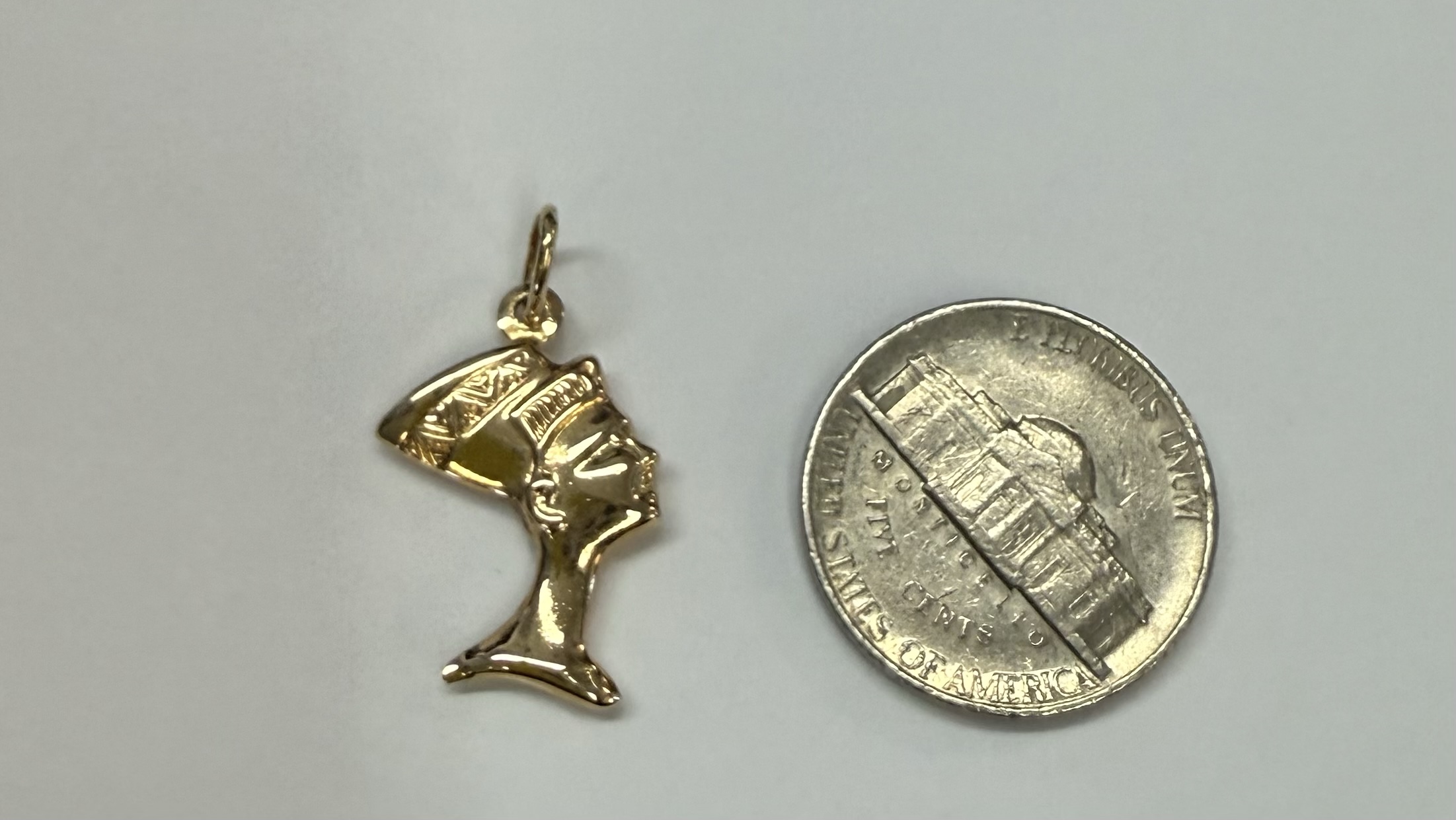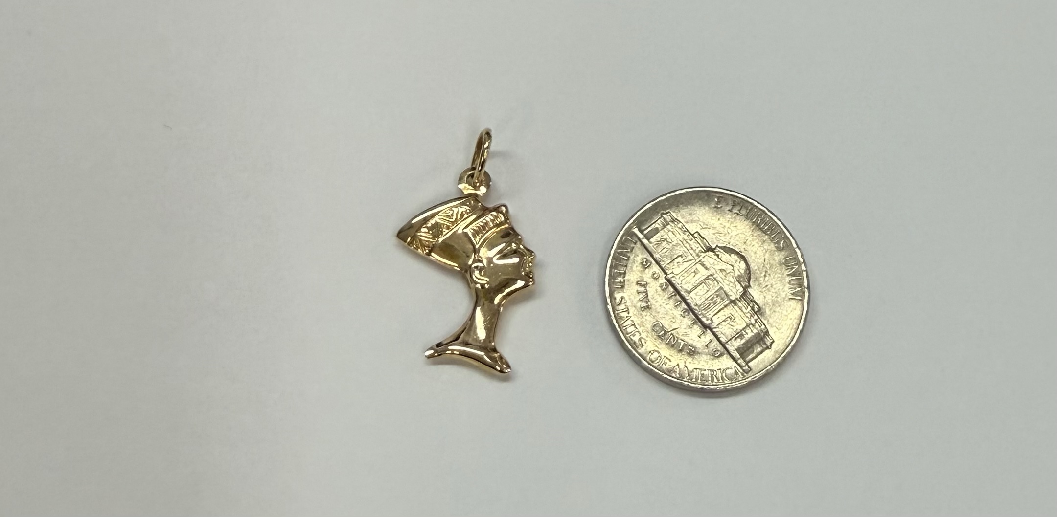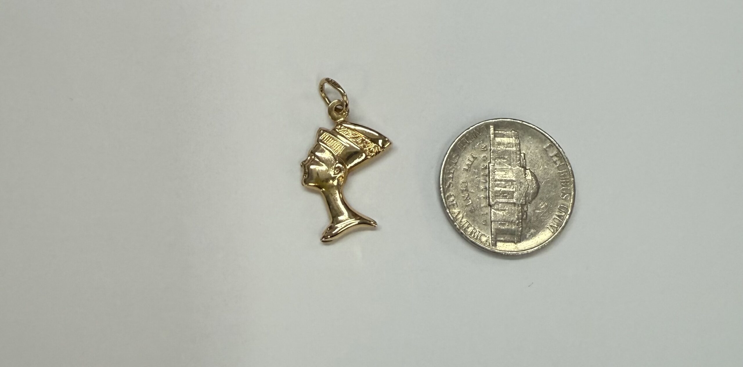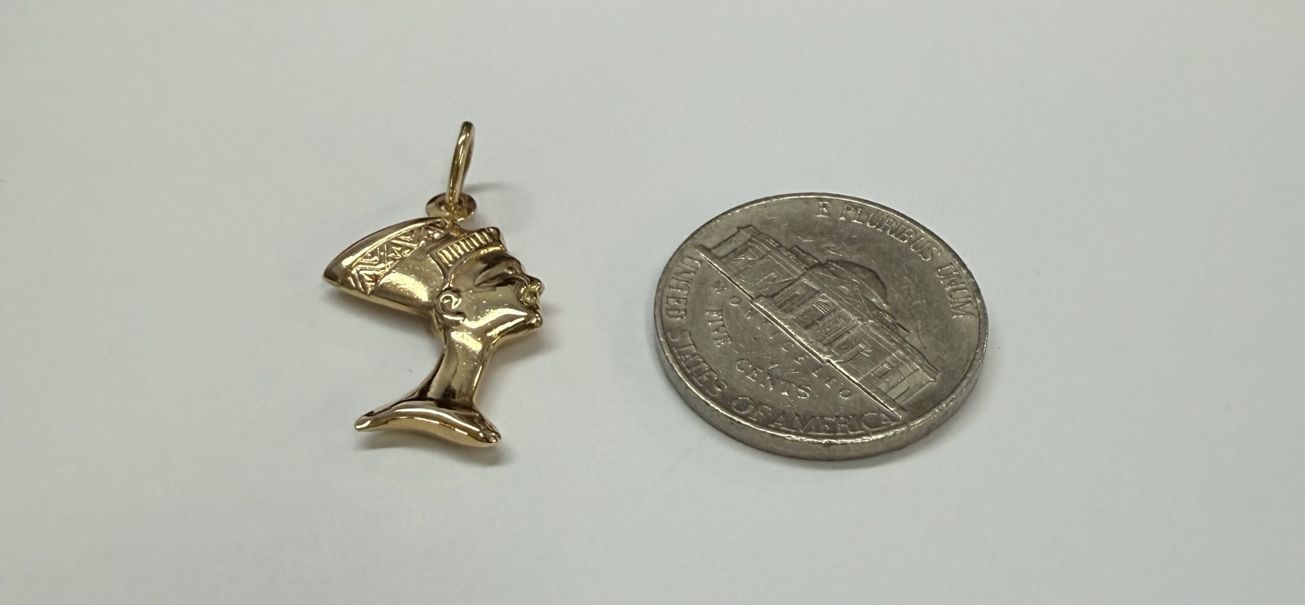 14k yellow gold Nefertiti charm. This charm has an entire weight of 1.2 grams.