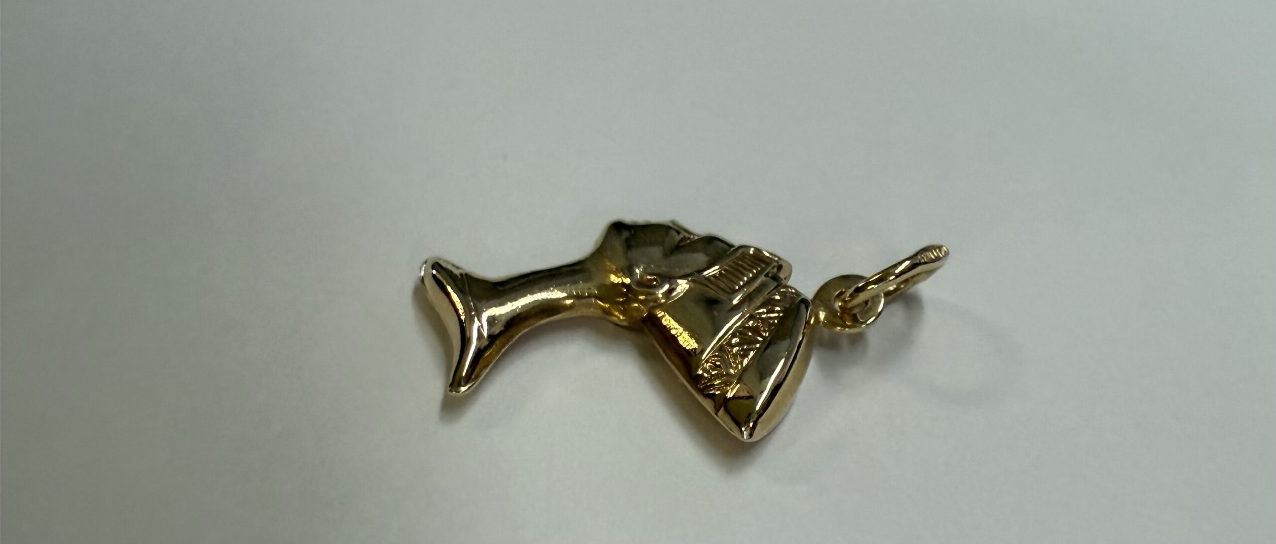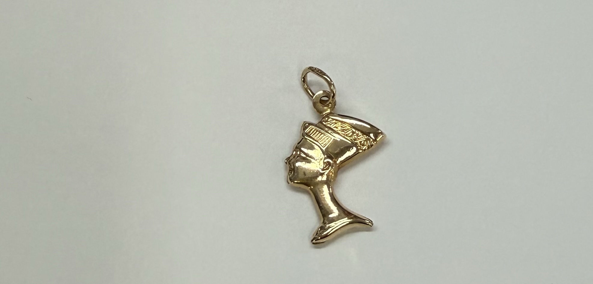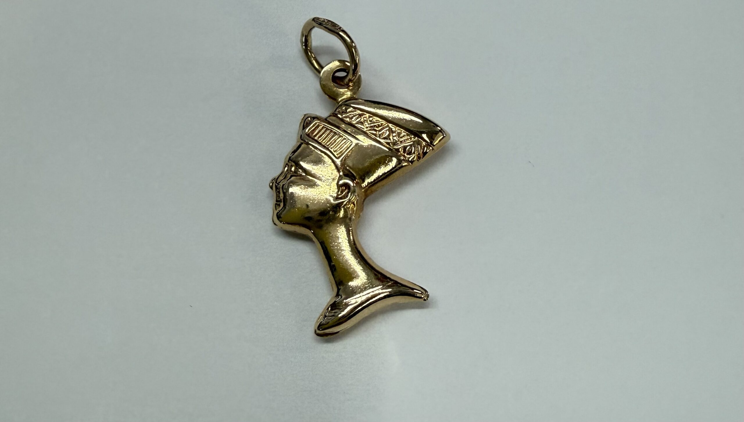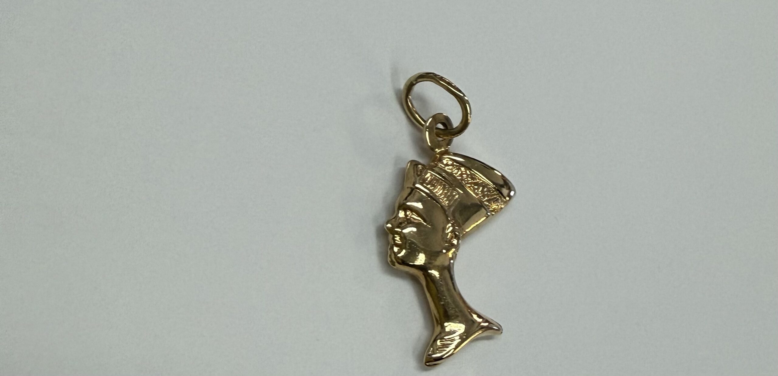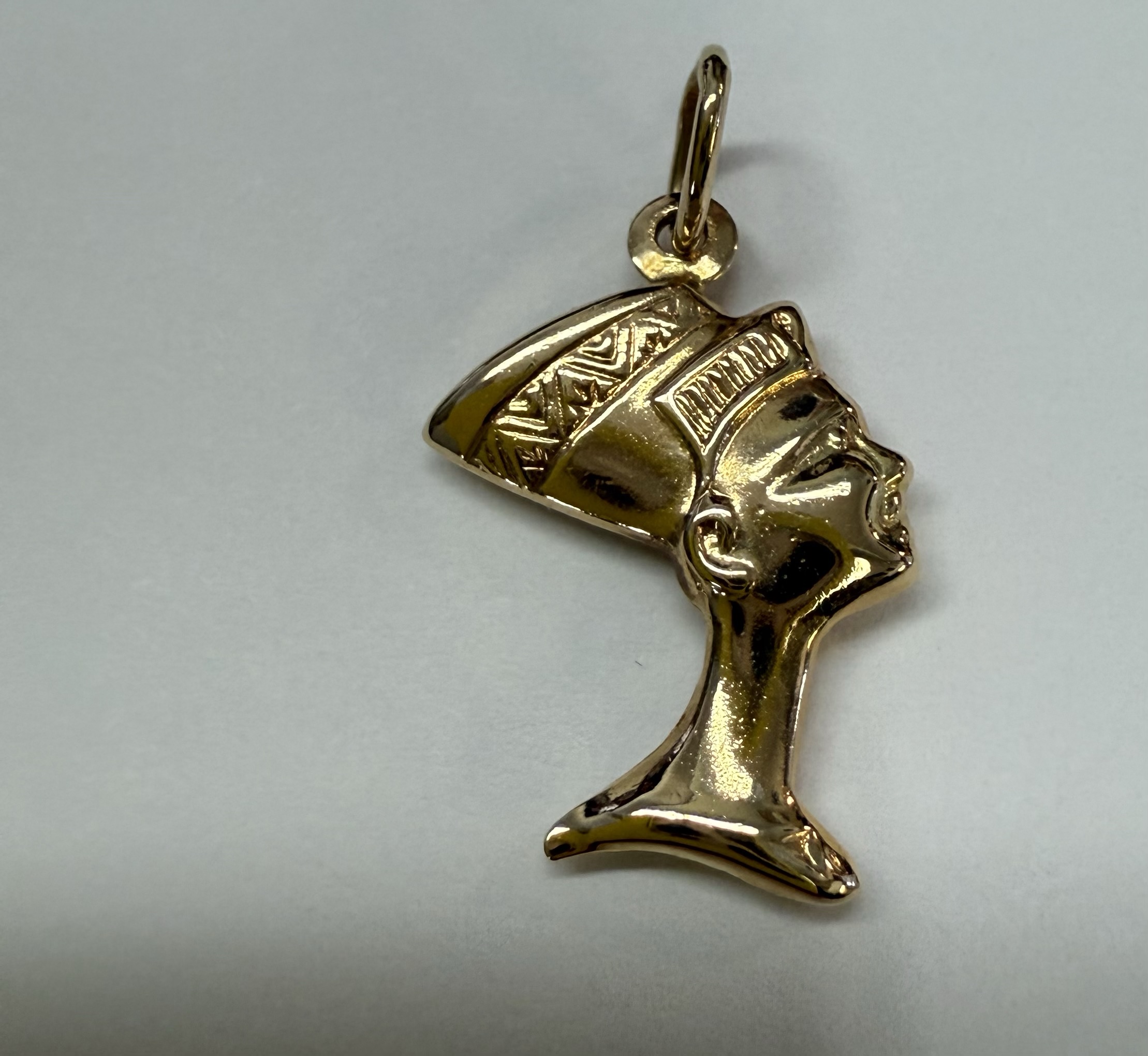14k yellow gold Nefertiti charm. This charm has an entire weight of 1.2 grams.
