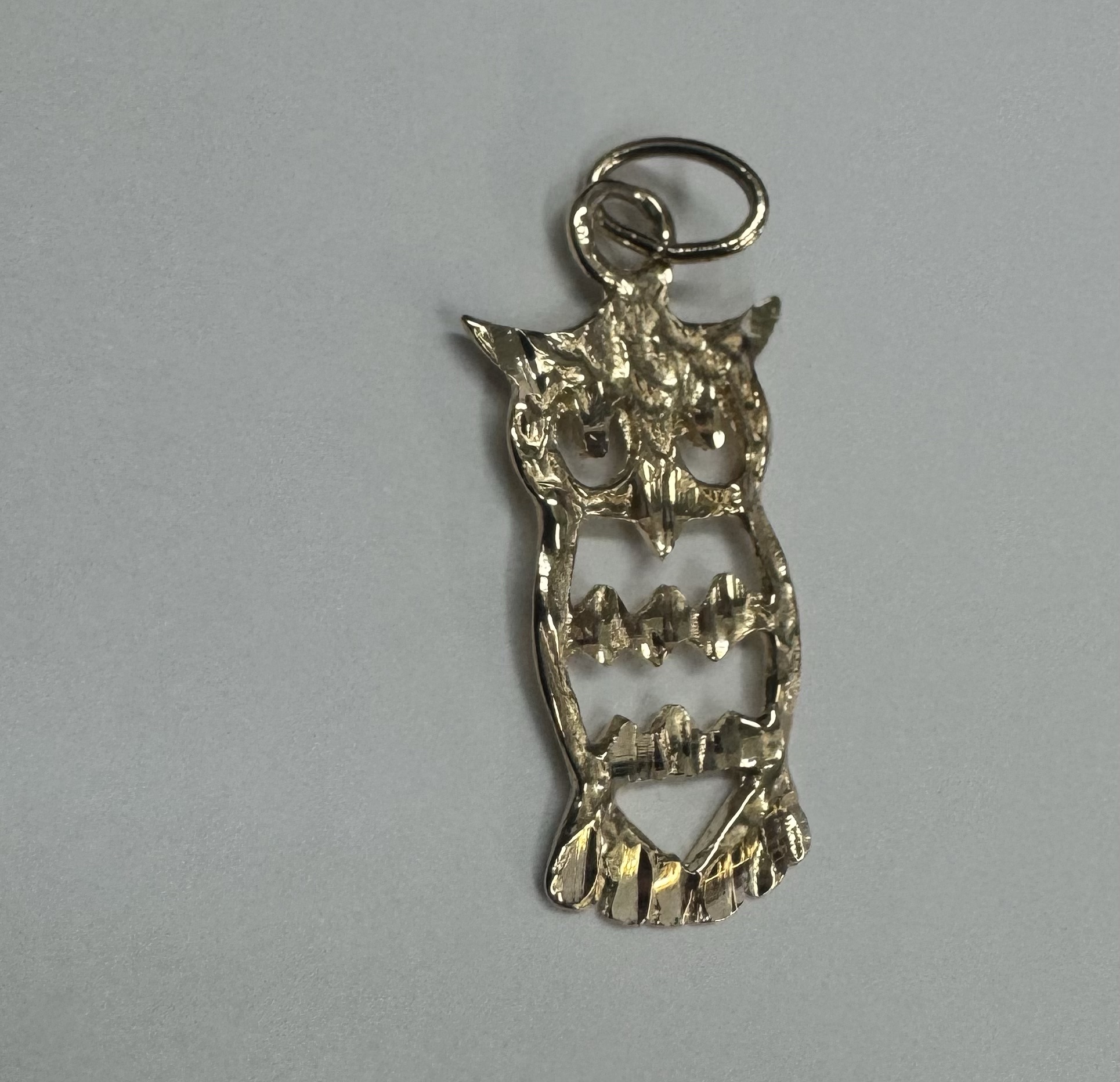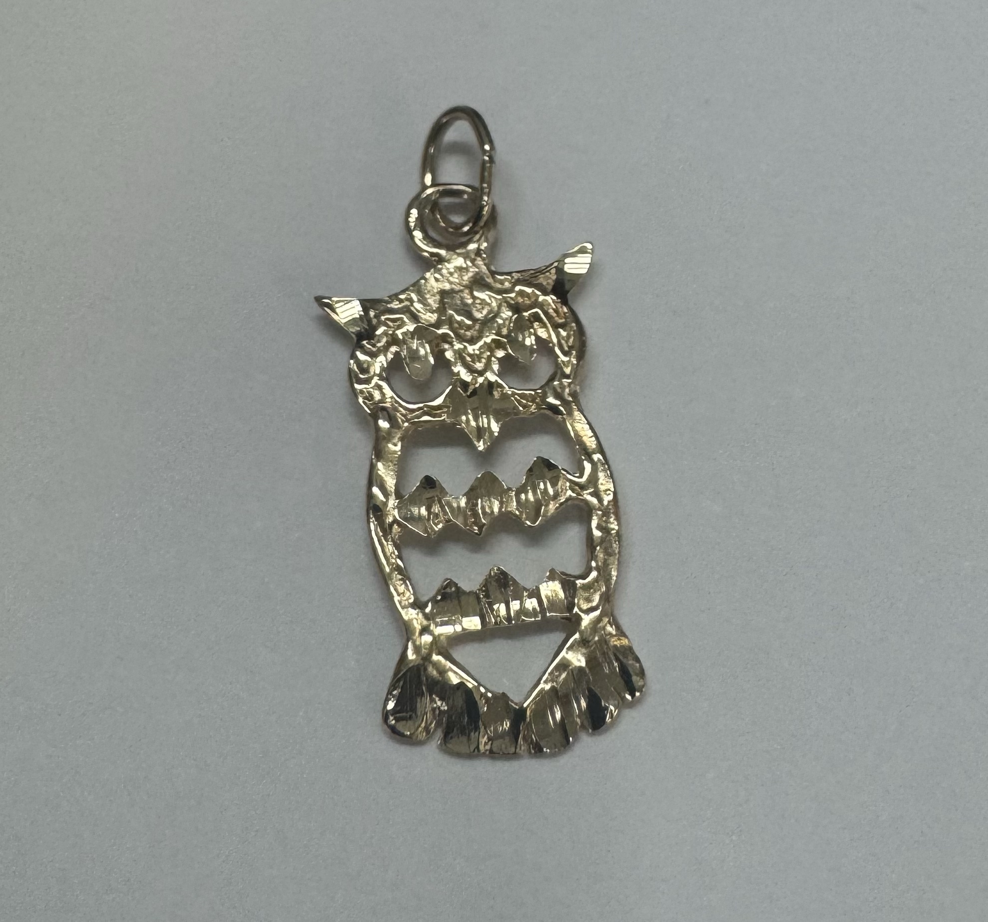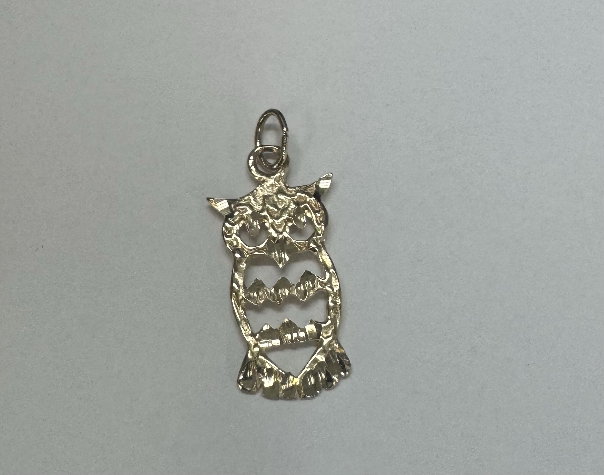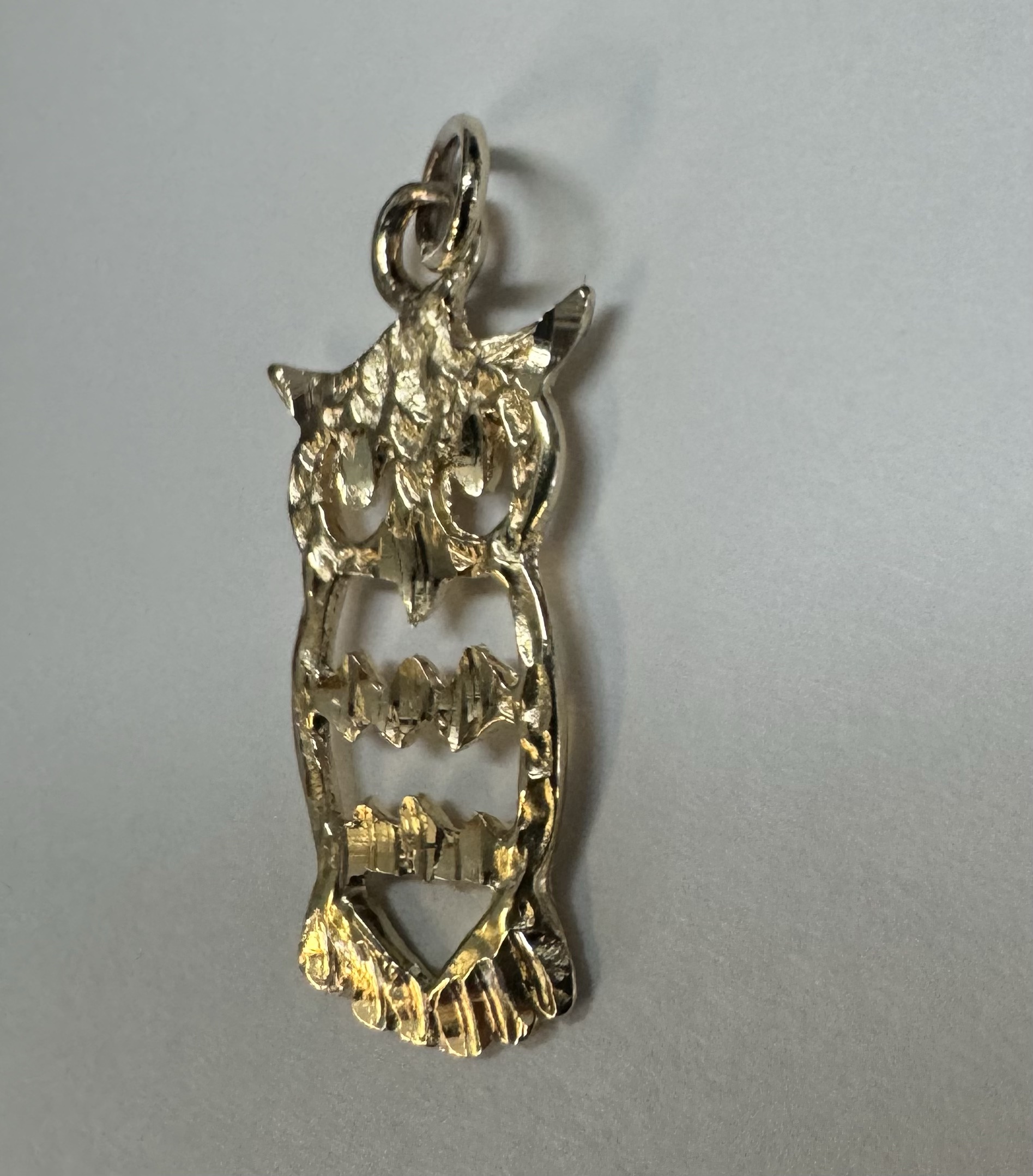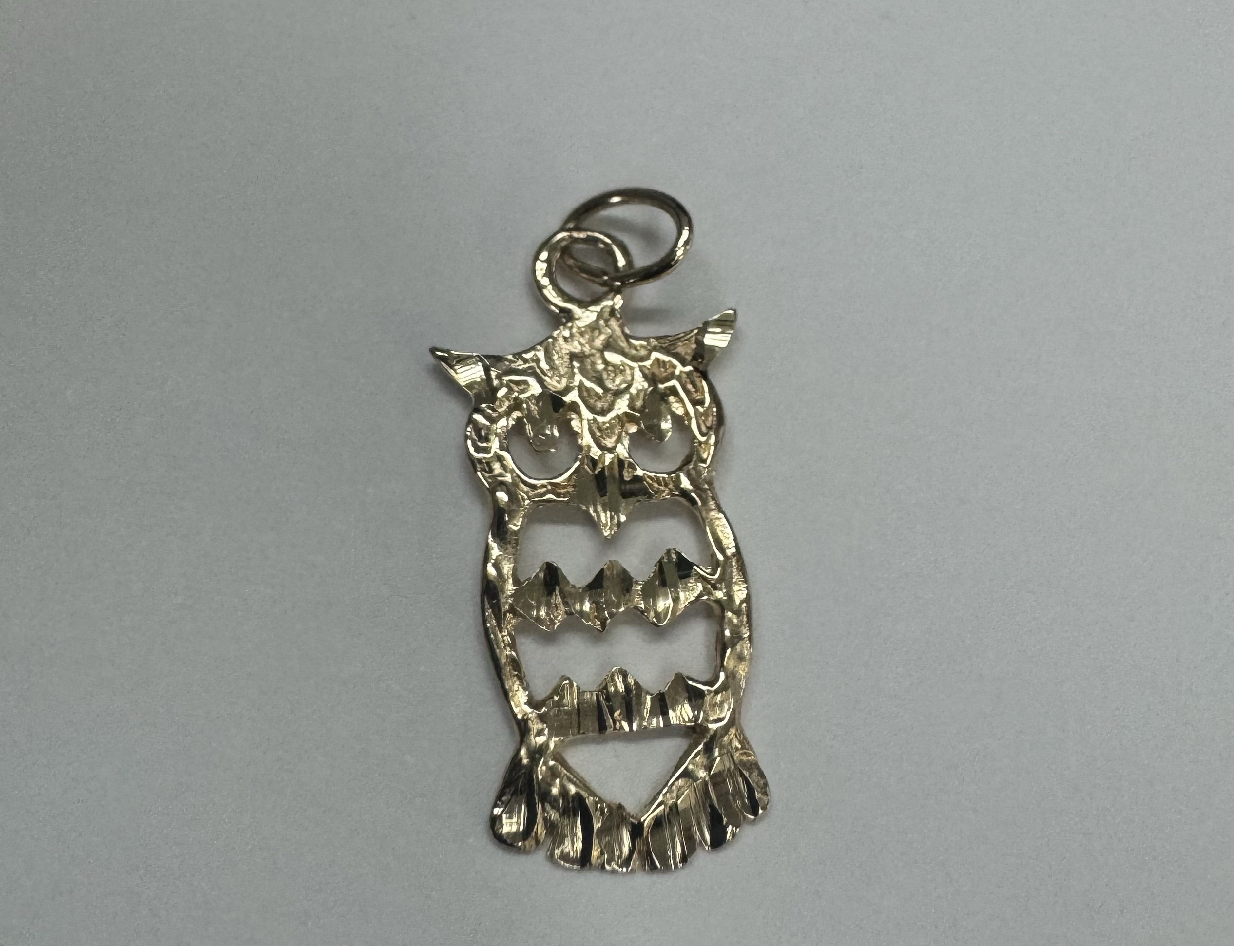 14k yellow gold openwork Owl charm/pendant. This piece has an entire weight of 1.2 grams.